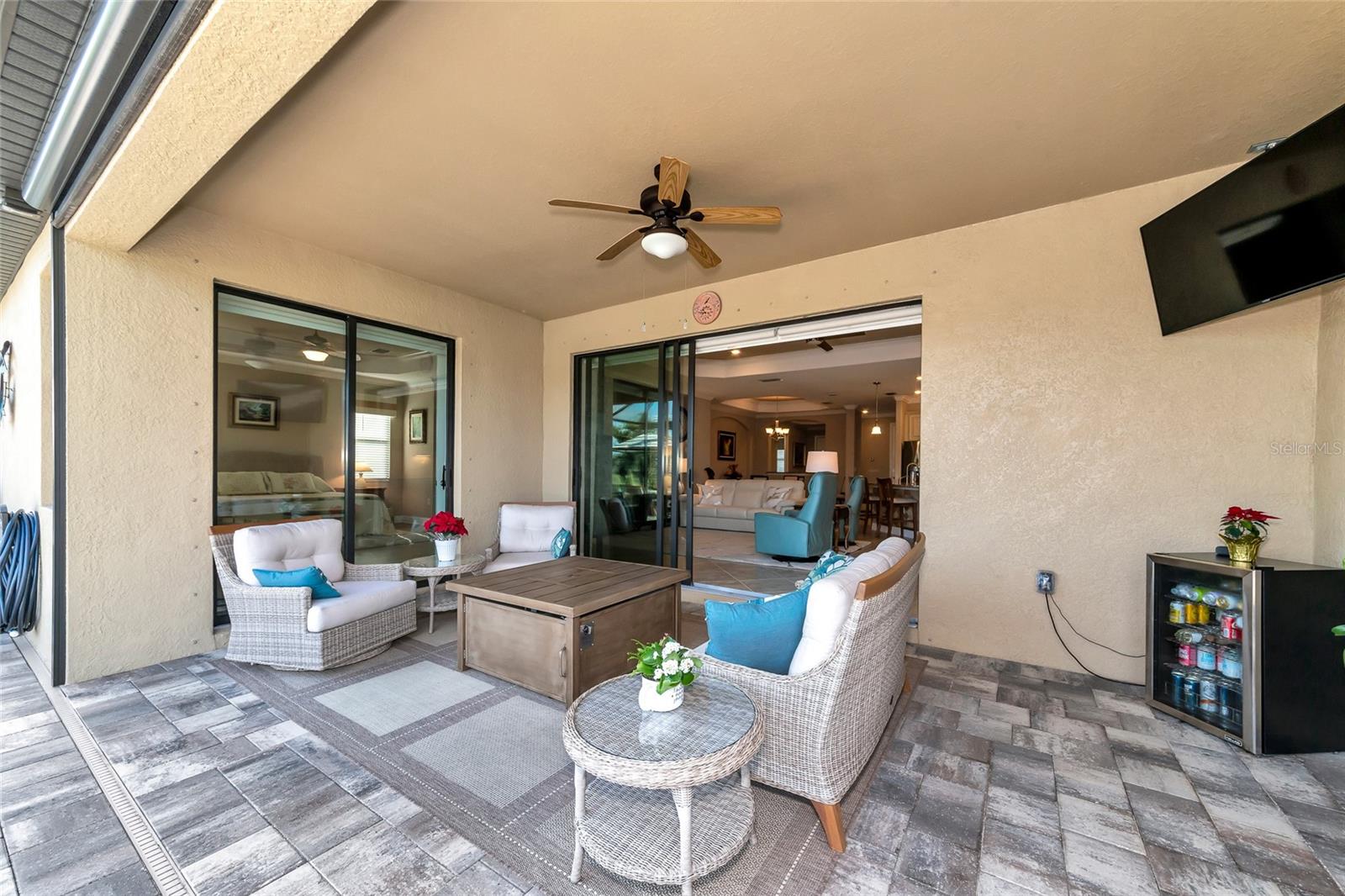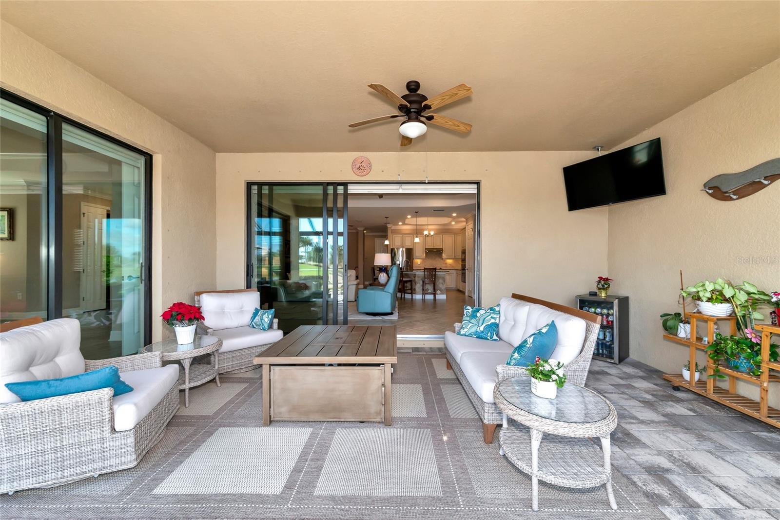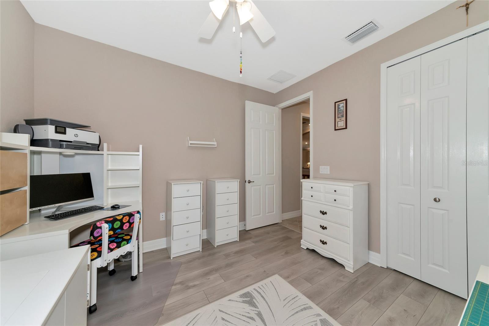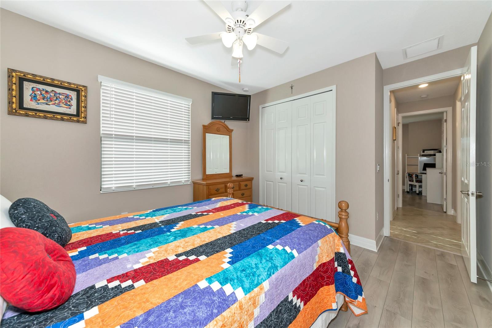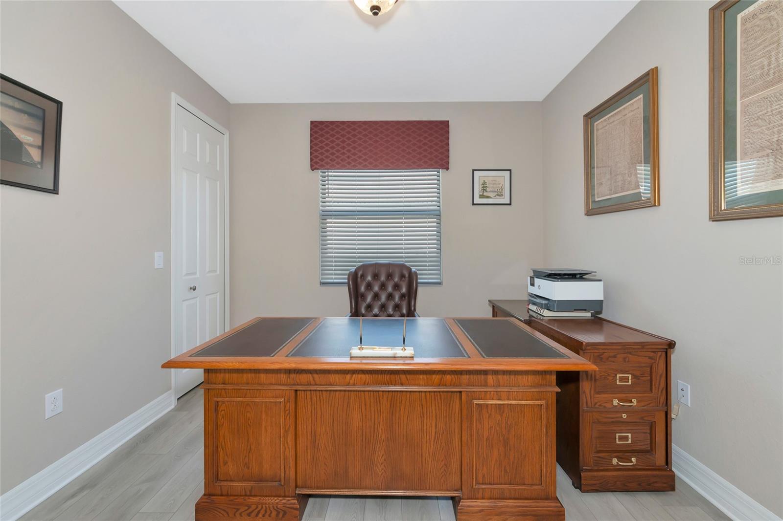 Don't miss this exceptional 4 bedroom, 2 bathroom residence, situated in the highly desired golf community of Sarasota National complete with 2 Golf Memberships included. This distinguished home offers luxurious living space and exclusive access to an extensive array of amenities, ensuring a vibrant and fulfilling community experience. Step into the beautifully designed foyer, where tasteful tile flooring, tray ceilings, and an abundance of large windows greet you with the perfect blend of comfort and sophistication. Just ahead, you'll find the formal dining space, ideal for gathering during holidays and enjoying meals in style. The open concept floor plan seamlessly guides you into the expansive living room, featuring more tray ceilings, elegant pendant lighting, a built-in dry bar, a wine refrigerator, and wall-to-wall sliders that offers serene views of the patio and pool/spa. The stunning gourmet kitchen is a chef's dream, high-end tile finishes, modern stainless steel appliances, and a massive center island perfect for morning coffee and conversation. Here, you can effortlessly create all of your culinary masterpieces while enjoying the luxurious ambiance. At the front of the home, you'll find two inviting guest bedrooms and a well-appointed bathroom, offering comfort and convenience for family and visitors alike. Additionally, a spacious 4th bedroom currently used as a den provides remarkable flexibility, a home office, a library, or a serene retreat for quiet moments. All bedrooms feature pristine luxury vinyl plank flooring, combining elegance with easy maintenance. The primary bedroom is a secluded retreat, designed as its own private suite for ultimate relaxation. Two spacious walk-in closets, providing ample storage, and a spa-like en-suite bathroom. This luxurious space features dual vanities, a grand walk-in shower, and a garden tub perfect for soaking away the day’s stresses. Enhancing the allure of this home is a custom rear patio that seamlessly connects indoor and outdoor living. This outdoor oasis is perfect for al fresco dining, relaxing by the heated spool, and entertaining guests, all while being surrounded by the lush beauty of the community. With picturesque views of the pond and golf course, the spool adds a touch of luxury to daily living. The outdoor space is also equipped with sleek overhead LED lighting to secure the mood you want. This home is designed with both comfort and safety in mind, featuring hurricane-rated windows for added protection. Additional highlights include custom wooden closets in the master bedroom and wooden shelving in all other closets throughout the home. The Sarasota National community offers a wealth of amenities, including the Palm Dining Room and Clubhouse, Tiki Bar, Coffee Lounge, Library, and more. You'll enjoy convenient proximity to exciting attractions, sandy beaches, diverse restaurants, grocery stores, major commuting routes, and top-rated schools. Call today to schedule a private tour before this rare opportunity is gone!