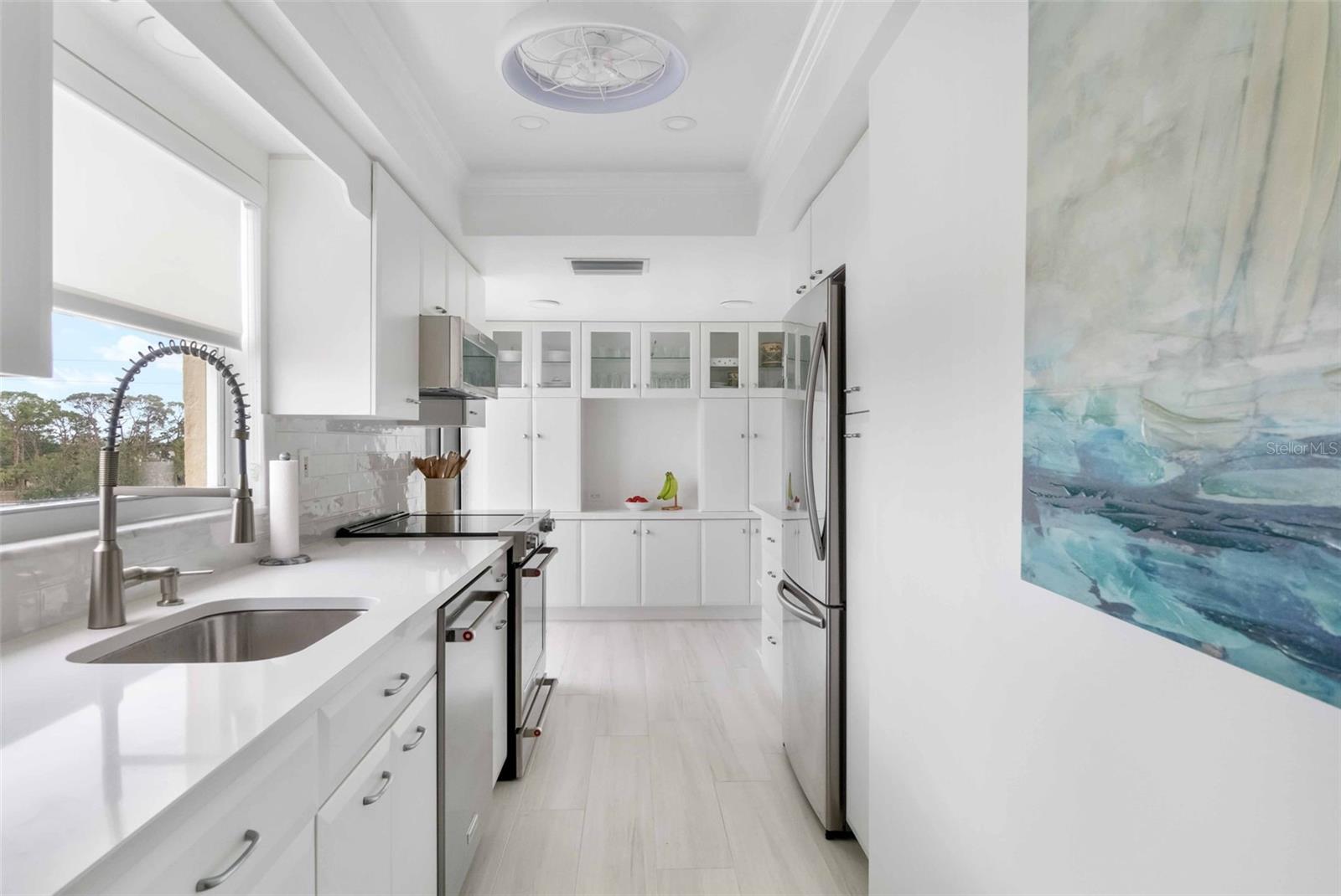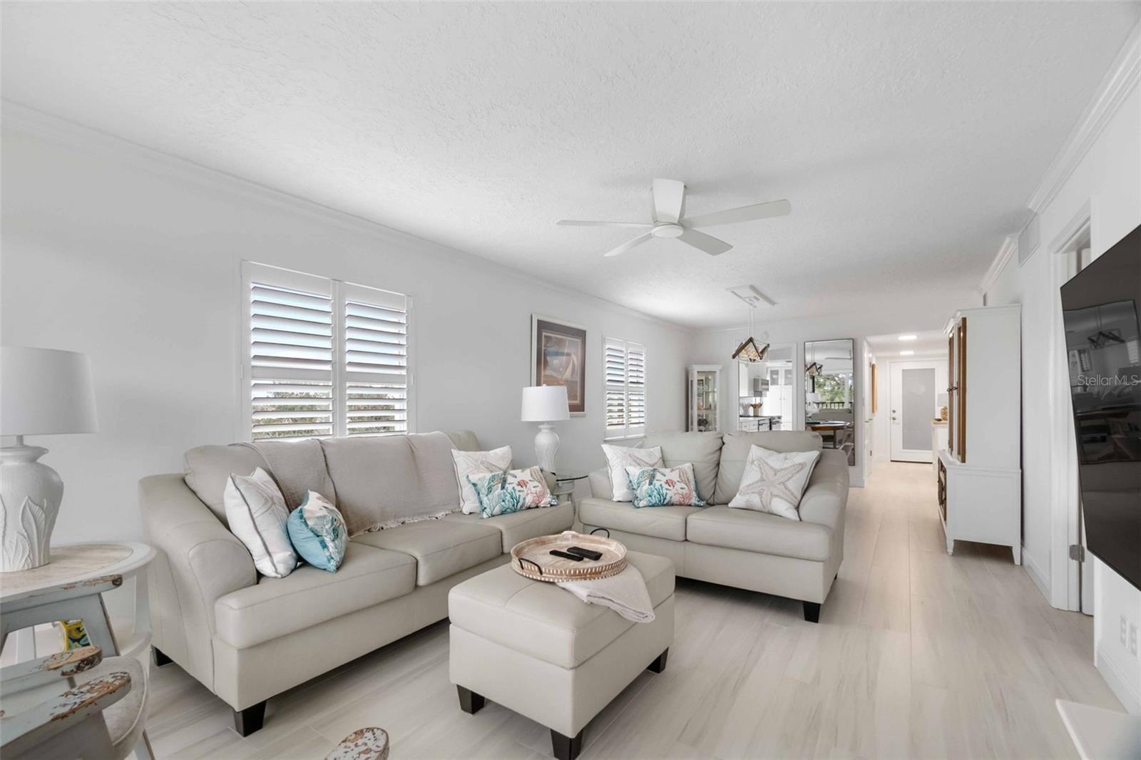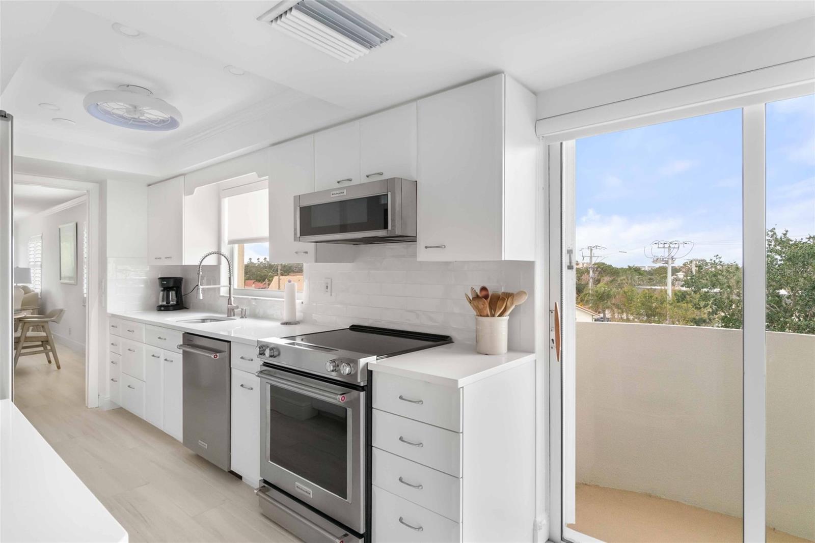 Priced below recent APPRAISED value! Rarely Available END UNIT on Venice Island – TURNKEY and MOVE-IN Ready! <br> <br> Discover the perfect combination of coastal charm, elegant upgrades, and a premier location in this rarely available 4th-floor END UNIT at VENICE AVE CONDOMINUM. Located in the heart of Venice Island, this beautifully remodeled 2-bedroom, 2-bathroom home spans 1,011 square feet of light-filled living space. Offering a NO FLOOD ZONE designation and a premier location just a short stroll from HISTORIC DOWNTOWN VENICE and VENICE PUBLIC BEACH, this residence provides the ultimate Florida lifestyle. <br> <br> As an END unit, this home enjoys extra privacy and an abundance of natural light from additional windows. The expansive screened lanai, with western-facing views, is the perfect spot to savor your morning coffee or take in spectacular evening sunsets. The home has been thoughtfully updated with newly installed porcelain tile flooring, fresh paint, crown molding, custom plantation shutters and shades on every opening, including the lanai - all new in 2024 - offering a welcoming atmosphere. Both entry doors to the unit are newer and reflect the current hurricane standard. Importantly, there was no damage to the unit from 2024 hurricanes, Milton and Helene, offering added reassurance. <br> <br> The beautifully remodeled kitchen features Cambria quartz countertops, KitchenAid stainless steel appliances with transferable warranties, and under-cabinet lighting. A charming Juliette balcony provides views of the island, adding to the home’s unique character. The primary suite offers direct lanai access, a large wrap-around closet, and custom built-ins for dresser, desk, and bookshelf elements. The second bedroom is equally inviting with plenty of space for guests. Both bathrooms have been thoughtfully updated with quartz countertops, modern vanities, and Moen shower fixtures. <br> <br> Venice Ave Condominium is a well-maintained, beautifully landscaped community that has an ONSITE MAINTENANCE PERSON. Many community features include a heated pool, personal storage closets, bike storage, and assigned covered parking. Water, internet, and basic cable are included in the HOA dues. Recent community improvements include renovated elevators, a refreshed lobby and community patio, new carports, and an updated pool cage, all completed between 2021 and 2023. The Lobby and community room renovations also included hurricane rated windows and doors. The building is a solid structure and secure with KEYPAD ACCESS to the lobby and elevator, providing convenience and safety. Additionally, there is lighted, covered parking. Venice Avenue Condominium is a 55+ community located in flood zone x (no flood zone) and has not previously experienced any flooding from hurricanes. Recent structural engineering report came back clear; full report available in the listing attachments. There is a no pet policy and free communal laundry on the odd-numbered floors. <br> <br> Living in this prime location is a walker’s dream. Stroll to downtown Venice for boutique shopping, award-winning dining, and regular festivals, or head to Venice Public Beach for yoga, sunsets, or live music at the Pavilion. Nearby amenities include tennis, pickleball, and shuffleboard courts, as well as the Venice Art Center, Library, and Community Center. <br> <br> Don’t miss this rare opportunity—call today to schedule your private showing!