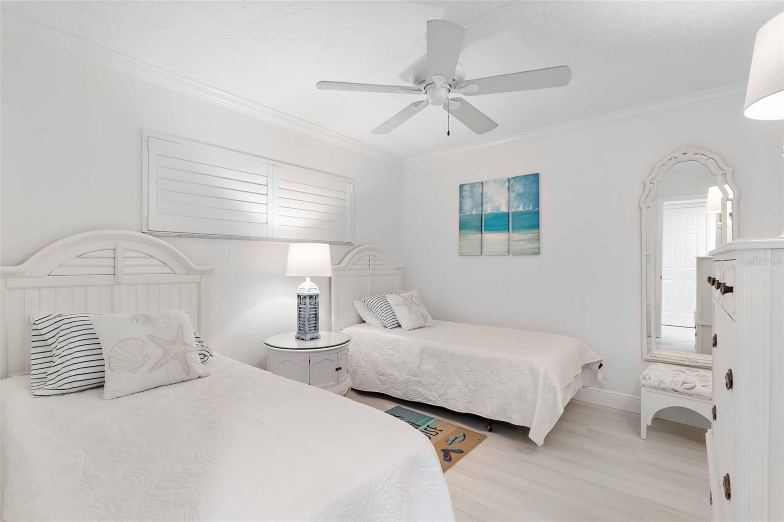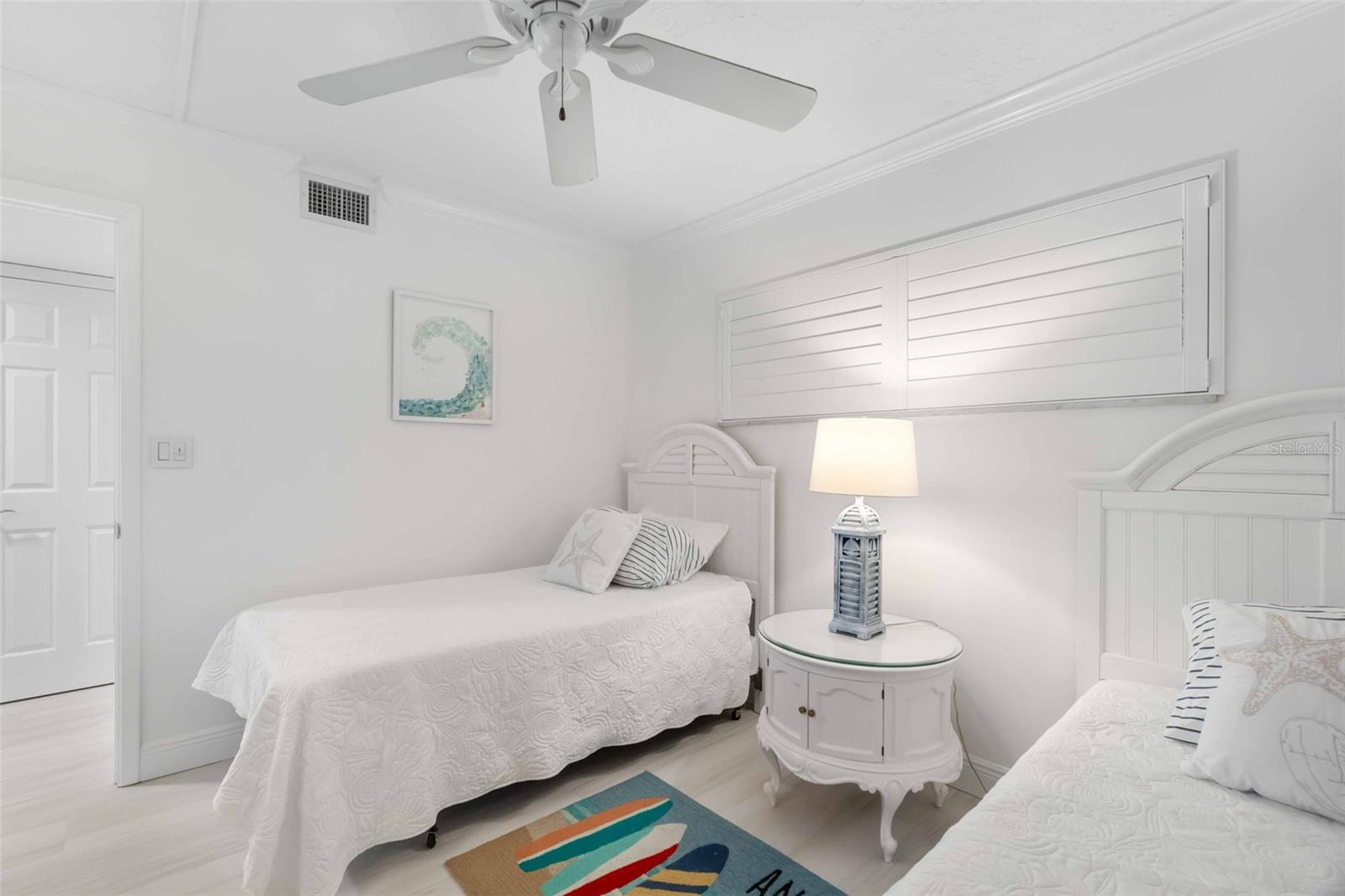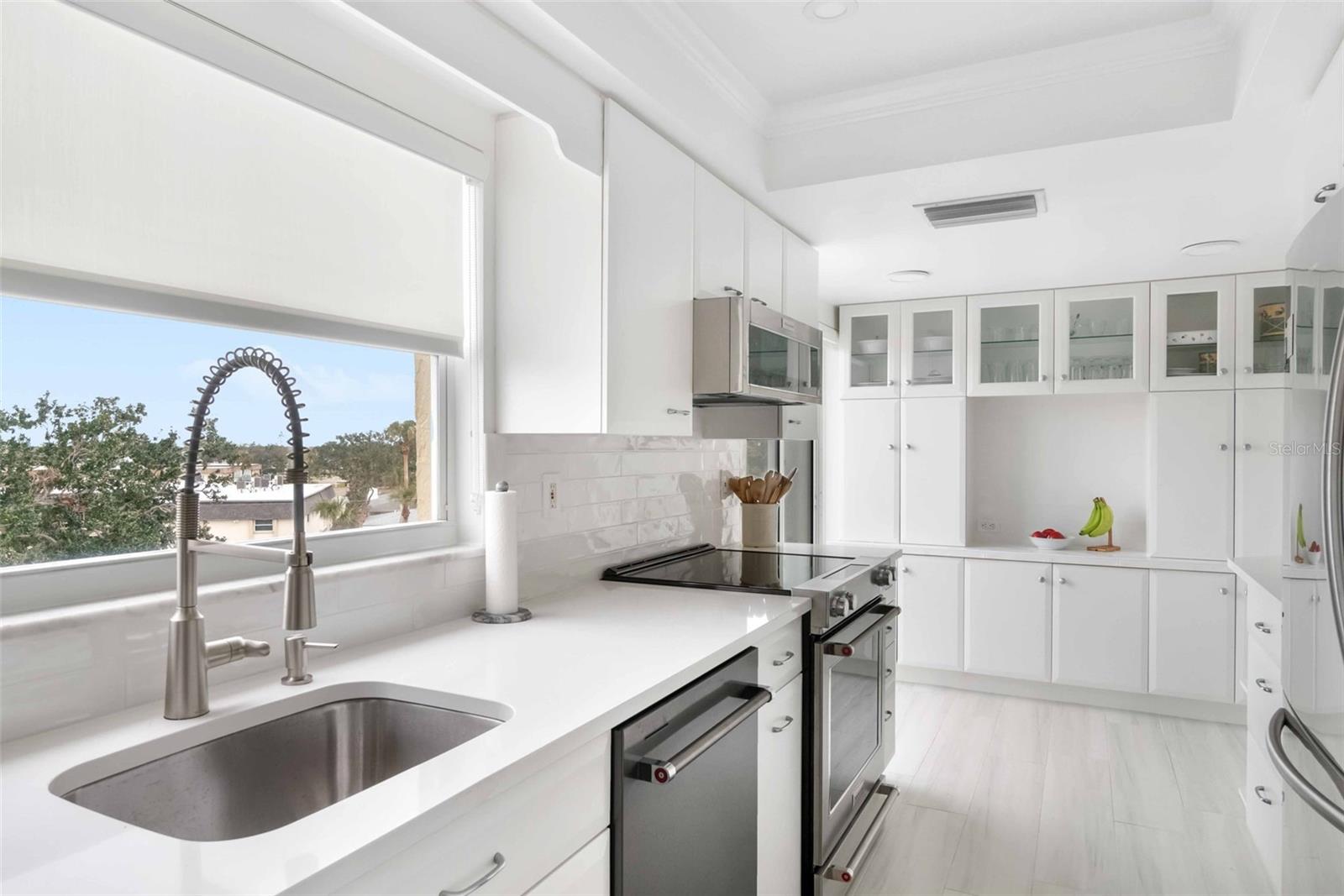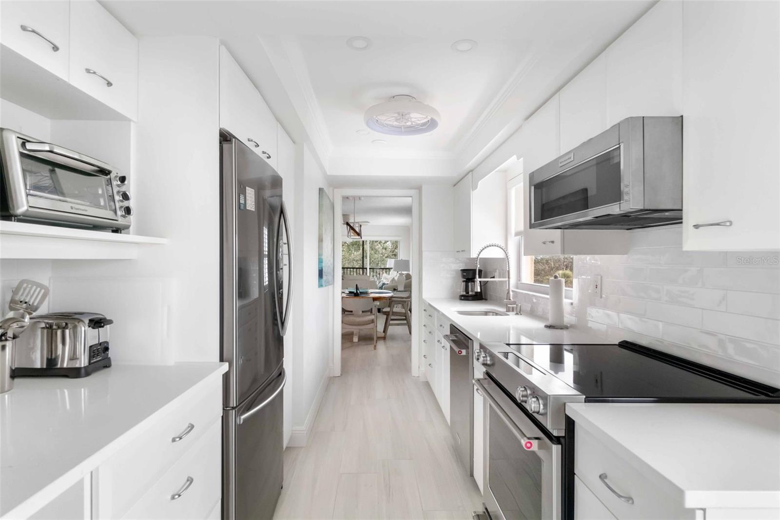 Priced below recent APPRAISED value! Rarely Available END UNIT on Venice Island – TURNKEY and MOVE-IN Ready! <br> <br> Discover the perfect combination of coastal charm, elegant upgrades, and a premier location in this rarely available 4th-floor END UNIT at VENICE AVE CONDOMINUM. Located in the heart of Venice Island, this beautifully remodeled 2-bedroom, 2-bathroom home spans 1,011 square feet of light-filled living space. Offering a NO FLOOD ZONE designation and a premier location just a short stroll from HISTORIC DOWNTOWN VENICE and VENICE PUBLIC BEACH, this residence provides the ultimate Florida lifestyle. <br> <br> As an END unit, this home enjoys extra privacy and an abundance of natural light from additional windows. The expansive screened lanai, with western-facing views, is the perfect spot to savor your morning coffee or take in spectacular evening sunsets. The home has been thoughtfully updated with newly installed porcelain tile flooring, fresh paint, crown molding, custom plantation shutters and shades on every opening, including the lanai - all new in 2024 - offering a welcoming atmosphere. Both entry doors to the unit are newer and reflect the current hurricane standard. Importantly, there was no damage to the unit from 2024 hurricanes, Milton and Helene, offering added reassurance. <br> <br> The beautifully remodeled kitchen features Cambria quartz countertops, KitchenAid stainless steel appliances with transferable warranties, and under-cabinet lighting. A charming Juliette balcony provides views of the island, adding to the home’s unique character. The primary suite offers direct lanai access, a large wrap-around closet, and custom built-ins for dresser, desk, and bookshelf elements. The second bedroom is equally inviting with plenty of space for guests. Both bathrooms have been thoughtfully updated with quartz countertops, modern vanities, and Moen shower fixtures. <br> <br> Venice Ave Condominium is a well-maintained, beautifully landscaped community that has an ONSITE MAINTENANCE PERSON. Many community features include a heated pool, personal storage closets, bike storage, and assigned covered parking. Water, internet, and basic cable are included in the HOA dues. Recent community improvements include renovated elevators, a refreshed lobby and community patio, new carports, and an updated pool cage, all completed between 2021 and 2023. The Lobby and community room renovations also included hurricane rated windows and doors. The building is a solid structure and secure with KEYPAD ACCESS to the lobby and elevator, providing convenience and safety. Additionally, there is lighted, covered parking. Venice Avenue Condominium is a 55+ community located in flood zone x (no flood zone) and has not previously experienced any flooding from hurricanes. Recent structural engineering report came back clear; full report available in the listing attachments. There is a no pet policy and free communal laundry on the odd-numbered floors. <br> <br> Living in this prime location is a walker’s dream. Stroll to downtown Venice for boutique shopping, award-winning dining, and regular festivals, or head to Venice Public Beach for yoga, sunsets, or live music at the Pavilion. Nearby amenities include tennis, pickleball, and shuffleboard courts, as well as the Venice Art Center, Library, and Community Center. <br> <br> Don’t miss this rare opportunity—call today to schedule your private showing!