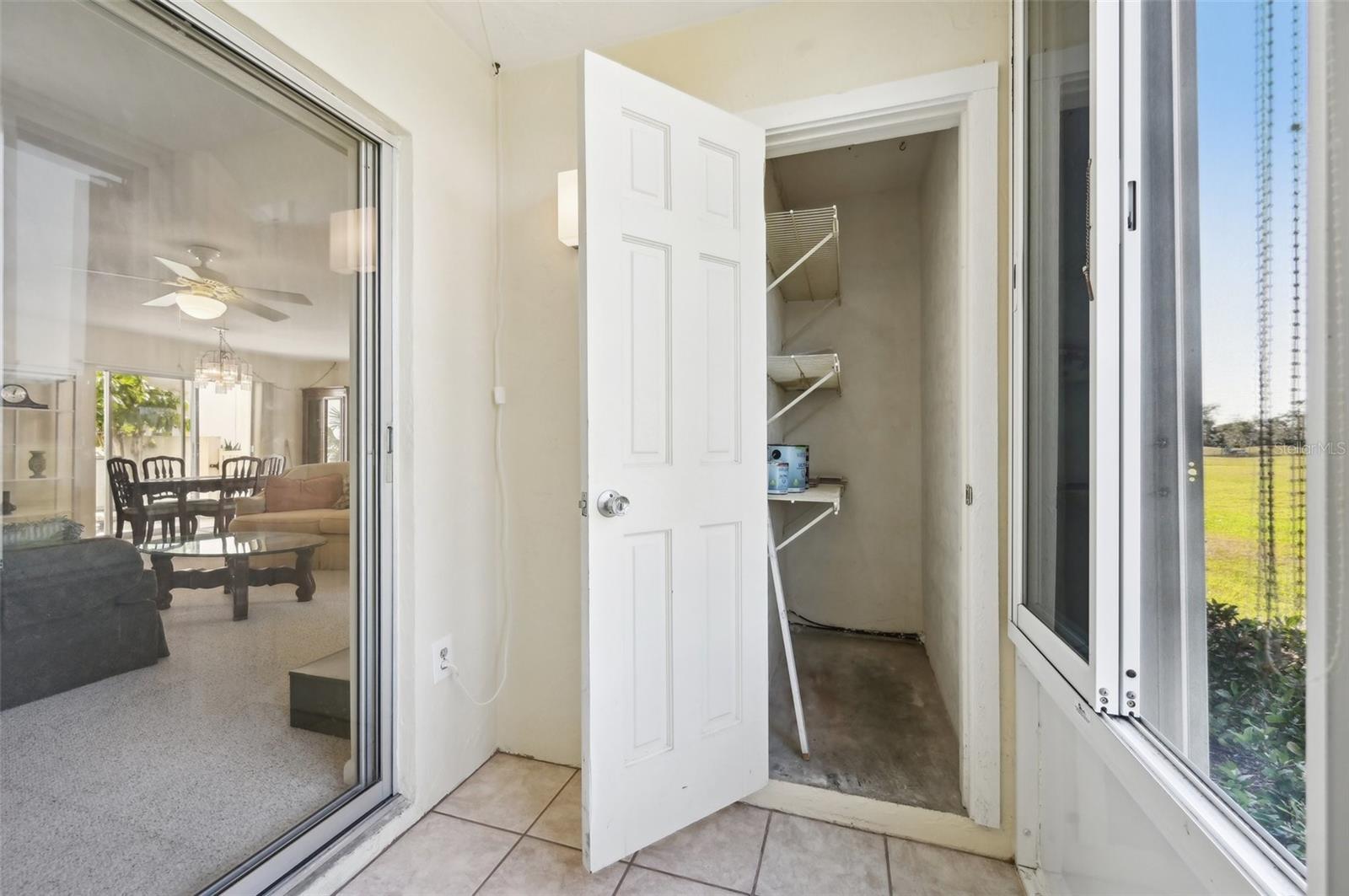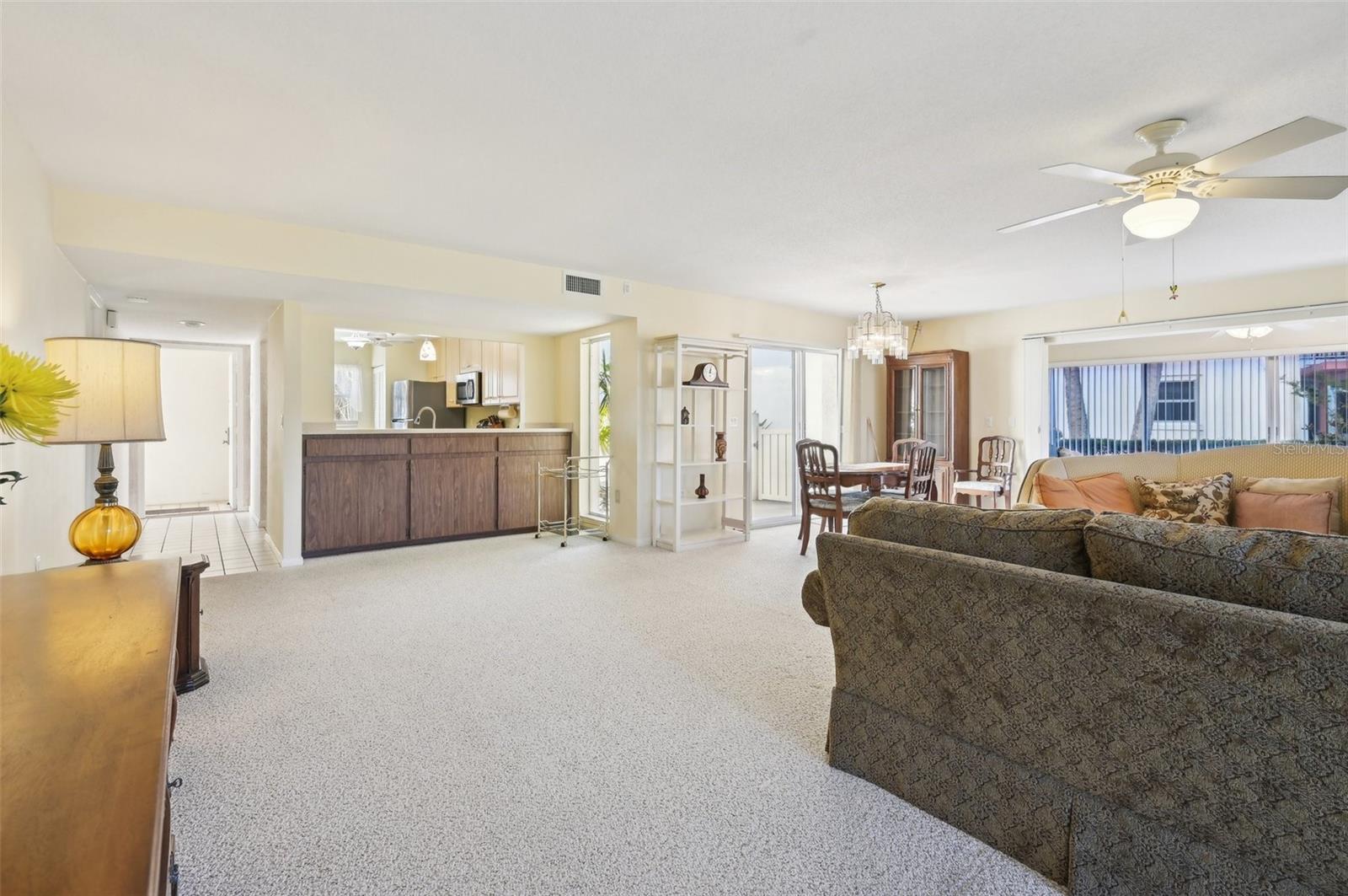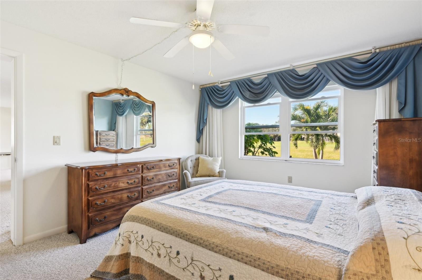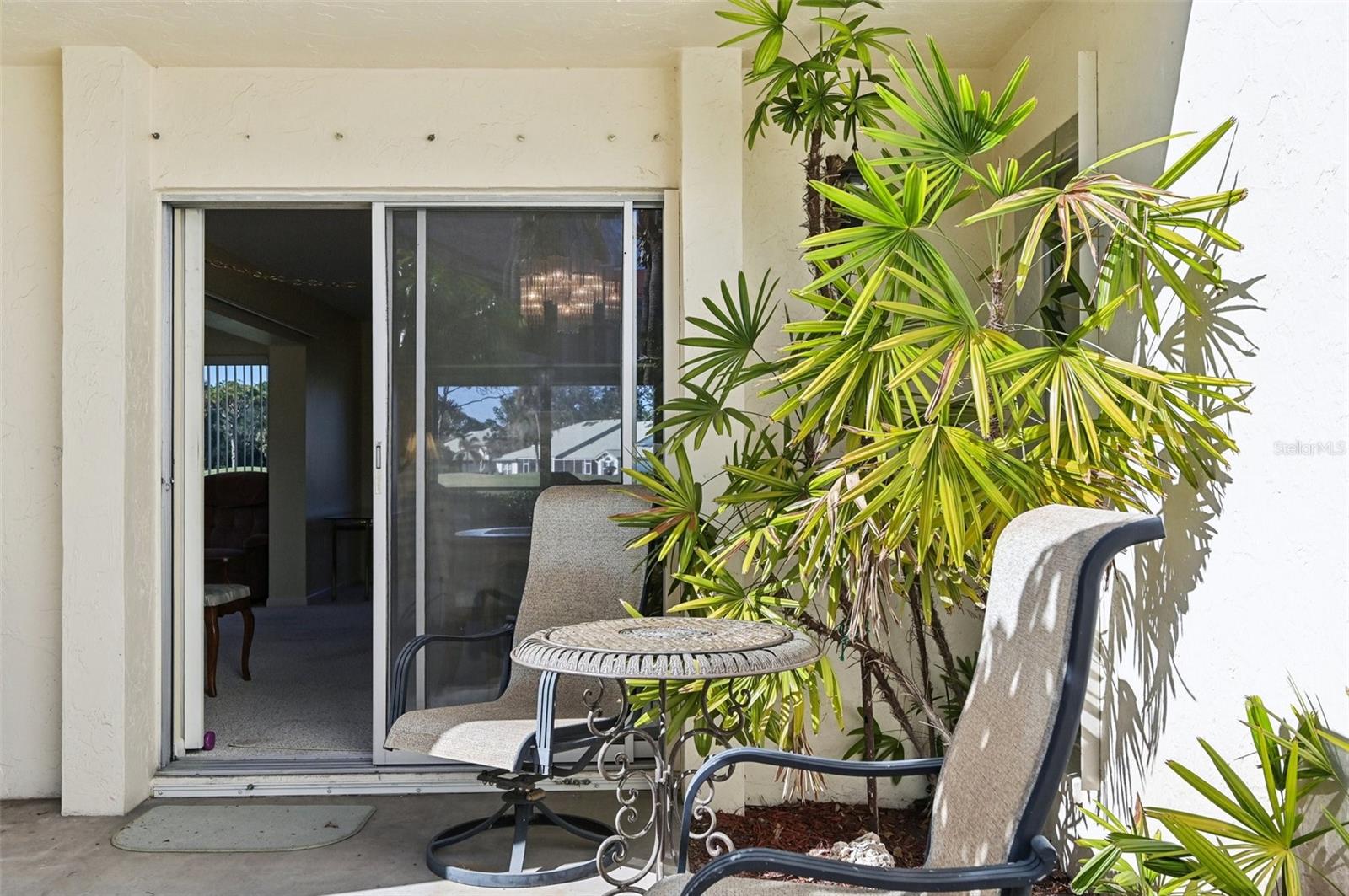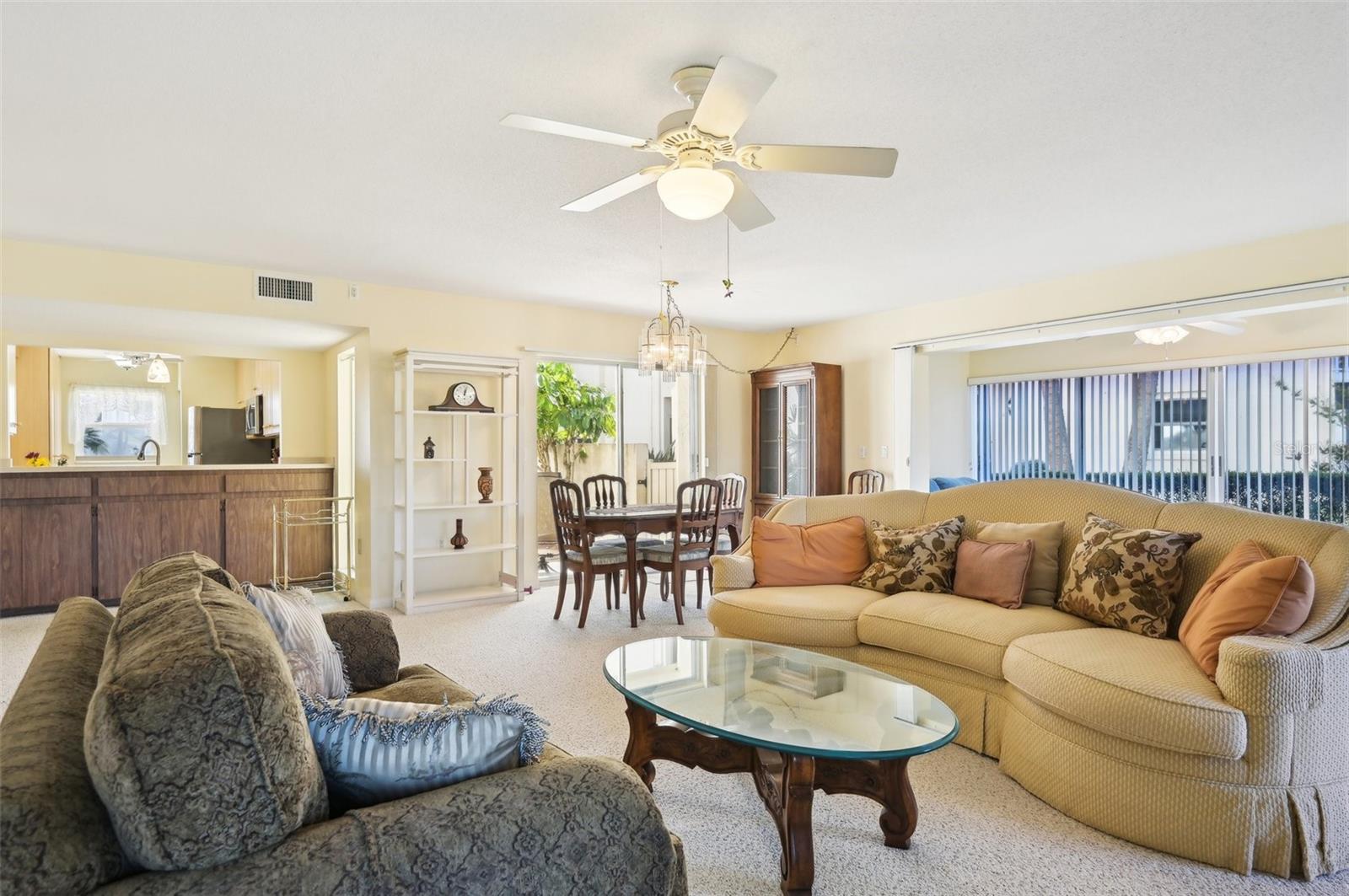 Corner units like this rarely become available! This spacious 2-bedroom, 2-bathroom condo is one of the largest floor plans in Capri West, offering incredible views of the 9th hole of Capri Isles Golf Club. Step into the large kitchen, featuring custom cabinets for extra storage and newer appliances. Both bedrooms have walk-in closets, with the primary suite boasting an ensuite bathroom with walk-in shower for added privacy. The expansive living room, complete with a cozy fireplace, flows seamlessly into a versatile sitting area with accordion doors—perfect for hosting extra guests or creating a quiet reading nook. Another additional space off of the living room offers a perfect spot for an office or den. Enjoy breathtaking sunsets and wildlife from the enclosed lanai overlooking the golf course or relax on the outdoor terrace just off the dining area. There’s no shortage of storage options, with a spacious closet on the lanai and another conveniently located just outside the front door. With hurricane-impact windows, shutters, a newer A/C, and water heater, this home is as practical as it is charming. Capri West offers great amenities, including two pools (one heated), a clubhouse with a vibrant social scene, and golf-cart-friendly streets. The Capri Isles Golf Course, complete with a pro shop and restaurant, is just a short stroll away. Located minutes from downtown Venice, stunning beaches, Wellen Park, and I-75, this condo combines the best of convenience and leisure. Don't miss your chance to call this one-of-a-kind condo home—schedule your private showing today!