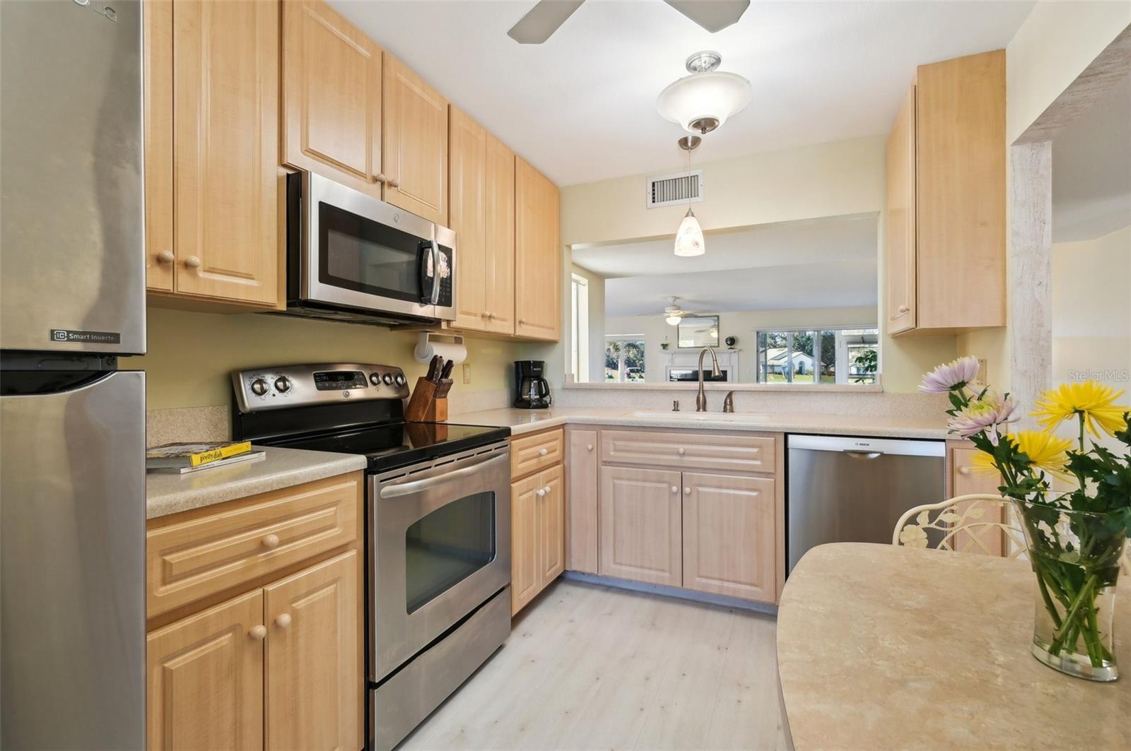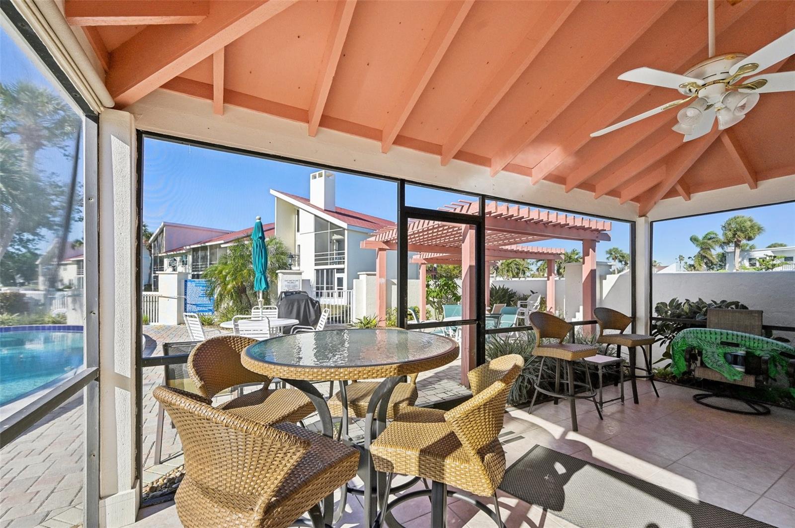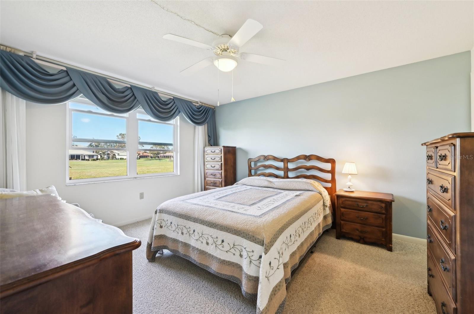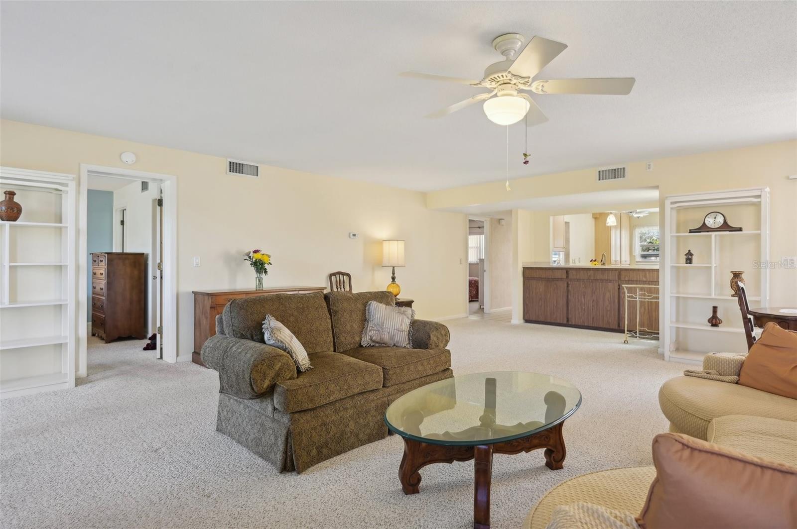 Corner units like this rarely become available! This spacious 2-bedroom, 2-bathroom condo is one of the largest floor plans in Capri West, offering incredible views of the 9th hole of Capri Isles Golf Club. Step into the large kitchen, featuring custom cabinets for extra storage and newer appliances. Both bedrooms have walk-in closets, with the primary suite boasting an ensuite bathroom with walk-in shower for added privacy. The expansive living room, complete with a cozy fireplace, flows seamlessly into a versatile sitting area with accordion doors—perfect for hosting extra guests or creating a quiet reading nook. Another additional space off of the living room offers a perfect spot for an office or den. Enjoy breathtaking sunsets and wildlife from the enclosed lanai overlooking the golf course or relax on the outdoor terrace just off the dining area. There’s no shortage of storage options, with a spacious closet on the lanai and another conveniently located just outside the front door. With hurricane-impact windows, shutters, a newer A/C, and water heater, this home is as practical as it is charming. Capri West offers great amenities, including two pools (one heated), a clubhouse with a vibrant social scene, and golf-cart-friendly streets. The Capri Isles Golf Course, complete with a pro shop and restaurant, is just a short stroll away. Located minutes from downtown Venice, stunning beaches, Wellen Park, and I-75, this condo combines the best of convenience and leisure. Don't miss your chance to call this one-of-a-kind condo home—schedule your private showing today!