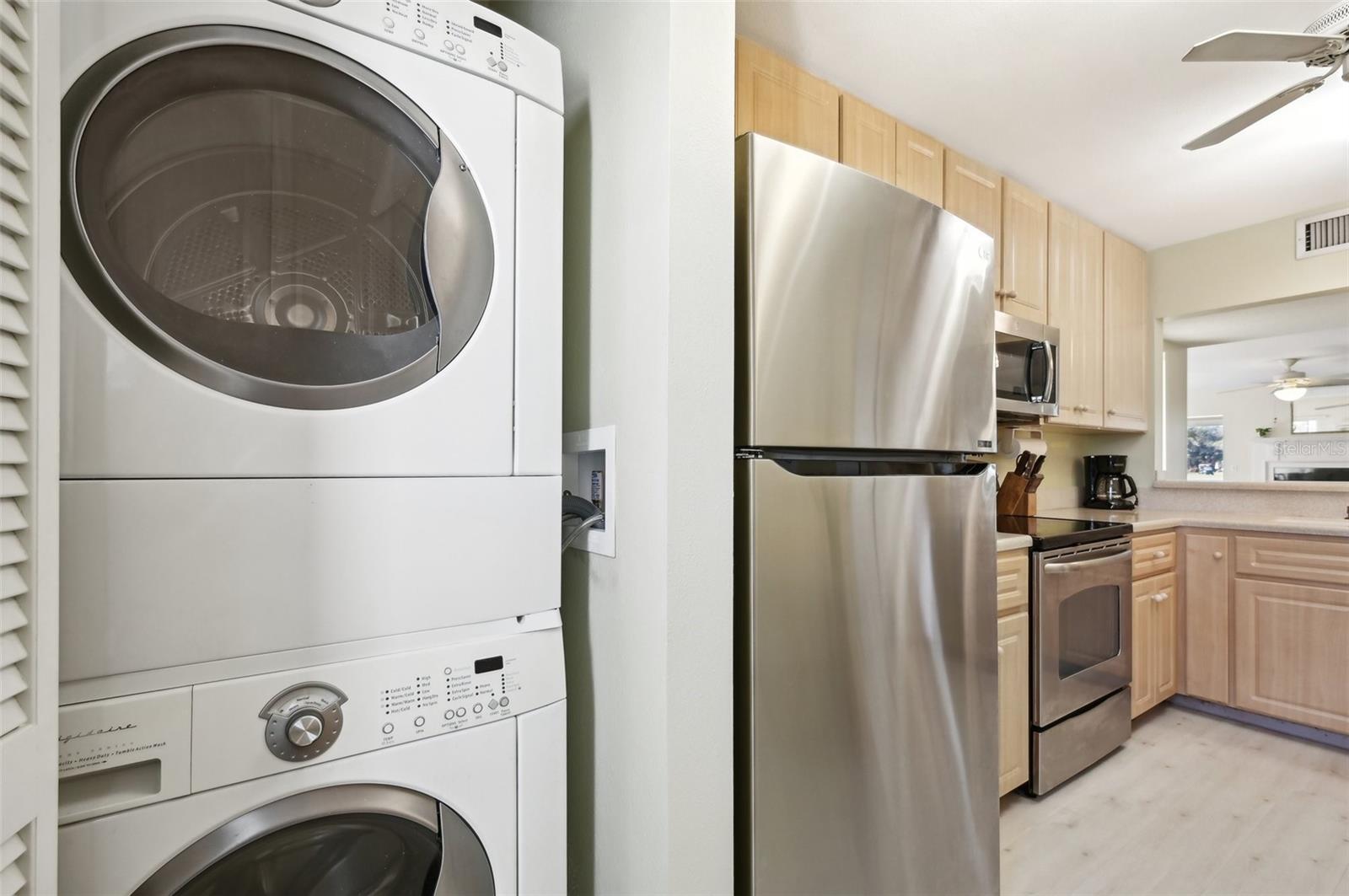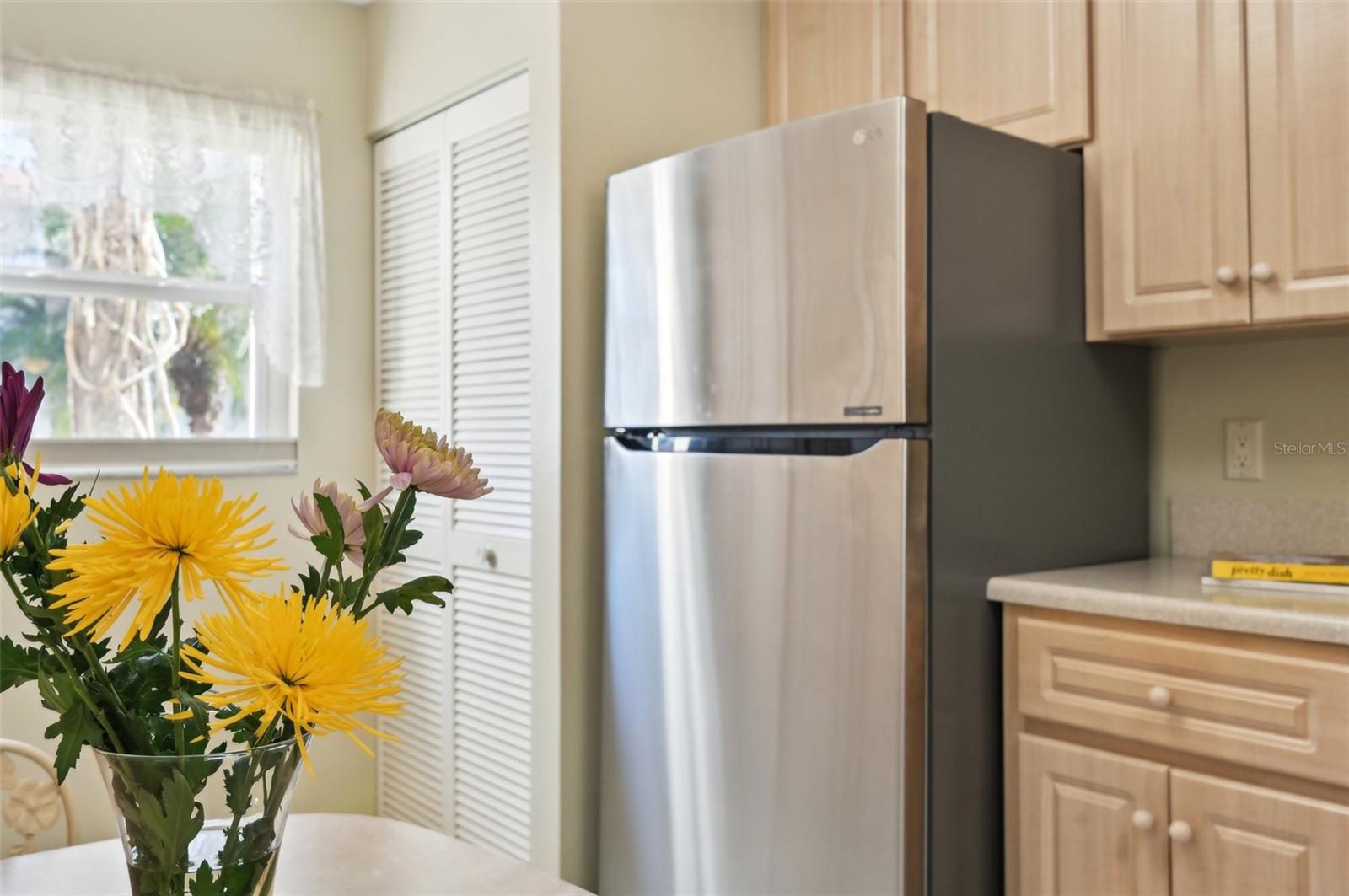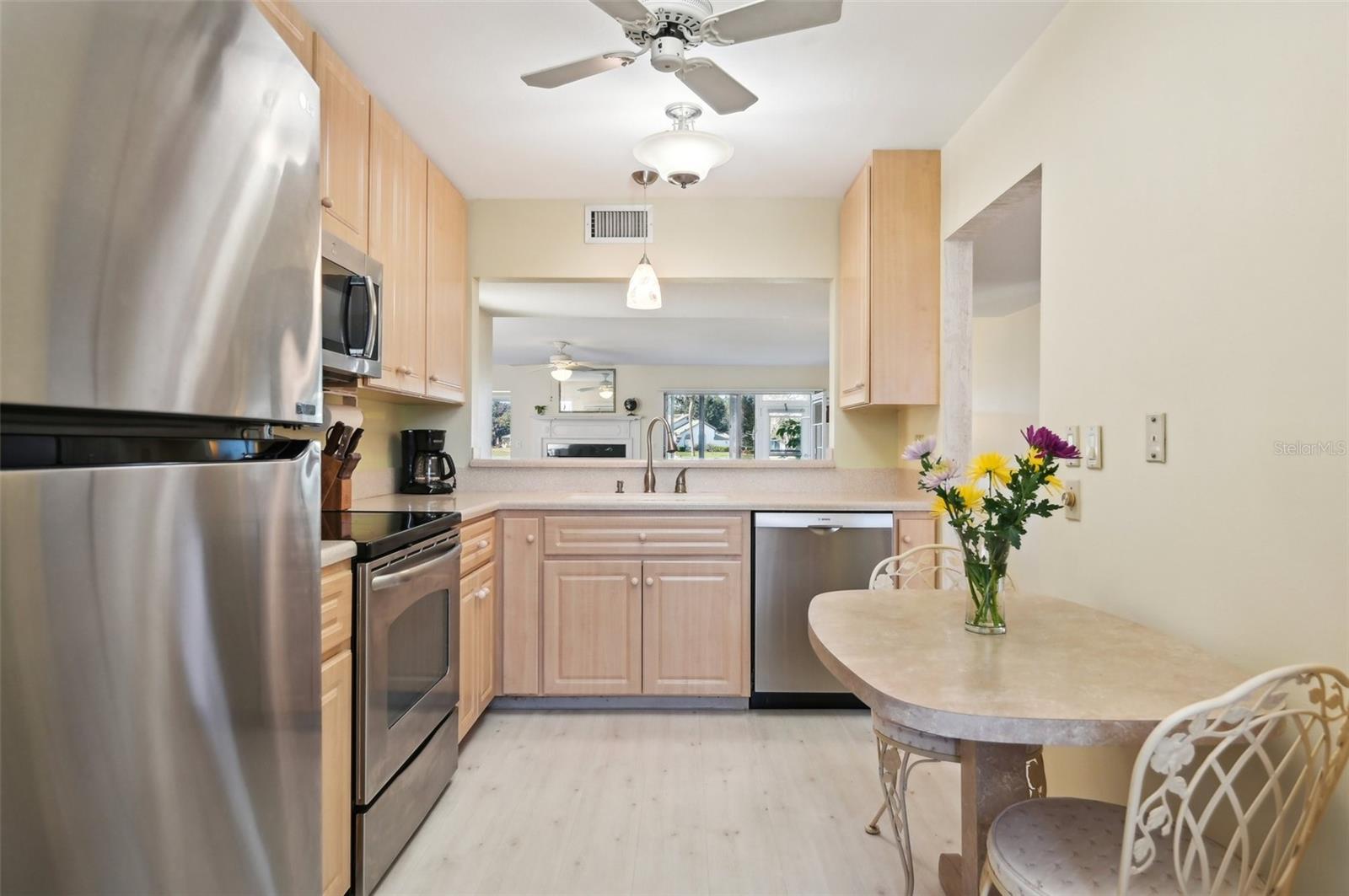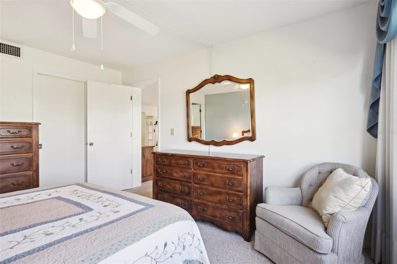 Corner units like this rarely become available! This spacious 2-bedroom, 2-bathroom condo is one of the largest floor plans in Capri West, offering incredible views of the 9th hole of Capri Isles Golf Club. Step into the large kitchen, featuring custom cabinets for extra storage and newer appliances. Both bedrooms have walk-in closets, with the primary suite boasting an ensuite bathroom with walk-in shower for added privacy. The expansive living room, complete with a cozy fireplace, flows seamlessly into a versatile sitting area with accordion doors—perfect for hosting extra guests or creating a quiet reading nook. Another additional space off of the living room offers a perfect spot for an office or den. Enjoy breathtaking sunsets and wildlife from the enclosed lanai overlooking the golf course or relax on the outdoor terrace just off the dining area. There’s no shortage of storage options, with a spacious closet on the lanai and another conveniently located just outside the front door. With hurricane-impact windows, shutters, a newer A/C, and water heater, this home is as practical as it is charming. Capri West offers great amenities, including two pools (one heated), a clubhouse with a vibrant social scene, and golf-cart-friendly streets. The Capri Isles Golf Course, complete with a pro shop and restaurant, is just a short stroll away. Located minutes from downtown Venice, stunning beaches, Wellen Park, and I-75, this condo combines the best of convenience and leisure. Don't miss your chance to call this one-of-a-kind condo home—schedule your private showing today!