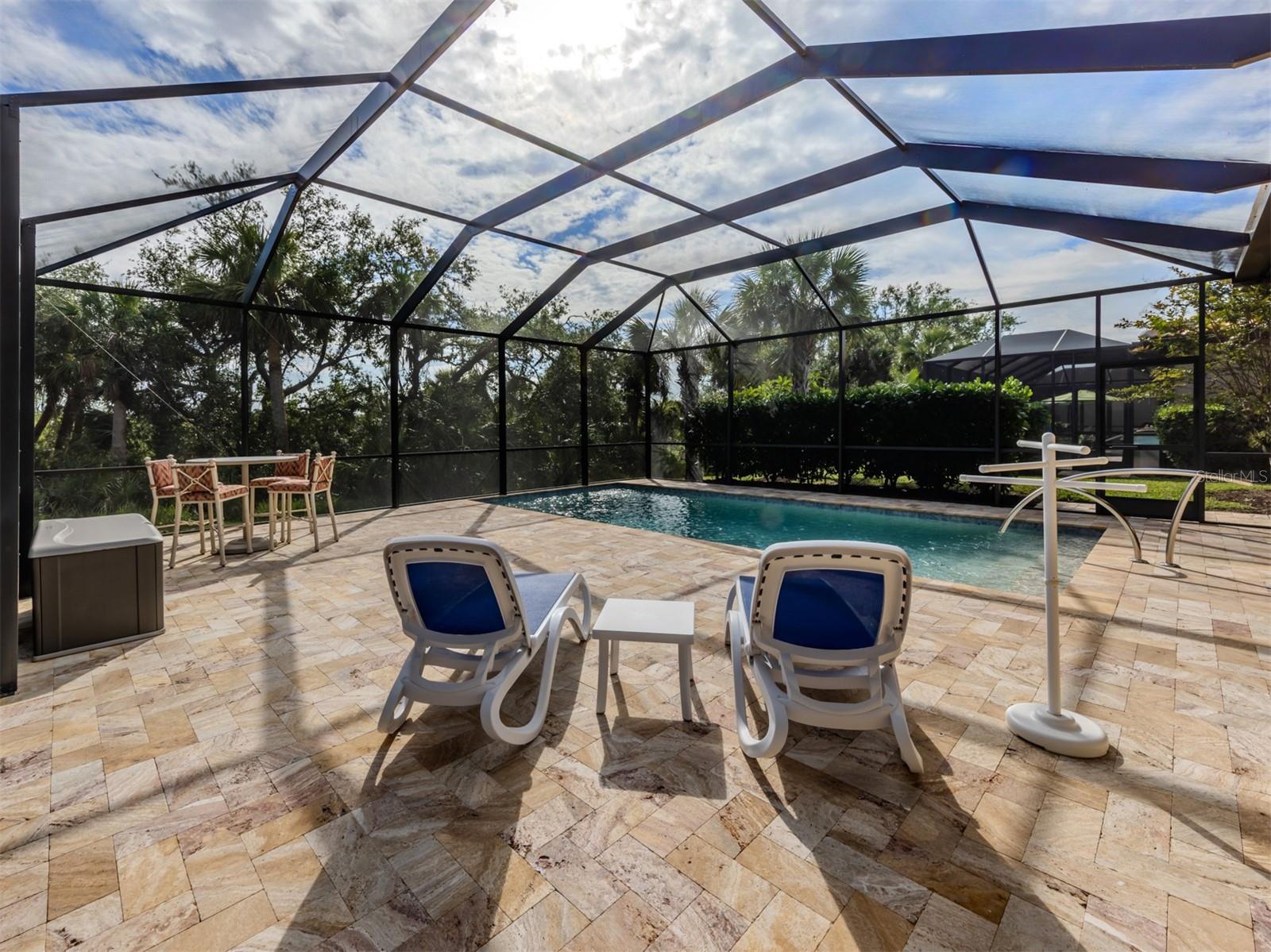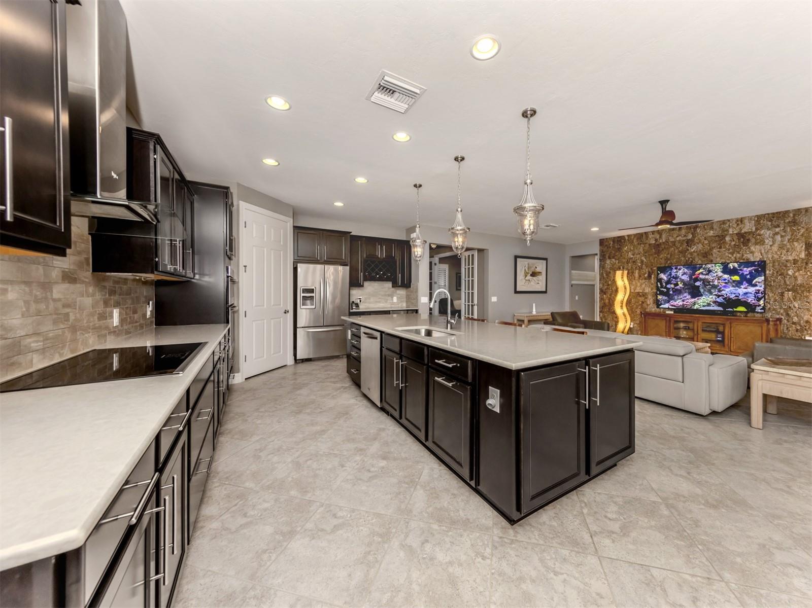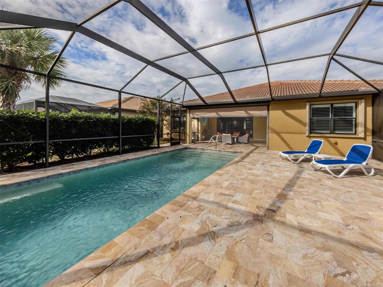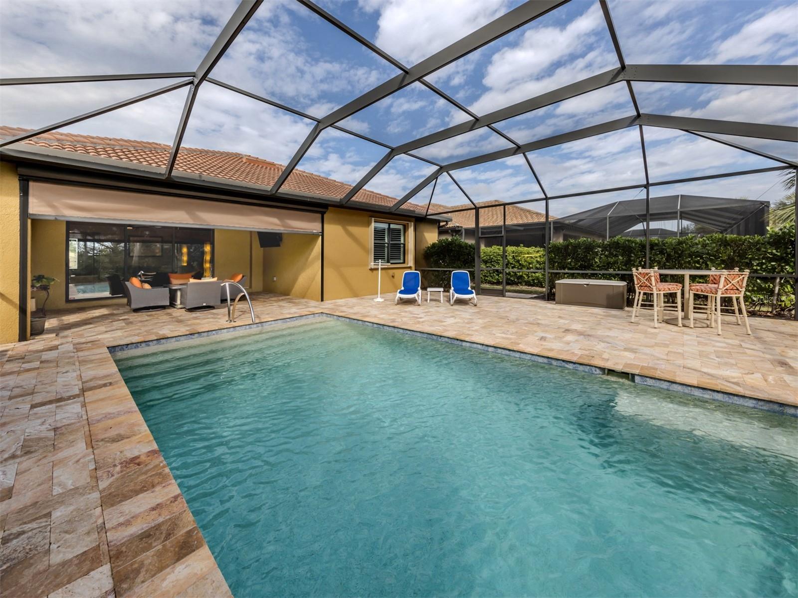 Motivated seller! Welcome to your dream home in IslandWalk, Venice Florida. Boasting an expansive 2516 sf of living space. The 3 zone, 17 SERR variable speed HVAC Pinnacle Estate model is not just a residence- it's a statement of upscale living with engineered hardwood floors and porcelain tiles. As you step inside, the southern pine ceiling in the entry hall invites you into the world where every detail is crafted for harmony and function. The open floor plan cascades into the gathering room adorned with a custom cork wall, perfect for entertaining or cozy family evenings. The home is adorned with custom plantation shutters throughout and is illuminated by recessed dimmer controlled lighting and remote controlled ceiling fans, setting the mood for every occasion. The kitchen is outfitted with stainless steel appliances, pristine quartz countertops and a layout that makes every square inch count. Adjacent, the dining room area offers vistas of your private backyard sanctuary lending a picturesque backdrop to your culinary creations. Dive into comfort in the spacious primary bedroom suite, where privacy and peace are your nearest neighbors. This retreat features an ensuite bathroom with abundant closet space to house your wardrobe in style. Each of the additional bedrooms, one of which is an en-suite, both containing walk-in-closets with engineered hardwood floors. Step outside to the lanai where a large screen TV is mounted on the wall and travertine tiles meet an inviting in ground heated pool, with private preserve views. The home is protected by Storm Smart electric screens and Eurex storm shutters, ensuring that your paradise is protected regardless of the weather. The lanai ceiling is adorned with southern pine. Set within a 24 hour guard gated community, security and privacy are paramount, providing you peace of mind in your oasis. The 3 car garage includes overhead storage for seasonal decorations or recreational gear. Additionally, the exterior features a 22kw Generac whole home generator, including a buried 500 gal. propane tank. The home also includes 2 separate Volt low voltage systems for exterior lighting, that enhances the homes architecture after sunset and provides a visual welcome every time you drive up. Location is the icing on the cake. IslandWalk is an active lifestyle community comprising of 2 pools, a lap pool, pickle ball courts, tennis courts, bocce court, basketball court, 2 state of the art gyms, yoga studios, walking/biking trails, dog park and a community garden. The community center boasts art and craft rooms, a library, billiard tables, card rooms, and hosts concerts and comedy shows. The community also has a famers market and food trucks. Your new home is a stones throw from downtown Wellen Park's new restaurants and shopping and a new Publix super market... for those discerning buyers seeking a residence that offers both beauty ad functionality in a vibrant neighborhood...look no further.