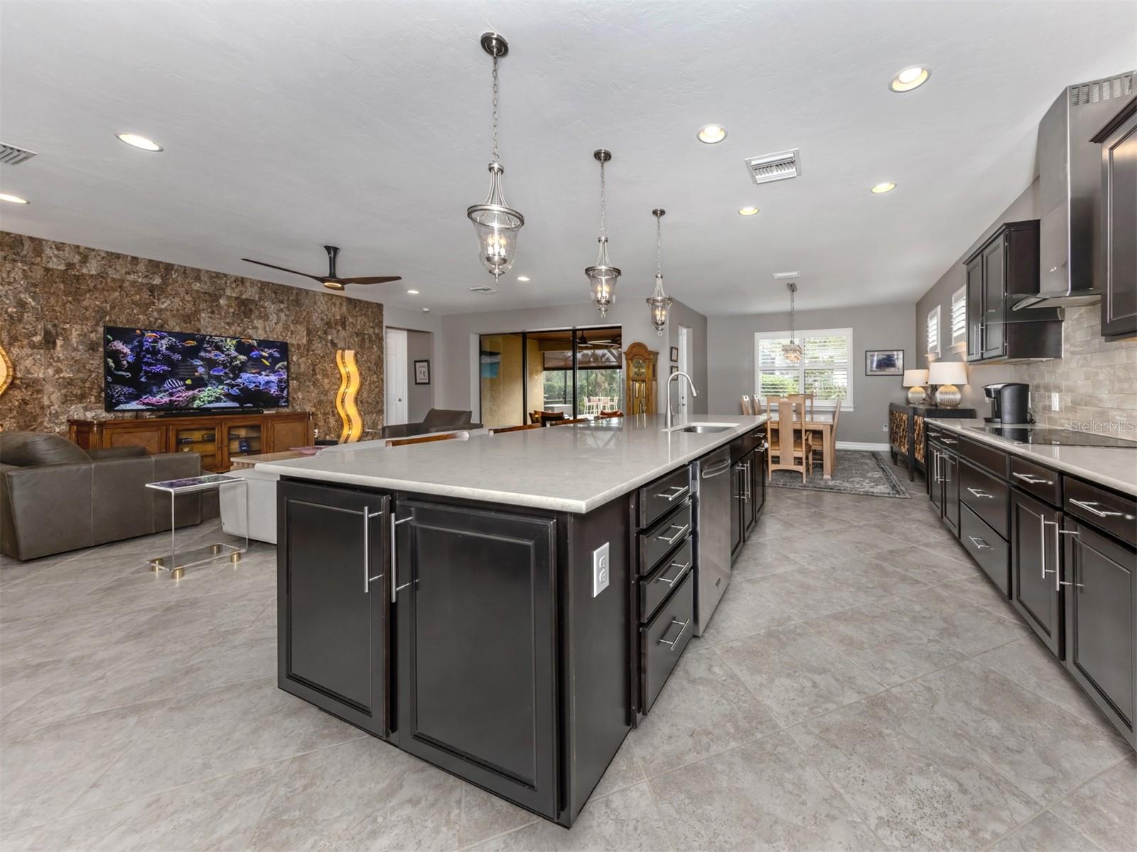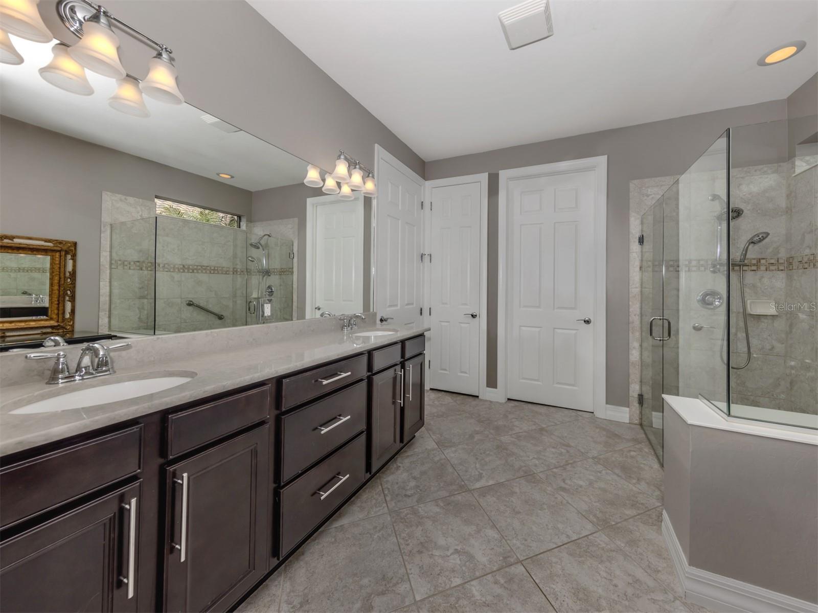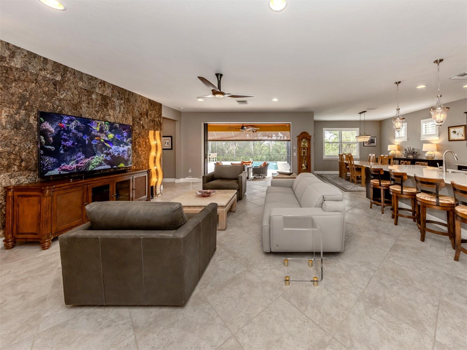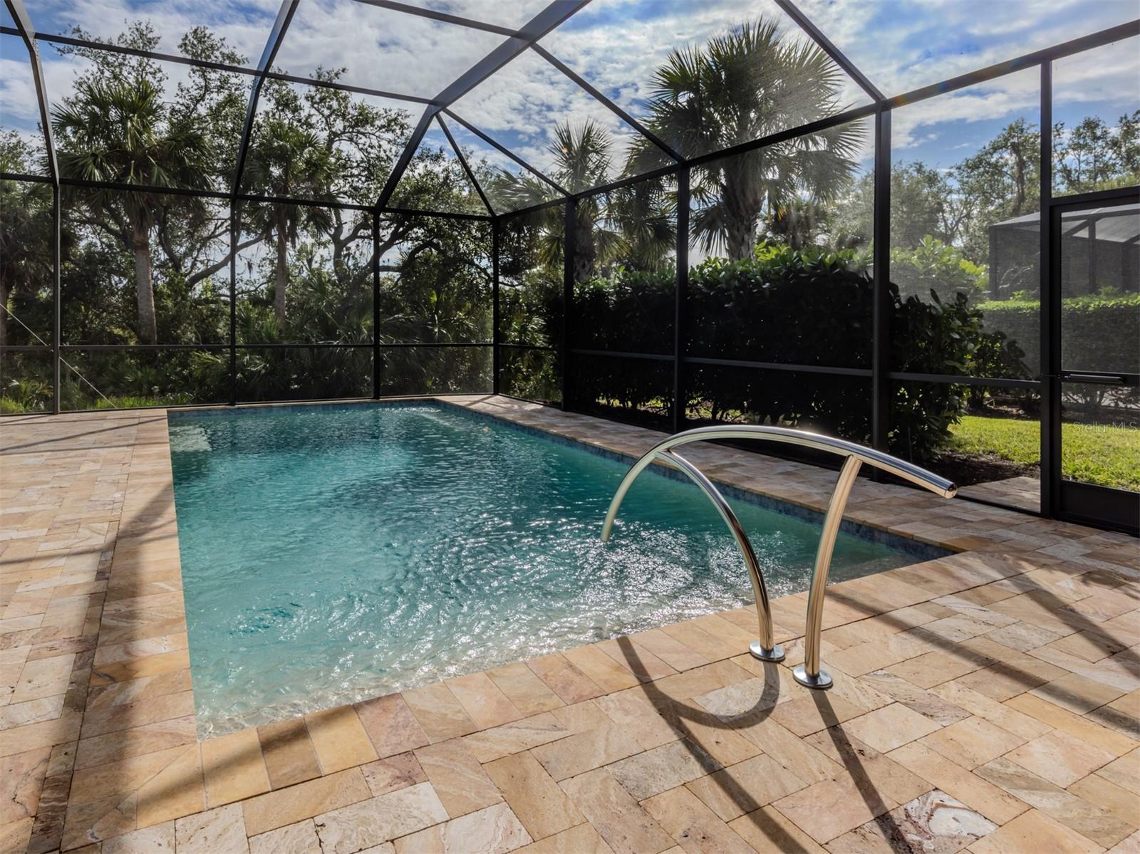 Motivated seller! Welcome to your dream home in IslandWalk, Venice Florida. Boasting an expansive 2516 sf of living space. The 3 zone, 17 SERR variable speed HVAC Pinnacle Estate model is not just a residence- it's a statement of upscale living with engineered hardwood floors and porcelain tiles. As you step inside, the southern pine ceiling in the entry hall invites you into the world where every detail is crafted for harmony and function. The open floor plan cascades into the gathering room adorned with a custom cork wall, perfect for entertaining or cozy family evenings. The home is adorned with custom plantation shutters throughout and is illuminated by recessed dimmer controlled lighting and remote controlled ceiling fans, setting the mood for every occasion. The kitchen is outfitted with stainless steel appliances, pristine quartz countertops and a layout that makes every square inch count. Adjacent, the dining room area offers vistas of your private backyard sanctuary lending a picturesque backdrop to your culinary creations. Dive into comfort in the spacious primary bedroom suite, where privacy and peace are your nearest neighbors. This retreat features an ensuite bathroom with abundant closet space to house your wardrobe in style. Each of the additional bedrooms, one of which is an en-suite, both containing walk-in-closets with engineered hardwood floors. Step outside to the lanai where a large screen TV is mounted on the wall and travertine tiles meet an inviting in ground heated pool, with private preserve views. The home is protected by Storm Smart electric screens and Eurex storm shutters, ensuring that your paradise is protected regardless of the weather. The lanai ceiling is adorned with southern pine. Set within a 24 hour guard gated community, security and privacy are paramount, providing you peace of mind in your oasis. The 3 car garage includes overhead storage for seasonal decorations or recreational gear. Additionally, the exterior features a 22kw Generac whole home generator, including a buried 500 gal. propane tank. The home also includes 2 separate Volt low voltage systems for exterior lighting, that enhances the homes architecture after sunset and provides a visual welcome every time you drive up. Location is the icing on the cake. IslandWalk is an active lifestyle community comprising of 2 pools, a lap pool, pickle ball courts, tennis courts, bocce court, basketball court, 2 state of the art gyms, yoga studios, walking/biking trails, dog park and a community garden. The community center boasts art and craft rooms, a library, billiard tables, card rooms, and hosts concerts and comedy shows. The community also has a famers market and food trucks. Your new home is a stones throw from downtown Wellen Park's new restaurants and shopping and a new Publix super market... for those discerning buyers seeking a residence that offers both beauty ad functionality in a vibrant neighborhood...look no further.