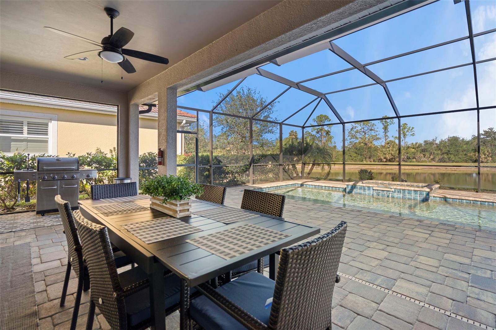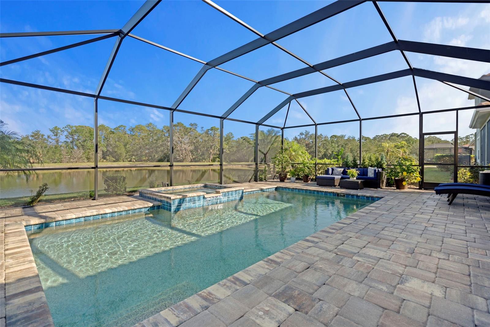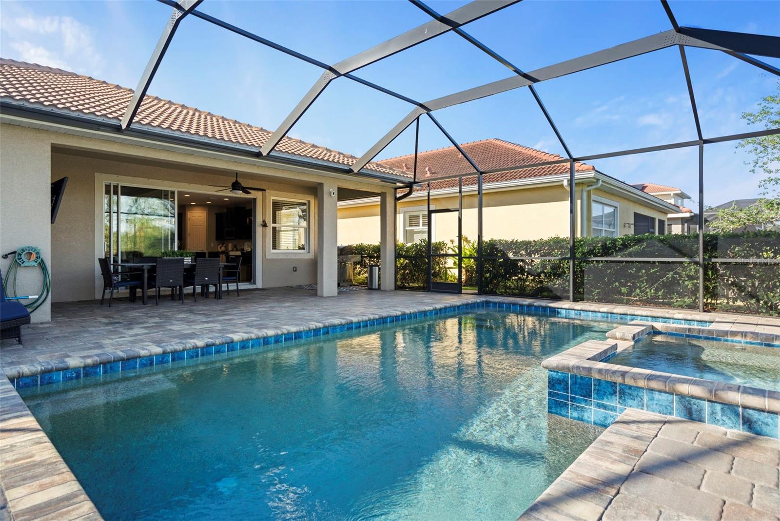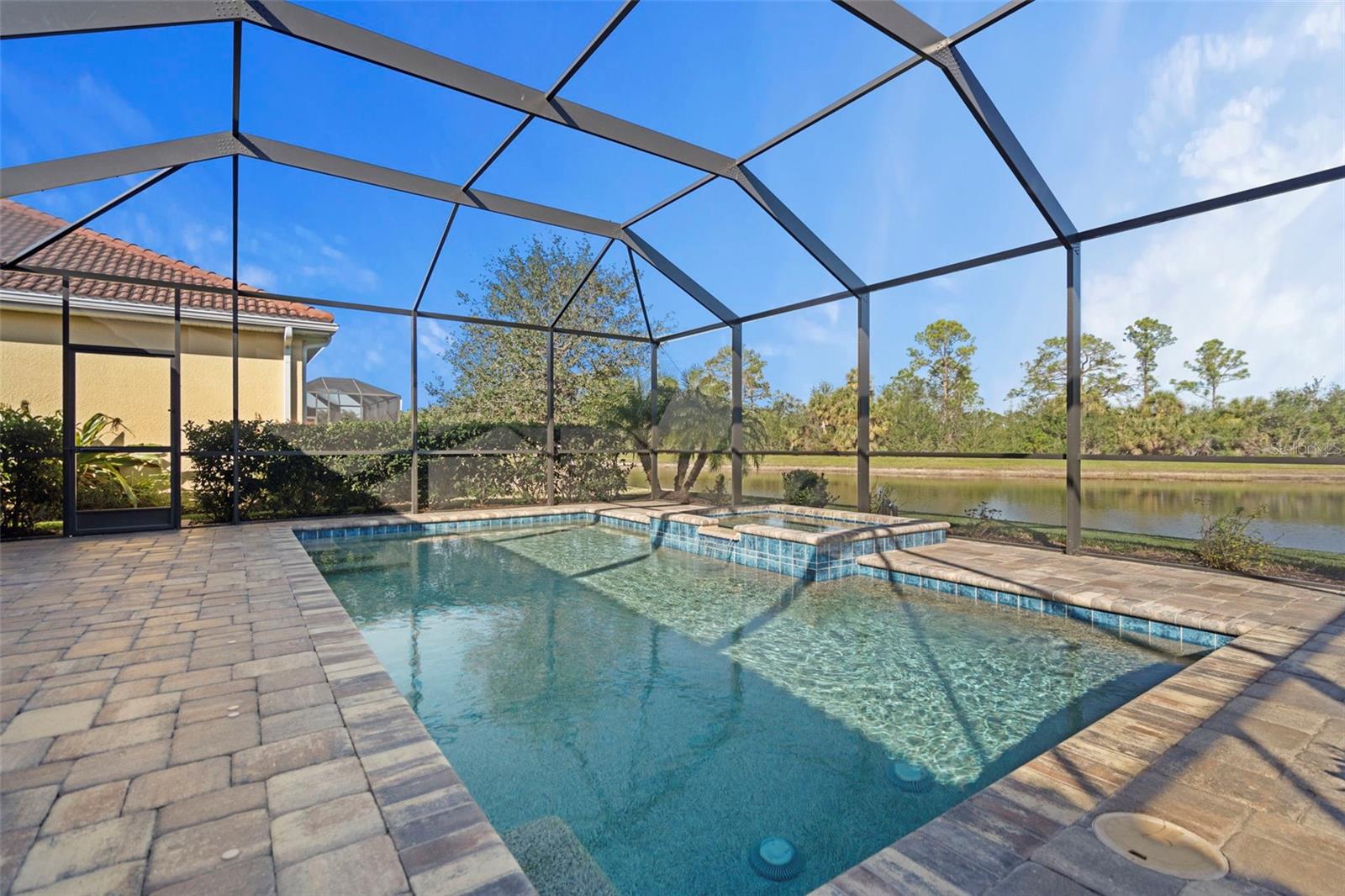 JUST REDUCED!!! Don't miss your opportunity to own your very own slice of Paradise. This private oasis offers breathtaking water and preserve views from your private lanai that includes a marvelous pool/spa combo. Located right off of Interstate 75, River Road, and another entrance off of Venice Avenue, this home is close to everything. This gorgeous, meticulously updated 3-bedroom, 2-bathroom pool home, plus a spa, is located in the highly sought-after Caribbean Village. There're no homes behind you either. It's a wooded preserve, that makes it feel even more private. This home sits in a maintenance-free community with very low HOAs, a non-flood zone, and No CDD! So, no flood insurance required if financing. This gated community includes a heated pool, fitness center, and a cute picnic area. This would make Caribbean Village, one of the most private, and desirable locations in this area. This home has three very large bedrooms with an open concept from the kitchen that leads seamlessly to the dining area, and the living room. The high ceilings make this home feel so open, large, and airy. Newly added high-end, stainless-steel appliances in the kitchen, with a spacious walk-in pantry, cabinet space, and a large island, makes the perfect space for entertaining guests. The new luxury vinyl flooring opens up the home even more. No carpet. Right off the kitchen, paradise awaits through the sliding doors, to the screened-in lanai, that offers the perfect space. The primary bedroom boasts walk-in closets. an en-suite bathroom, that includes a large garden bath, vanity with dual sinks, and a walk-in tile shower. The huge office/flex room can be used as a fourth bedroom and has beautiful French doors. All homes in Caribbean Village have tile roofs, which offers peace of knowing your roof has a more durable life span. This location is close to so many of Florida's most beautiful beaches, restaurants, and everything that Wellen Park has to offer. Don't miss out on this one. It won't last long. Call today for a private tour!