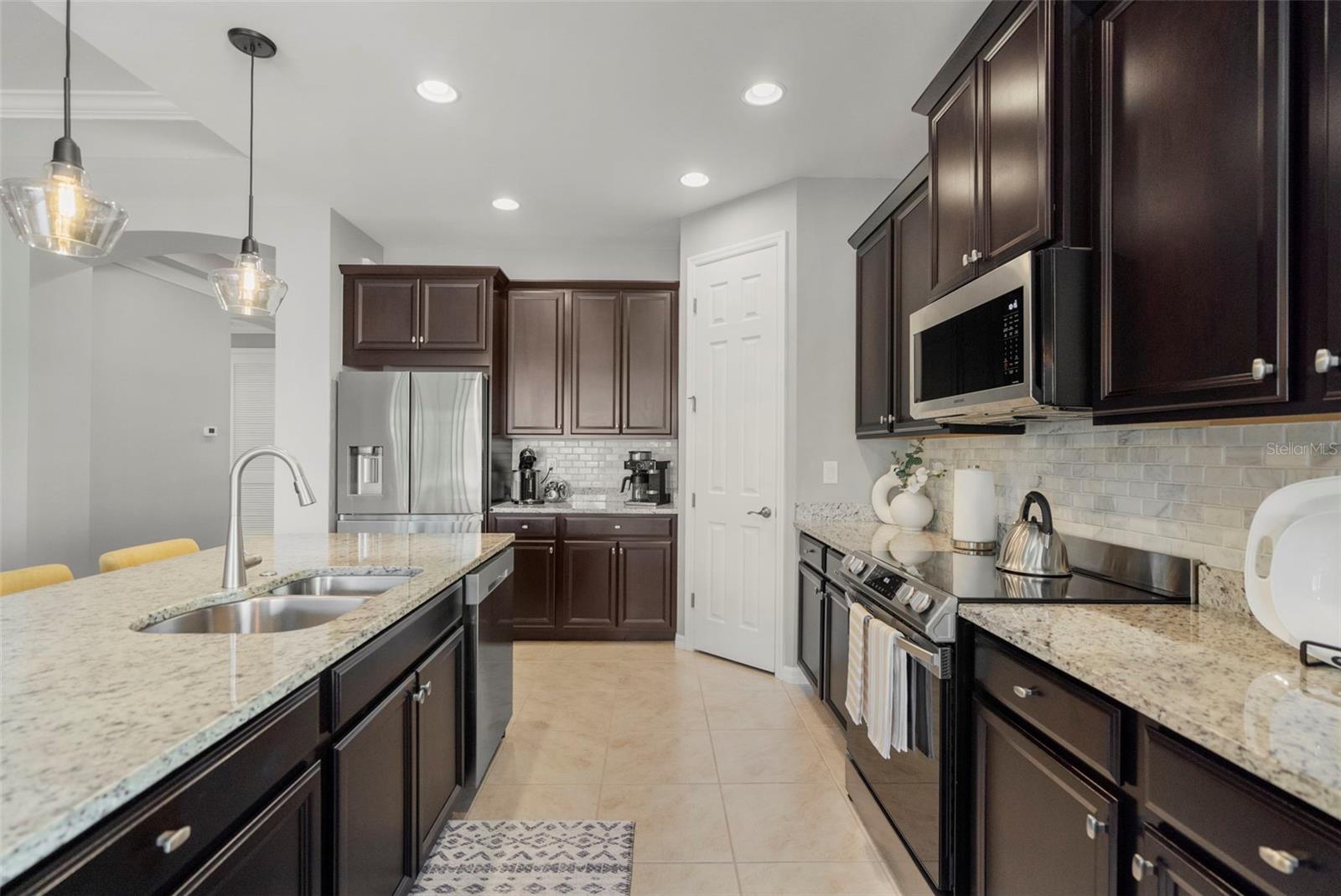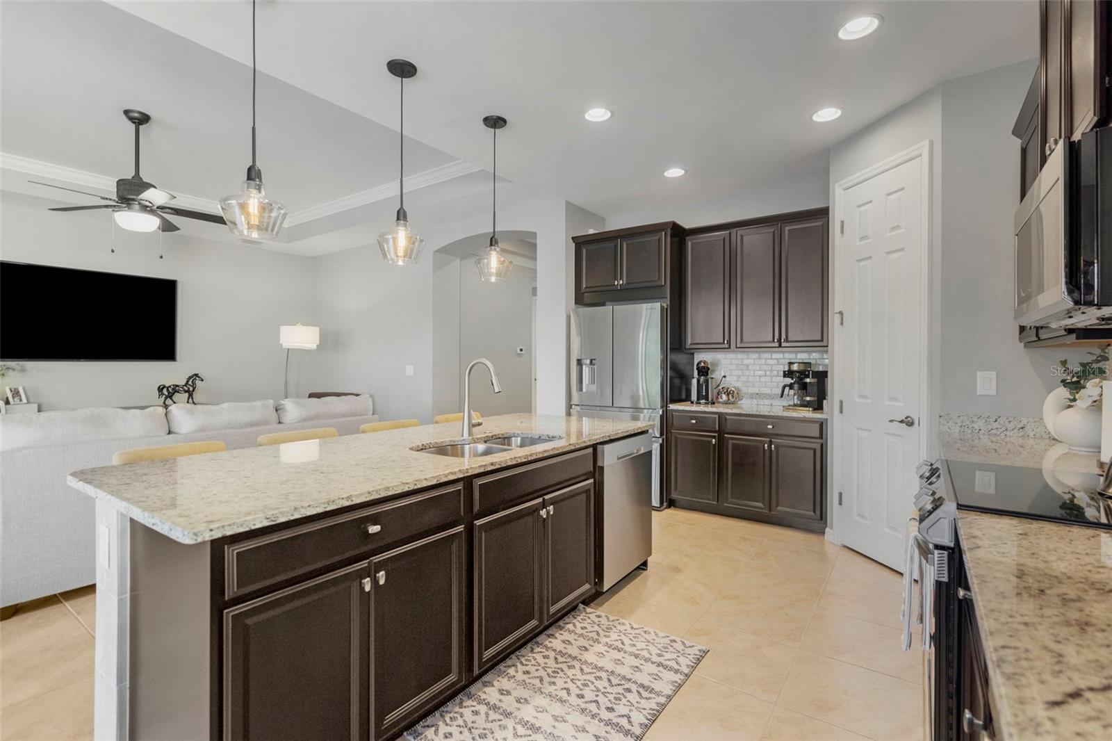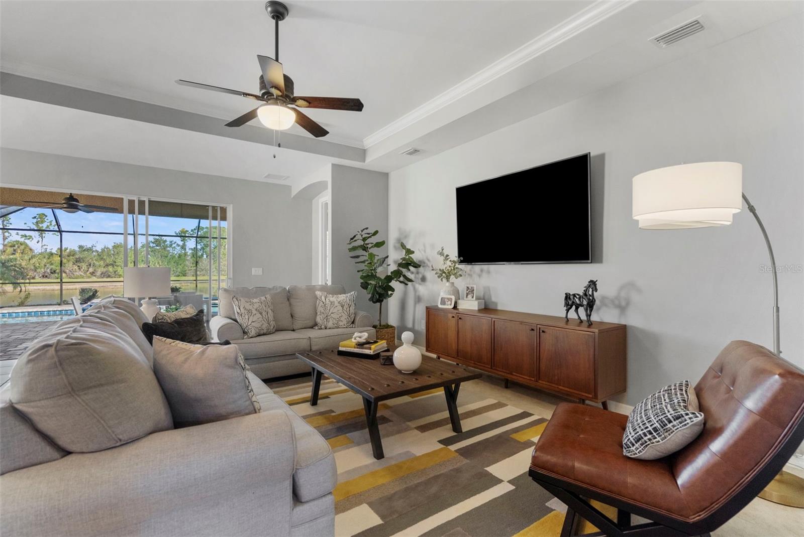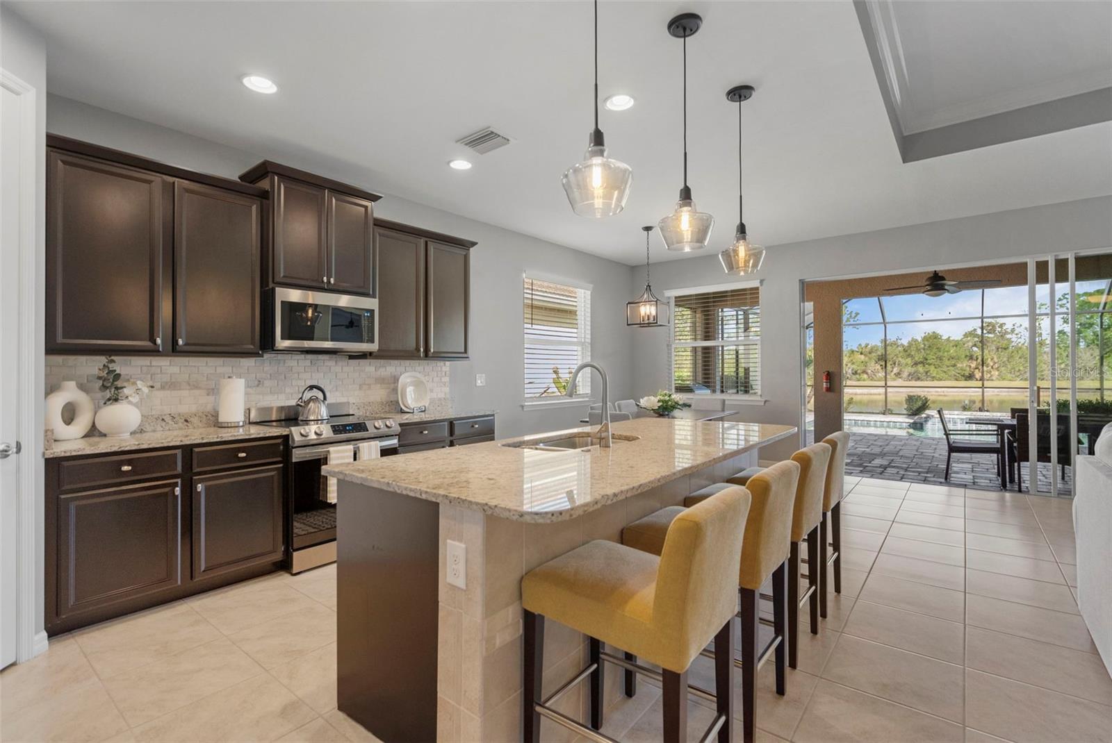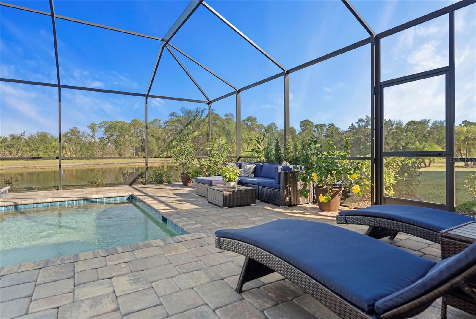 JUST REDUCED!!! Don't miss your opportunity to own your very own slice of Paradise. This private oasis offers breathtaking water and preserve views from your private lanai that includes a marvelous pool/spa combo. Located right off of Interstate 75, River Road, and another entrance off of Venice Avenue, this home is close to everything. This gorgeous, meticulously updated 3-bedroom, 2-bathroom pool home, plus a spa, is located in the highly sought-after Caribbean Village. There're no homes behind you either. It's a wooded preserve, that makes it feel even more private. This home sits in a maintenance-free community with very low HOAs, a non-flood zone, and No CDD! So, no flood insurance required if financing. This gated community includes a heated pool, fitness center, and a cute picnic area. This would make Caribbean Village, one of the most private, and desirable locations in this area. This home has three very large bedrooms with an open concept from the kitchen that leads seamlessly to the dining area, and the living room. The high ceilings make this home feel so open, large, and airy. Newly added high-end, stainless-steel appliances in the kitchen, with a spacious walk-in pantry, cabinet space, and a large island, makes the perfect space for entertaining guests. The new luxury vinyl flooring opens up the home even more. No carpet. Right off the kitchen, paradise awaits through the sliding doors, to the screened-in lanai, that offers the perfect space. The primary bedroom boasts walk-in closets. an en-suite bathroom, that includes a large garden bath, vanity with dual sinks, and a walk-in tile shower. The huge office/flex room can be used as a fourth bedroom and has beautiful French doors. All homes in Caribbean Village have tile roofs, which offers peace of knowing your roof has a more durable life span. This location is close to so many of Florida's most beautiful beaches, restaurants, and everything that Wellen Park has to offer. Don't miss out on this one. It won't last long. Call today for a private tour!