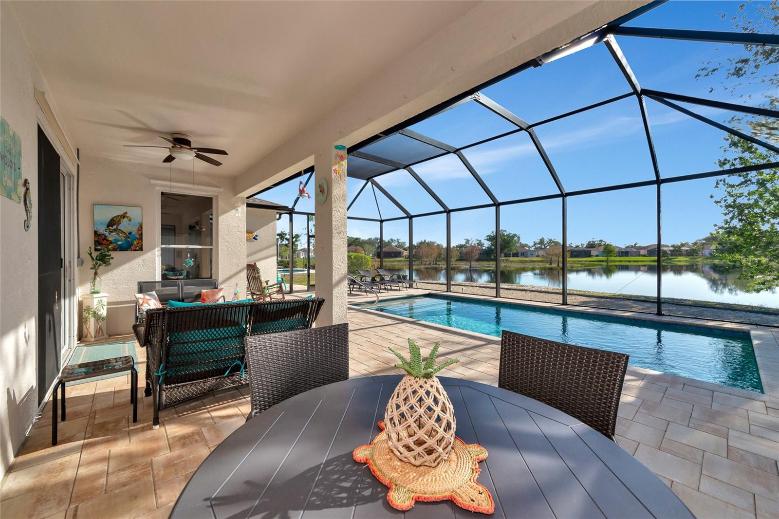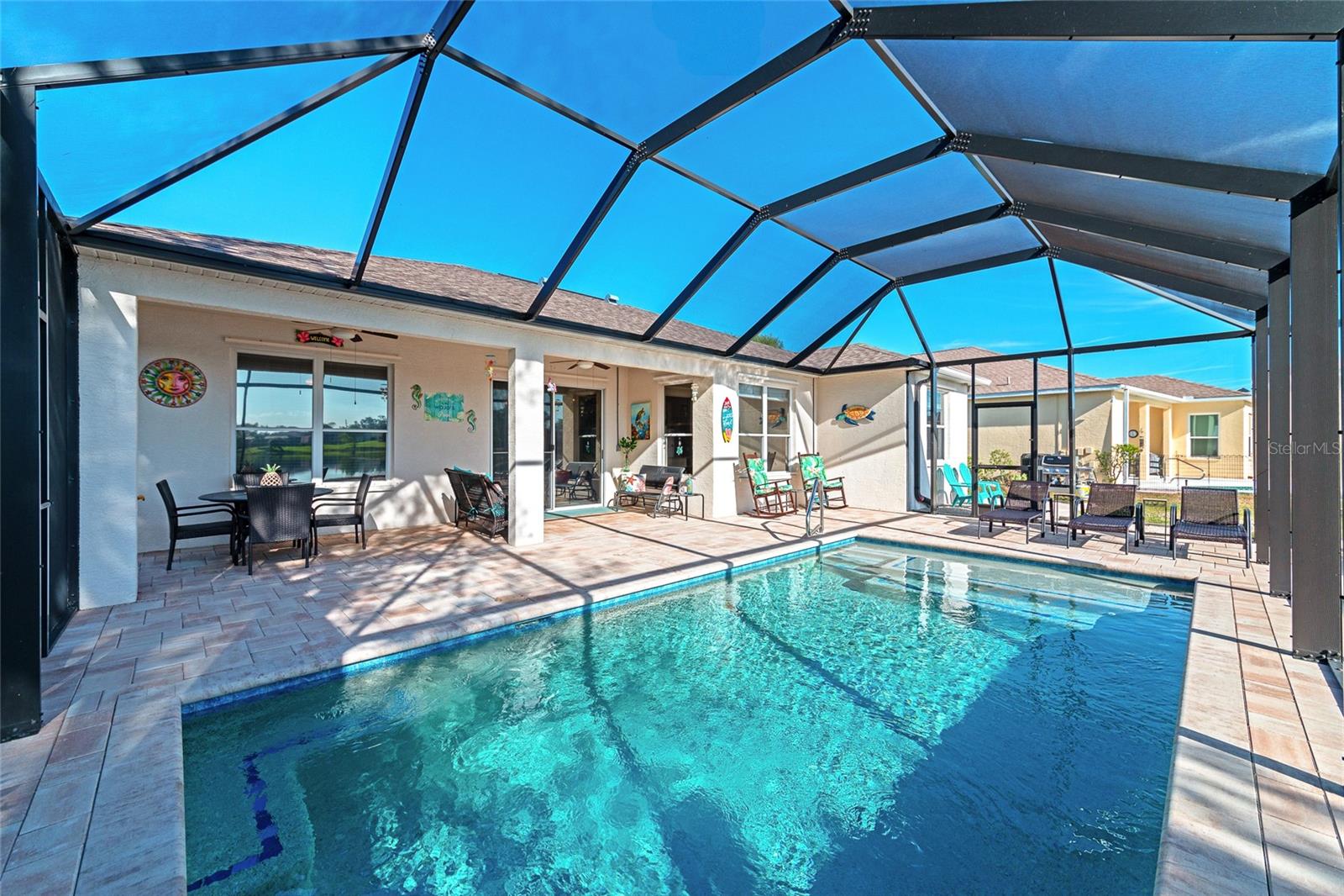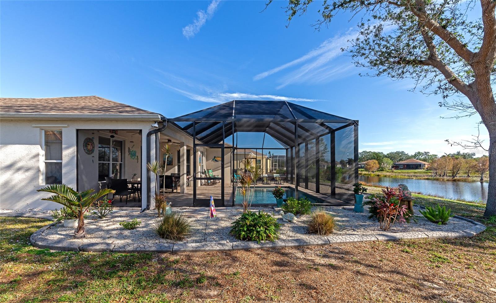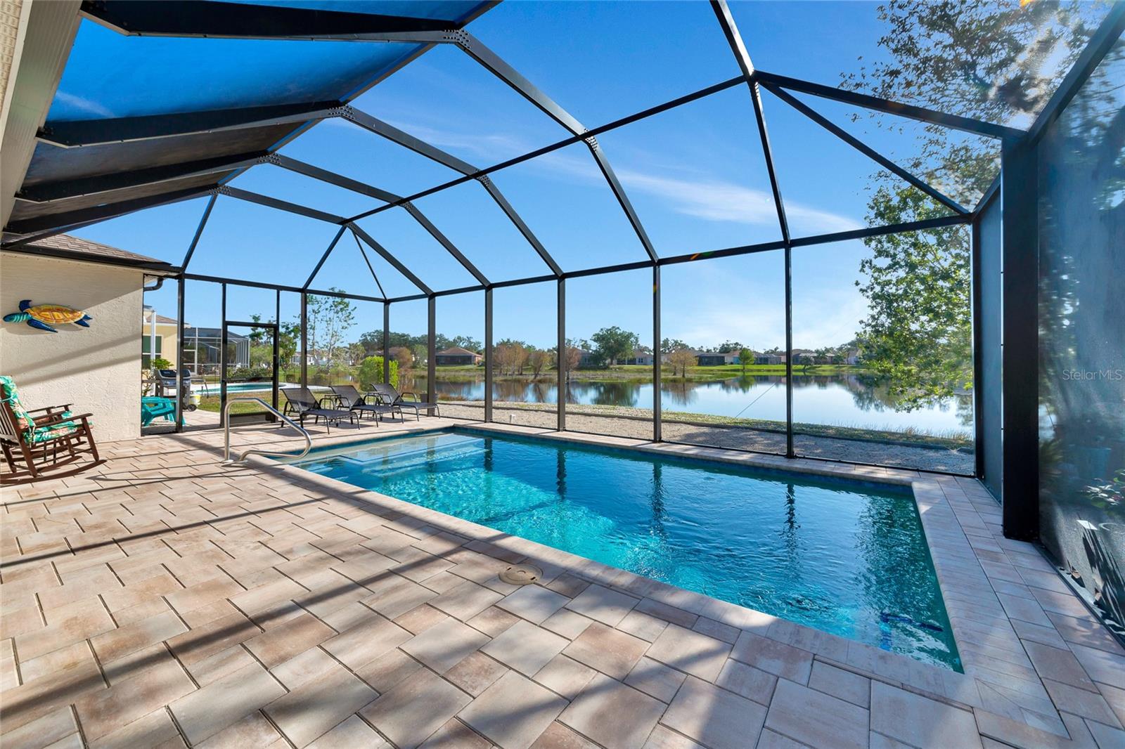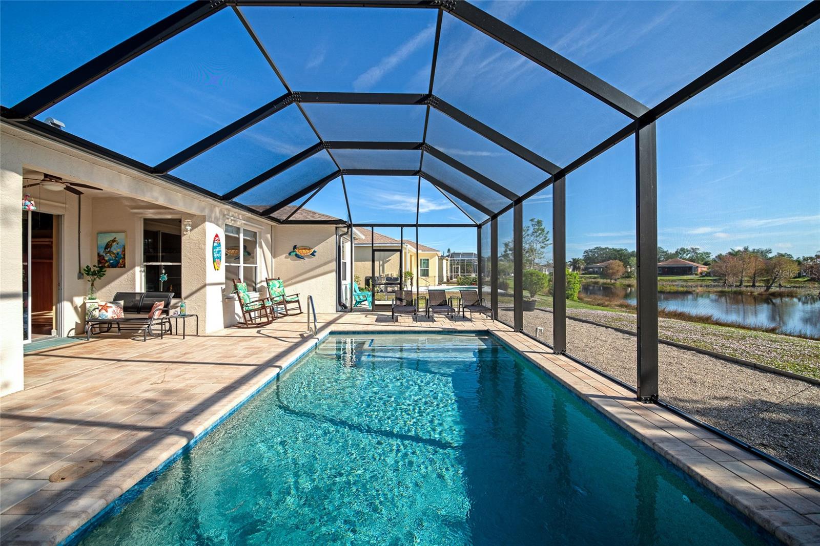 3D Matterport Virtual Tour available, click on Virtual Tour Link! This home says WOW! Once you walk through, you see the wonderful lake view and the one year old gunite pool. Truly spectacular view and plenty of room available in this extremely well maintained 3 bedroom, 2 bath home with a 7 year old roof. Welcome to your dream home, where modern upgrades and serene waterfront views come together to create the ultimate Florida lifestyle. This meticulously maintained 3-bedroom, 2-bathroom home boasts a range of stunning features, both inside and out. Step into the bright and airy open floor plan, featuring a newly painted interior with fresh updates throughout. The kitchen is a chef's delight, equipped with custom granite countertops, updated light fixtures, bamboo shades, and a ceiling fan for added comfort. The adjacent dining room and living room also showcase updated ceiling fans, perfect for keeping cool while entertaining. Relax in the spacious master suite, complete with a beautifully updated ensuite bathroom featuring new light fixtures. The guest bathroom has also been thoughtfully updated, along with fresh paint in the guest bedrooms, ensuring comfort and style for your family and visitors. Outdoor Oasis: Enjoy your private outdoor paradise with a new saltwater pool (2021) featuring a sun pad with jets, a pool heater for year-round enjoyment, and a sleek panoramic view through the upgraded pool cage with pet screen. The lanai area is perfect for lounging and soaking in the tranquil water views. The home's exterior shines with fresh landscaping, a newly painted garage door and trim, and a cozy front patio with new pavers—ideal for morning coffee or evening relaxation. Hurricane shutters provide peace of mind, while a backup AC pump ensures comfort during every season. Recent System Updates Include: New gunite pool and cage (2022) New roof and underlayment (2017) Trane A/C system (2018) Home water softening system (2018) Water heater (2017) New plumbing system (2018) Perfectly situated in a quiet neighborhood, this home offers the best of Florida living with close proximity to beaches, shopping, and dining. Whether you're looking for a vacation retreat or your forever home, this property checks all the boxes. Schedule your private tour today and experience this gem for yourself!