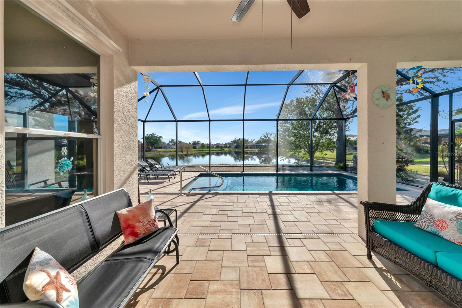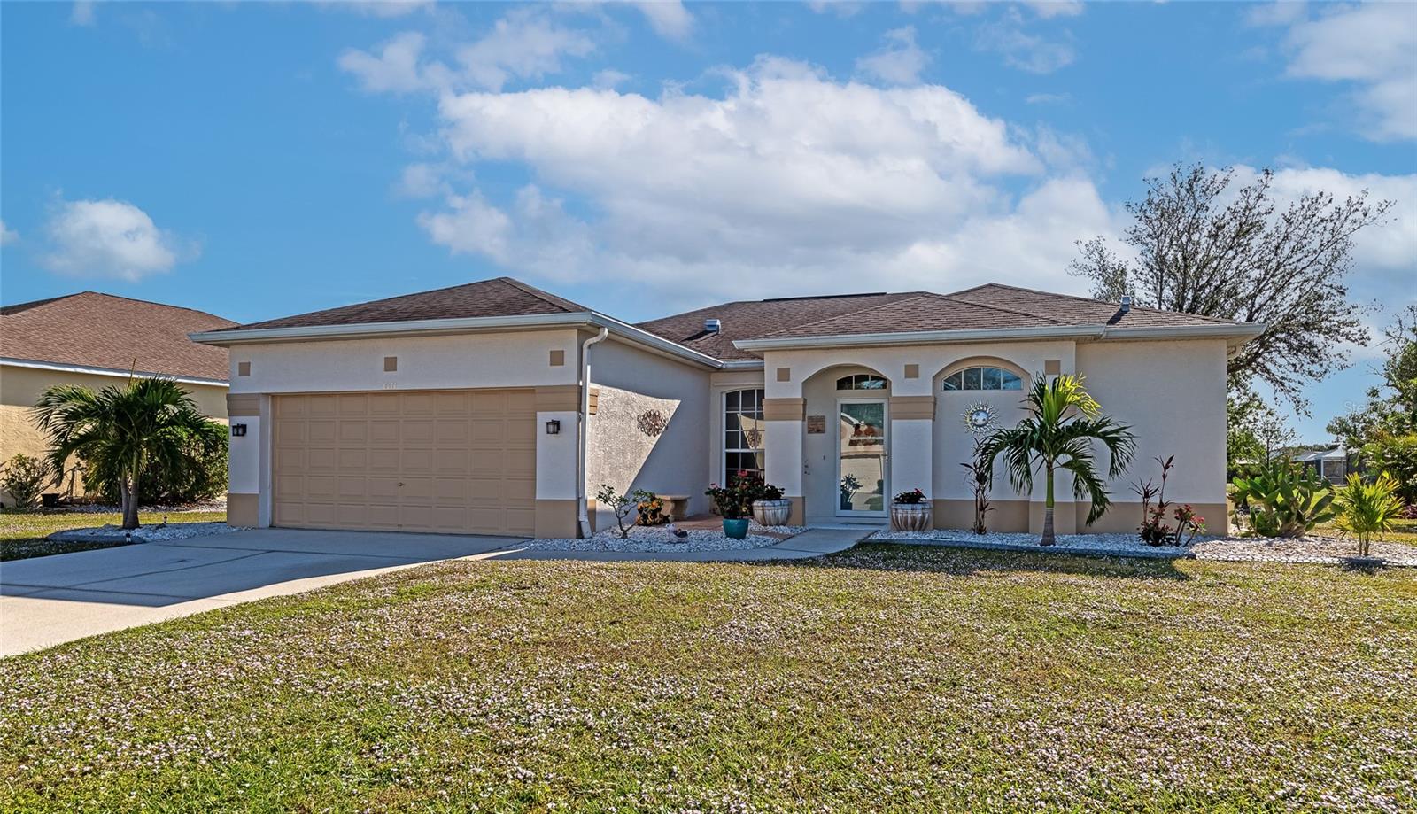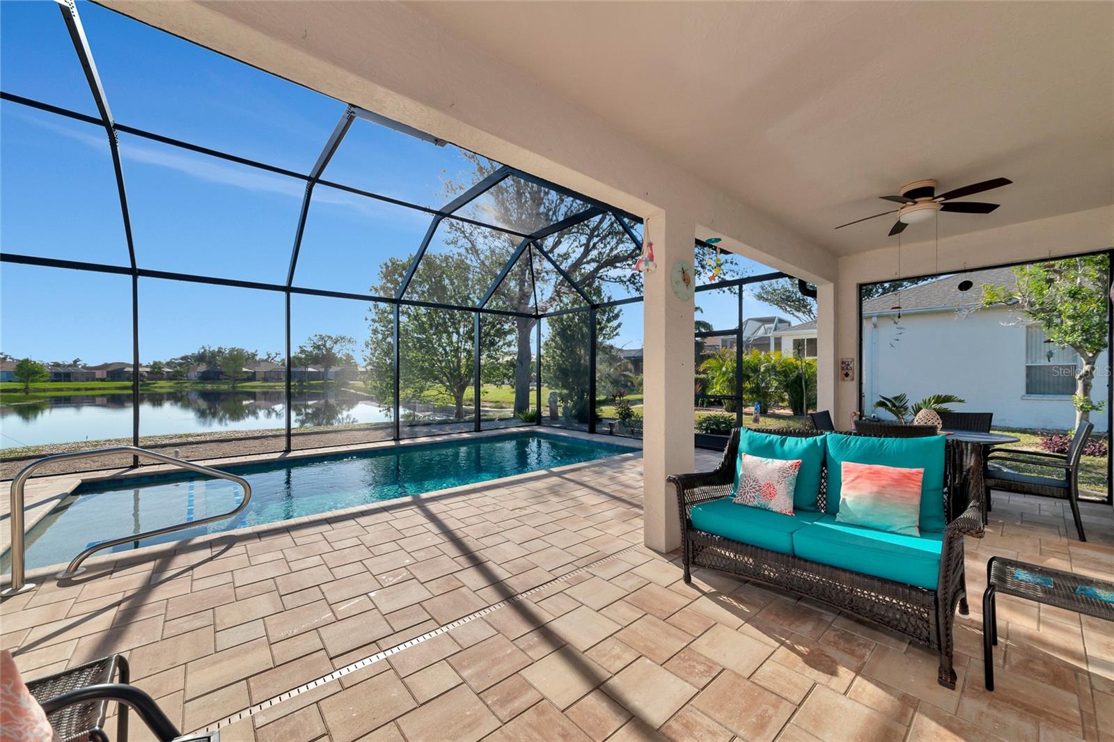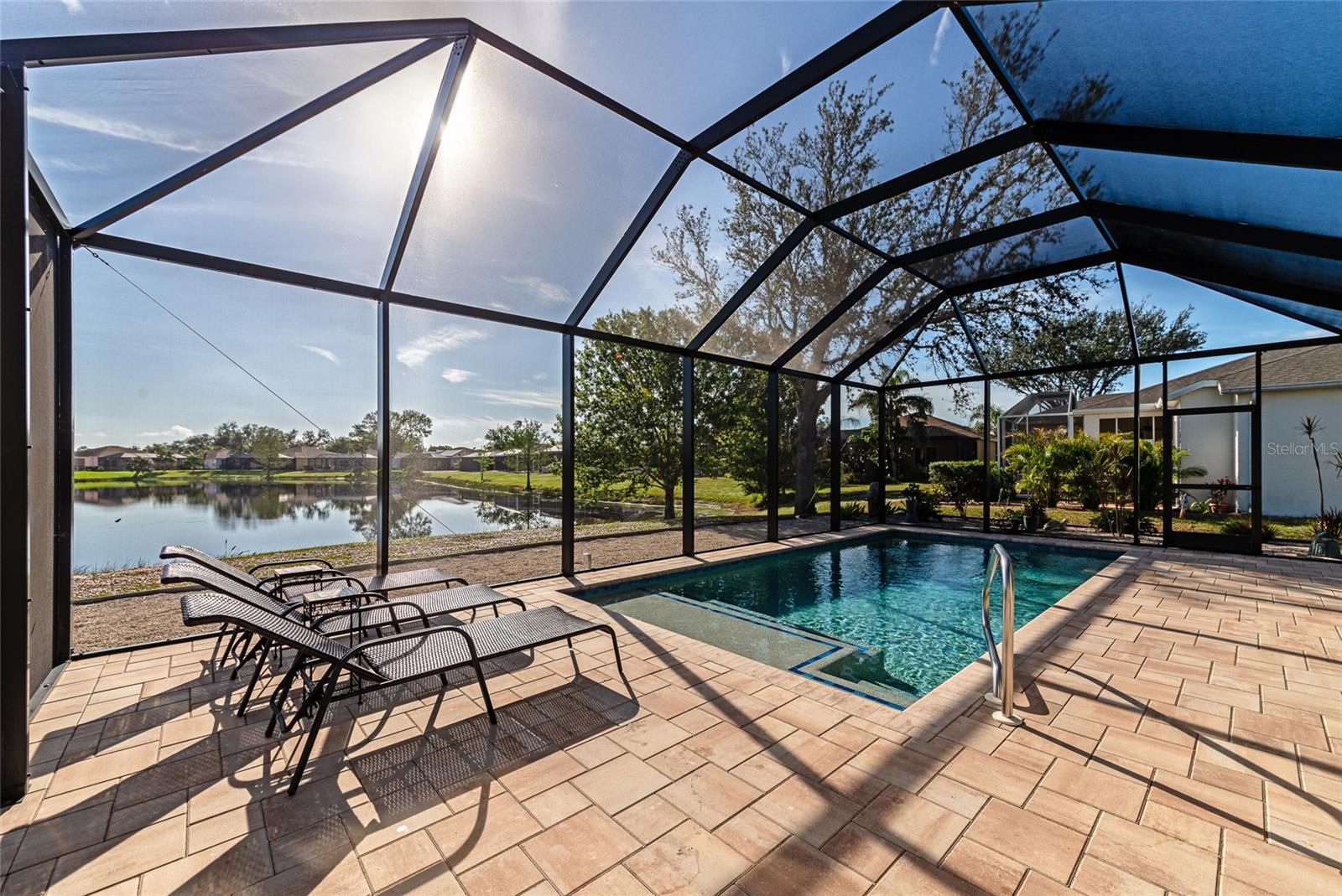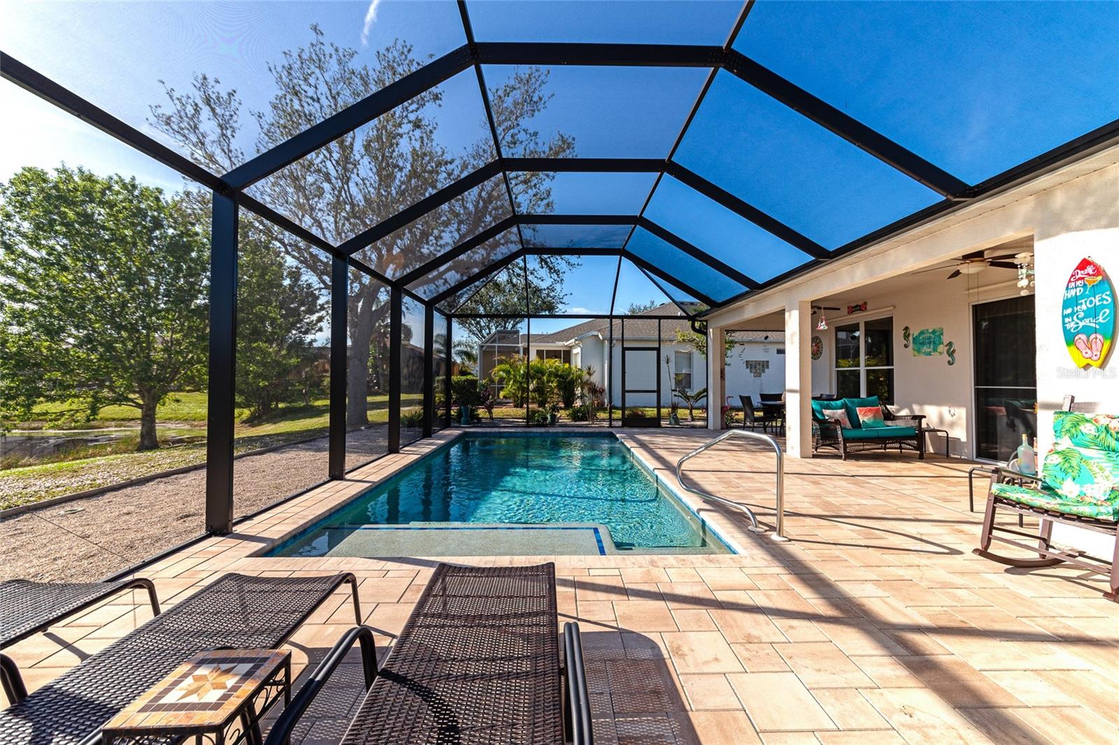 3D Matterport Virtual Tour available, click on Virtual Tour Link! This home says WOW! Once you walk through, you see the wonderful lake view and the one year old gunite pool. Truly spectacular view and plenty of room available in this extremely well maintained 3 bedroom, 2 bath home with a 7 year old roof. Welcome to your dream home, where modern upgrades and serene waterfront views come together to create the ultimate Florida lifestyle. This meticulously maintained 3-bedroom, 2-bathroom home boasts a range of stunning features, both inside and out. Step into the bright and airy open floor plan, featuring a newly painted interior with fresh updates throughout. The kitchen is a chef's delight, equipped with custom granite countertops, updated light fixtures, bamboo shades, and a ceiling fan for added comfort. The adjacent dining room and living room also showcase updated ceiling fans, perfect for keeping cool while entertaining. Relax in the spacious master suite, complete with a beautifully updated ensuite bathroom featuring new light fixtures. The guest bathroom has also been thoughtfully updated, along with fresh paint in the guest bedrooms, ensuring comfort and style for your family and visitors. Outdoor Oasis: Enjoy your private outdoor paradise with a new saltwater pool (2021) featuring a sun pad with jets, a pool heater for year-round enjoyment, and a sleek panoramic view through the upgraded pool cage with pet screen. The lanai area is perfect for lounging and soaking in the tranquil water views. The home's exterior shines with fresh landscaping, a newly painted garage door and trim, and a cozy front patio with new pavers—ideal for morning coffee or evening relaxation. Hurricane shutters provide peace of mind, while a backup AC pump ensures comfort during every season. Recent System Updates Include: New gunite pool and cage (2022) New roof and underlayment (2017) Trane A/C system (2018) Home water softening system (2018) Water heater (2017) New plumbing system (2018) Perfectly situated in a quiet neighborhood, this home offers the best of Florida living with close proximity to beaches, shopping, and dining. Whether you're looking for a vacation retreat or your forever home, this property checks all the boxes. Schedule your private tour today and experience this gem for yourself!