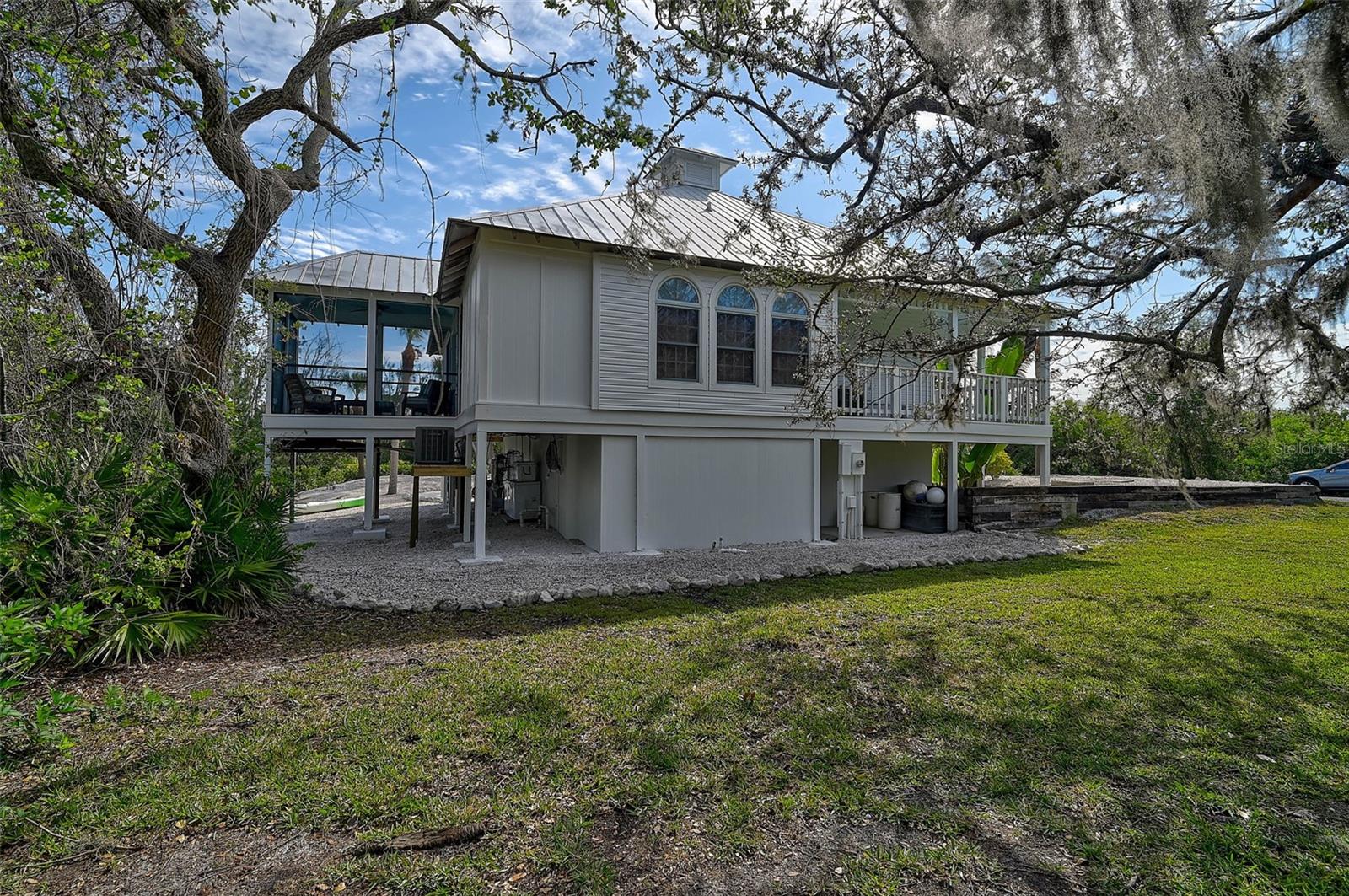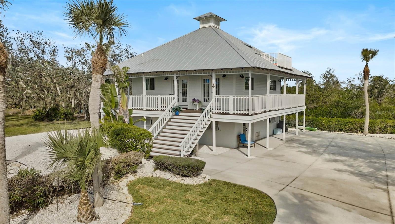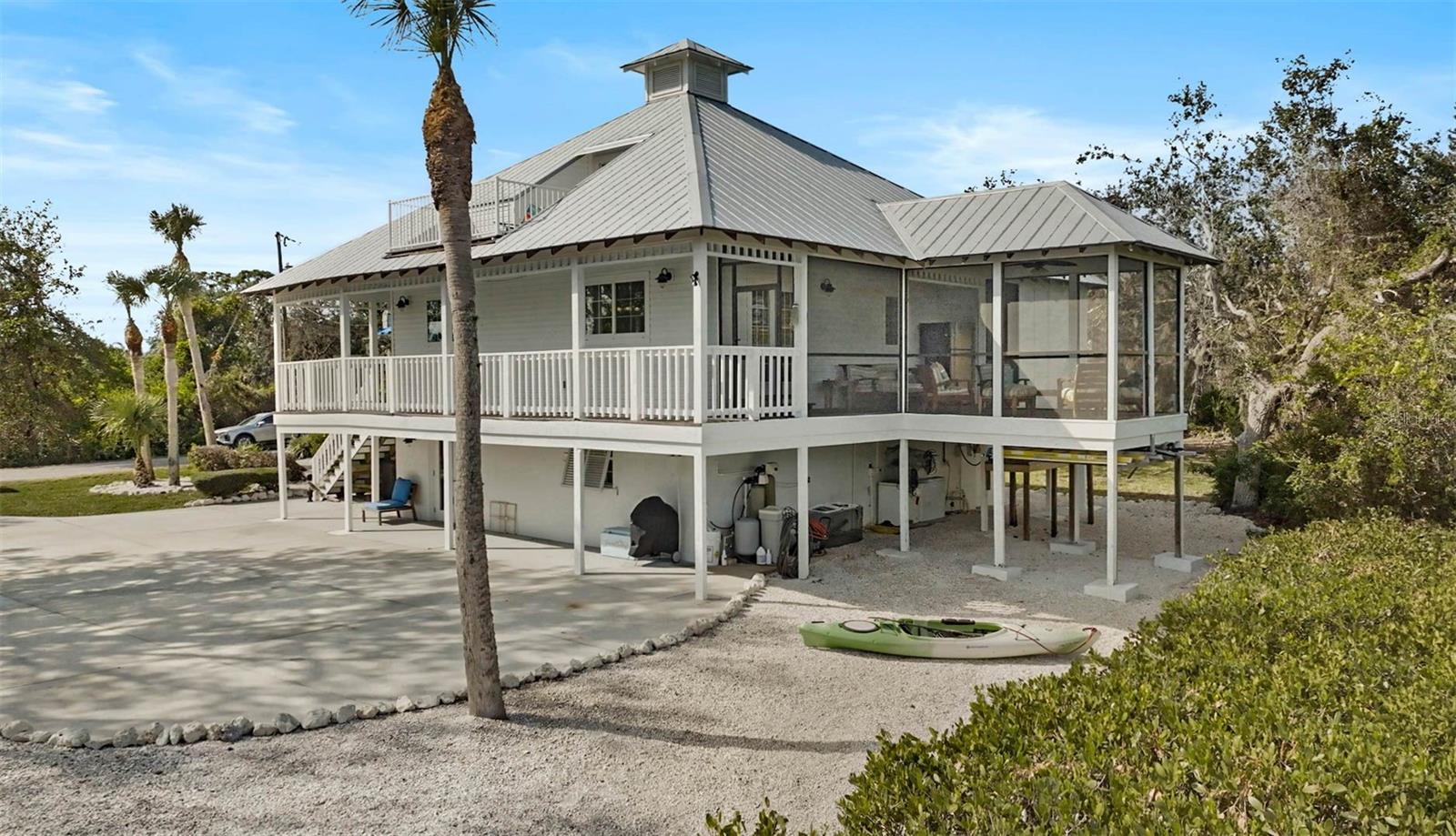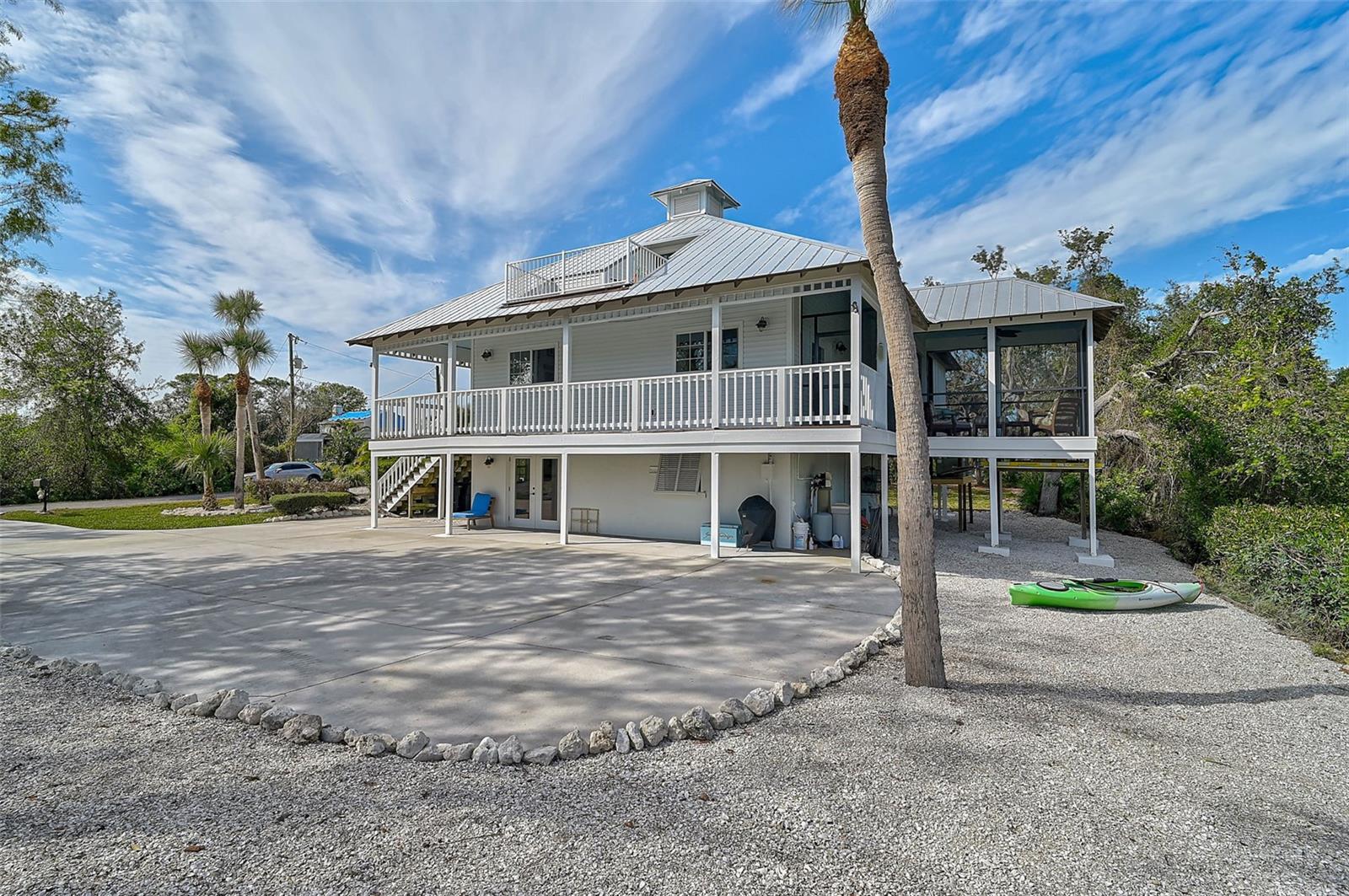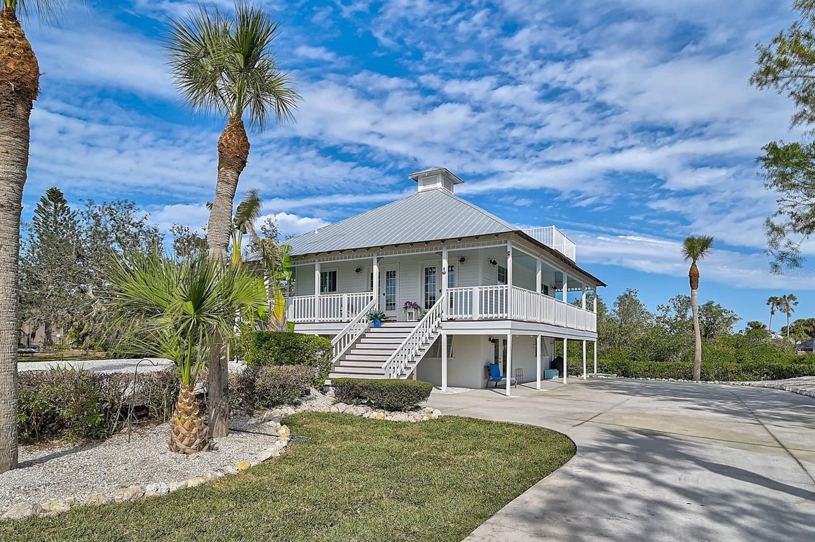 **BOATER’S DREAM! WATERFRONT, ONE OF A KIND, COMPLETELY RENOVATED, FURNISHED – KEY WEST STYLE “PRIVATE OASIS” is a MUST SEE!** Immerse yourself in the Natural Beauty of this “private peninsula” located at the End of the street and surrounded by water on multiple sides. This 4-Bed, 3 Full Bath, Move-In Ready, UPDATED residence offers Quick Access to Intracoastal Waterway and Open Water (Gulf of Mexico) and includes a Boat Dock and 5000lb Lift. The NEW, Stunning Chef’s Kitchen boasts Quartz countertops, premium appliances including SubZero, Bosch and GE Cafe. Travel down the iron, spiral staircase to the Newly updated lower level living room, additional Bedrooms and Full Bath. The third level features a wonderful, open loft area with full bath and a walkout to an elevated terrace. Preserved characteristics include hardwood flooring, wooden beams, wrap around balcony … with incredible Charm throughout! Enjoy Serene Preserve views in this very Private and natural setting. NEW HURRICANE IMPACTS WINDOWS/DOORS (2022), METAL ROOF (2018), HVAC, HOT WATER HEATER, DOCK, LANAI CAGE, LANDSCAPING, FRESHLY PAINTED, METICULOUSLY MAINTAINED. NO HOA. Please note there is an adjacent 0.18 acre parcel of land that is optionally available for purchase. **Enjoy the 3D Virtual Tour and Aerial Video.**
