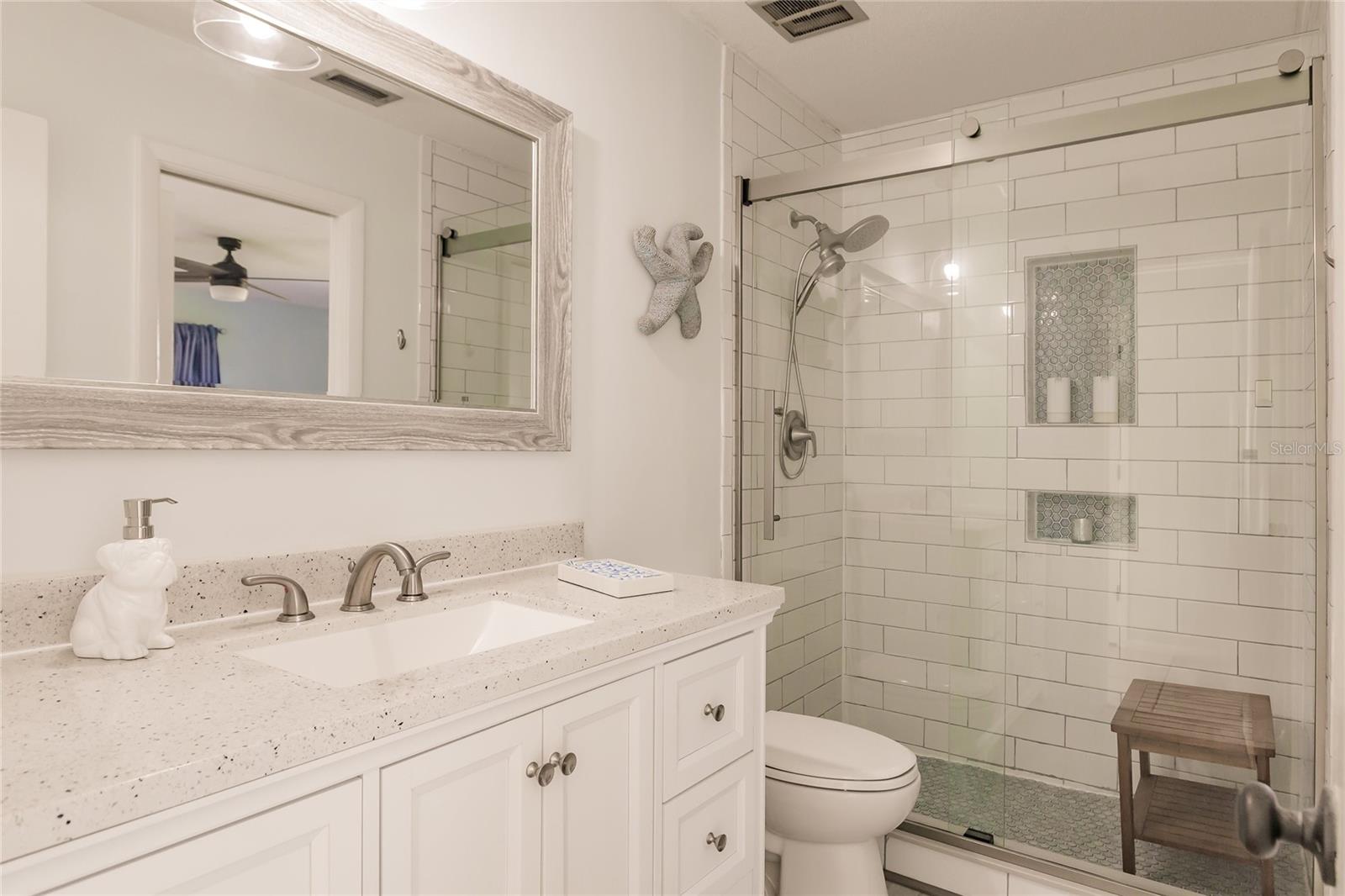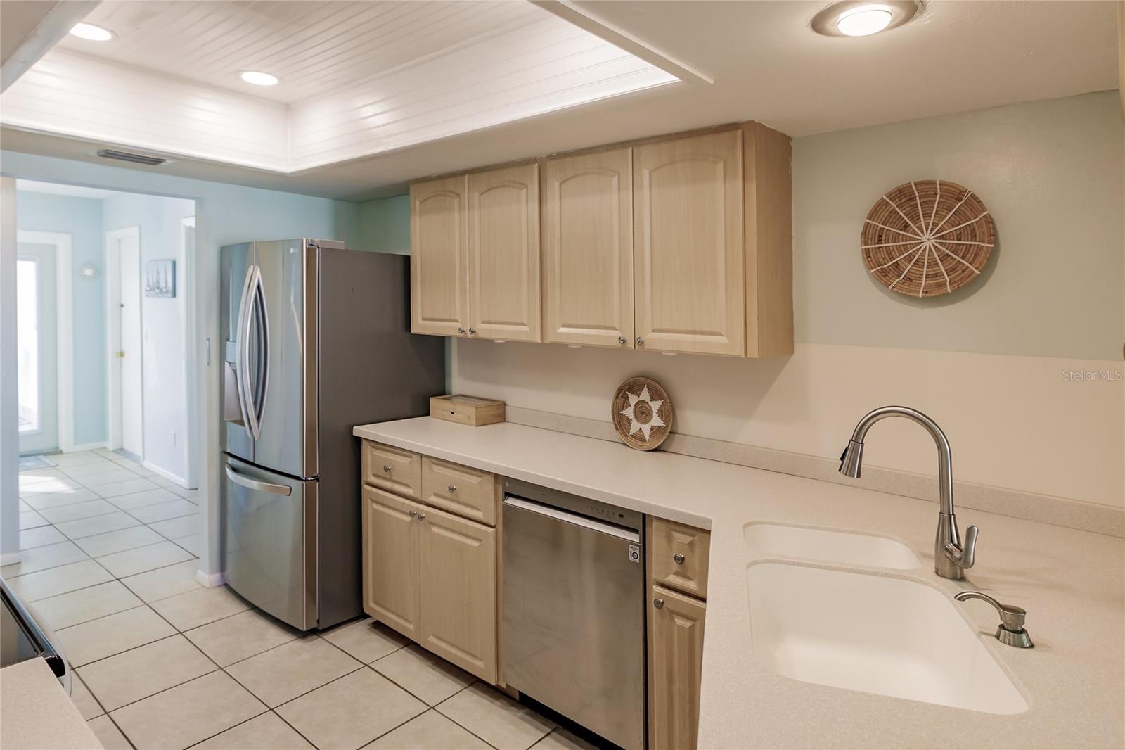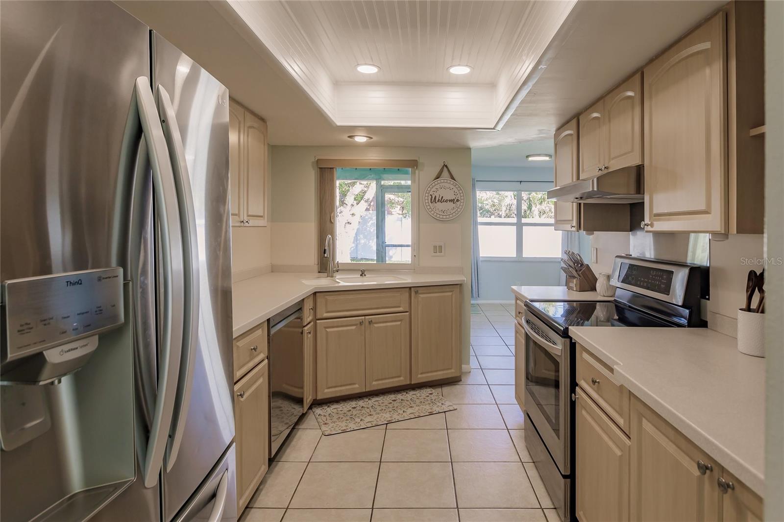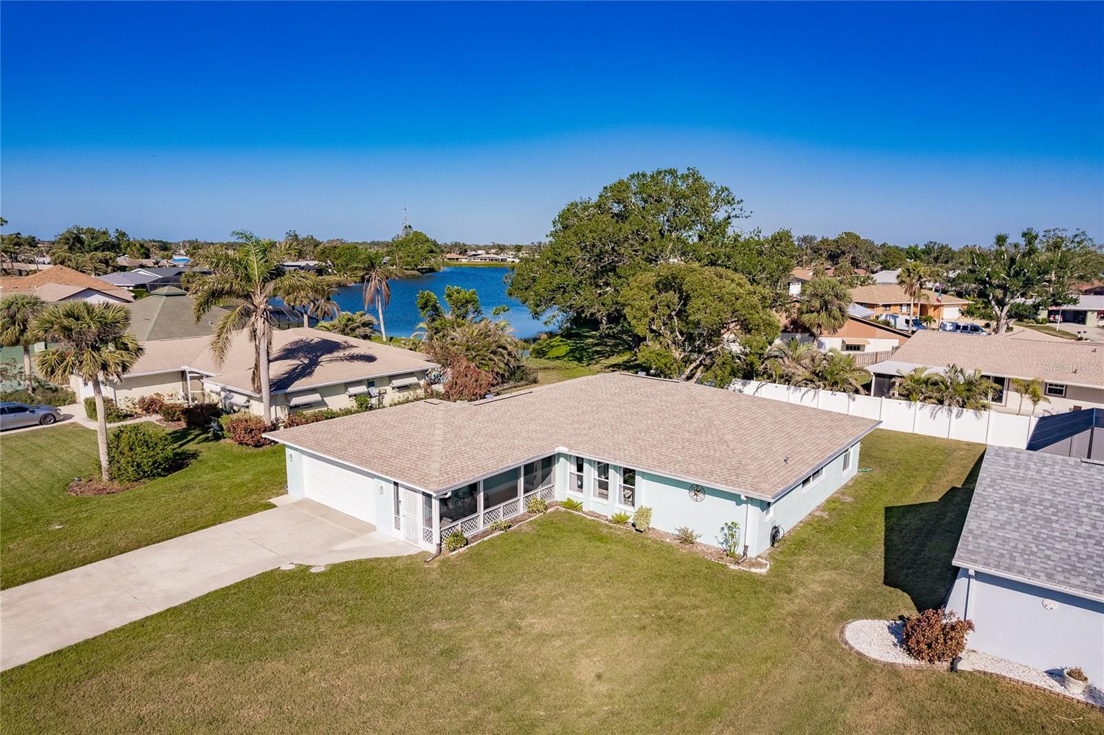 Welcome to the beautifully well-maintained neighborhood of Pinebrook South. This 2BR/2B home has many updates and is exactly what you have been searching for! The floorplan has two separate dining areas and two living room areas (or add a third bedroom). The central kitchen features new appliances and closet pantry with pass-thru to the rear patio. Both bedrooms have their own bathrooms and the guest bath has been updated along with the primary bathroom shower. This home is light and bright with a great flowing floorplan perfect for entertaining. Additional features include a brand new roof, new exterior paint, all new ceiling fans, new dishwasher and refrigerator, neutral tile throughout, and a brand new water heater. Relax on the large rear screened patio and enjoy beautiful lake and sunset views! Pinebrook South features a clubhouse and large heated swimming pool and has shuffleboard and use of the kayak storage with access to picturesque Curry Creek. This home is a very short distance from Pinebrook Park with croquet court, soccer and baseball fields, and more. It is also about 4 miles to Venice Beach and very close to shopping, grocery, restaurants, and hiking trails. Don't miss this great home in a great neighborhood!
