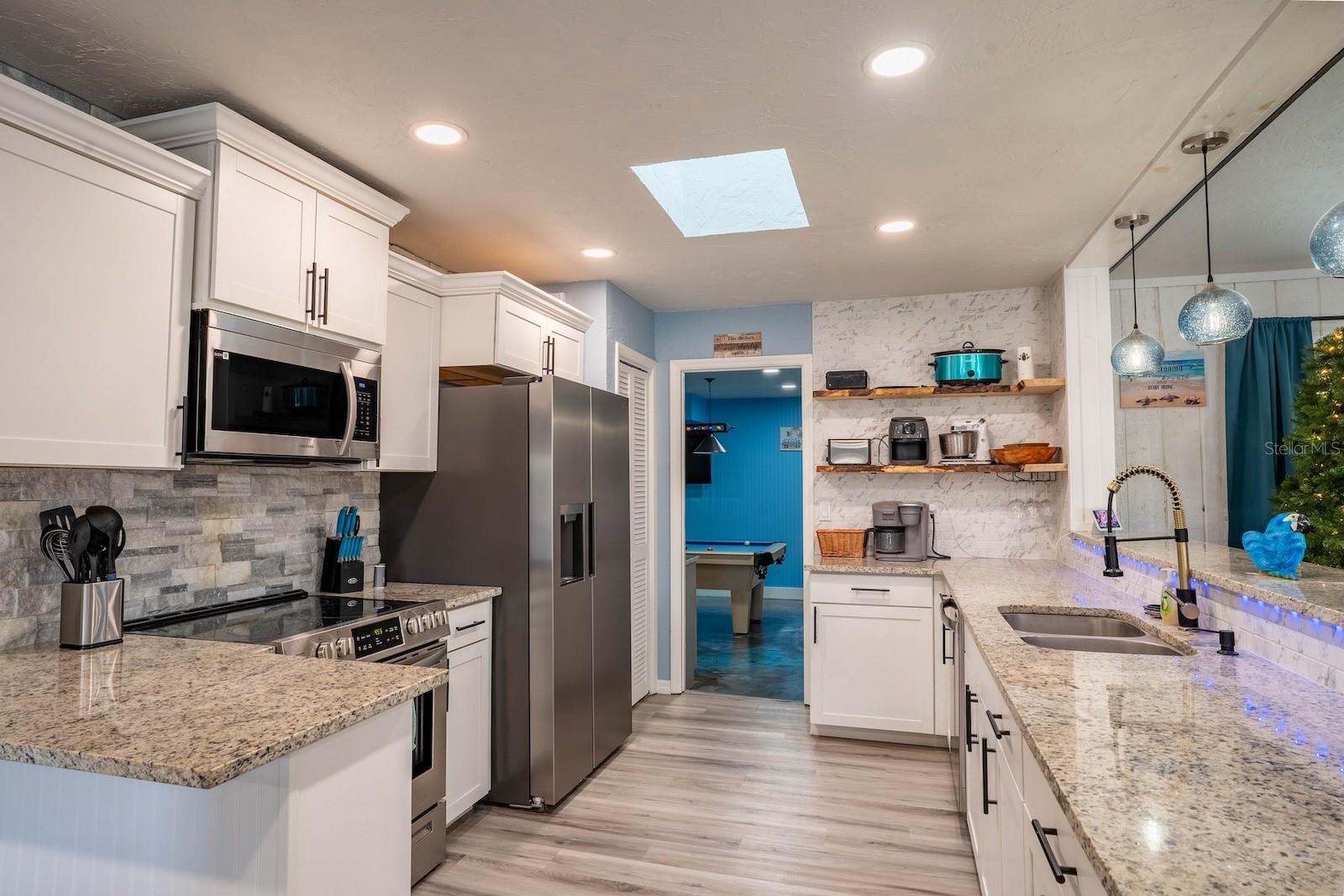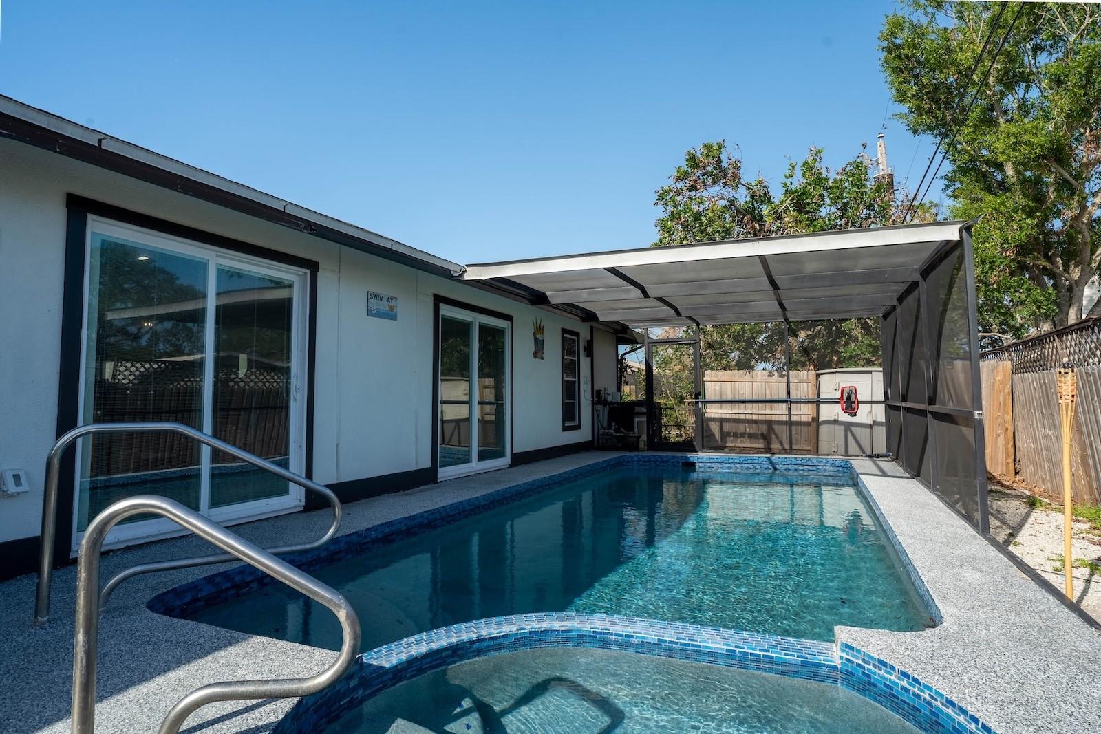 Priced Below Market Value! No water intrusion from any of the recent hurricanes. Beautiful Turn Key House Ready To Move In Today. The home has 3 larger bedrooms, 2 baths 2 car garage. All remodeled in the last 2 years. Brand new Water system, New Roof in 2019, New Kitchen in 2022, Updated bathrooms in 2022, Huge cathedral ceilings, huge living room for entertaining and sliding glass doors open up to the pool deck, French doors off of the dining room to the pool deck. You can keep it as an air bnb and take over reservations or you can move in and live in the home either choice is possible. Season is pretty booked out. Garage has AC and has been turned into a play room but can easily be converted back by taking a wall down. Home is located within 7 miles of Venice beach, Venice fishing pier, and downtown Venice. This home is a must See