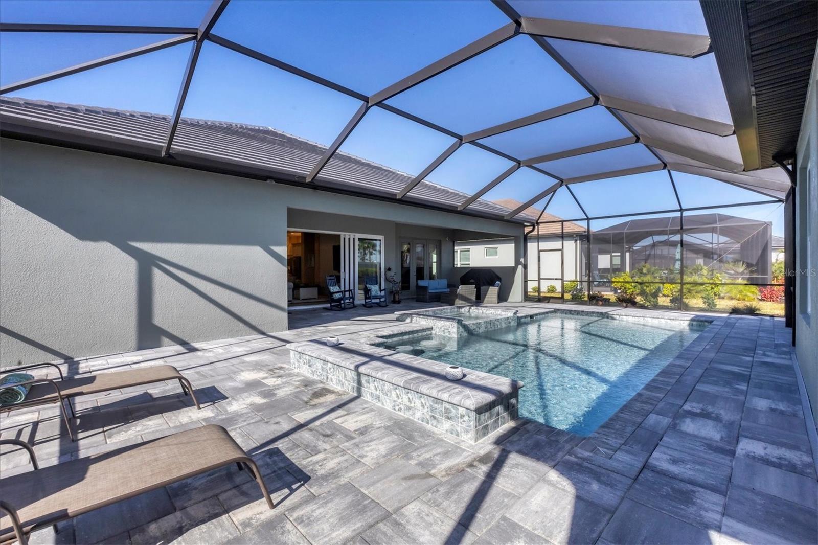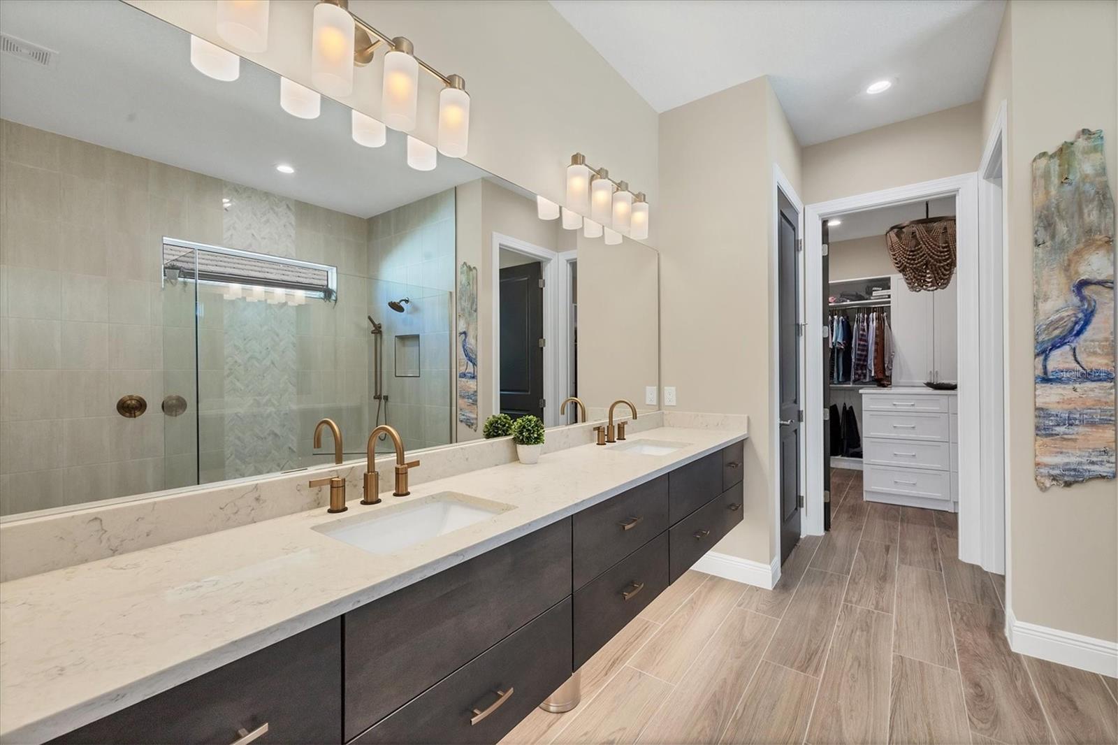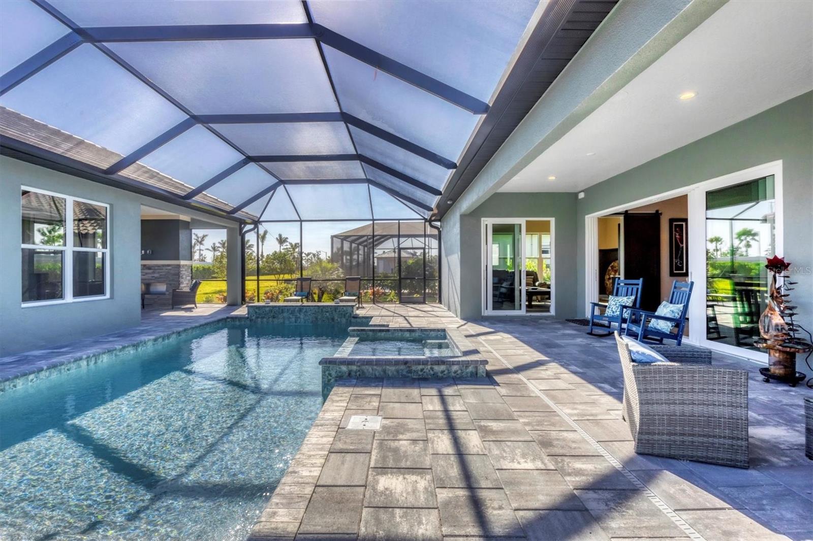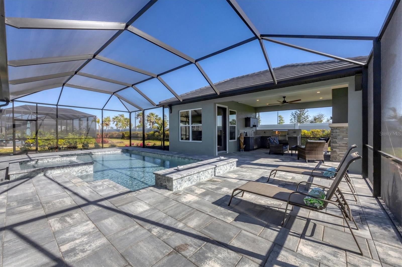 Experience luxury living at its finest in Gran Place at Wellen Park in this stunning semi-custom home by Sam Rodgers, designed for both comfort and style. With three spacious bedrooms and two-and-a-half baths in the main home, this residence boasts a generous bonus room equipped with custom built-in bar and wine refrigerator and is perfect to act as a media room as it is pre-wired for a projector and screen. The standout feature in the home is the unique separate casita attached to the pool cabana, complete with a full bath, making it an ideal guest suite or remote office. In the main part of the home, the primary bedroom is a perfect retreat with gorgeous bath and luxe finishes, including a beautiful floating vanity offering dual sinks, a massive walk-in shower and huge custom-fitted closet that has direct access to the laundry room. This home is dressed to impress with high-end finishes throughout, including custom lighting, solid core doors and all impact-resistant windows and exterior doors. The outdoor kitchen is properly fitted in the cabana with Lynx grill, marine-grade cabinetry, refrigerator and outdoor fireplace, creating an inviting space for entertaining. And if this wasn't enough, the home is also equipped with a whole-house generator, smart home technology and a state-of-the-art audio system, ensuring modern convenience at every turn. Thoughtful consideration was given to each space with extra features, including tongue-and-groove ceilings in the dining room and primary bedroom, wood-beamed ceiling and feature wall in the great room, beautiful wood cabinetry in the laundry room with ice maker, custom lighting and fans, the list goes on and on. The gourmet kitchen is a chef’s dream with gas cooktop and pot-filler, built-in oven, high-level quartz countertops and massive island, perfect for entertaining as it connects to the dining room and great room all while overlooking your gorgeous and heated saltwater pool and spa with casita and cabana beyond. Gran Place is perfectly situated within Wellen Park, close to the downtown area with restaurants and shops and just a short drive to beaches, the quaint downtown Venice area and the Atlanta Braves stadium. Be sure to hurry and see this beautiful home as it is likely not to last!