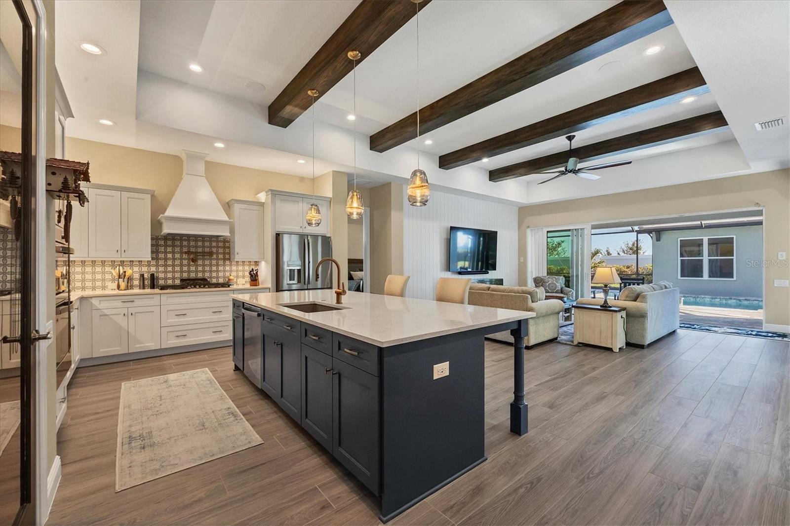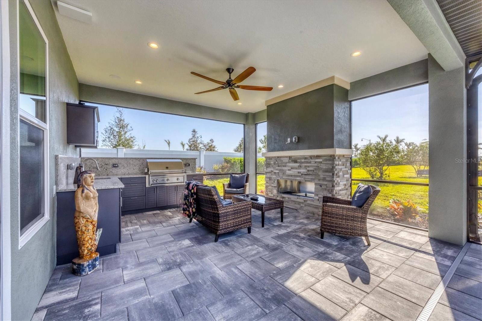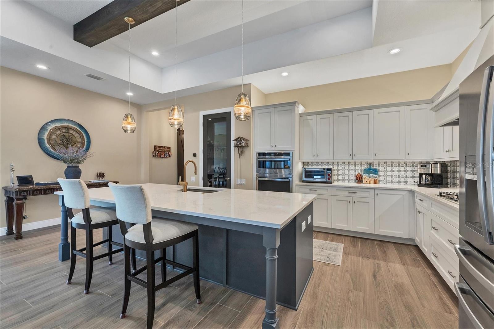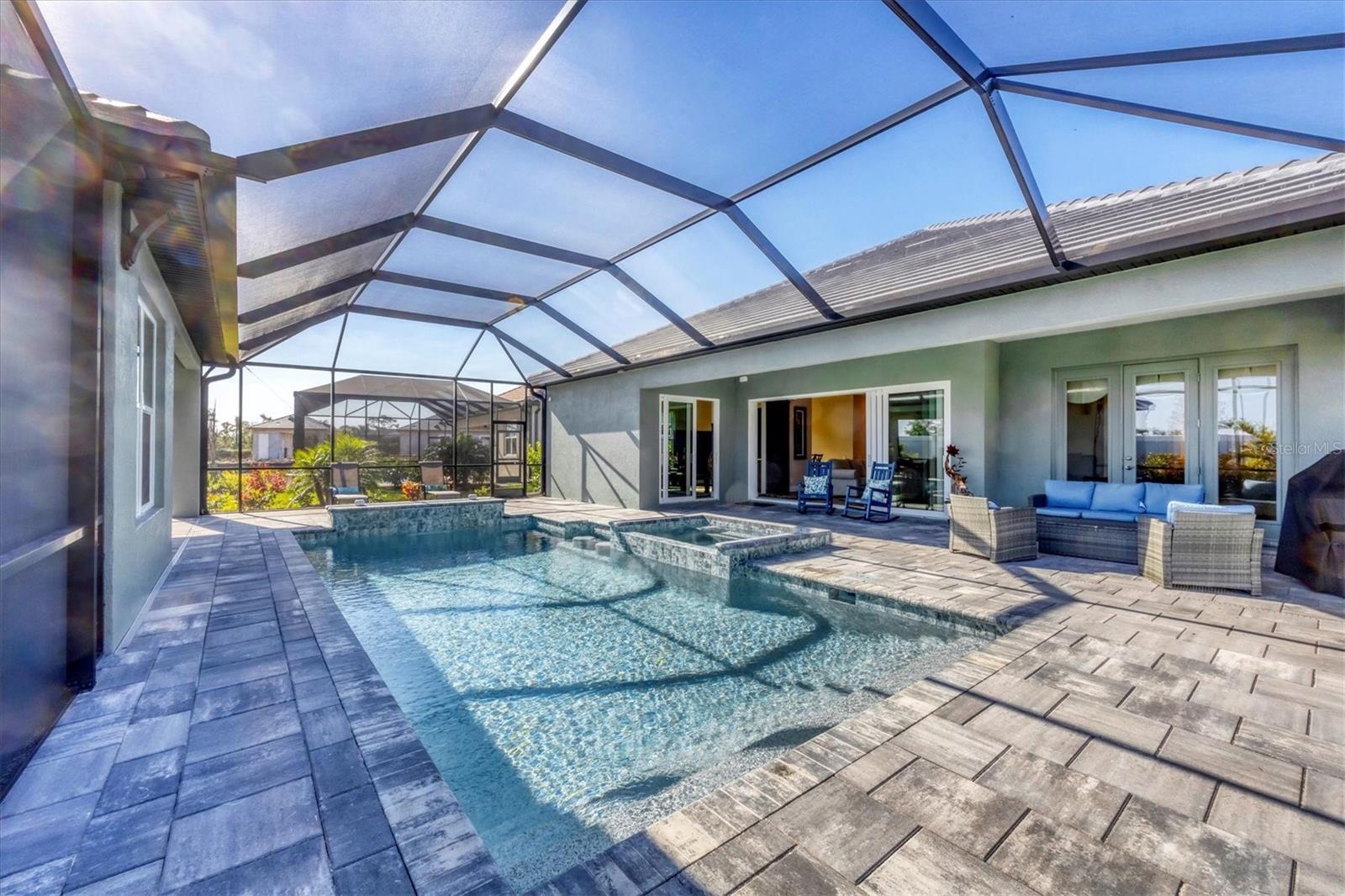 Experience luxury living at its finest in Gran Place at Wellen Park in this stunning semi-custom home by Sam Rodgers, designed for both comfort and style. With three spacious bedrooms and two-and-a-half baths in the main home, this residence boasts a generous bonus room equipped with custom built-in bar and wine refrigerator and is perfect to act as a media room as it is pre-wired for a projector and screen. The standout feature in the home is the unique separate casita attached to the pool cabana, complete with a full bath, making it an ideal guest suite or remote office. In the main part of the home, the primary bedroom is a perfect retreat with gorgeous bath and luxe finishes, including a beautiful floating vanity offering dual sinks, a massive walk-in shower and huge custom-fitted closet that has direct access to the laundry room. This home is dressed to impress with high-end finishes throughout, including custom lighting, solid core doors and all impact-resistant windows and exterior doors. The outdoor kitchen is properly fitted in the cabana with Lynx grill, marine-grade cabinetry, refrigerator and outdoor fireplace, creating an inviting space for entertaining. And if this wasn't enough, the home is also equipped with a whole-house generator, smart home technology and a state-of-the-art audio system, ensuring modern convenience at every turn. Thoughtful consideration was given to each space with extra features, including tongue-and-groove ceilings in the dining room and primary bedroom, wood-beamed ceiling and feature wall in the great room, beautiful wood cabinetry in the laundry room with ice maker, custom lighting and fans, the list goes on and on. The gourmet kitchen is a chef’s dream with gas cooktop and pot-filler, built-in oven, high-level quartz countertops and massive island, perfect for entertaining as it connects to the dining room and great room all while overlooking your gorgeous and heated saltwater pool and spa with casita and cabana beyond. Gran Place is perfectly situated within Wellen Park, close to the downtown area with restaurants and shops and just a short drive to beaches, the quaint downtown Venice area and the Atlanta Braves stadium. Be sure to hurry and see this beautiful home as it is likely not to last!