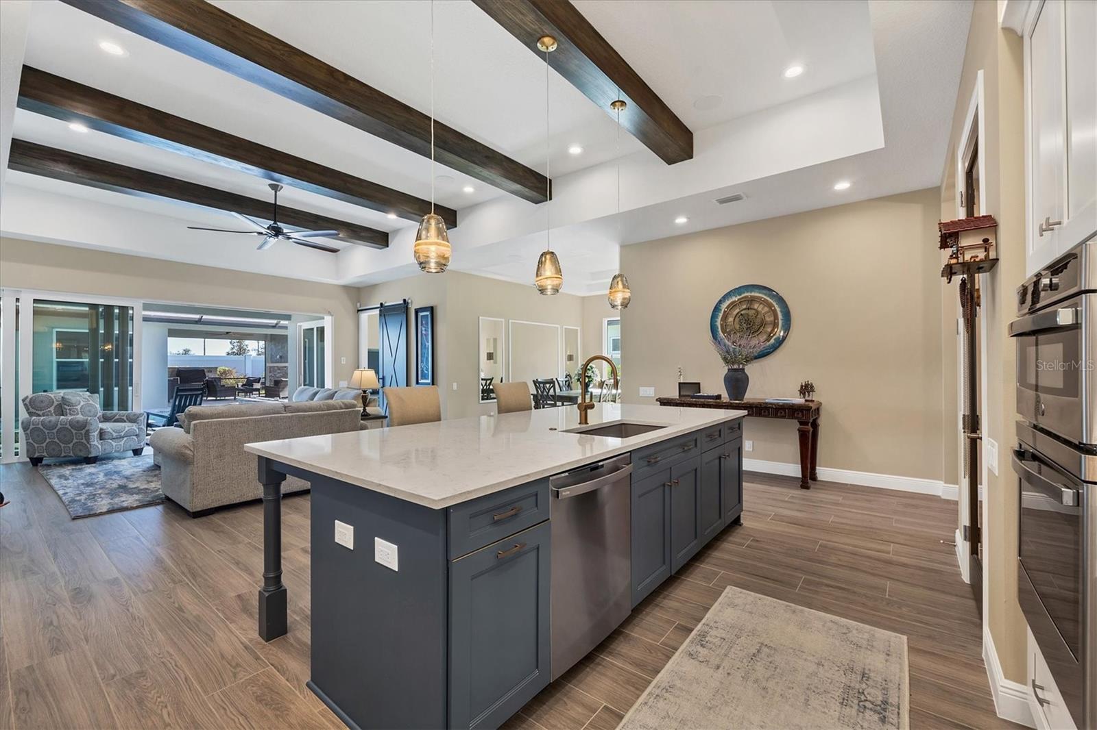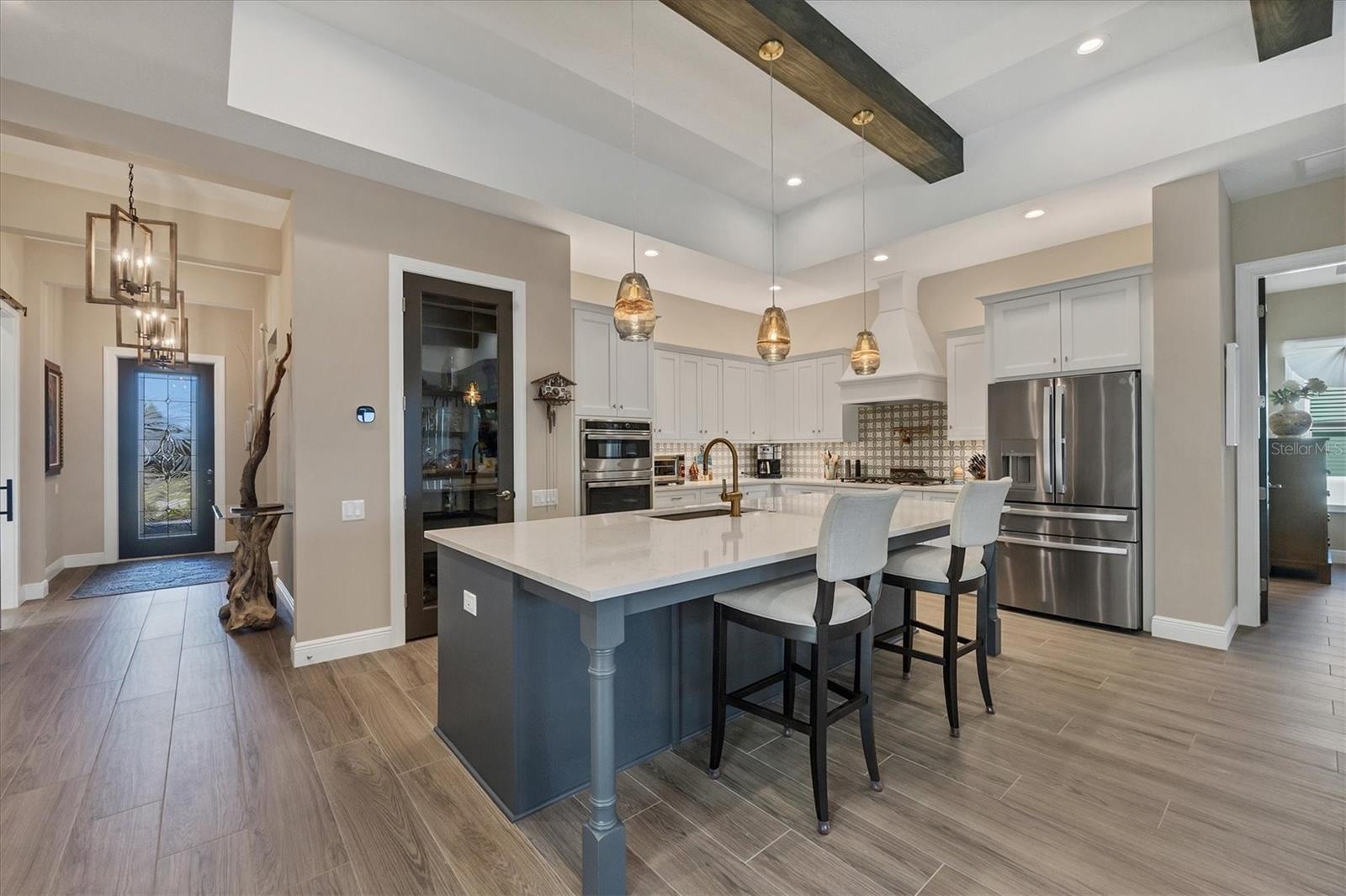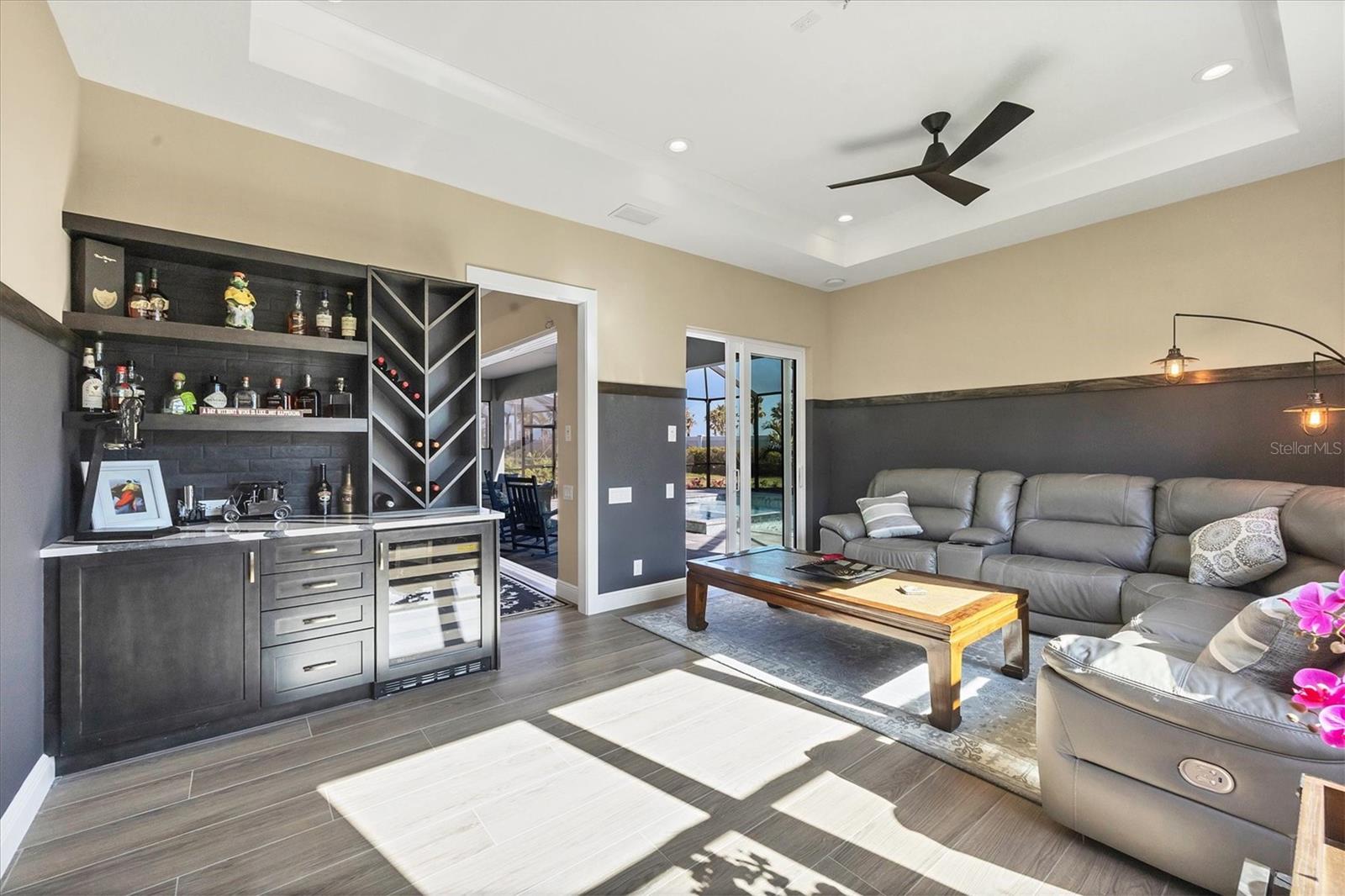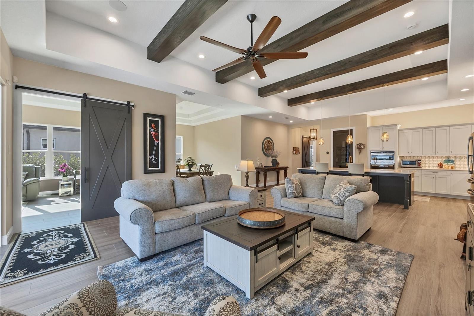 Experience luxury living at its finest in Gran Place at Wellen Park in this stunning semi-custom home by Sam Rodgers, designed for both comfort and style. With three spacious bedrooms and two-and-a-half baths in the main home, this residence boasts a generous bonus room equipped with custom built-in bar and wine refrigerator and is perfect to act as a media room as it is pre-wired for a projector and screen. The standout feature in the home is the unique separate casita attached to the pool cabana, complete with a full bath, making it an ideal guest suite or remote office. In the main part of the home, the primary bedroom is a perfect retreat with gorgeous bath and luxe finishes, including a beautiful floating vanity offering dual sinks, a massive walk-in shower and huge custom-fitted closet that has direct access to the laundry room. This home is dressed to impress with high-end finishes throughout, including custom lighting, solid core doors and all impact-resistant windows and exterior doors. The outdoor kitchen is properly fitted in the cabana with Lynx grill, marine-grade cabinetry, refrigerator and outdoor fireplace, creating an inviting space for entertaining. And if this wasn't enough, the home is also equipped with a whole-house generator, smart home technology and a state-of-the-art audio system, ensuring modern convenience at every turn. Thoughtful consideration was given to each space with extra features, including tongue-and-groove ceilings in the dining room and primary bedroom, wood-beamed ceiling and feature wall in the great room, beautiful wood cabinetry in the laundry room with ice maker, custom lighting and fans, the list goes on and on. The gourmet kitchen is a chef’s dream with gas cooktop and pot-filler, built-in oven, high-level quartz countertops and massive island, perfect for entertaining as it connects to the dining room and great room all while overlooking your gorgeous and heated saltwater pool and spa with casita and cabana beyond. Gran Place is perfectly situated within Wellen Park, close to the downtown area with restaurants and shops and just a short drive to beaches, the quaint downtown Venice area and the Atlanta Braves stadium. Be sure to hurry and see this beautiful home as it is likely not to last!