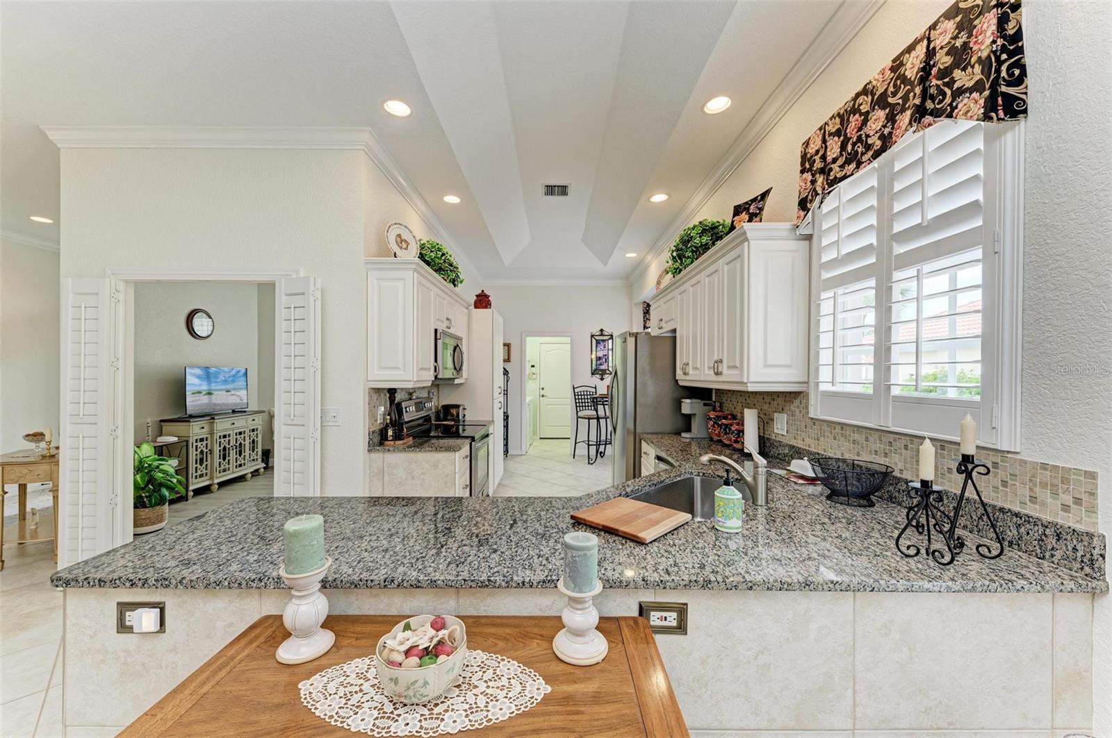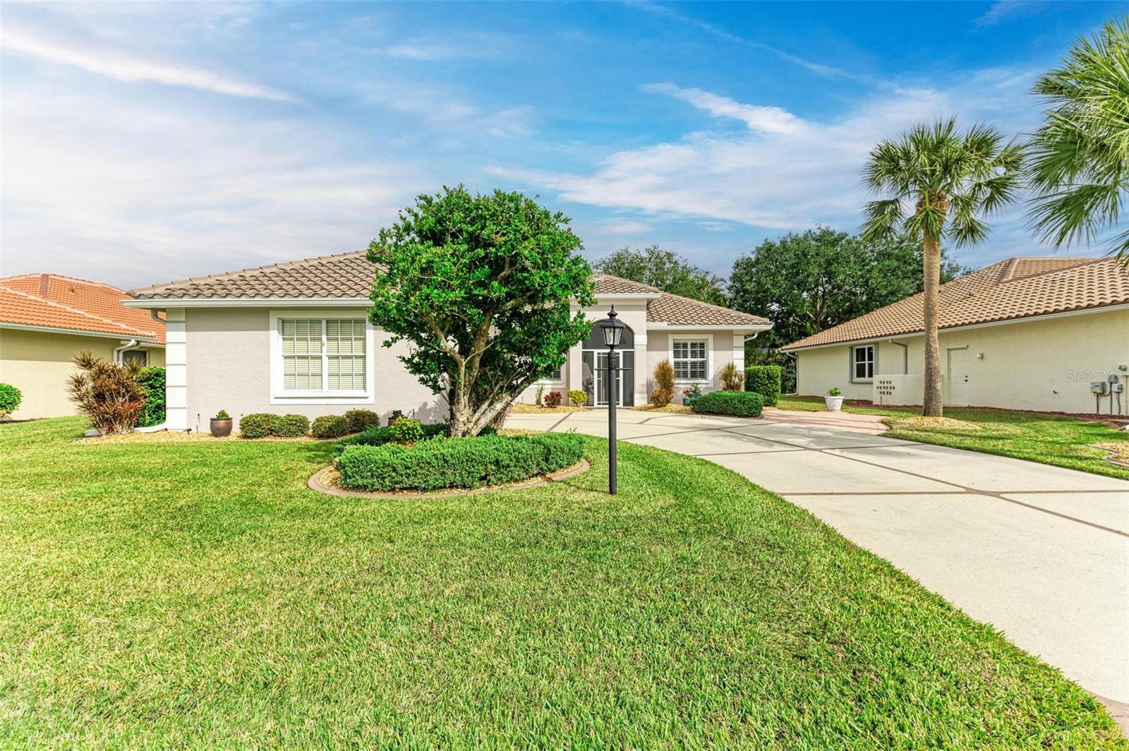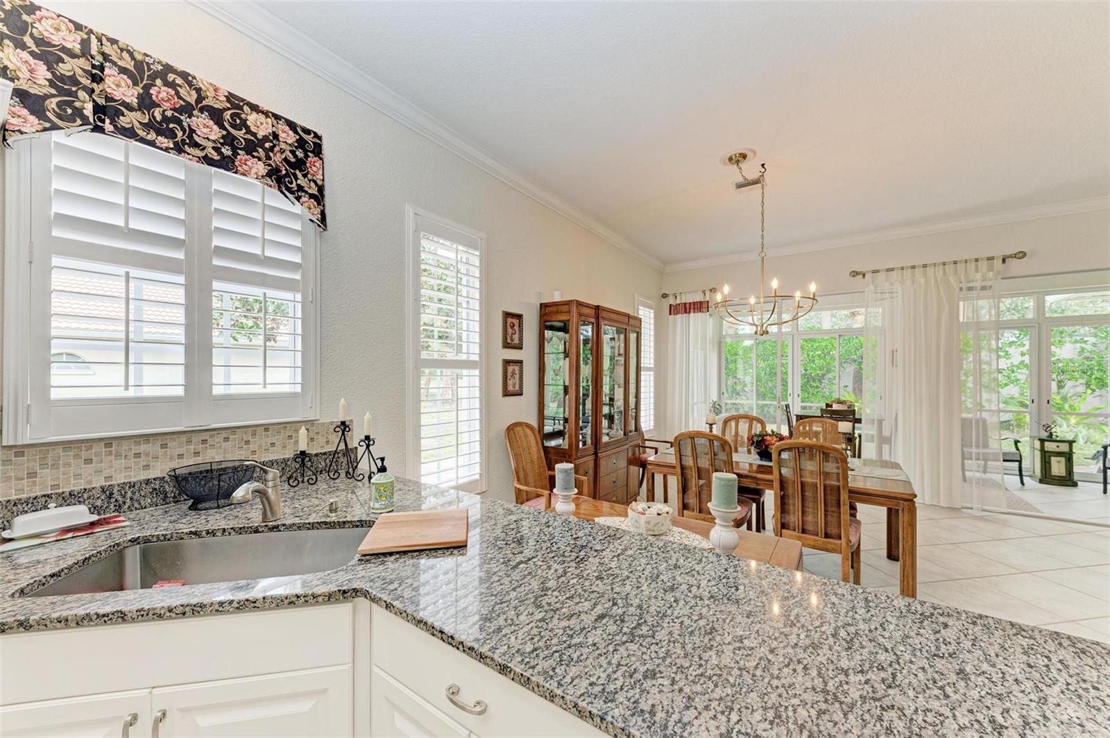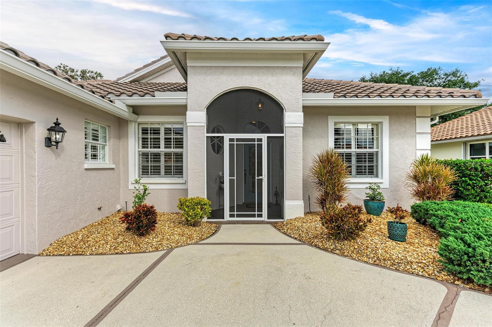 Welcome to 120 Grand Oak Circle, a stunning 3 bedroom, 2 bathroom residence nestled within the gated community of Hidden Lakes Club! This sophisticated home with NEW roof (2024) seamlessly combines contemporary design with classic elegance, ideal for those who value comfort and style. As you enter through the screened-in front entryway, you are greeted by an open floor plan that seamlessly connects the main living areas, all adorned with tile flooring and crown molding which graces every room, adding a touch of refinement throughout. The heart of the home, the kitchen, stands as a testament to both style and functionality, featuring sleek granite countertops that are sure to inspire your culinary adventures. The master bedroom with own private access to the Florida room is your own personal haven, featuring a spacious walk-in closet, remodeled en-suite with granite countertops, dual sinks, and a walk-in tile shower, providing a spa-like experience. The guest bedrooms are enhanced with newer luxury vinyl flooring, ensuring both beauty and durability. The remodeled guest bathroom is equally impressive, featuring granite countertops and a tiled shower/tub combo, offering guests both coziness and charm. Step into the glass enclosed all seasons room, a bright and versatile air-conditioned space that’s ideal for unwinding in comfort or hosting gatherings with ease. This flexible area offers year-round enjoyment, making it perfect for relaxation or entertaining guests. Just outside, you'll find an expansive paver patio, perfect for embracing the Florida outdoor lifestyle. The patio offers a tranquil setting with views of the peaceful pond and the nearby community clubhouse, creating a seamless blend of indoor and outdoor living. With meticulous attention to detail, this home is a true gem. Located just minutes from I-75, this home offers easy access for both daily commutes and weekend getaways, while also being only a short drive from the lively Venice Island. On Venice Island, you can explore charming boutiques, savor waterfront dining, and relax on the beautiful Venice Beach. The area is full of activities, from top-rated golf courses and scenic parks to cultural highlights like theaters and art galleries. For outdoor enthusiasts, there are plenty of trails, kayaking spots, and opportunities to enjoy breathtaking Gulf Coast sunsets. With everything just around the corner, this home provides the perfect balance of peaceful living and convenient access to all the excitement the area has to offer. Experience the elegance and charm of 120 Grand Oak Circle, where modern living meets timeless beauty and begin to live the Endless Summer Living lifestyle!