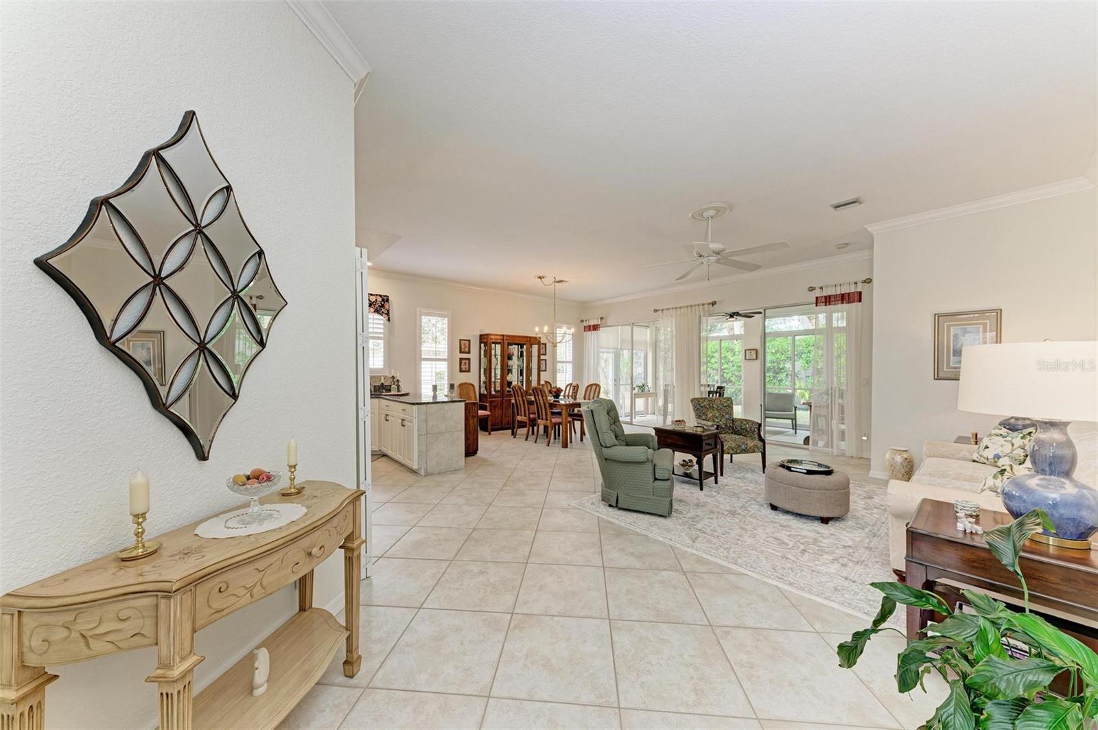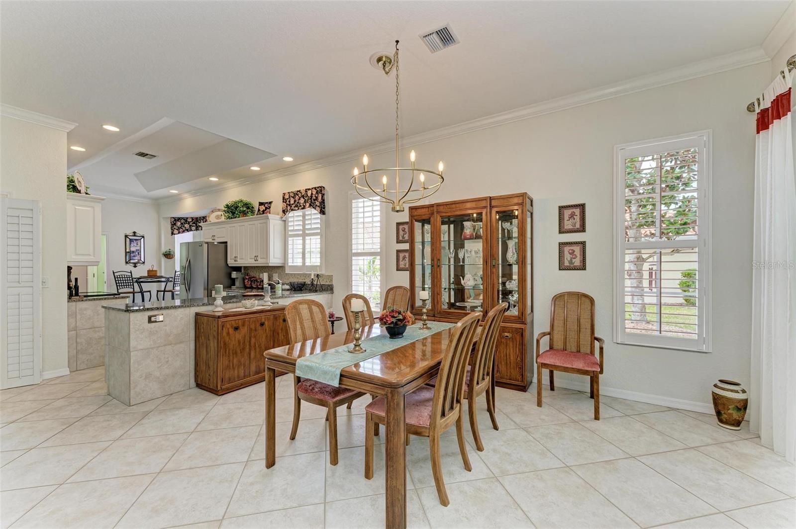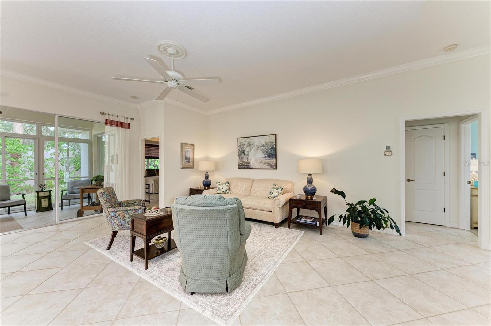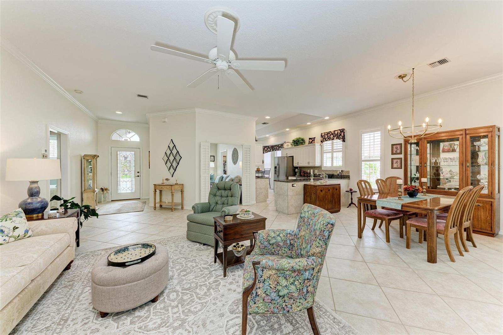 Welcome to 120 Grand Oak Circle, a stunning 3 bedroom, 2 bathroom residence nestled within the gated community of Hidden Lakes Club! This sophisticated home with NEW roof (2024) seamlessly combines contemporary design with classic elegance, ideal for those who value comfort and style. As you enter through the screened-in front entryway, you are greeted by an open floor plan that seamlessly connects the main living areas, all adorned with tile flooring and crown molding which graces every room, adding a touch of refinement throughout. The heart of the home, the kitchen, stands as a testament to both style and functionality, featuring sleek granite countertops that are sure to inspire your culinary adventures. The master bedroom with own private access to the Florida room is your own personal haven, featuring a spacious walk-in closet, remodeled en-suite with granite countertops, dual sinks, and a walk-in tile shower, providing a spa-like experience. The guest bedrooms are enhanced with newer luxury vinyl flooring, ensuring both beauty and durability. The remodeled guest bathroom is equally impressive, featuring granite countertops and a tiled shower/tub combo, offering guests both coziness and charm. Step into the glass enclosed all seasons room, a bright and versatile air-conditioned space that’s ideal for unwinding in comfort or hosting gatherings with ease. This flexible area offers year-round enjoyment, making it perfect for relaxation or entertaining guests. Just outside, you'll find an expansive paver patio, perfect for embracing the Florida outdoor lifestyle. The patio offers a tranquil setting with views of the peaceful pond and the nearby community clubhouse, creating a seamless blend of indoor and outdoor living. With meticulous attention to detail, this home is a true gem. Located just minutes from I-75, this home offers easy access for both daily commutes and weekend getaways, while also being only a short drive from the lively Venice Island. On Venice Island, you can explore charming boutiques, savor waterfront dining, and relax on the beautiful Venice Beach. The area is full of activities, from top-rated golf courses and scenic parks to cultural highlights like theaters and art galleries. For outdoor enthusiasts, there are plenty of trails, kayaking spots, and opportunities to enjoy breathtaking Gulf Coast sunsets. With everything just around the corner, this home provides the perfect balance of peaceful living and convenient access to all the excitement the area has to offer. Experience the elegance and charm of 120 Grand Oak Circle, where modern living meets timeless beauty and begin to live the Endless Summer Living lifestyle!