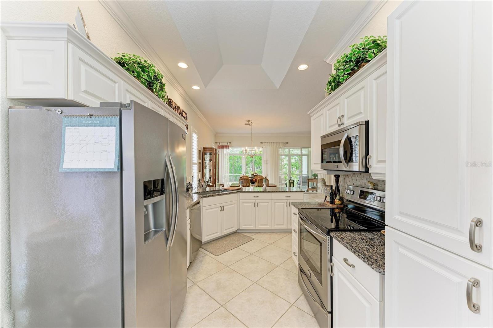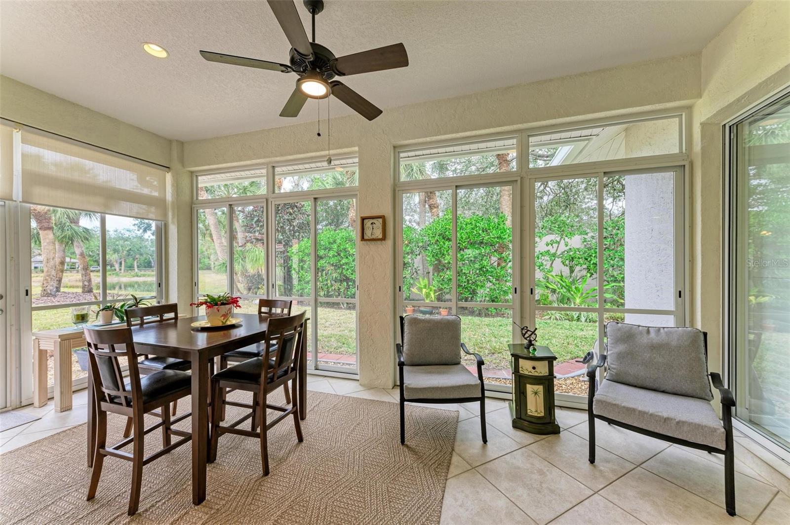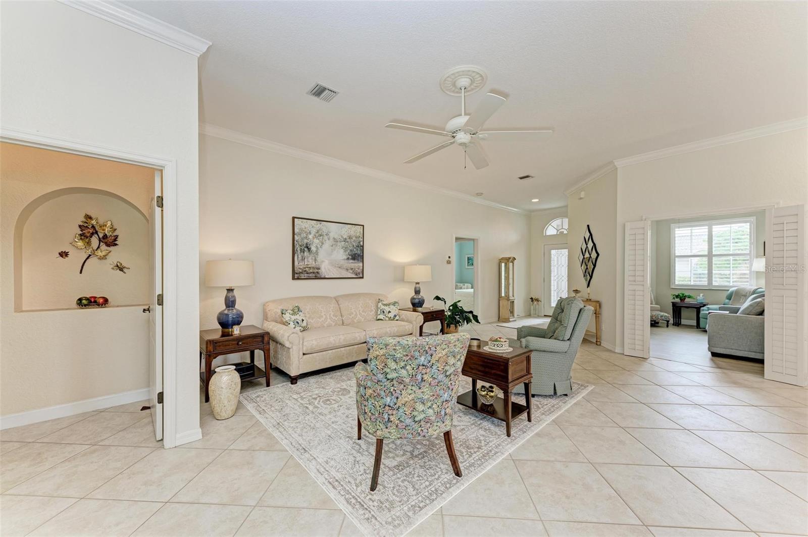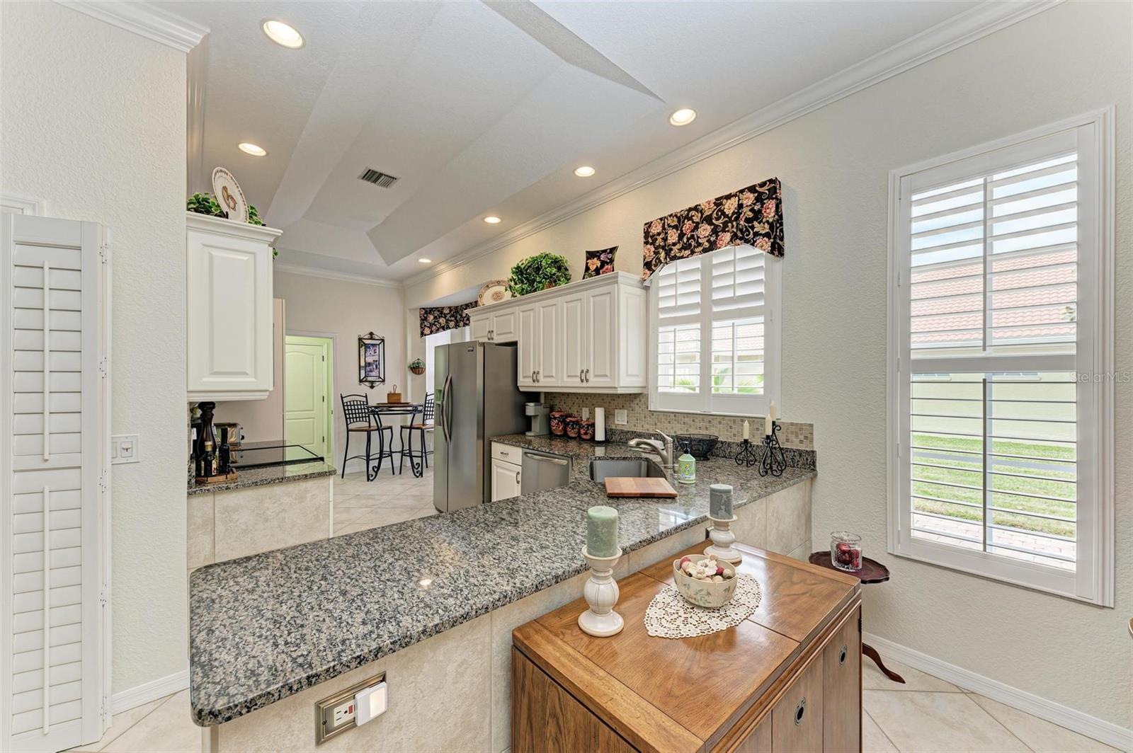 Welcome to 120 Grand Oak Circle, a stunning 3 bedroom, 2 bathroom residence nestled within the gated community of Hidden Lakes Club! This sophisticated home with NEW roof (2024) seamlessly combines contemporary design with classic elegance, ideal for those who value comfort and style. As you enter through the screened-in front entryway, you are greeted by an open floor plan that seamlessly connects the main living areas, all adorned with tile flooring and crown molding which graces every room, adding a touch of refinement throughout. The heart of the home, the kitchen, stands as a testament to both style and functionality, featuring sleek granite countertops that are sure to inspire your culinary adventures. The master bedroom with own private access to the Florida room is your own personal haven, featuring a spacious walk-in closet, remodeled en-suite with granite countertops, dual sinks, and a walk-in tile shower, providing a spa-like experience. The guest bedrooms are enhanced with newer luxury vinyl flooring, ensuring both beauty and durability. The remodeled guest bathroom is equally impressive, featuring granite countertops and a tiled shower/tub combo, offering guests both coziness and charm. Step into the glass enclosed all seasons room, a bright and versatile air-conditioned space that’s ideal for unwinding in comfort or hosting gatherings with ease. This flexible area offers year-round enjoyment, making it perfect for relaxation or entertaining guests. Just outside, you'll find an expansive paver patio, perfect for embracing the Florida outdoor lifestyle. The patio offers a tranquil setting with views of the peaceful pond and the nearby community clubhouse, creating a seamless blend of indoor and outdoor living. With meticulous attention to detail, this home is a true gem. Located just minutes from I-75, this home offers easy access for both daily commutes and weekend getaways, while also being only a short drive from the lively Venice Island. On Venice Island, you can explore charming boutiques, savor waterfront dining, and relax on the beautiful Venice Beach. The area is full of activities, from top-rated golf courses and scenic parks to cultural highlights like theaters and art galleries. For outdoor enthusiasts, there are plenty of trails, kayaking spots, and opportunities to enjoy breathtaking Gulf Coast sunsets. With everything just around the corner, this home provides the perfect balance of peaceful living and convenient access to all the excitement the area has to offer. Experience the elegance and charm of 120 Grand Oak Circle, where modern living meets timeless beauty and begin to live the Endless Summer Living lifestyle!