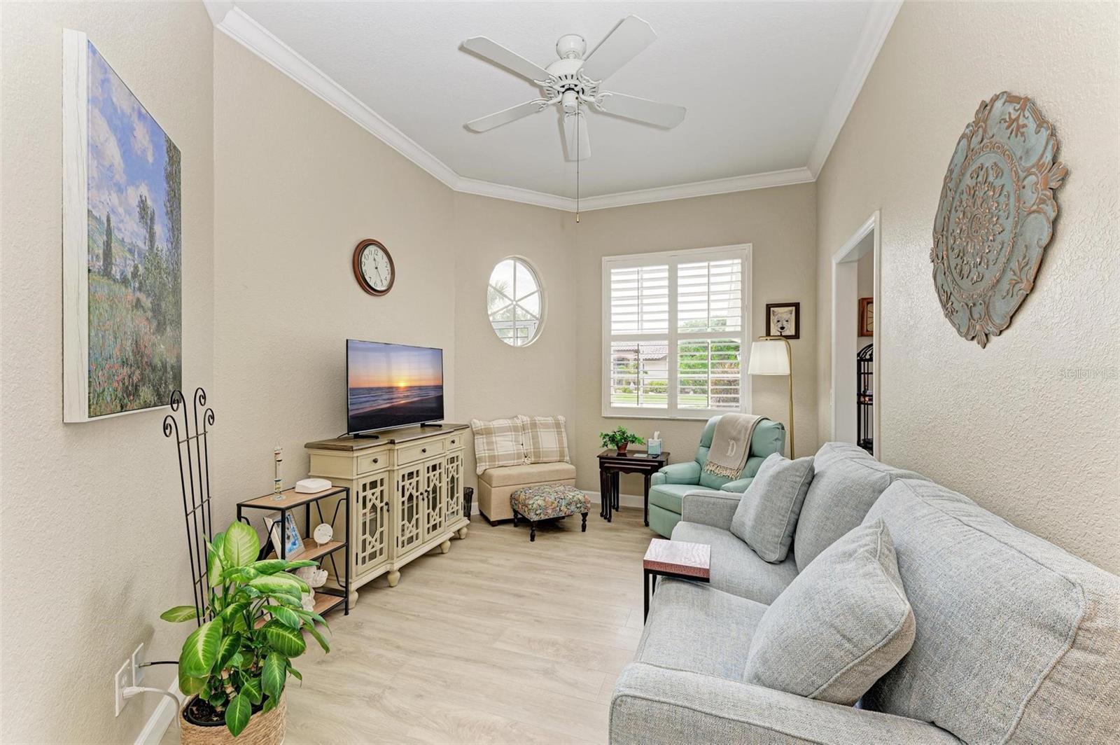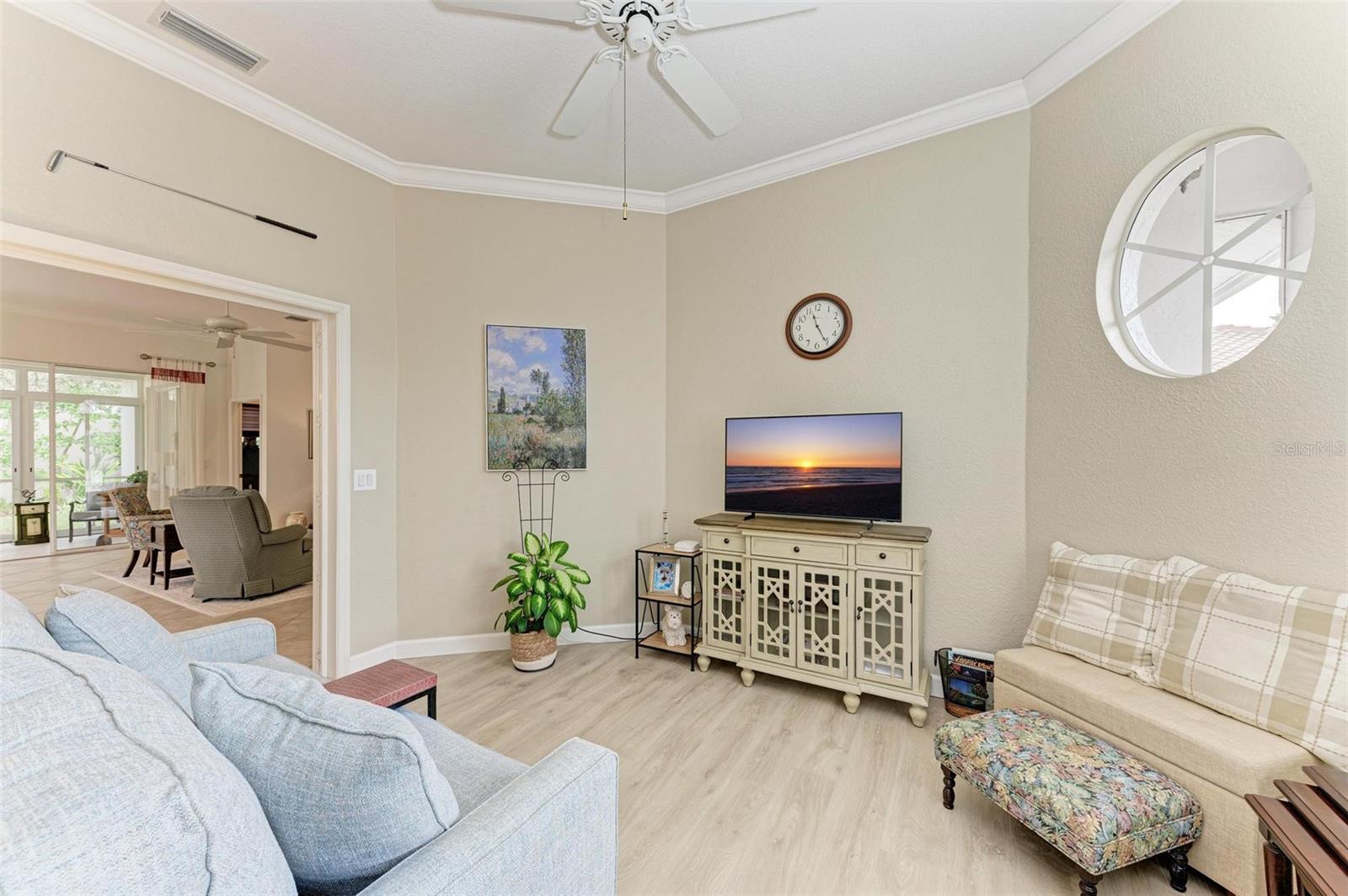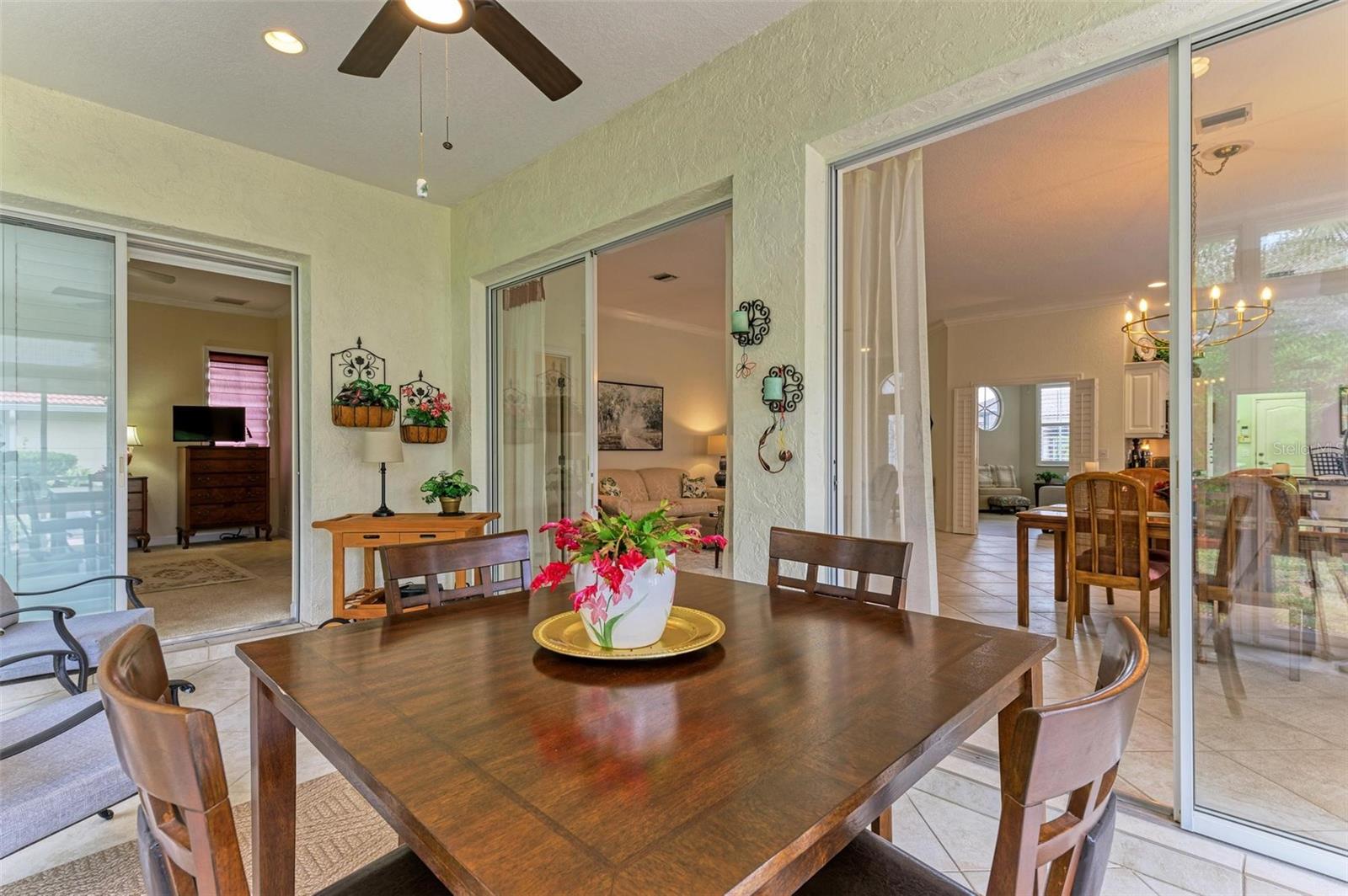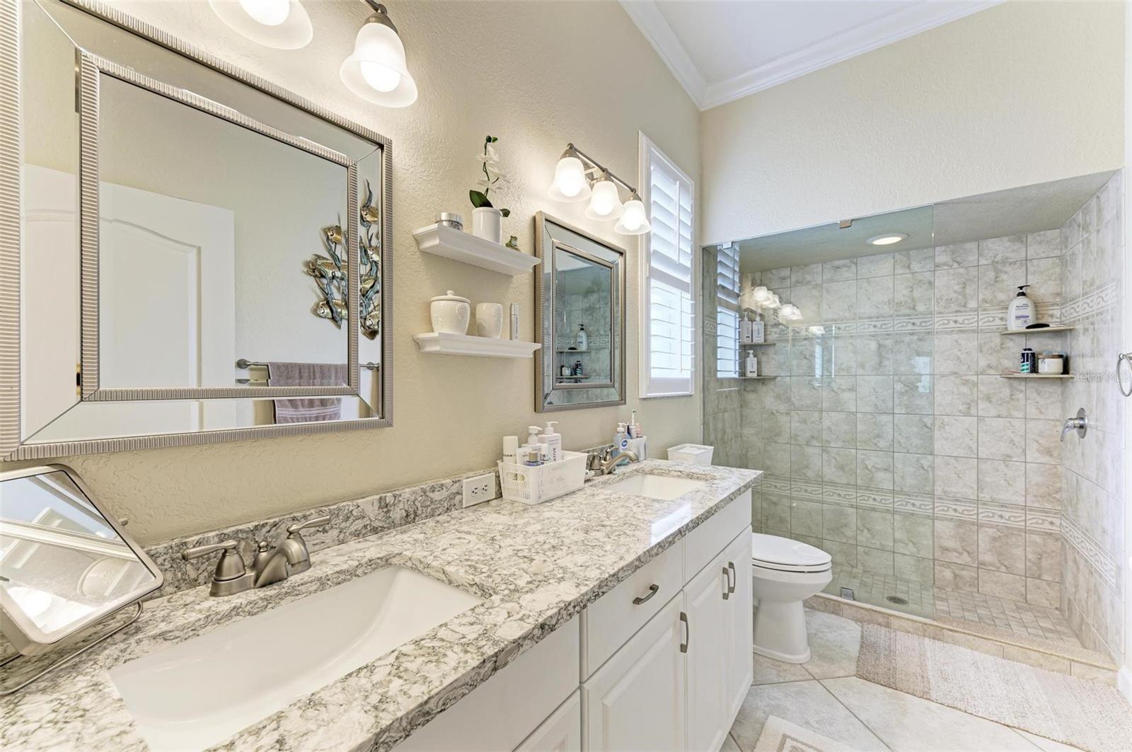 Welcome to 120 Grand Oak Circle, a stunning 3 bedroom, 2 bathroom residence nestled within the gated community of Hidden Lakes Club! This sophisticated home with NEW roof (2024) seamlessly combines contemporary design with classic elegance, ideal for those who value comfort and style. As you enter through the screened-in front entryway, you are greeted by an open floor plan that seamlessly connects the main living areas, all adorned with tile flooring and crown molding which graces every room, adding a touch of refinement throughout. The heart of the home, the kitchen, stands as a testament to both style and functionality, featuring sleek granite countertops that are sure to inspire your culinary adventures. The master bedroom with own private access to the Florida room is your own personal haven, featuring a spacious walk-in closet, remodeled en-suite with granite countertops, dual sinks, and a walk-in tile shower, providing a spa-like experience. The guest bedrooms are enhanced with newer luxury vinyl flooring, ensuring both beauty and durability. The remodeled guest bathroom is equally impressive, featuring granite countertops and a tiled shower/tub combo, offering guests both coziness and charm. Step into the glass enclosed all seasons room, a bright and versatile air-conditioned space that’s ideal for unwinding in comfort or hosting gatherings with ease. This flexible area offers year-round enjoyment, making it perfect for relaxation or entertaining guests. Just outside, you'll find an expansive paver patio, perfect for embracing the Florida outdoor lifestyle. The patio offers a tranquil setting with views of the peaceful pond and the nearby community clubhouse, creating a seamless blend of indoor and outdoor living. With meticulous attention to detail, this home is a true gem. Located just minutes from I-75, this home offers easy access for both daily commutes and weekend getaways, while also being only a short drive from the lively Venice Island. On Venice Island, you can explore charming boutiques, savor waterfront dining, and relax on the beautiful Venice Beach. The area is full of activities, from top-rated golf courses and scenic parks to cultural highlights like theaters and art galleries. For outdoor enthusiasts, there are plenty of trails, kayaking spots, and opportunities to enjoy breathtaking Gulf Coast sunsets. With everything just around the corner, this home provides the perfect balance of peaceful living and convenient access to all the excitement the area has to offer. Experience the elegance and charm of 120 Grand Oak Circle, where modern living meets timeless beauty and begin to live the Endless Summer Living lifestyle!