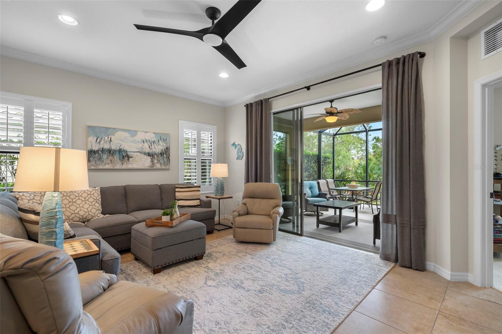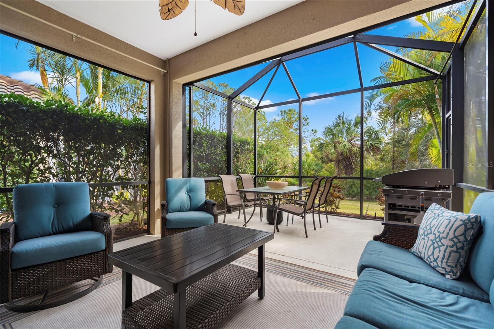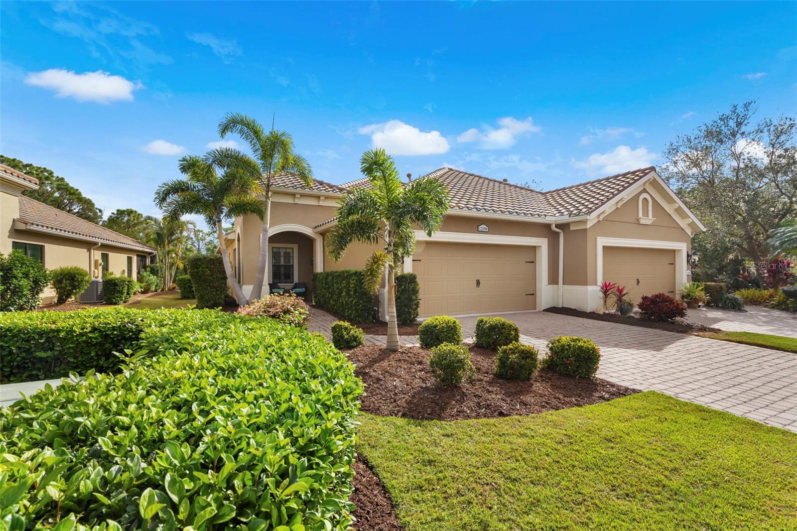 Step inside this lovely modern maintenance-free villa, situated on a quiet cul-de-sac in the highly desirable Grand Palm community! This two bed, two bath property with den/office is perfect for a winter's getaway or year-round living. The open concept kitchen boasts beautiful granite countertops and maximizes space with the large center island. It's great for having dinner with friends and family or hosting a game night! Plantation shutters adorn the windows throughout and two handcrafted sliding barn doors offer privacy along with charm and beauty. The expansive master suite features two walk-in closets and dual sinks for added convenience and space. The kitchen/living room combination leads out to the generously extended lanai to enjoy the back yard privacy of the beautiful Florida foliage. Grand Palm is an amenity-rich community nested in the growing and highly desirable Wellen Park, home of the Atlanta Braves spring training facilities. A variety of restaurants and specialty shops are available in downtown Wellen Park along with many events throughout the year for all to enjoy. Grand Palm itself offers a very active community with over 28 miles of trails throughout the beautiful nature preserves, three community pools, a fitness center, pickleball and tennis courts and bocce ball that provide endless opportunities for community engagement, exercise, and fun. Schedule a private showing today!