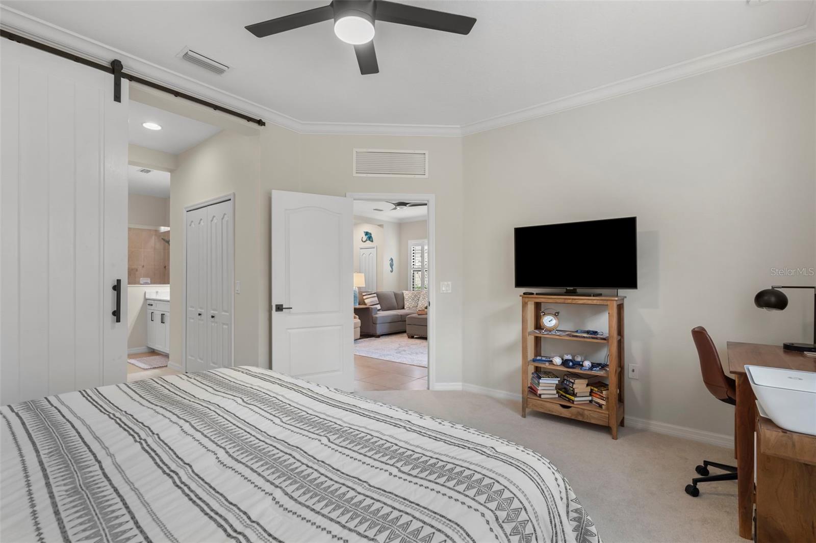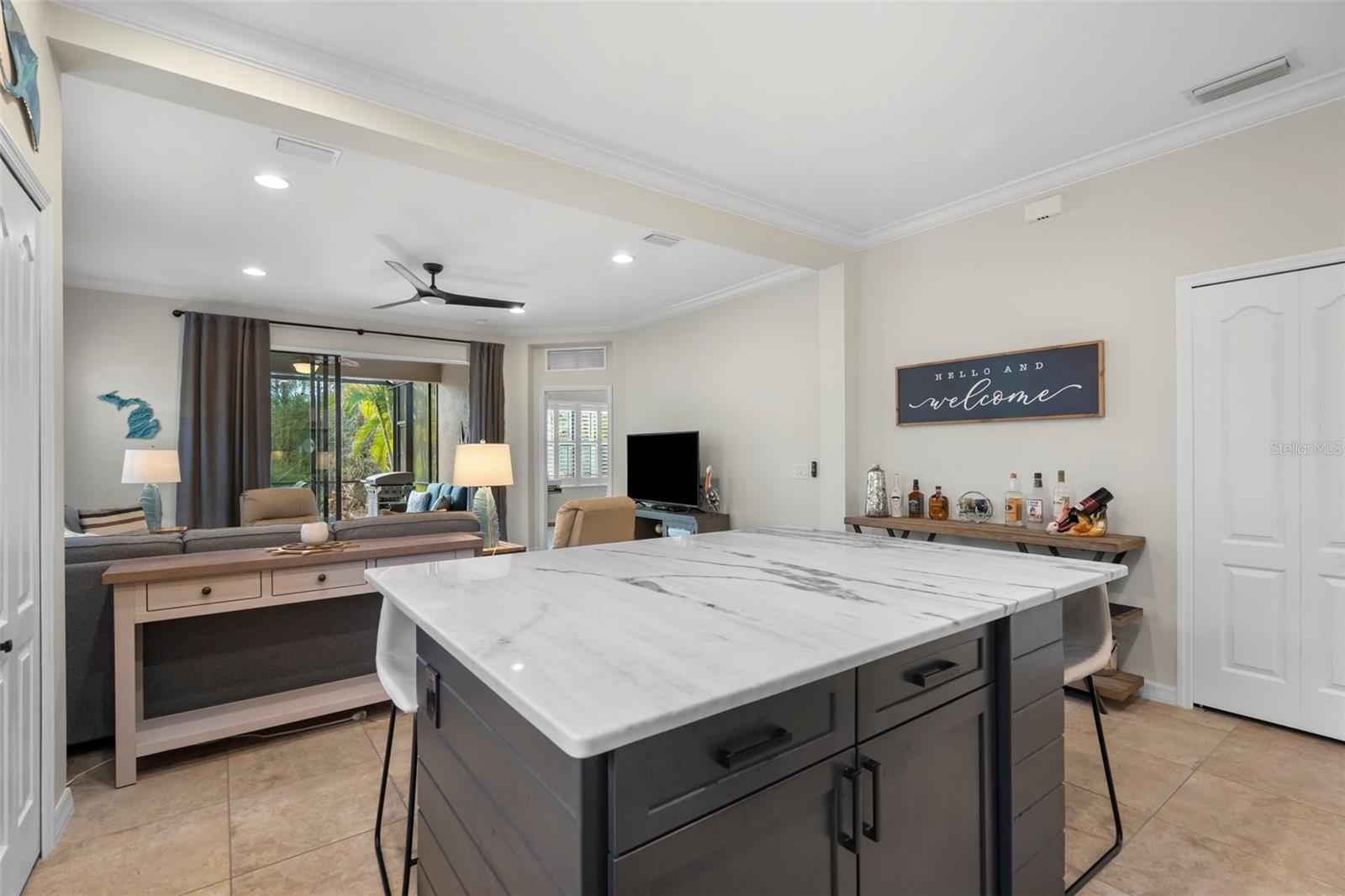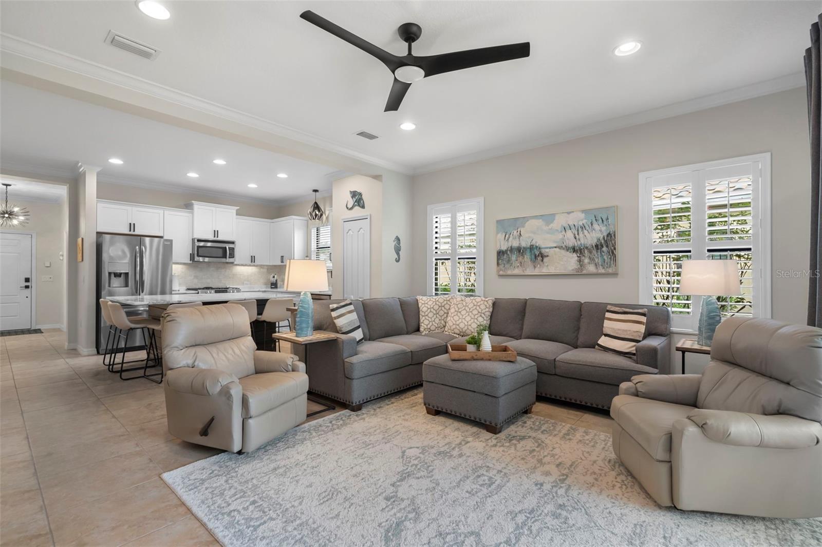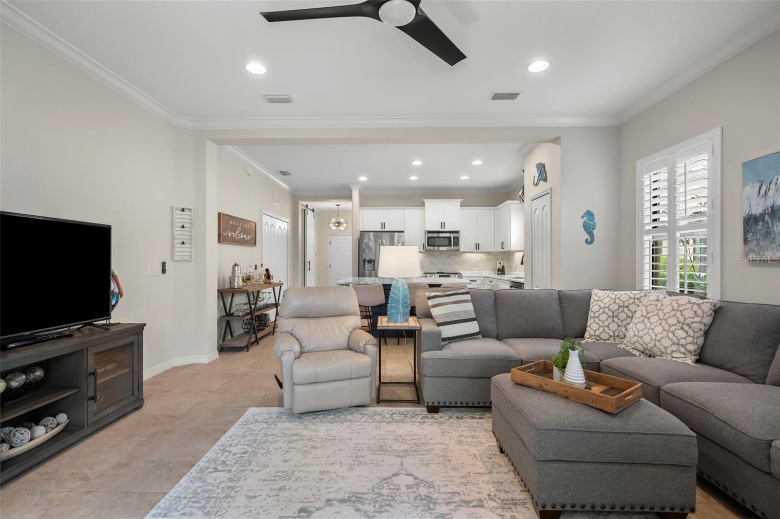 Step inside this lovely modern maintenance-free villa, situated on a quiet cul-de-sac in the highly desirable Grand Palm community! This two bed, two bath property with den/office is perfect for a winter's getaway or year-round living. The open concept kitchen boasts beautiful granite countertops and maximizes space with the large center island. It's great for having dinner with friends and family or hosting a game night! Plantation shutters adorn the windows throughout and two handcrafted sliding barn doors offer privacy along with charm and beauty. The expansive master suite features two walk-in closets and dual sinks for added convenience and space. The kitchen/living room combination leads out to the generously extended lanai to enjoy the back yard privacy of the beautiful Florida foliage. Grand Palm is an amenity-rich community nested in the growing and highly desirable Wellen Park, home of the Atlanta Braves spring training facilities. A variety of restaurants and specialty shops are available in downtown Wellen Park along with many events throughout the year for all to enjoy. Grand Palm itself offers a very active community with over 28 miles of trails throughout the beautiful nature preserves, three community pools, a fitness center, pickleball and tennis courts and bocce ball that provide endless opportunities for community engagement, exercise, and fun. Schedule a private showing today!