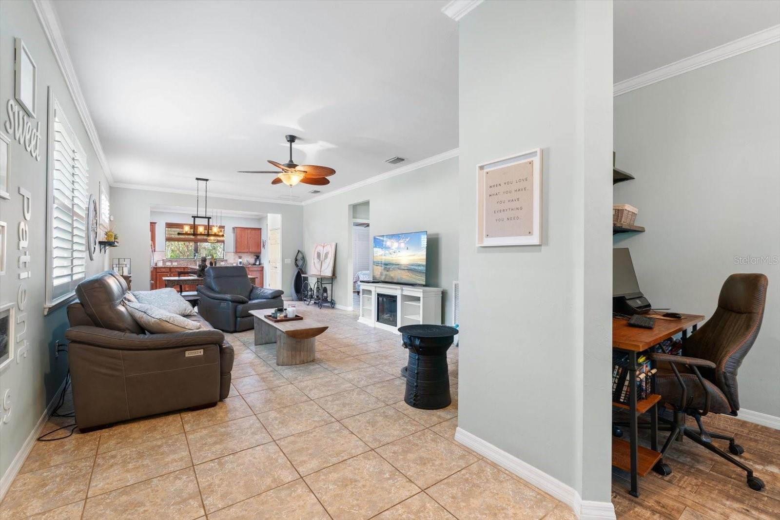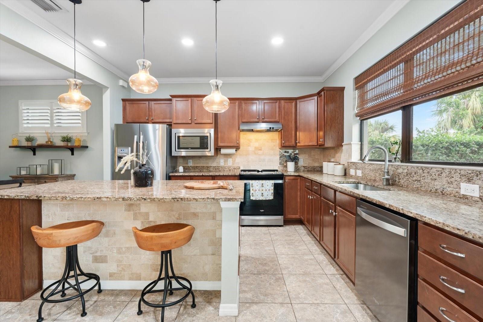 Welcome to this beautifully upgraded DiVosta Taft home, well-situated within the coveted Islandwalk at the West Villages, a community that truly defines resort-style living in Wellen Park. This spacious single-family home is nestled on a premium lot with a private, park-like preserve view, providing the perfect backdrop for relaxed Florida living. The home boasts an open-concept floor plan with extended height 10’ ceilings and an abundance of natural light from the builder upgraded, larger windows throughout. A versatile bonus room with elegant wood-look tile floors can easily be transformed into a home office, playroom, or fitness area, offering flexibility to fit your lifestyle. The primary suite provides direct access to the extended lanai, perfect for enjoying the maintenance free lush landscaping and palm trees. The oversized lanai cage was recently re-screened, ensuring your outdoor spaces remain protected while you bask in the Florida sunshine. A newly added Trex deck offers an additional tranquil outdoor space to savor peaceful sunrises with your morning coffee. The home is equipped with other upgraded features, including Hunter Douglas Plantation shutters, an ADT security system, and new kitchen appliances (dishwasher, microwave, and stove) for ease and convenience. Additional upgrades include an extended garage, providing extra storage space, and thoughtful design touches that elevate the home’s overall appeal and character, such as a custom counter top over the washer and dryer and a modern wood accent wall in the primary bathroom. Islandwalk at the West Villages offers an unmatched lifestyle with top-tier amenities, including 8 Har-Tru tennis courts, 12 pickleball courts, two resort-style pools & spas, bocce courts, two fitness centers, movement rooms, a community room, library, grilling areas, catering kitchens, and a 24-hour guarded gate for peace of mind. With low HOA fees, this vibrant community is just a short drive from the stunning white sand beaches of Venice. Live in luxury and experience the best in Florida living with unparalleled amenities and a home that feels like a private retreat. This fantastic home in Islandwalk is waiting just for you!