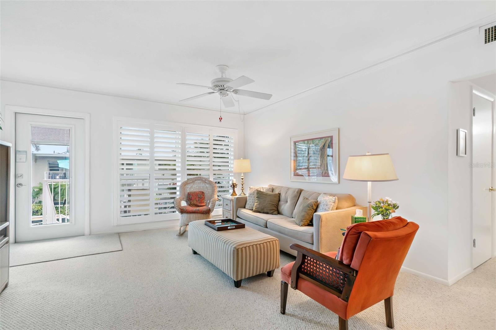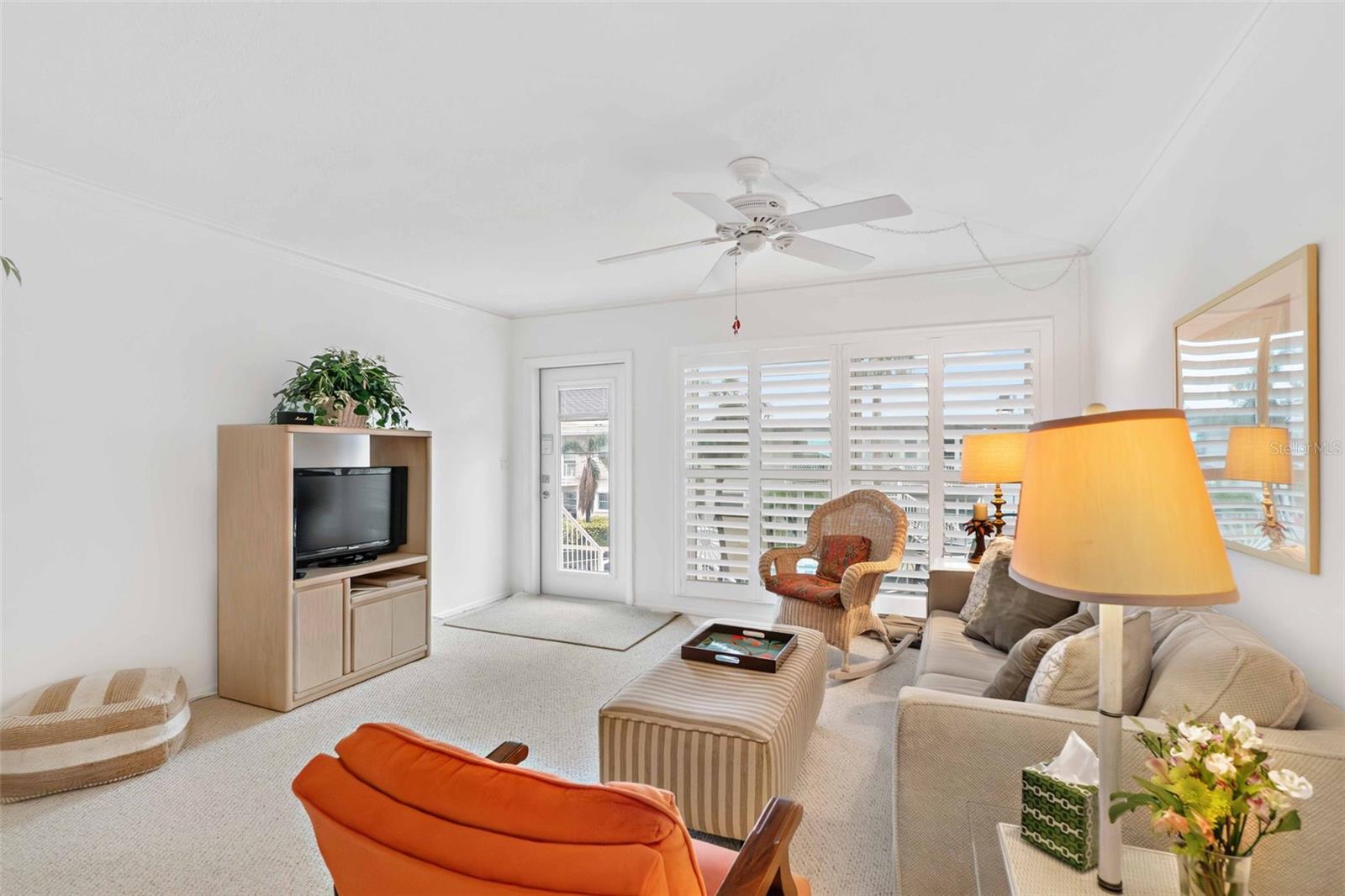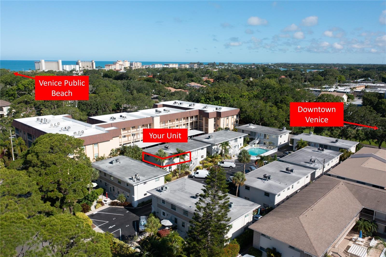 GREAT LOCATION! MOVE-IN READY. END UNIT. HURRICANE RATED WINDOWS. Welcome to Palm Terrace, a 55+Cooperative community ideally located steps to Downtown Venice and two blocks from Venice Beach. Located on beautiful Venice Avenue directly across the street from Heritage Park, you will find this second floor, 2 bedroom, 1.5 bathroom END UNIT to be light and bright throughout. A front patio provides the opportunity to enjoy your morning coffee or evening beverage. <br> <br> Being a snowbird home, it is lightly used and includes the value-added features of newer HURRICANE STANDARD WINDOWS and FRONT DOOR, plentiful plantation shutters, crown molding, newer A/C (2018), and one assigned parking spot directly in front of the unit. You will also love the spacious combo living/dining area and an over-sized primary bedroom with a walk-in closet and ensuite half bath. The unit is partially furnished with the exception of wall décor and the guest bedroom. <br> <br> Palm Terrace is an intimate community with 32 units in eight buildings. You will find it to be well managed and maintained (newer plumbing stacks, water lines and roofs), beautifully landscaped, and there is a heated pool for year-round enjoyment. The communal laundry room is free for resident use with three washers and three dryers. <br> <br> Living at Palm Terrace is a walker's dream. You are two blocks from Venice's picturesque downtown and its diverse dining, boutique shopping, entertainment options, and regular slate of festivals and concerts at Centennial Park. The weekly farmer's market, tennis/pickleball/shuffleboard/basketball courts at Hecksher Park, Venice, Art Center, Venice Library, and Venice Community Center are all within easy walking distance. And Venice Beach is also an easy walk or bike ride being only two blocks away for sunsets, beachcombing, yoga on the beach, or listening to the regular evening music jams under the Pavilion! <br> <br> Call now to start living the Venice Island lifestyle! <br> <br>