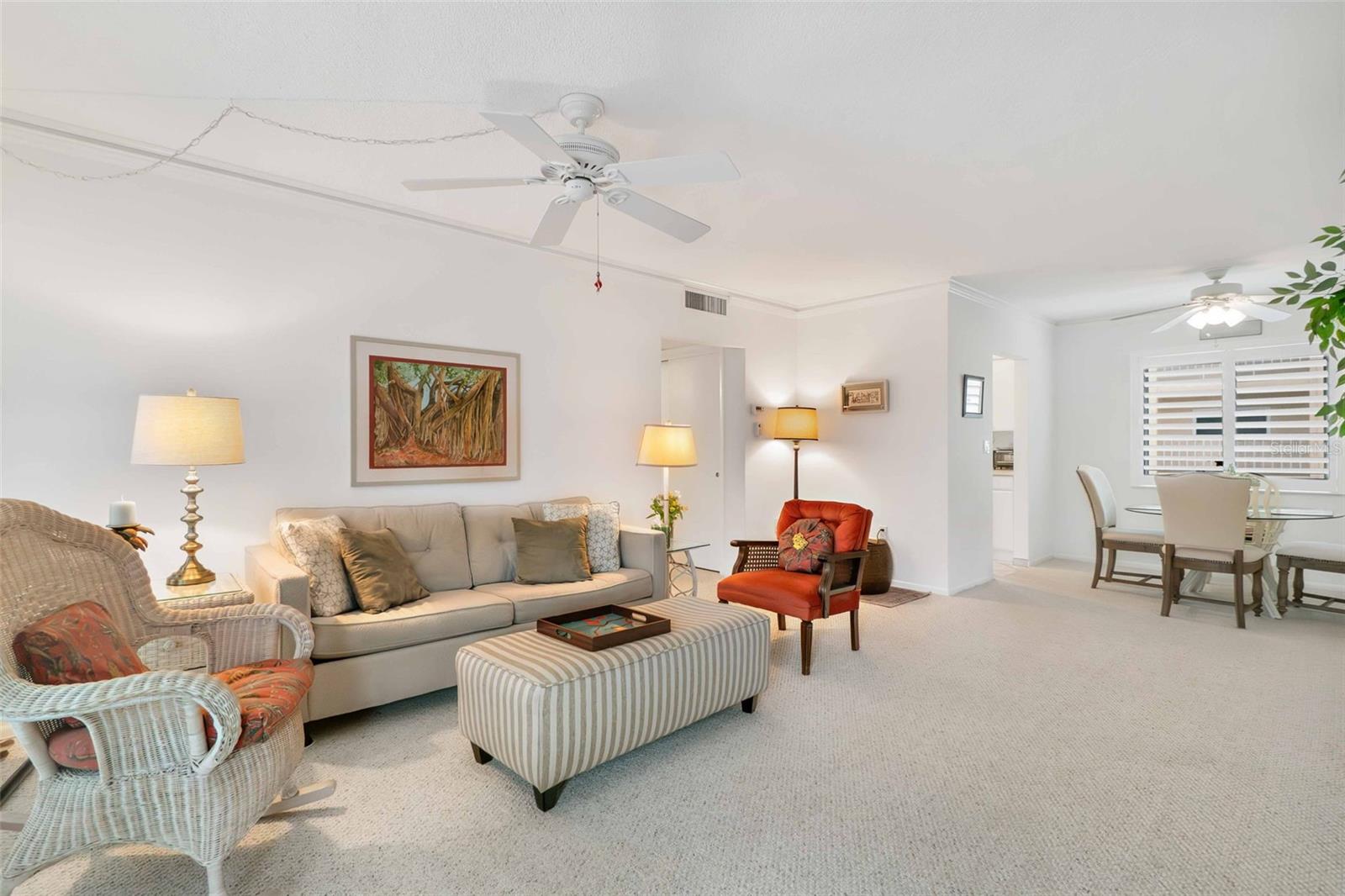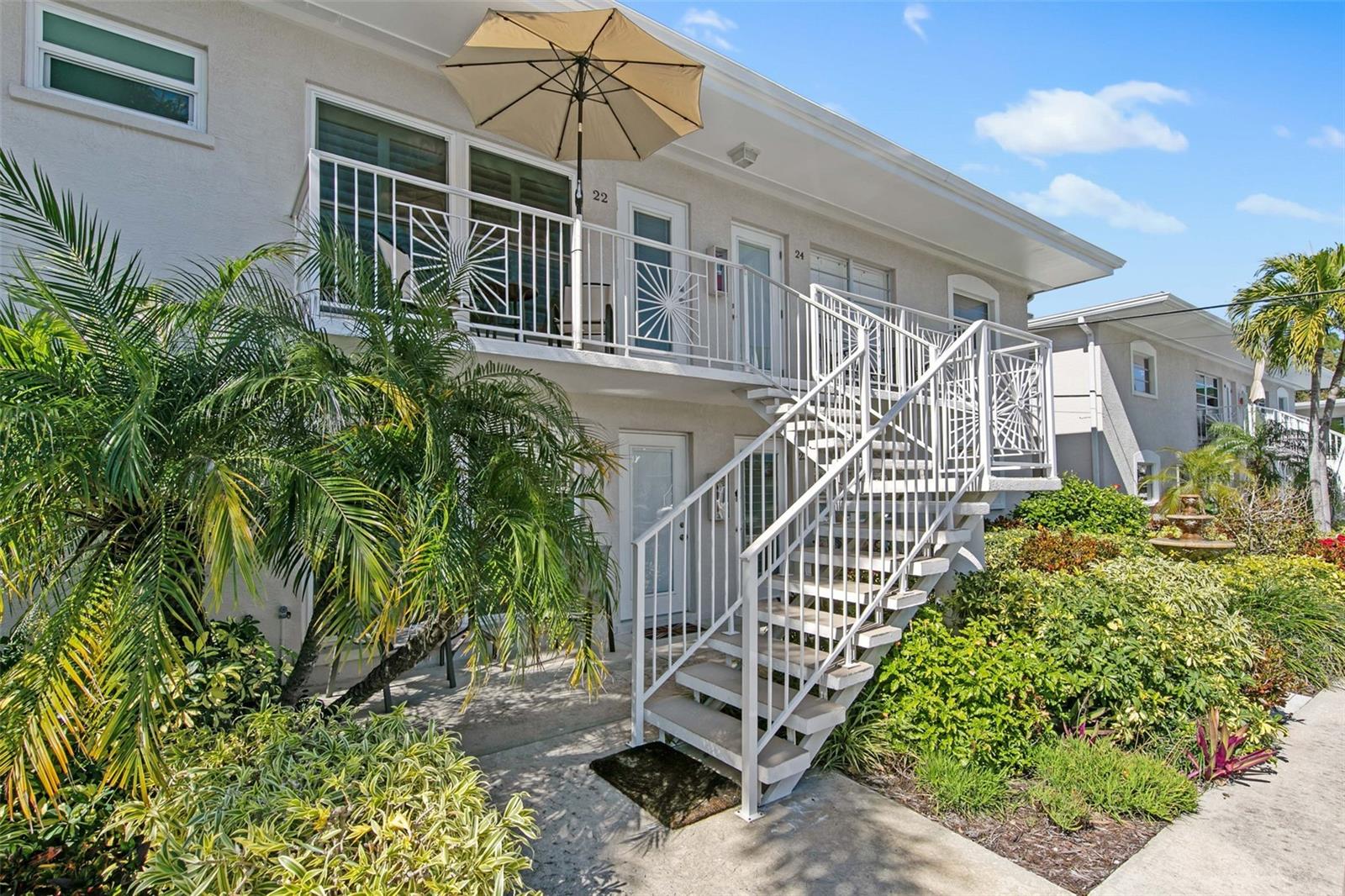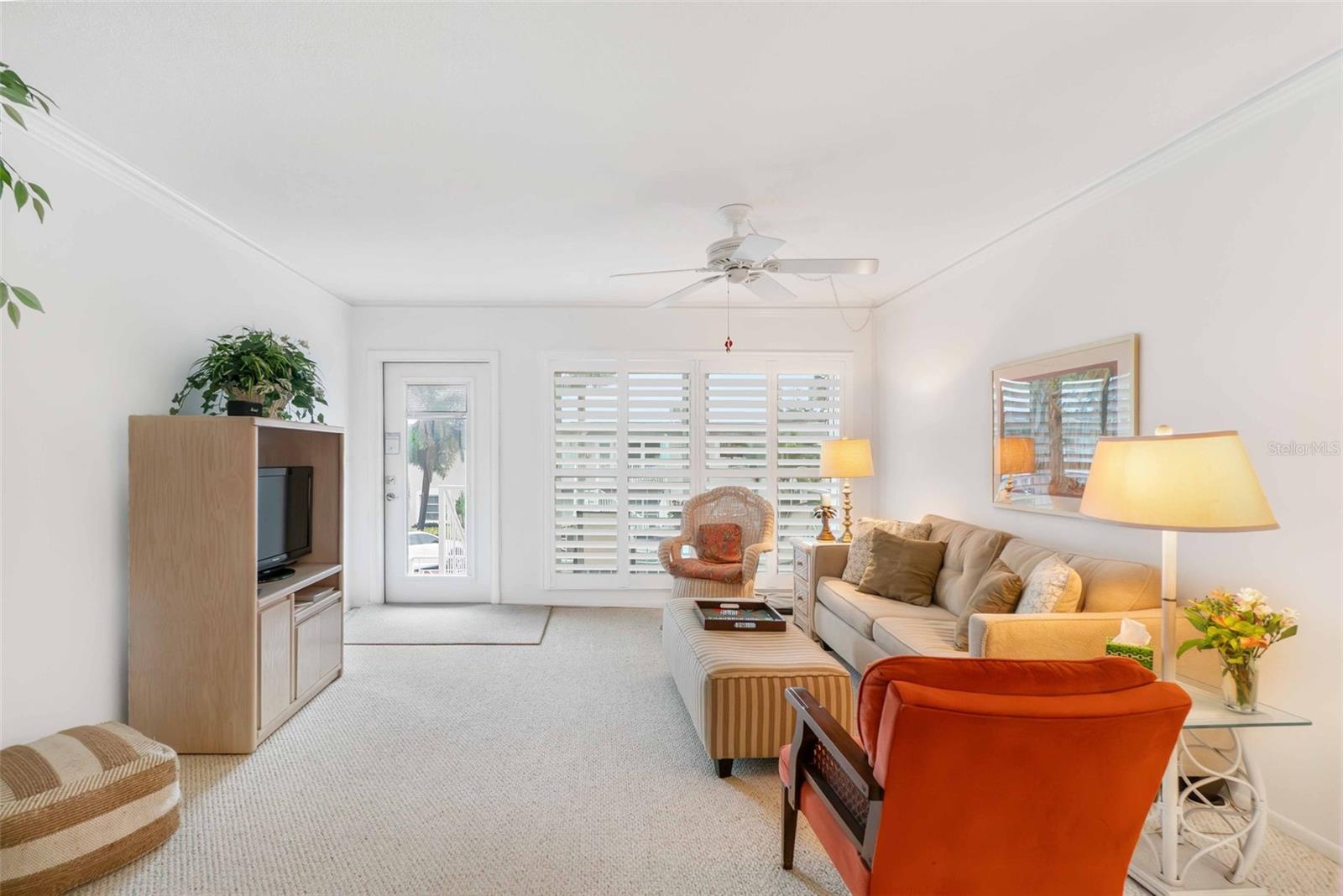 GREAT LOCATION! MOVE-IN READY. END UNIT. HURRICANE RATED WINDOWS. Welcome to Palm Terrace, a 55+Cooperative community ideally located steps to Downtown Venice and two blocks from Venice Beach. Located on beautiful Venice Avenue directly across the street from Heritage Park, you will find this second floor, 2 bedroom, 1.5 bathroom END UNIT to be light and bright throughout. A front patio provides the opportunity to enjoy your morning coffee or evening beverage. <br> <br> Being a snowbird home, it is lightly used and includes the value-added features of newer HURRICANE STANDARD WINDOWS and FRONT DOOR, plentiful plantation shutters, crown molding, newer A/C (2018), and one assigned parking spot directly in front of the unit. You will also love the spacious combo living/dining area and an over-sized primary bedroom with a walk-in closet and ensuite half bath. The unit is partially furnished with the exception of wall décor and the guest bedroom. <br> <br> Palm Terrace is an intimate community with 32 units in eight buildings. You will find it to be well managed and maintained (newer plumbing stacks, water lines and roofs), beautifully landscaped, and there is a heated pool for year-round enjoyment. The communal laundry room is free for resident use with three washers and three dryers. <br> <br> Living at Palm Terrace is a walker's dream. You are two blocks from Venice's picturesque downtown and its diverse dining, boutique shopping, entertainment options, and regular slate of festivals and concerts at Centennial Park. The weekly farmer's market, tennis/pickleball/shuffleboard/basketball courts at Hecksher Park, Venice, Art Center, Venice Library, and Venice Community Center are all within easy walking distance. And Venice Beach is also an easy walk or bike ride being only two blocks away for sunsets, beachcombing, yoga on the beach, or listening to the regular evening music jams under the Pavilion! <br> <br> Call now to start living the Venice Island lifestyle! <br> <br>
