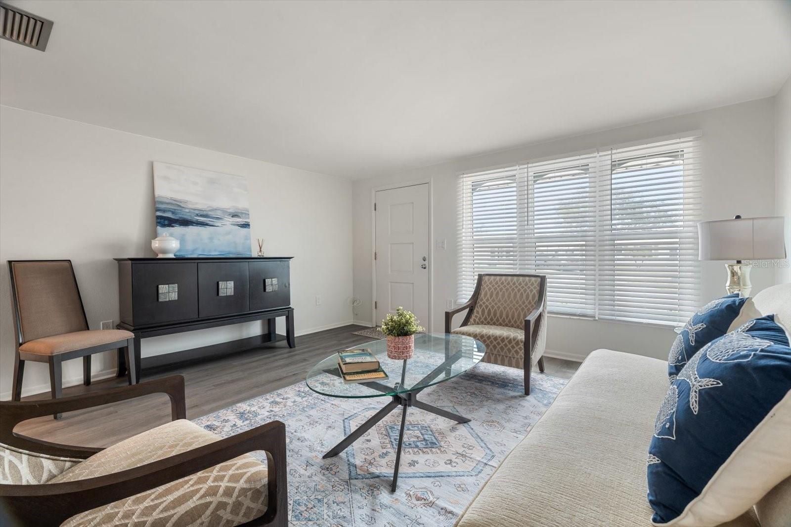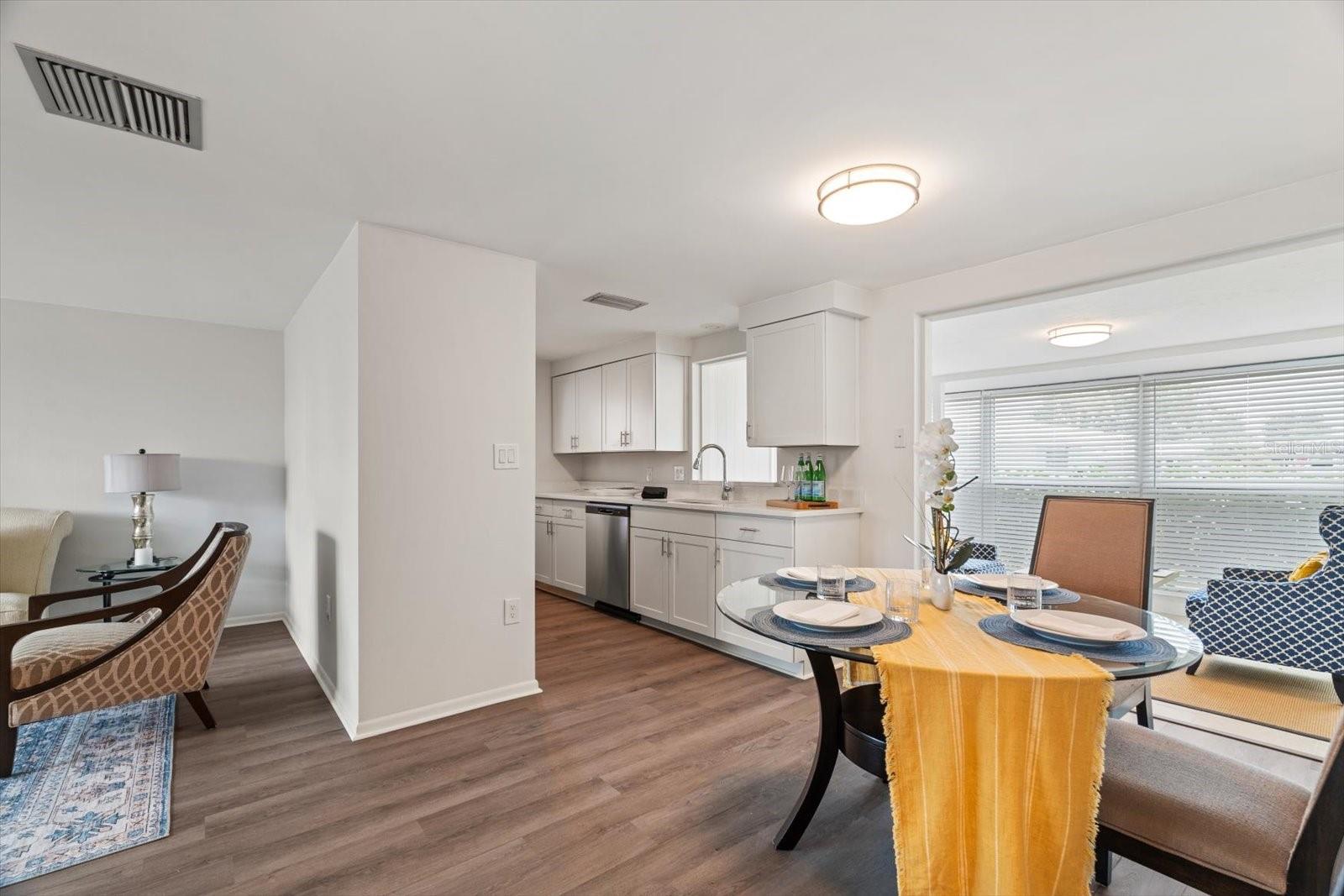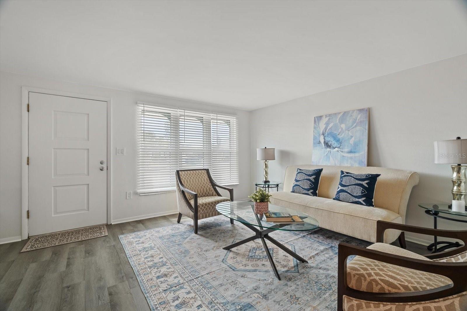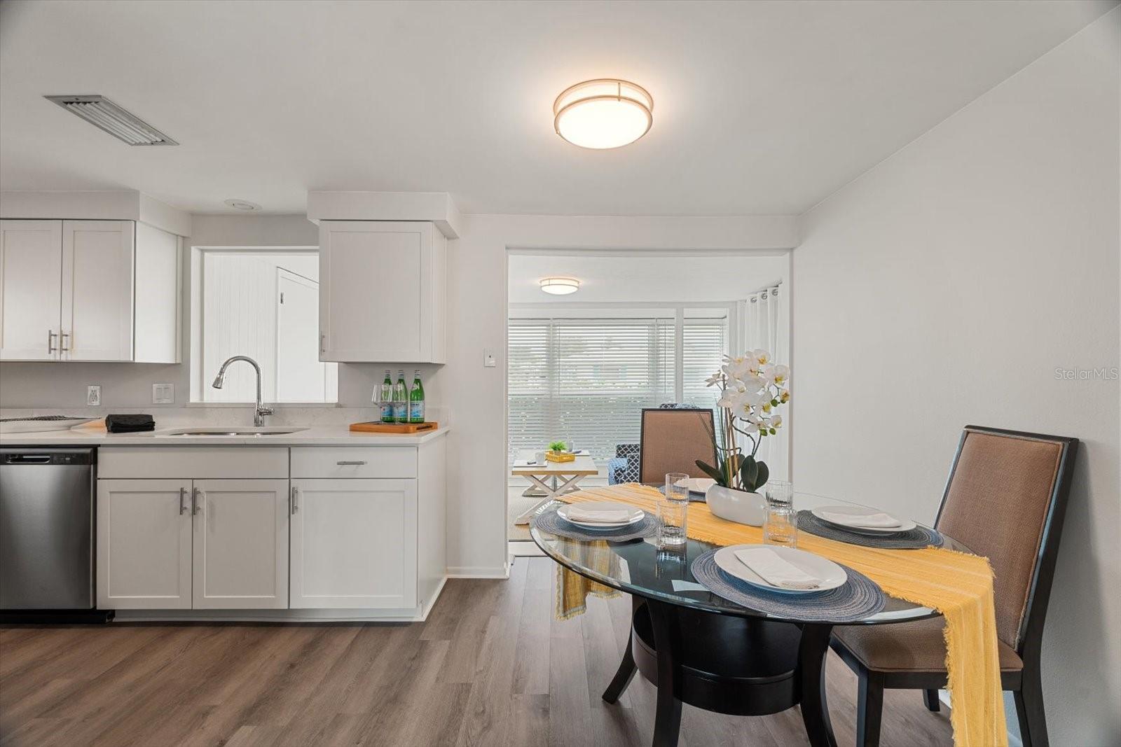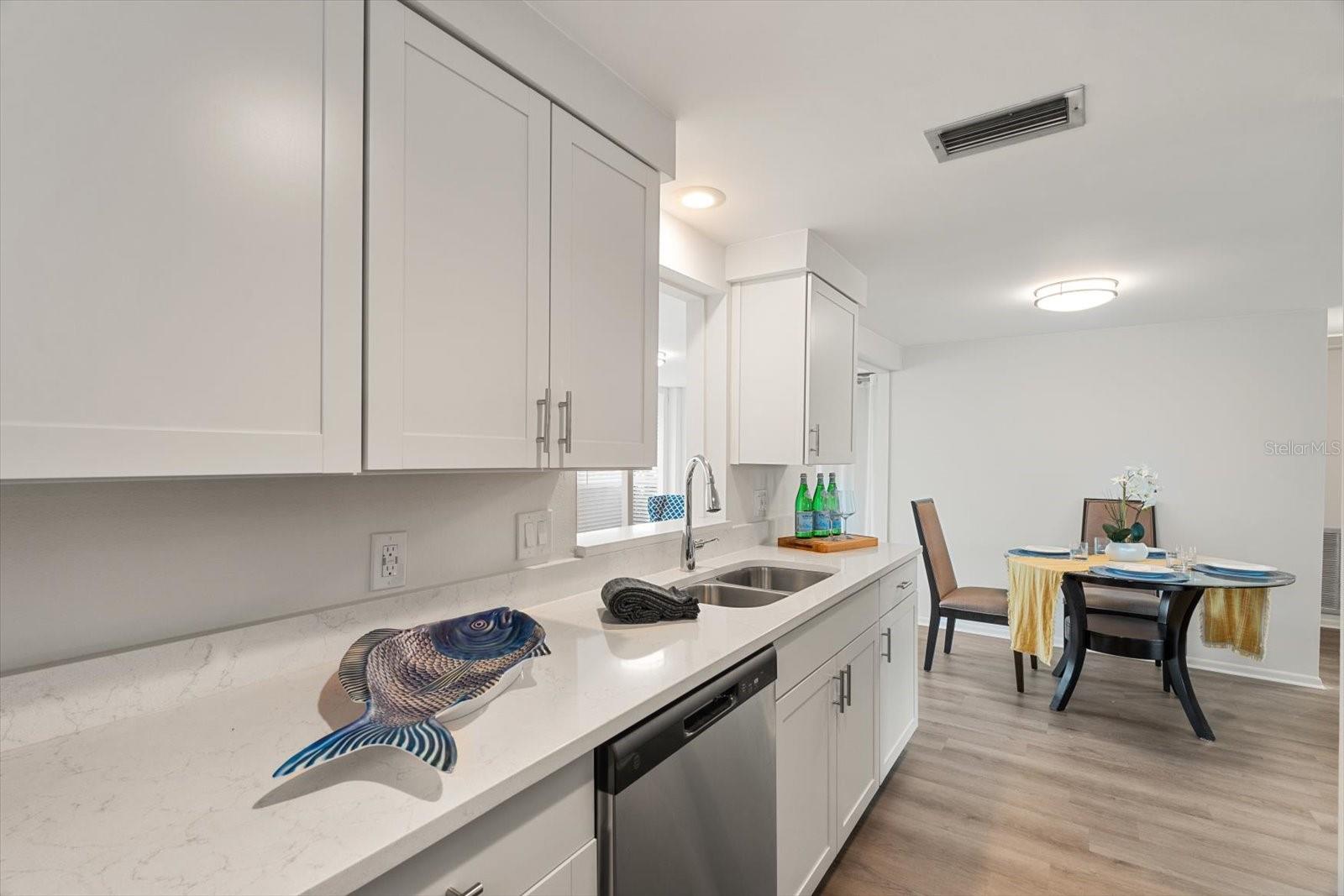 WHAT A GREAT PRICE ON THIS UPDATED freestanding villa in the wonderful community of Circlewoods of Venice. Everything has been UPDATED and is ready for you to move right in. Walk through the new front storm door and enjoy the wide-open floor plan with plenty of natural light and space for everyone to relax. Enter into the living and dining space with views out to the bonus Florida room which is enclosed and now air-conditioned space. Luxury vinyl plank flooring has been installed throughout most of the home with ceramic tile in the Florida room and 2nd bedroom. Enjoy the updated kitchen with NEW cabinets, QUARTZ countertops and all NEW STAINLESS-STEEL APPLIANCES. Plumbing in kitchen has all been updated with new shutoff valves, fixture feeds, drains and garbage disposal. There is new LIGHTING throughout providing a fresh look. All appliances are new, including the WASHER AND DRYER. Florida room provides a bonus area for use such as den, tv room, or sitting room. Both bathrooms have been updated with new medicine cabinets, toilets, vanity and sinks as well as fresh paint, flooring and trim. POPCORN CEILING has been removed from all the home. ALL WINDOWS HAVE BEEN REPLACED throughout the home in fall 2023. A/C is 2022. Water heater is 2022. The laundry room is off the Florida room and has new electrical and new washer and dryer. NEW window coverings throughout 2025. Carport includes closets the full length for your beach toys, bikes and other items. There is also room outside the kitchen door for a table and chairs for those beautiful morning cup of coffee or evening suppers. Beaches are a short drive away as well as all the shopping, restaurants and entertainment of Venice. This wonderful community includes an active clubhouse, pool, shuffleboard and bocce ball courts. Come see this lovely home and make it your own! Furniture can be left for the benefit of new owner.