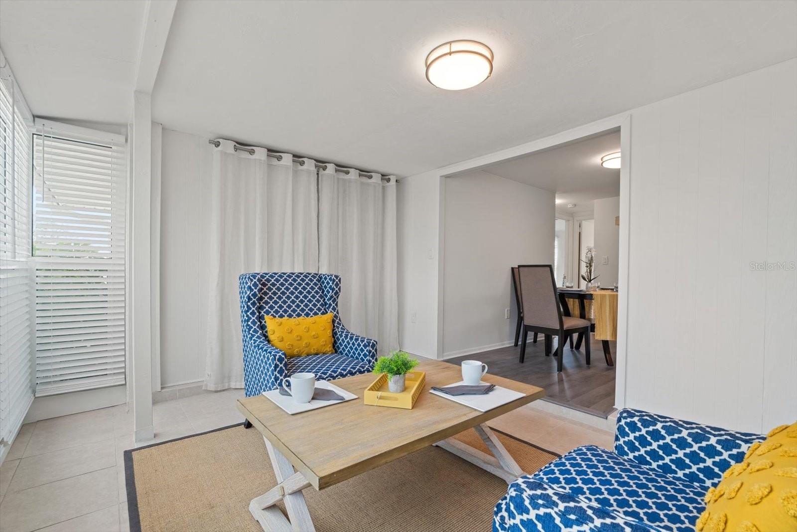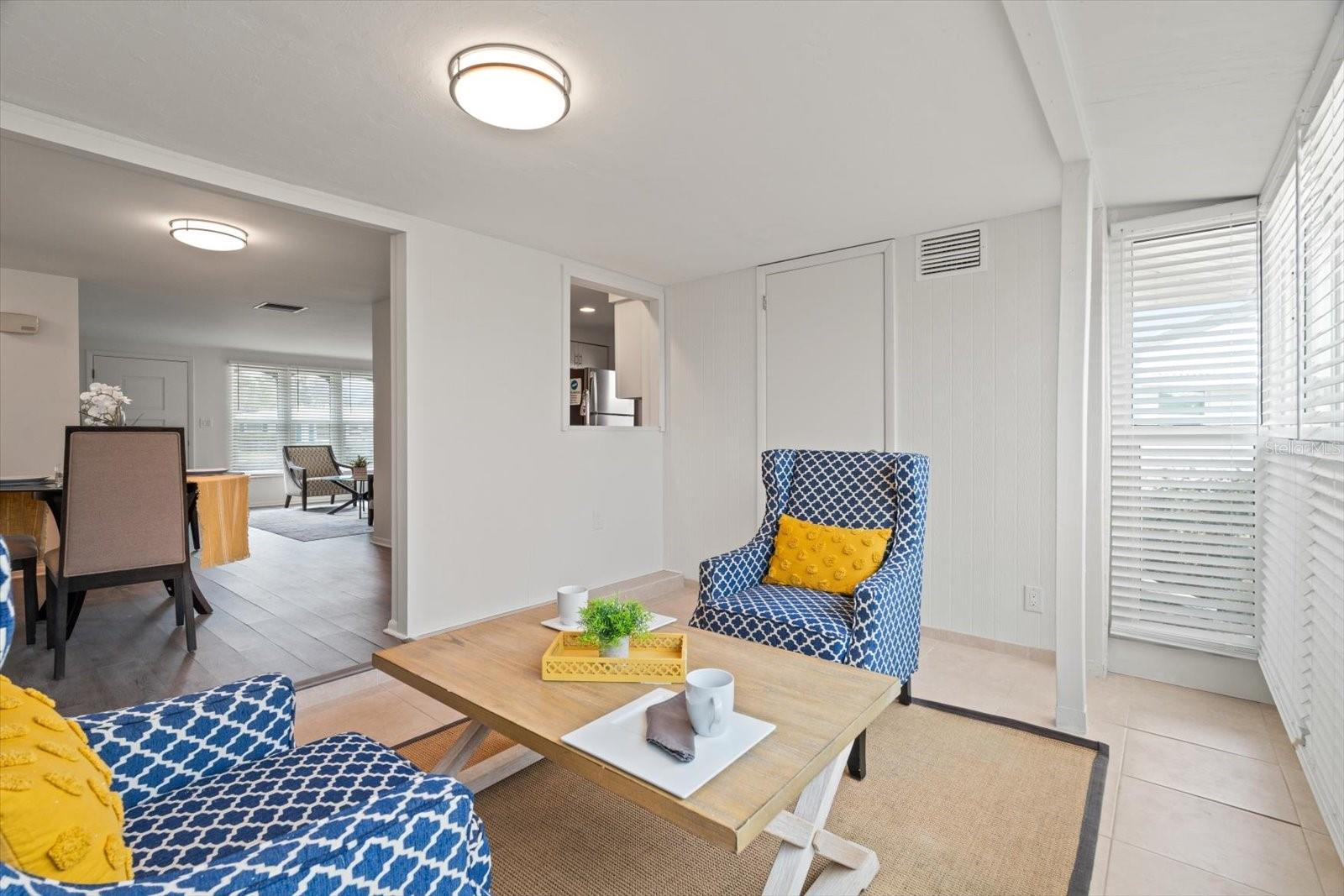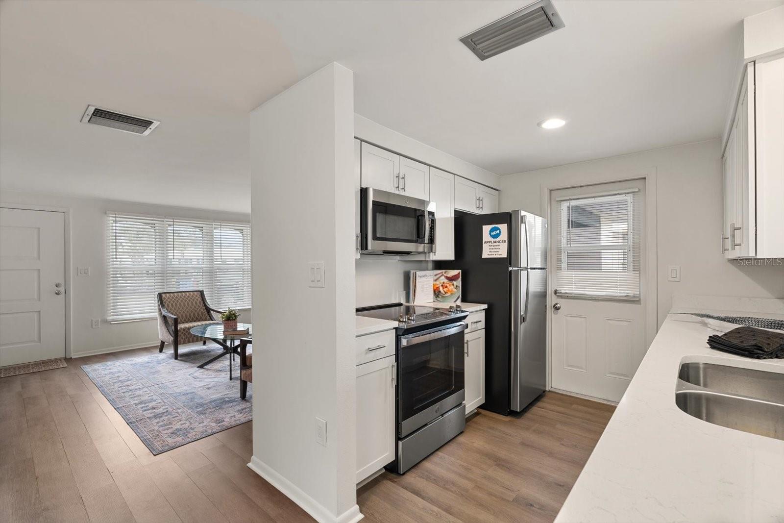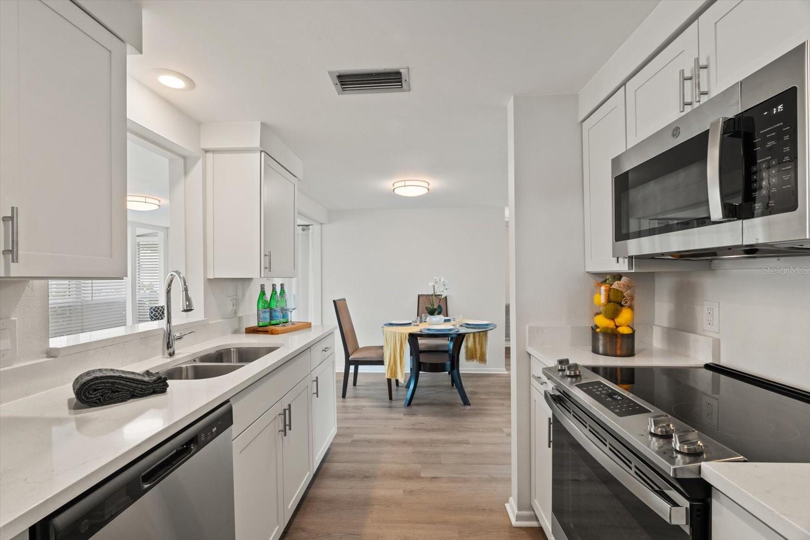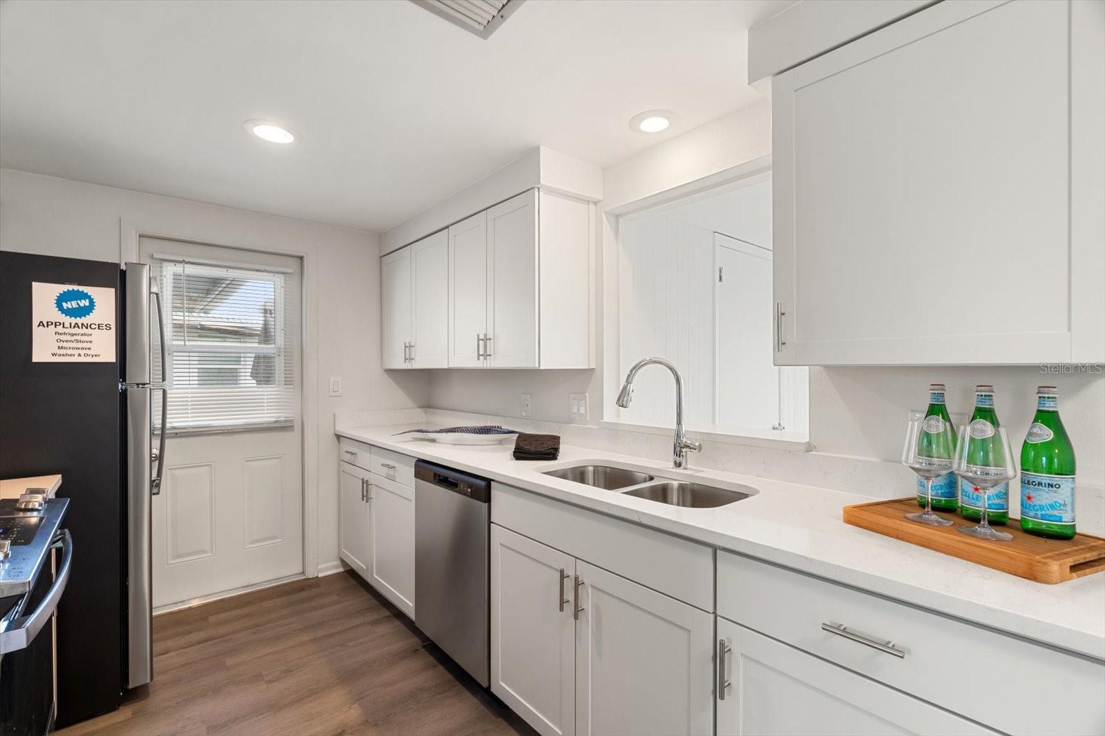 WHAT A GREAT PRICE ON THIS UPDATED freestanding villa in the wonderful community of Circlewoods of Venice. Everything has been UPDATED and is ready for you to move right in. Walk through the new front storm door and enjoy the wide-open floor plan with plenty of natural light and space for everyone to relax. Enter into the living and dining space with views out to the bonus Florida room which is enclosed and now air-conditioned space. Luxury vinyl plank flooring has been installed throughout most of the home with ceramic tile in the Florida room and 2nd bedroom. Enjoy the updated kitchen with NEW cabinets, QUARTZ countertops and all NEW STAINLESS-STEEL APPLIANCES. Plumbing in kitchen has all been updated with new shutoff valves, fixture feeds, drains and garbage disposal. There is new LIGHTING throughout providing a fresh look. All appliances are new, including the WASHER AND DRYER. Florida room provides a bonus area for use such as den, tv room, or sitting room. Both bathrooms have been updated with new medicine cabinets, toilets, vanity and sinks as well as fresh paint, flooring and trim. POPCORN CEILING has been removed from all the home. ALL WINDOWS HAVE BEEN REPLACED throughout the home in fall 2023. A/C is 2022. Water heater is 2022. The laundry room is off the Florida room and has new electrical and new washer and dryer. NEW window coverings throughout 2025. Carport includes closets the full length for your beach toys, bikes and other items. There is also room outside the kitchen door for a table and chairs for those beautiful morning cup of coffee or evening suppers. Beaches are a short drive away as well as all the shopping, restaurants and entertainment of Venice. This wonderful community includes an active clubhouse, pool, shuffleboard and bocce ball courts. Come see this lovely home and make it your own! Furniture can be left for the benefit of new owner.