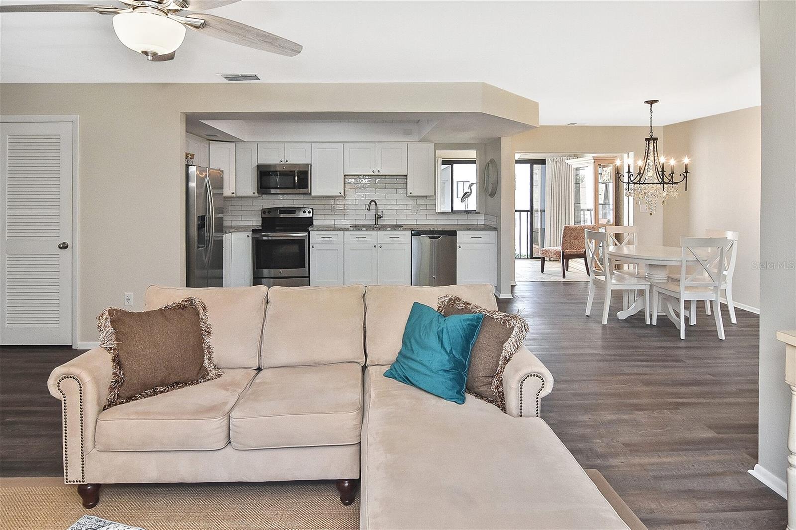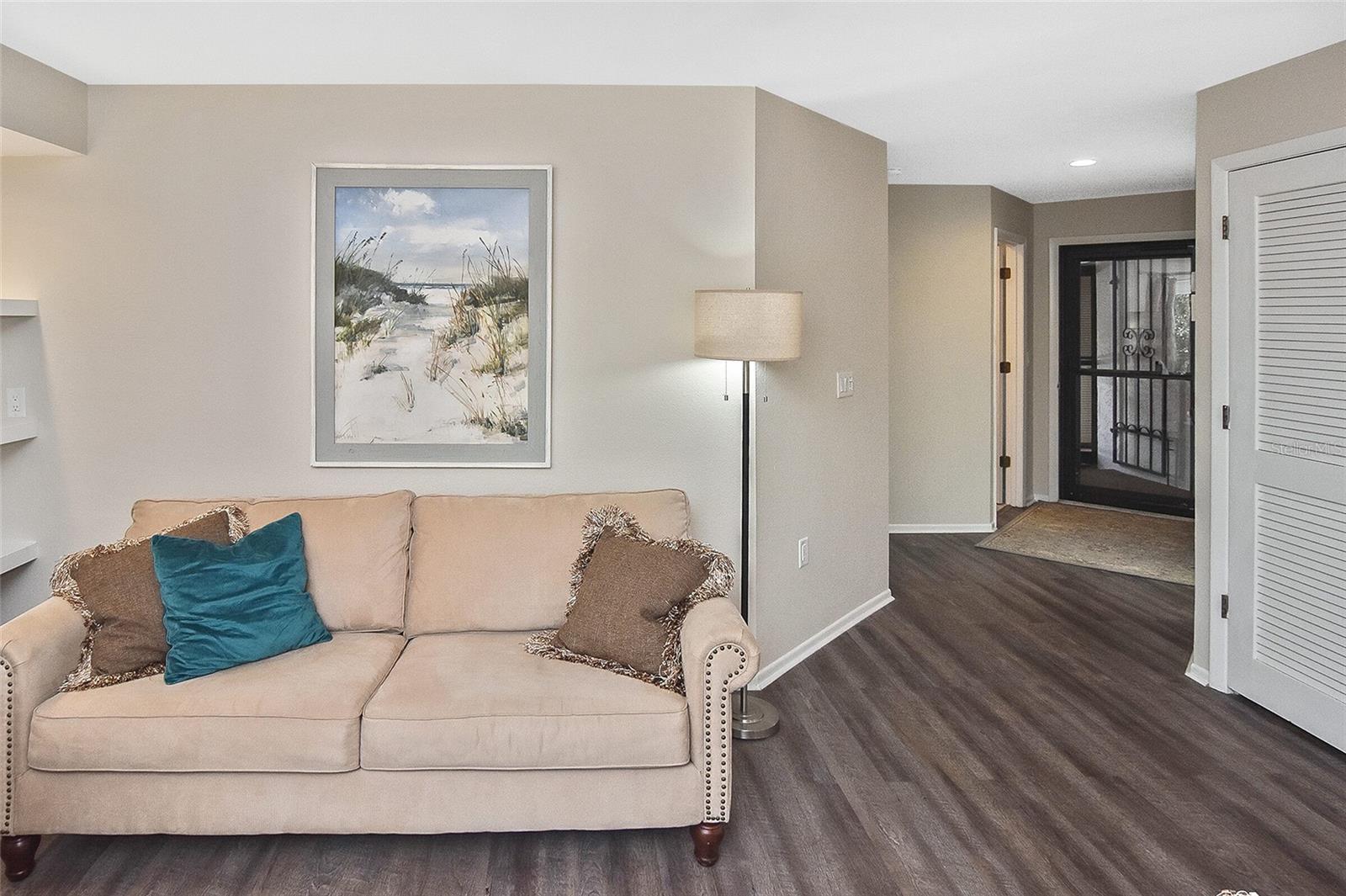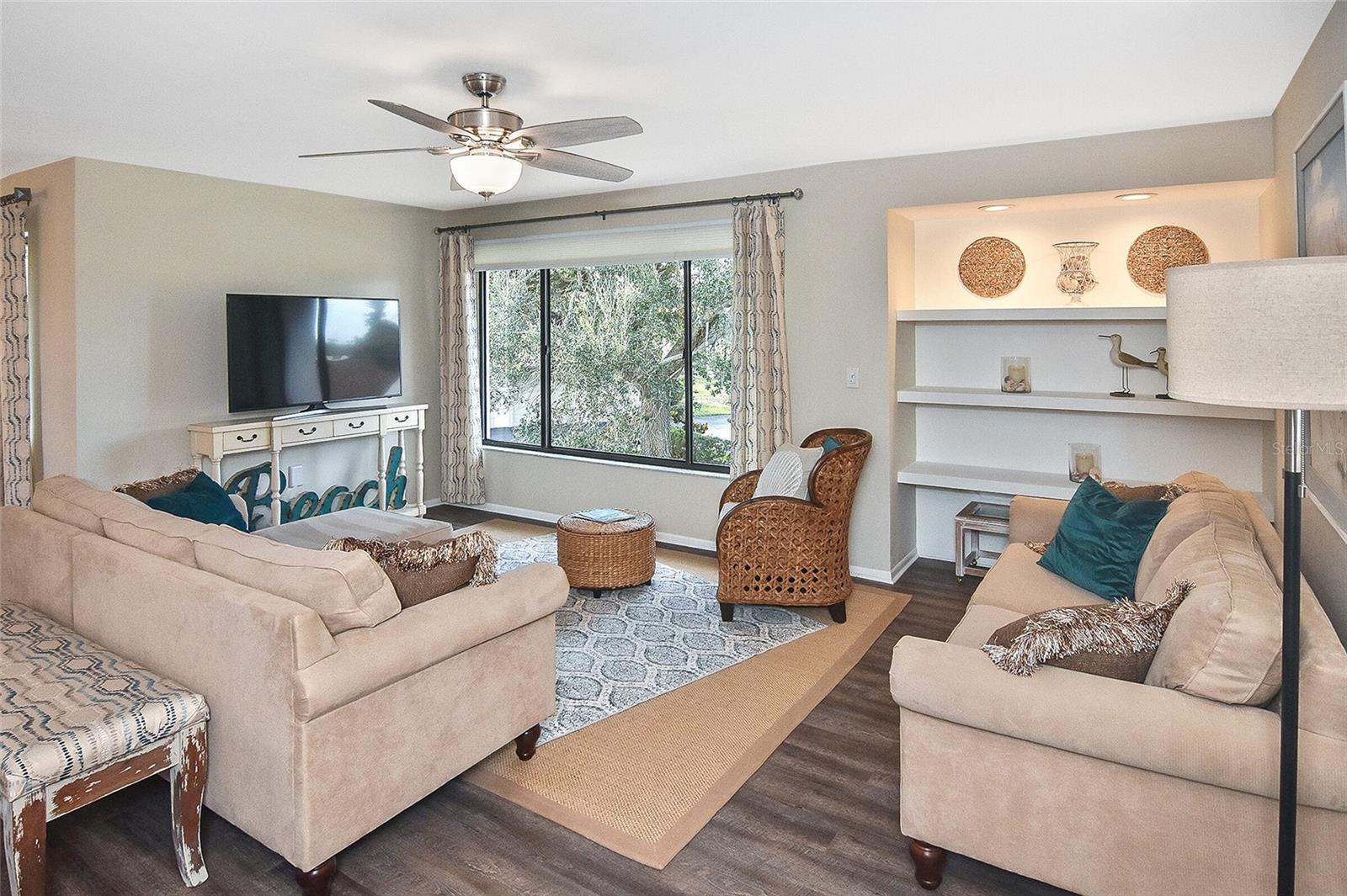 Golf Course Views! This charming, furnished 2-bedroom, 2-bath condo offers a perfect blend of serene living and modern comforts. Inside, you'll find an updated space with a casual, contemporary kitchen and bathrooms. Freshly painted throughout, the condo has a light and welcoming atmosphere, ideal for easy, relaxed living. Step out onto the screened lanai and unwind while enjoying peaceful views of a tranquil pond with a fountain, lush palm trees, and the scenic Capri Isles Golf Course. For added convenience, a private one-car garage offers extra storage space. Just a short walk away, you'll find one of two pools, complete with a cozy cabana and grilling area, perfect for relaxation or entertaining. Tennis and pickleball courts, plus a clubhouse, foster an active and social lifestyle with plenty of community events. The location is unbeatable: only 3 miles to the pristine sands of Venice Beach for sunbathing, swimming, and breathtaking Gulf Coast sunsets. Historic Downtown Venice is nearby, offering charming boutiques, exceptional dining, and cultural experiences. Plus, the Legacy Trail is just around the corner, offering miles of scenic biking and walking paths through Florida's beautiful landscape.