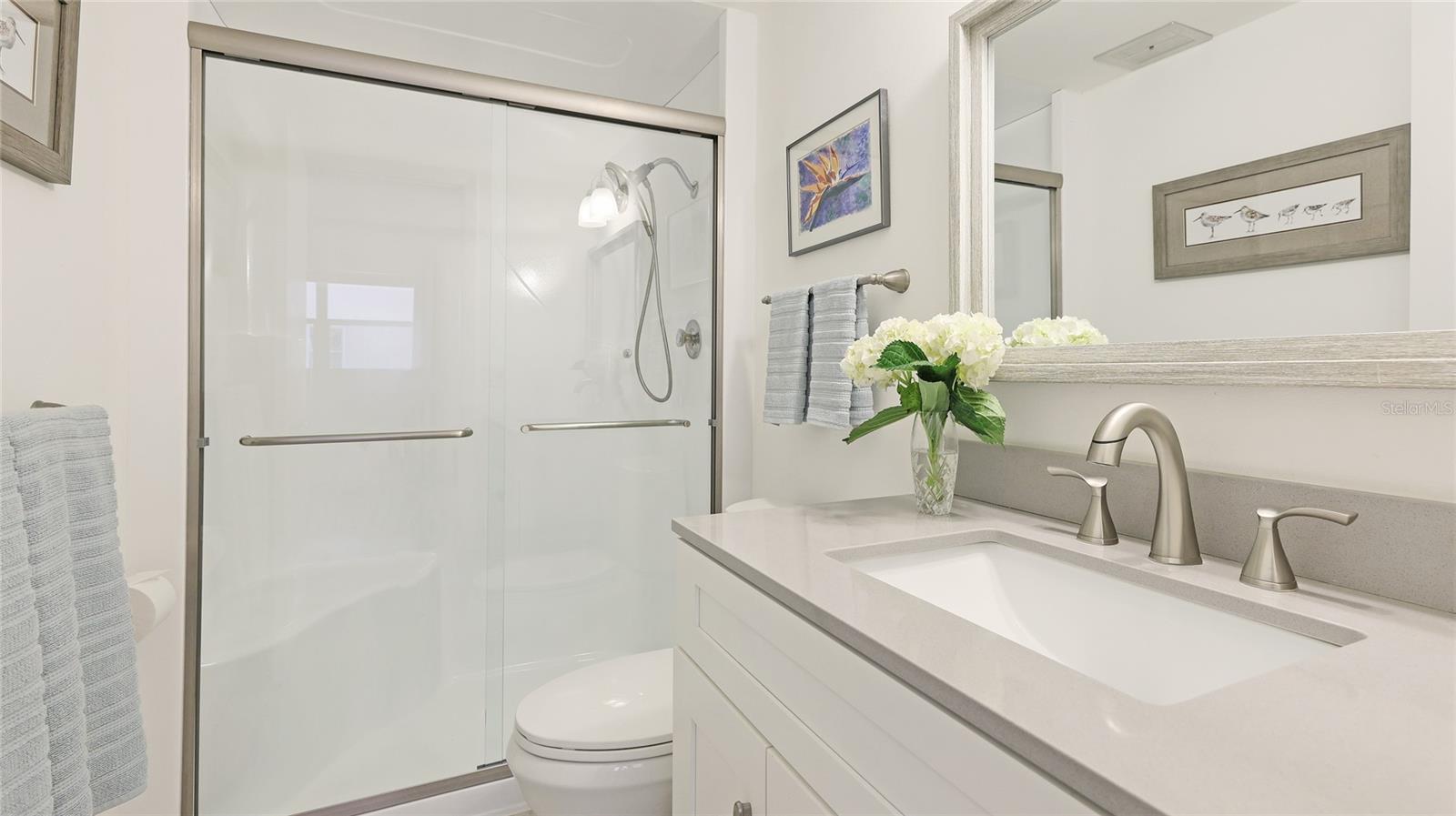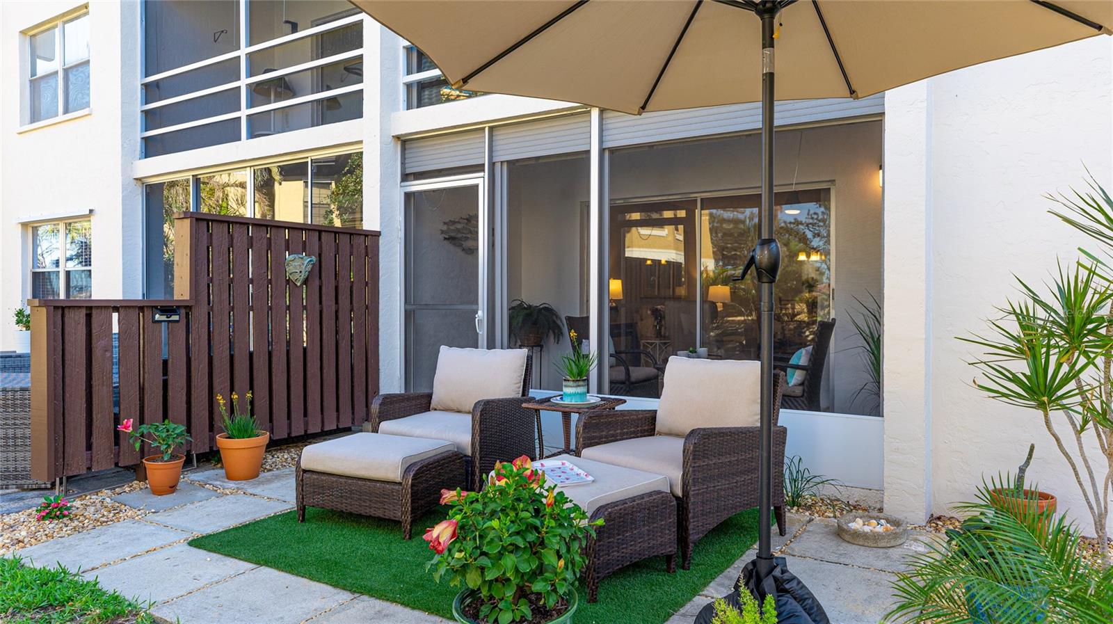Welcome to the updated and perfectly situated ground floor Condominium Unit #110 in the wonderful Community of Bella Costa. This beautifully updated Condo on the Island of Venice has close walkability to Historical Downtown Venice Shops, Restaurants, Venice Theatre, Venice Beach, Venice Jetty, Weekly Farmer's Markets and the always vibrant and active Centennial Park. This light and bright Two-Bedroom, Two-Full En-suite Bathrooms, Ground-Floor Unit has several updates such as an Upgraded Electrical Panel 2020, Remodeled Primary En-suite Bathroom Shower 2024 with designer-style Tile and Shower Niche and New Vanity, Remodeled Guest En-suite Bathroom with Shower Re-Coating, New Glass Sliding Door 2025 and New Vanity, New Plank Floor Tile in Both Bedrooms, Bathrooms and Closets (2022), and New Carports 2024/2025. The Appliances are Newer: Refrigerator 2024, Microwave 2023, Disposal and Dishwasher 2021, Washer and Dryer 2022, AC and Water Heater 2020 and New Front Storm Door 2024. Enjoy your Lush Landscaping and Partial Waterview from your Private Rear Outdoor Space. Whether you arrive or depart from your unit, it's hard to miss the Marina and Intracoastal waterview just outside your Front Door down the path to the Waterside Patio Picnic Area with chairs shaded by Umbrella's and Palm Trees. It is a wonderful spot to BBQ and relax while cooking and overlooking the boats sailing by on the Intracoastal Waterway. The Bella Costa Community offers several amenities, including a Clubhouse with Billiards, a Library, an Exercise Room, a Sauna, Kitchen and a Large outside Heated Pool with lounging areas and Entertainment Room. For those wanting to travel and exercise beyond the community, you can access to The Legacy Trail via manual or electric bike or by foot, which you can pick up right outside the Condo. This Condo has deeded newly covered parking spot and there are an abundance of additional guest parking spaces available. This unit has a storage closet perfect for your beach and shopping accessories. Boat slips can be rented by Bella Costa Homeowners from other Bella Costa Homeowners who have Boat Slips deeded, when available, which is a nice perk of living in this community. This Unit and Community checks all the boxes for the quintessential Florida Lifestyle !