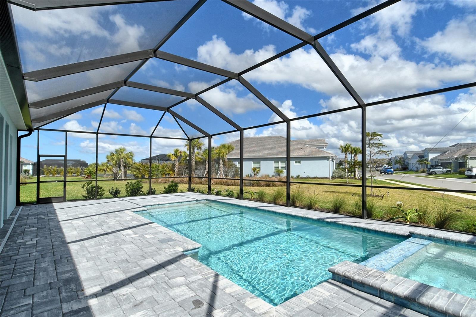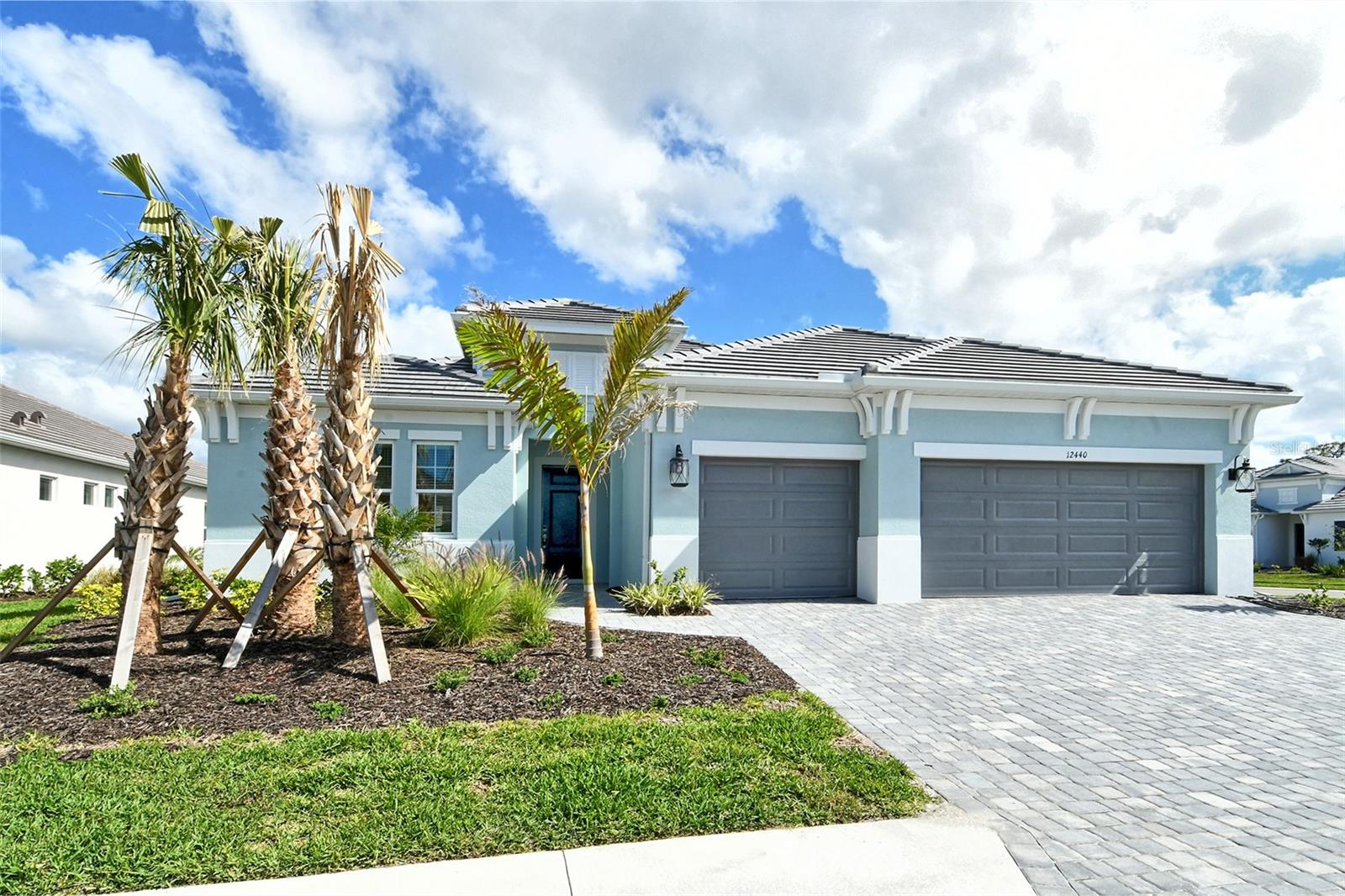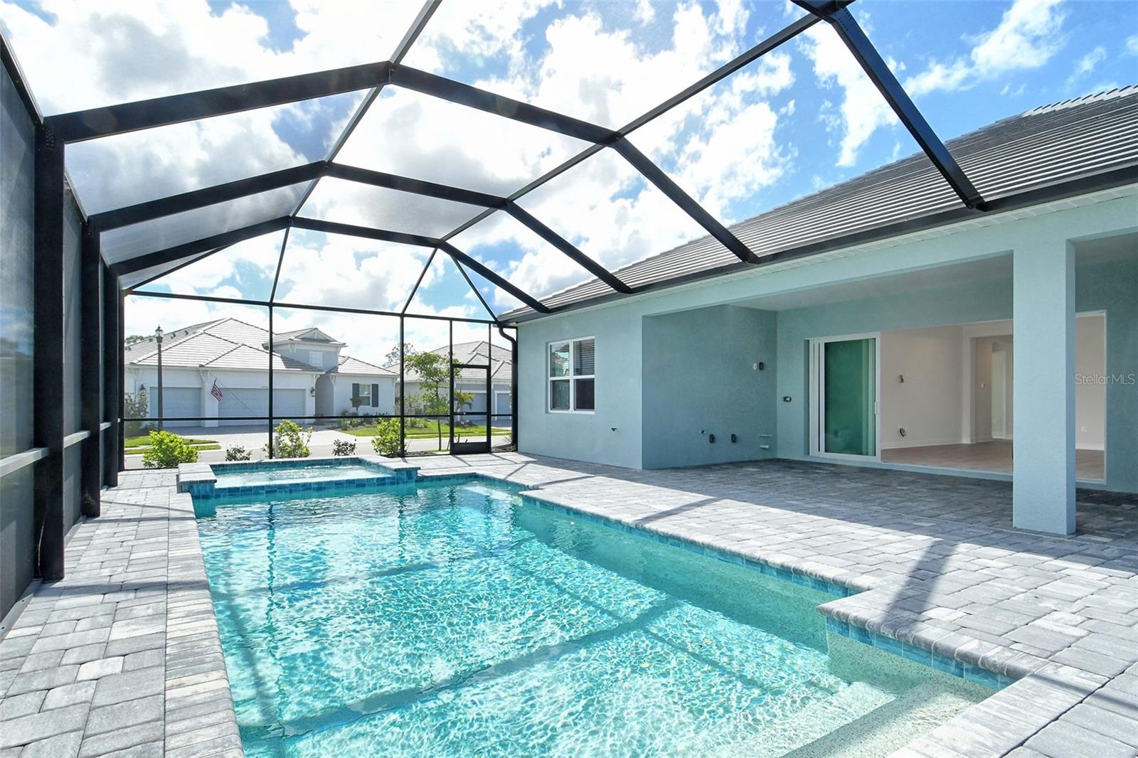 Experience luxury and comfort in this stunning Silver Sky 2 home, perfectly situated on a spacious corner homesite. Designed with British West Indies (BWI) architecture, this open-concept layout is ideal for both everyday living and entertaining. Step inside through the elegant foyer and gallery entry, setting the stage for the expansive great room, complete with a recessed ceiling and breathtaking views of your private pool and spa, designed by Waterscapes. The gourmet kitchen is a chef’s dream, featuring a large island and walk-in pantry, perfect for hosting unforgettable gatherings. Love outdoor living? The outdoor kitchen rough-ins offer endless possibilities! Customize your space to fit your lifestyle—whether you’re a BBQ enthusiast dreaming of a fully equipped grilling station or simply want the convenience of keeping your indoor kitchen spotless while enjoying everything at your fingertips outside. The luxurious master suite offers a true retreat with dual walk-in closets, while a private guest suite with an en-suite bath and walk-in closet provides comfort for visitors. Two additional bedrooms and a versatile leisure room with French doors make this home as functional as it is beautiful. Don’t miss your chance to own this exceptional home! Schedule a tour today and experience the perfect blend of elegance and relaxation.