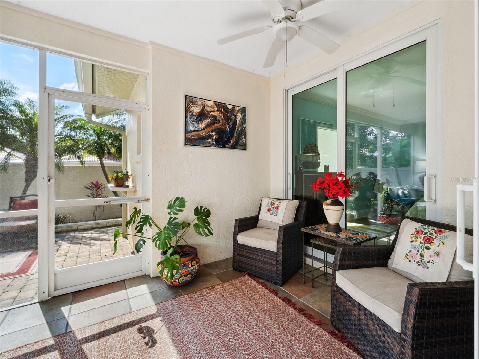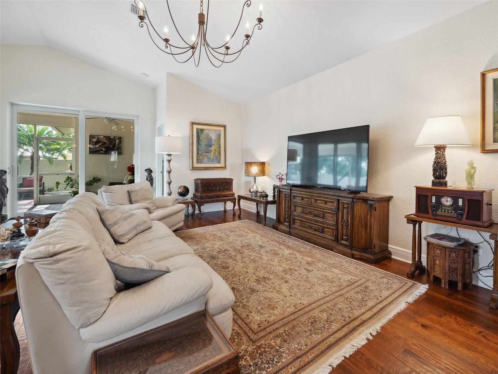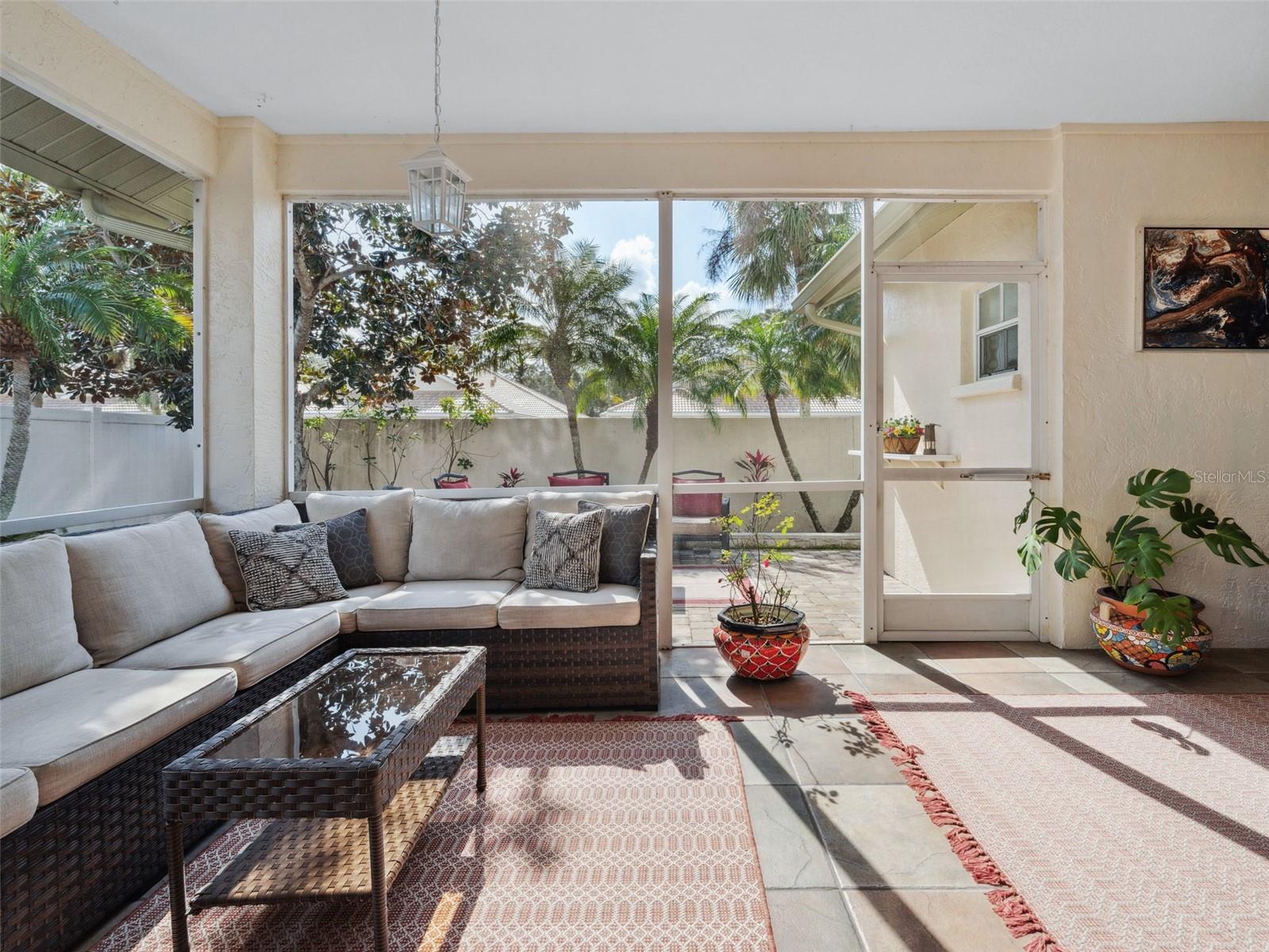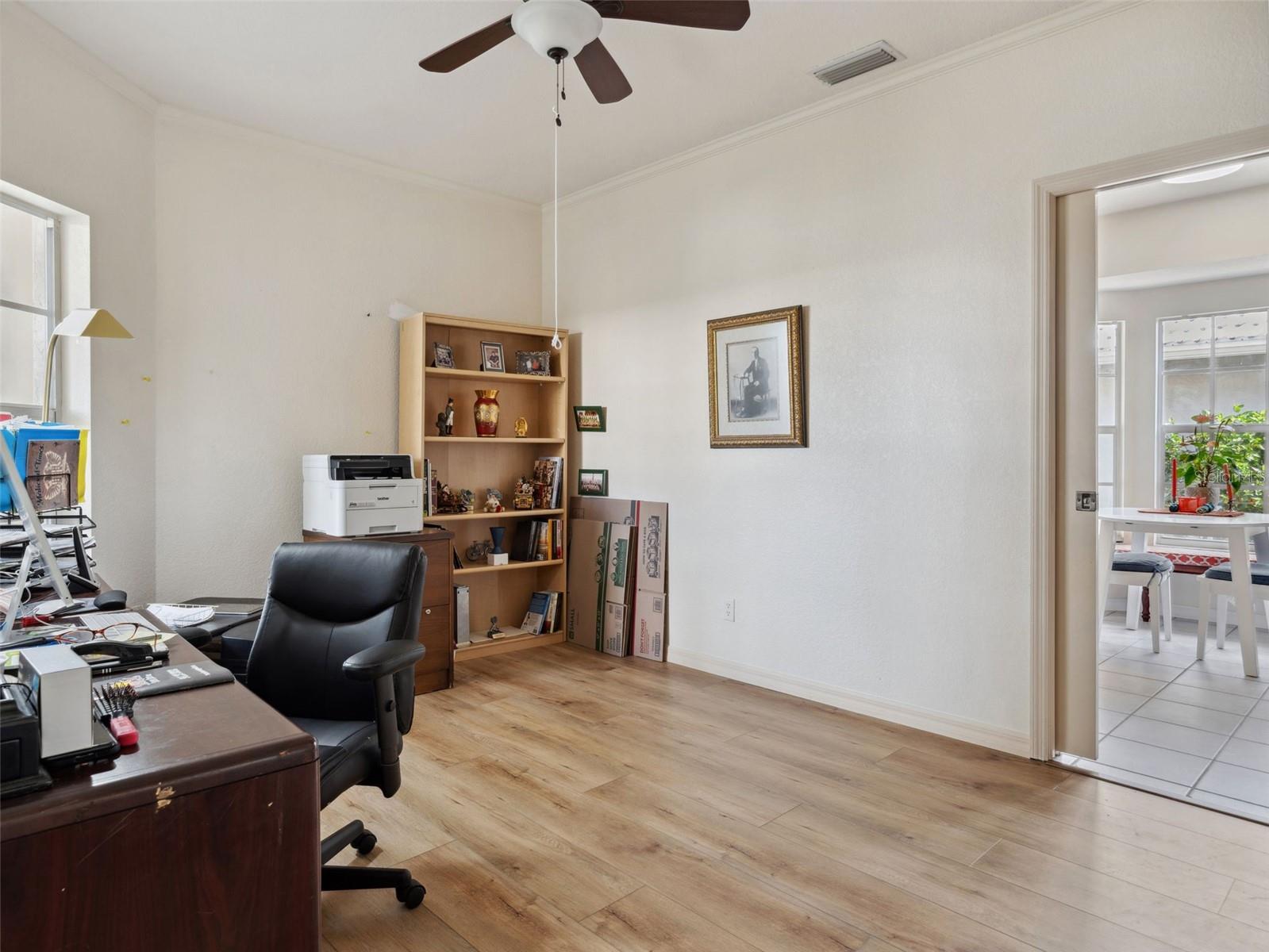 This well-built and meticulously cared-for Waterford Carina model offers spacious living, abundant natural light, and exceptional outdoor space in a quiet, gated community of just 39 homes. Located in maintenance-free Berkshire Place, this 1,796 sq. ft. home features 2 bedrooms, 2 baths, and a versatile den—ideal for a home office or guest space. Designed for comfort and functionality, the open floor plan showcases cathedral ceilings, pocket doors, and a seamless mix of engineered hardwood, tile, and laminate flooring. The kitchen offers quartz countertops, a tile backsplash, refinished cabinetry, a stainless-steel double sink, and a large pantry. A pass-through window connects to the lanai, making entertaining effortless. The primary suite is a private retreat with a custom walk-in closet and impact-resistant sliding doors to the lanai. The en-suite bath features granite countertops, a walk-in shower with seamless glass doors, a garden tub, and cathedral ceilings. A well-appointed guest bedroom and bath provide comfortable accommodations for visitors. Outdoor living is a highlight, with a spacious covered lanai and wraparound stone patio, extending the outdoor space to 2,100 sq. ft. Enjoy ceiling fans, tile flooring, ambient lighting, and an extended quartz counter with cabinetry—perfect for relaxing or entertaining. Impact windows and doors provide peace of mind and energy efficiency. Low HOA fees cover lawn care, tree trimming, irrigation, and access to Waterford’s exclusive amenities, including a Jr. Olympic-sized pool, Har-Tru tennis courts, fitness center, clubhouse, and social activities. With no CDD fees or capital contribution at closing, this home is an excellent value. Centrally located near Venice’s beaches, Wellen Park, I-75, Legacy Trail, Sarasota Memorial Hospital, shopping, dining, and golf, this move-in-ready home is perfect as a primary residence or seasonal retreat.
