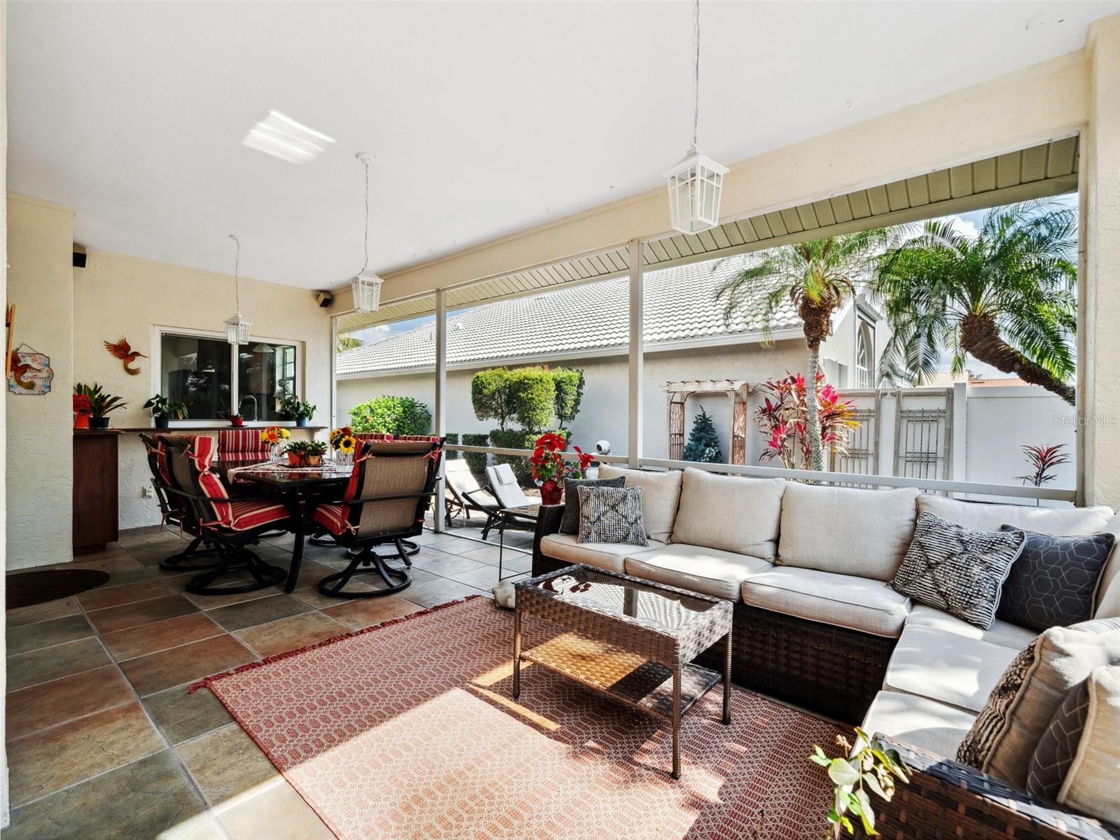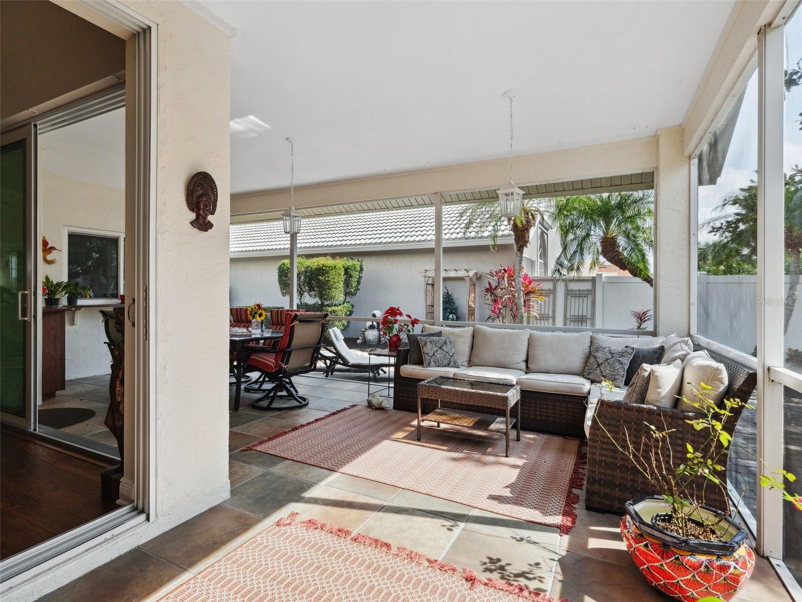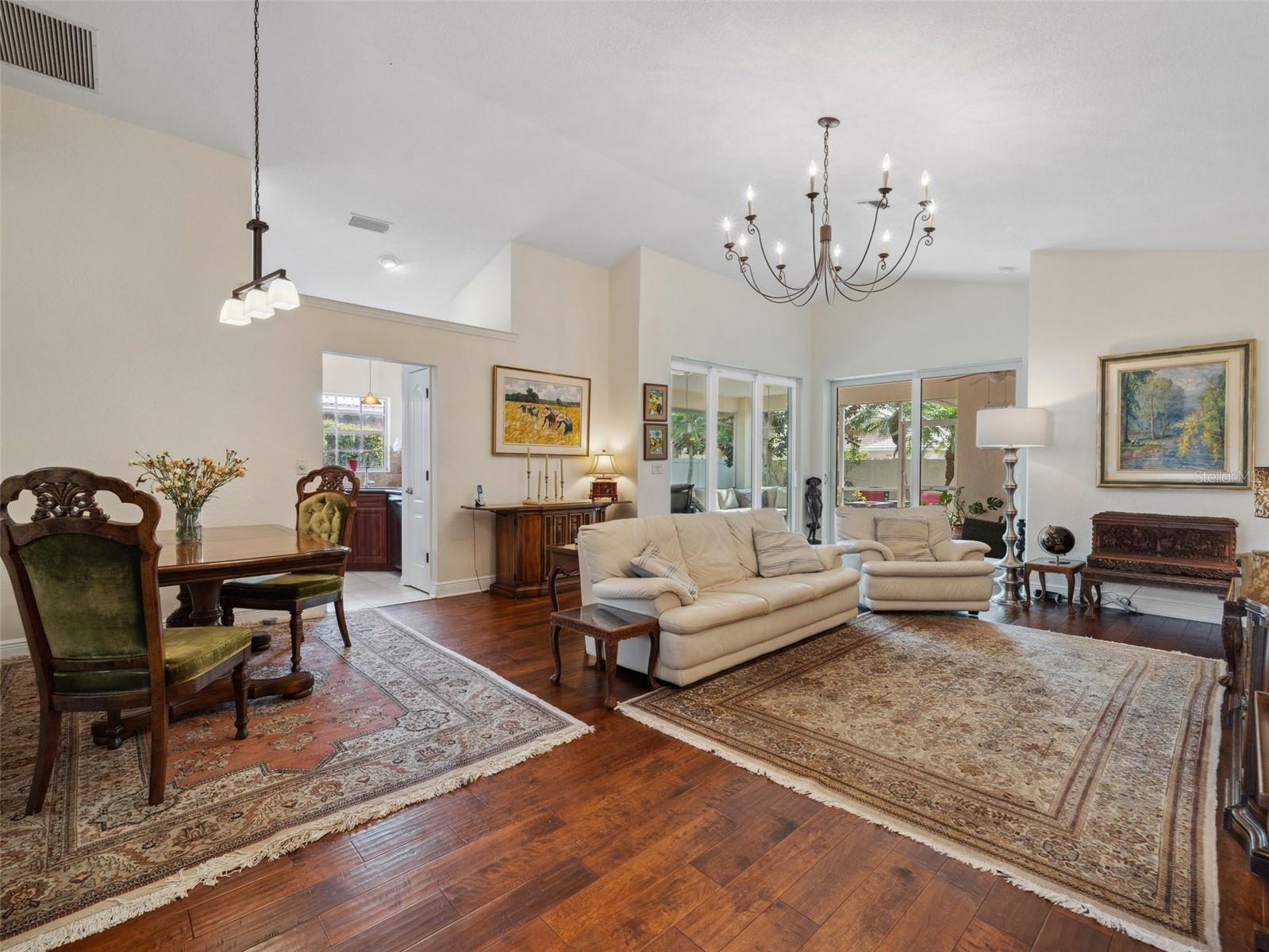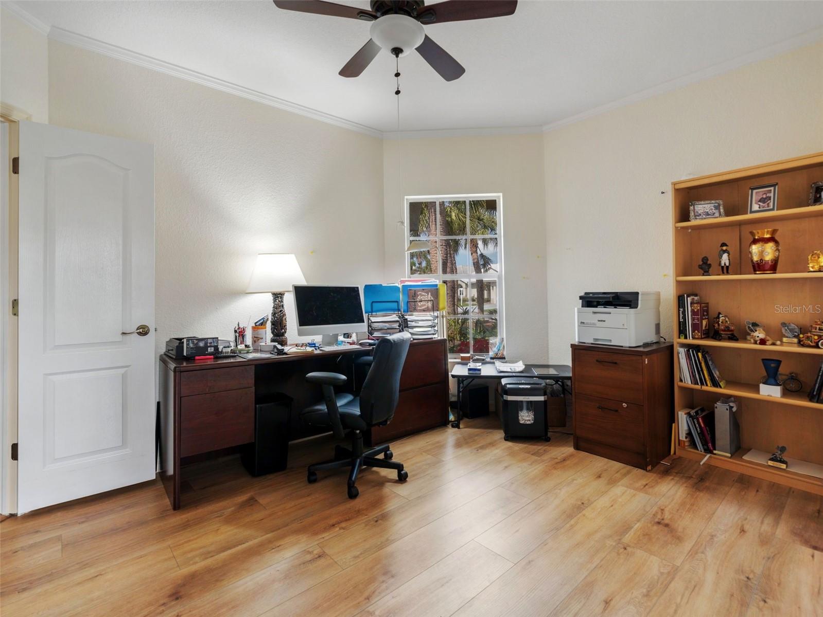This well-built and meticulously cared-for Waterford Carina model offers spacious living, abundant natural light, and exceptional outdoor space in a quiet, gated community of just 39 homes. Located in maintenance-free Berkshire Place, this 1,796 sq. ft. home features 2 bedrooms, 2 baths, and a versatile den—ideal for a home office or guest space. Designed for comfort and functionality, the open floor plan showcases cathedral ceilings, pocket doors, and a seamless mix of engineered hardwood, tile, and laminate flooring. The kitchen offers quartz countertops, a tile backsplash, refinished cabinetry, a stainless-steel double sink, and a large pantry. A pass-through window connects to the lanai, making entertaining effortless. The primary suite is a private retreat with a custom walk-in closet and impact-resistant sliding doors to the lanai. The en-suite bath features granite countertops, a walk-in shower with seamless glass doors, a garden tub, and cathedral ceilings. A well-appointed guest bedroom and bath provide comfortable accommodations for visitors. Outdoor living is a highlight, with a spacious covered lanai and wraparound stone patio, extending the outdoor space to 2,100 sq. ft. Enjoy ceiling fans, tile flooring, ambient lighting, and an extended quartz counter with cabinetry—perfect for relaxing or entertaining. Impact windows and doors provide peace of mind and energy efficiency. Low HOA fees cover lawn care, tree trimming, irrigation, and access to Waterford’s exclusive amenities, including a Jr. Olympic-sized pool, Har-Tru tennis courts, fitness center, clubhouse, and social activities. With no CDD fees or capital contribution at closing, this home is an excellent value. Centrally located near Venice’s beaches, Wellen Park, I-75, Legacy Trail, Sarasota Memorial Hospital, shopping, dining, and golf, this move-in-ready home is perfect as a primary residence or seasonal retreat.