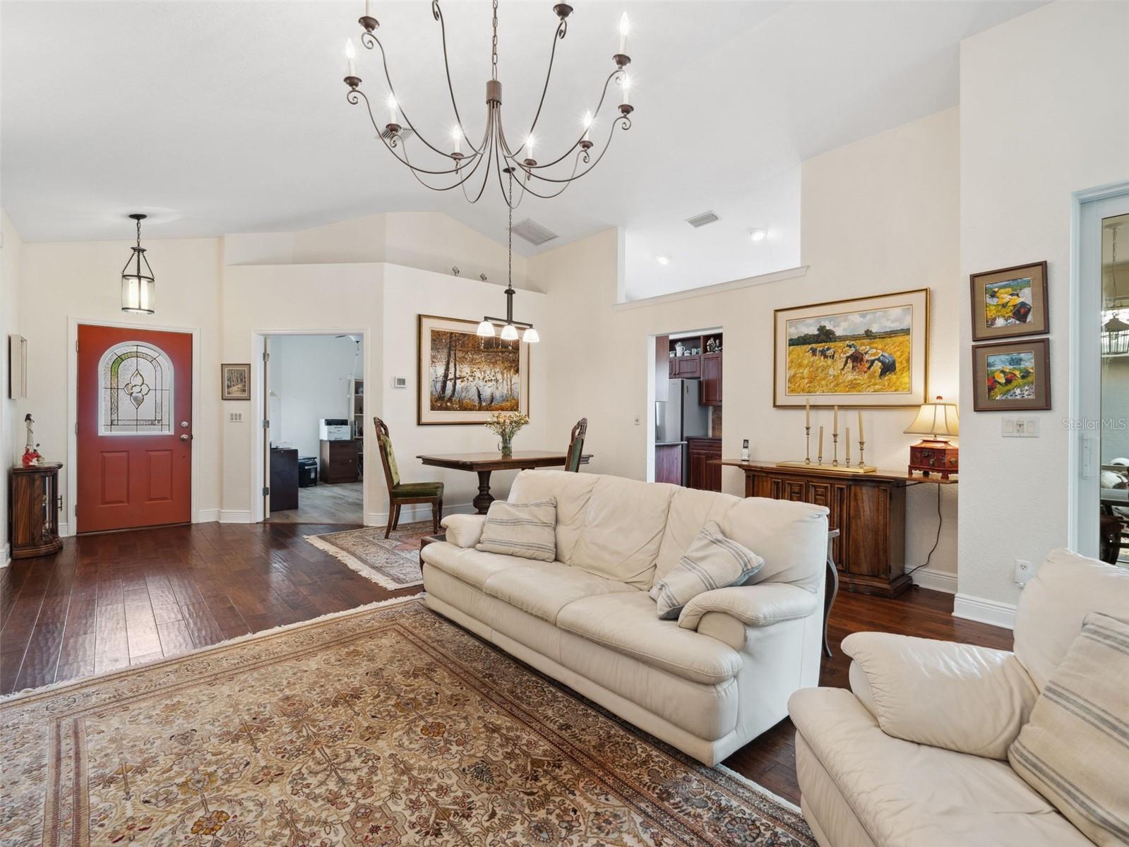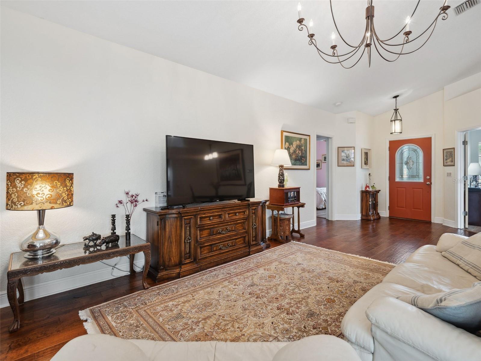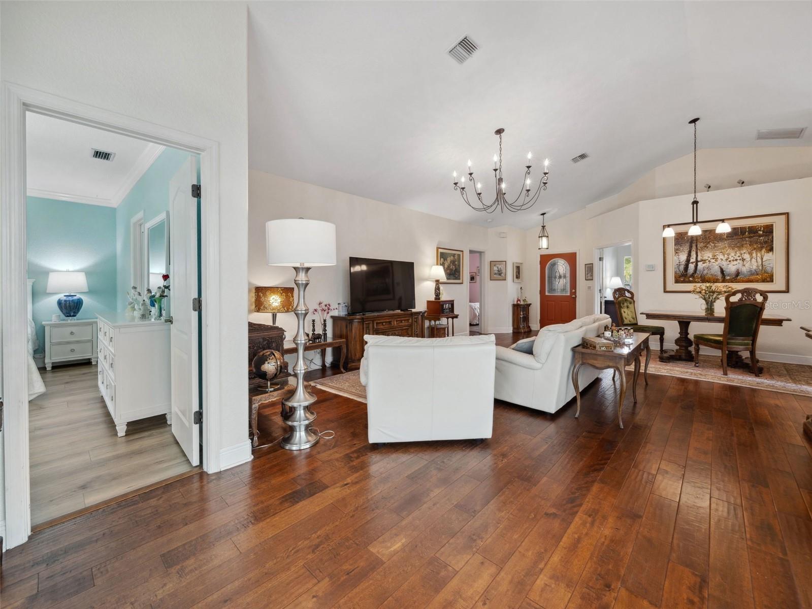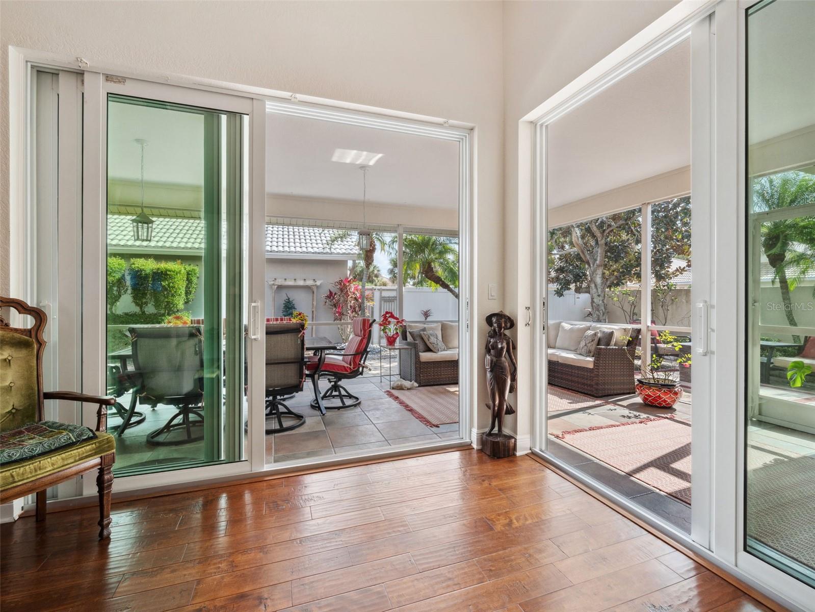 This well-built and meticulously cared-for Waterford Carina model offers spacious living, abundant natural light, and exceptional outdoor space in a quiet, gated community of just 39 homes. Located in maintenance-free Berkshire Place, this 1,796 sq. ft. home features 2 bedrooms, 2 baths, and a versatile den—ideal for a home office or guest space. Designed for comfort and functionality, the open floor plan showcases cathedral ceilings, pocket doors, and a seamless mix of engineered hardwood, tile, and laminate flooring. The kitchen offers quartz countertops, a tile backsplash, refinished cabinetry, a stainless-steel double sink, and a large pantry. A pass-through window connects to the lanai, making entertaining effortless. The primary suite is a private retreat with a custom walk-in closet and impact-resistant sliding doors to the lanai. The en-suite bath features granite countertops, a walk-in shower with seamless glass doors, a garden tub, and cathedral ceilings. A well-appointed guest bedroom and bath provide comfortable accommodations for visitors. Outdoor living is a highlight, with a spacious covered lanai and wraparound stone patio, extending the outdoor space to 2,100 sq. ft. Enjoy ceiling fans, tile flooring, ambient lighting, and an extended quartz counter with cabinetry—perfect for relaxing or entertaining. Impact windows and doors provide peace of mind and energy efficiency. Low HOA fees cover lawn care, tree trimming, irrigation, and access to Waterford’s exclusive amenities, including a Jr. Olympic-sized pool, Har-Tru tennis courts, fitness center, clubhouse, and social activities. With no CDD fees or capital contribution at closing, this home is an excellent value. Centrally located near Venice’s beaches, Wellen Park, I-75, Legacy Trail, Sarasota Memorial Hospital, shopping, dining, and golf, this move-in-ready home is perfect as a primary residence or seasonal retreat.