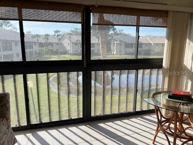 Furnished 2bedroom/2bath condo in Mission Lakes that OVERLOOKS EXPANSIVE WATER VIEWS. Mission Lakes community is located a stone's throw from the Island of Venice. This community consists of condominium homes nestled among 3 ponds, and residents have the use of 3 separate heated swimming pools. This unit has been expanded by incorporating the lanai into living space by taking out sliders making living square footage larger. Beautifully updated kitchen with maple cabinets and eat in kitchen with a view out of your bay window and pass through to dining room, and recessed lights. Imagine sitting overlooking your beautiful full pond view and sipping on your tea or enjoying one of the many swimming pools in the area. You can take a trip downtown to one of the many restaurants and shops or only a few miles to the sugary sand beaches. You will feel the cozy comfort of this condo with beautiful views and lots of art work. Split bedrooms with ensuite bathrooms allow for company to have their own space and walk in closets. Full size washer/dryer in this closet unside utility closet. The master bathroom has a walk in shower while the second bathroom has a bath/shower. TWO cars can park tandem in your designated parking carport. Under the carport you have a storage unit to allow space for beach bikes, chairs, etc. Quarterly maintenance fees include cable TV, water, trash, and recyclable collection. Some of the recent upgrades include storm door, Water Heater(2022), water saver toilets, removal of sliders to lanai area.