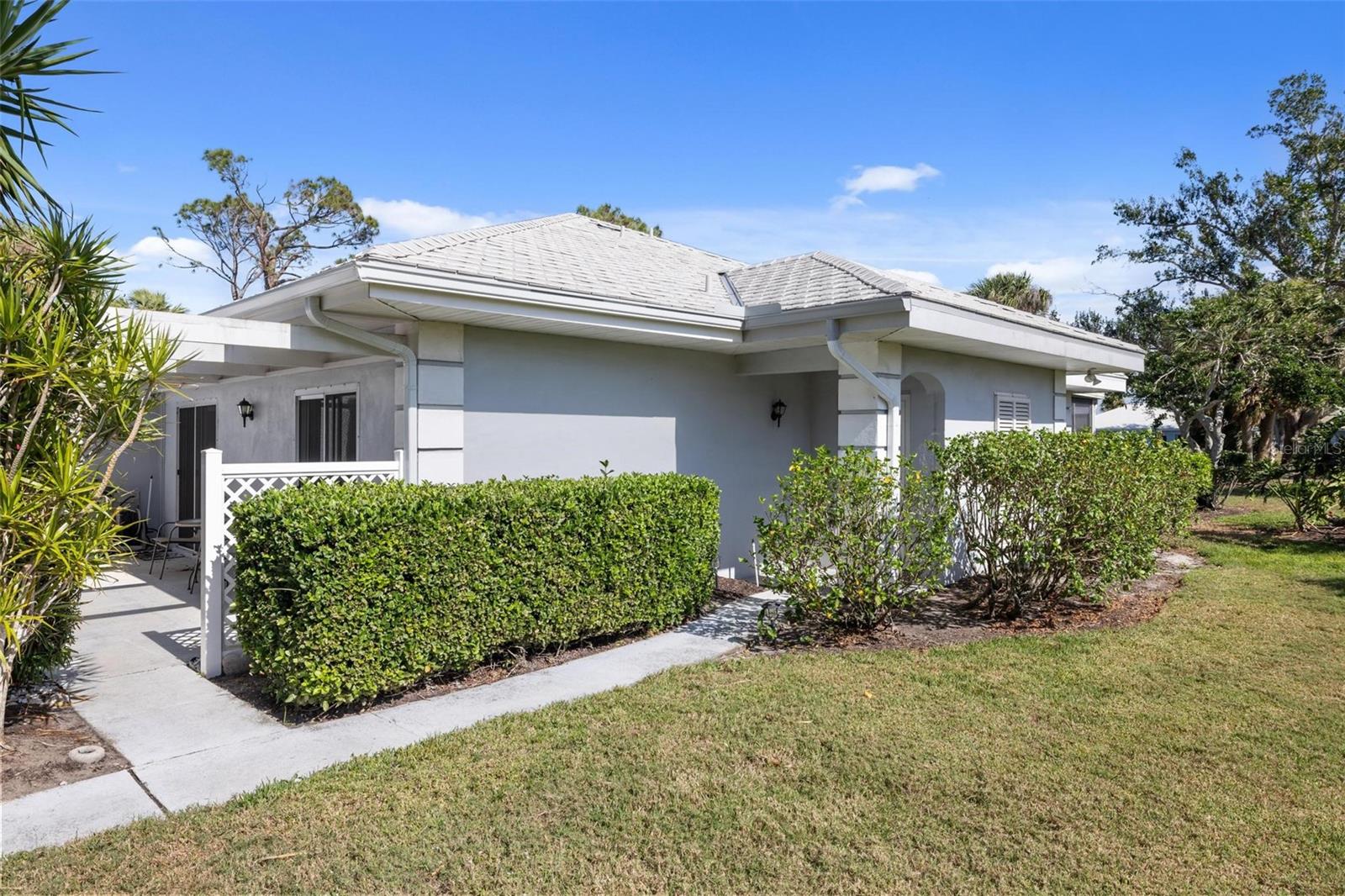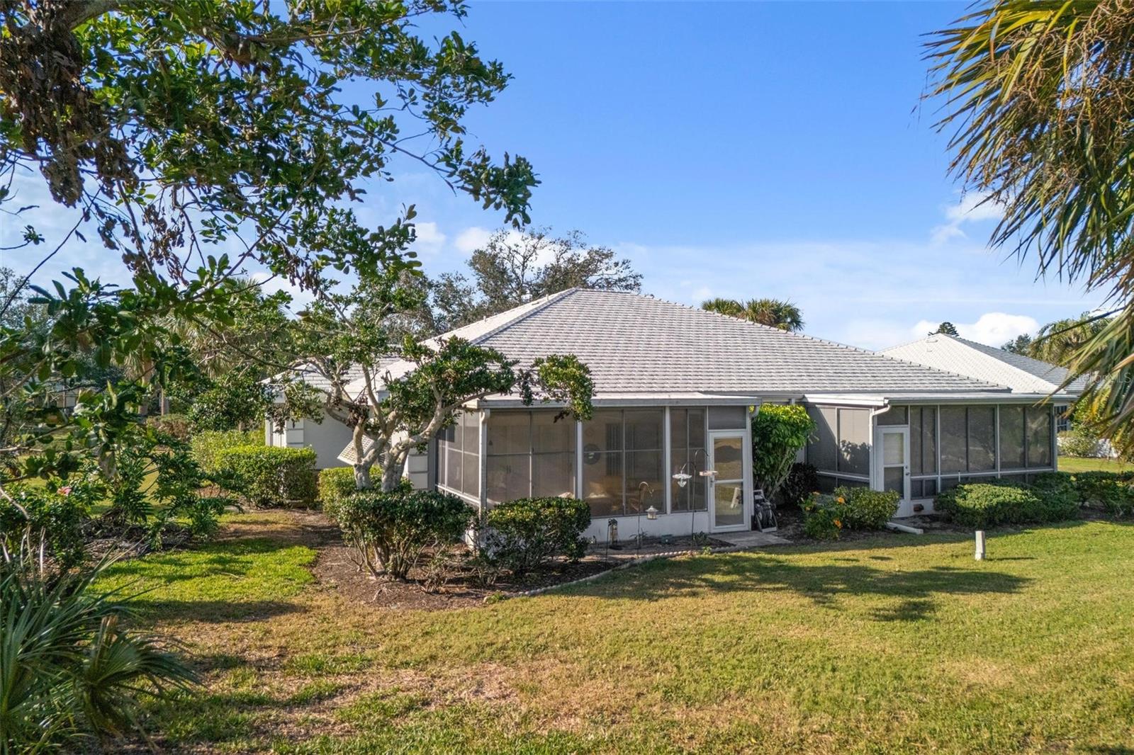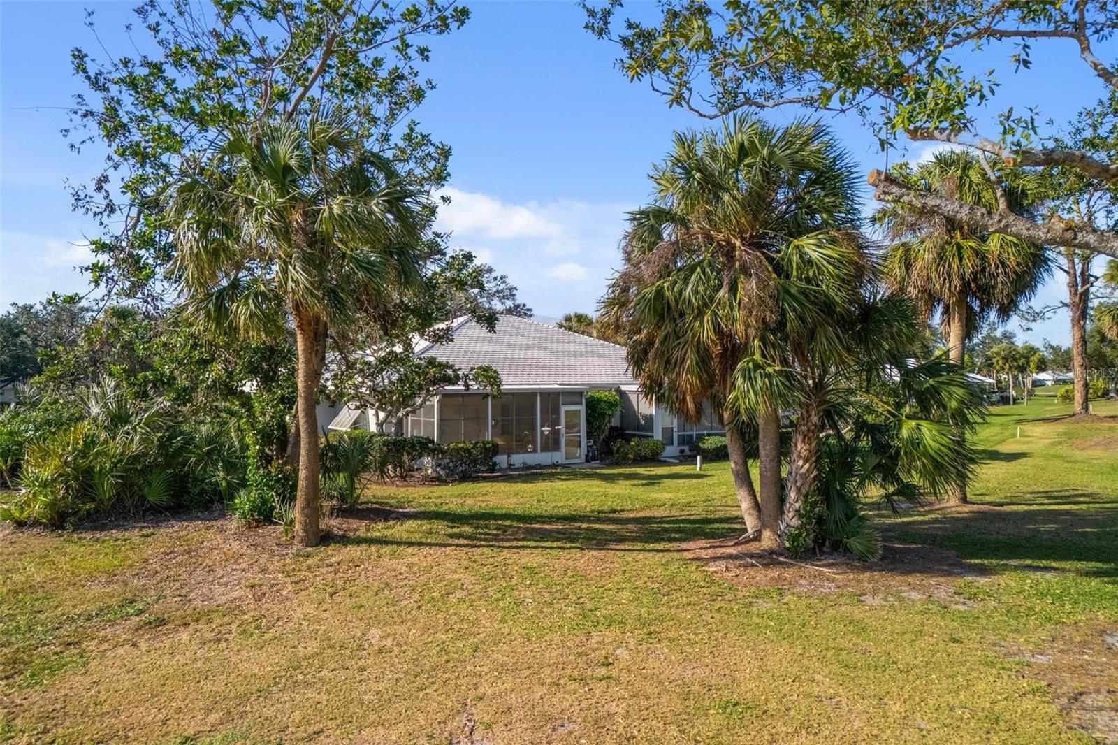 This beautifully remodeled and furnished home in Augusta Villas at the Plantation is your perfect opportunity to own a maintenance free home, situated on a unique and private lot! With sunrise views overlooking the 5th hole of Bobcat Golf Course, and views of nature abounding in the adjacent pond, this villa location offers serenity and privacy. Beautiful beaches, activities and shopping are conveniently located within a few miles! The modern kitchen has an abundance of storage and shines with updates such as new cabinets, countertops and backsplash. Throughout the home, you will enjoy the many updates such as luxury vinyl plank flooring, modern bathrooms and more! The cozy sunroom is enclosed with plexiglass panels that are easily removed to create a screened in porch. It is also equipped with a portable air conditioner and retractable blinds to maintain your ideal temperature. This home also has a new roof (2024) and new HVAC (2021). One of the two community pools is a short walk down the road. If more amenities are what you prefer, a membership to The Plantation Golf and Country Club is available for an additional fee. This home is being sold furnished, with the exception of a few specific items. Make this a first stop on your search for your dream home in Florida!