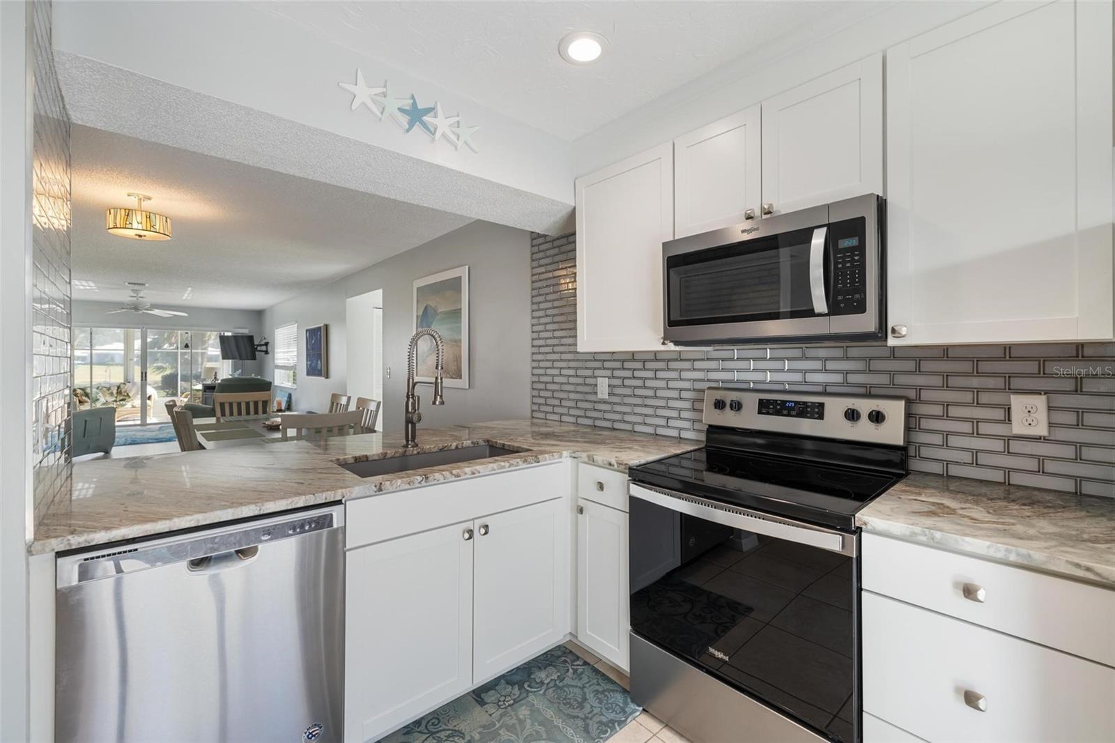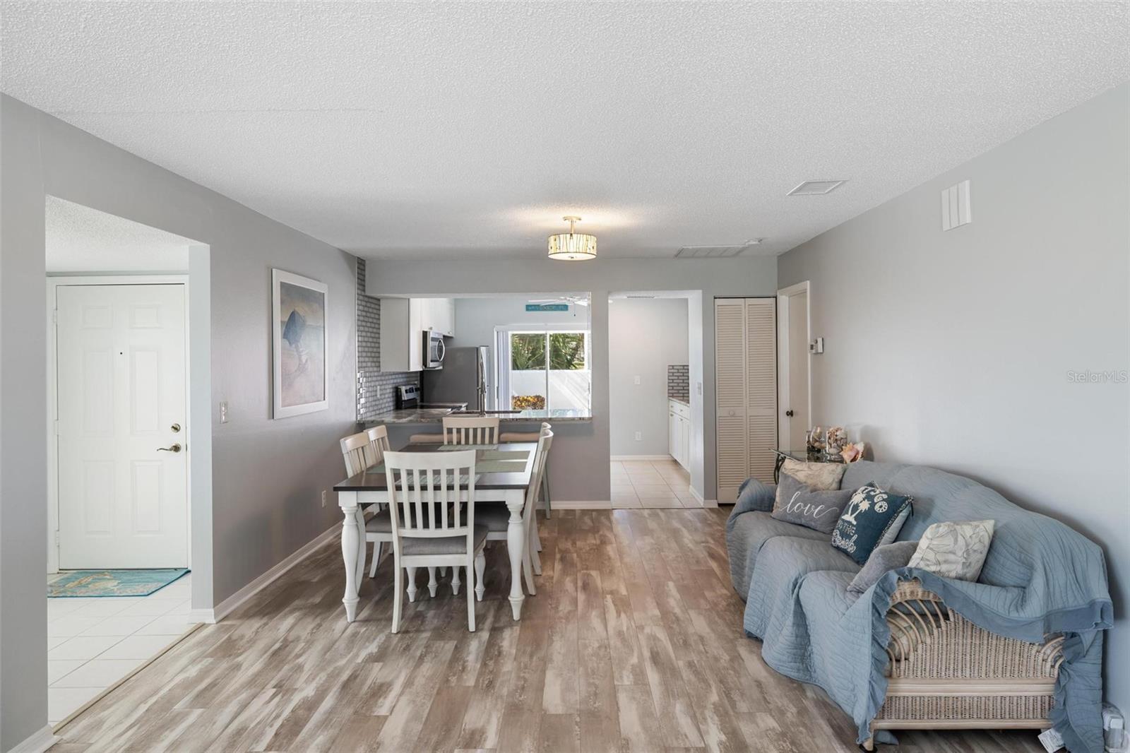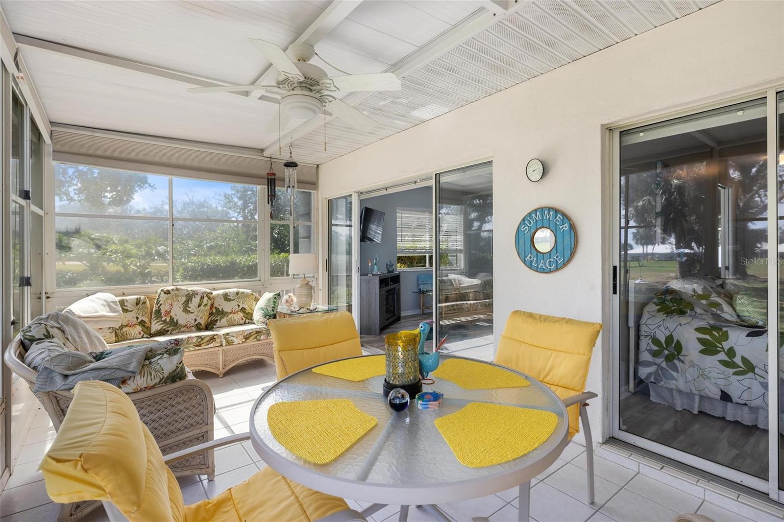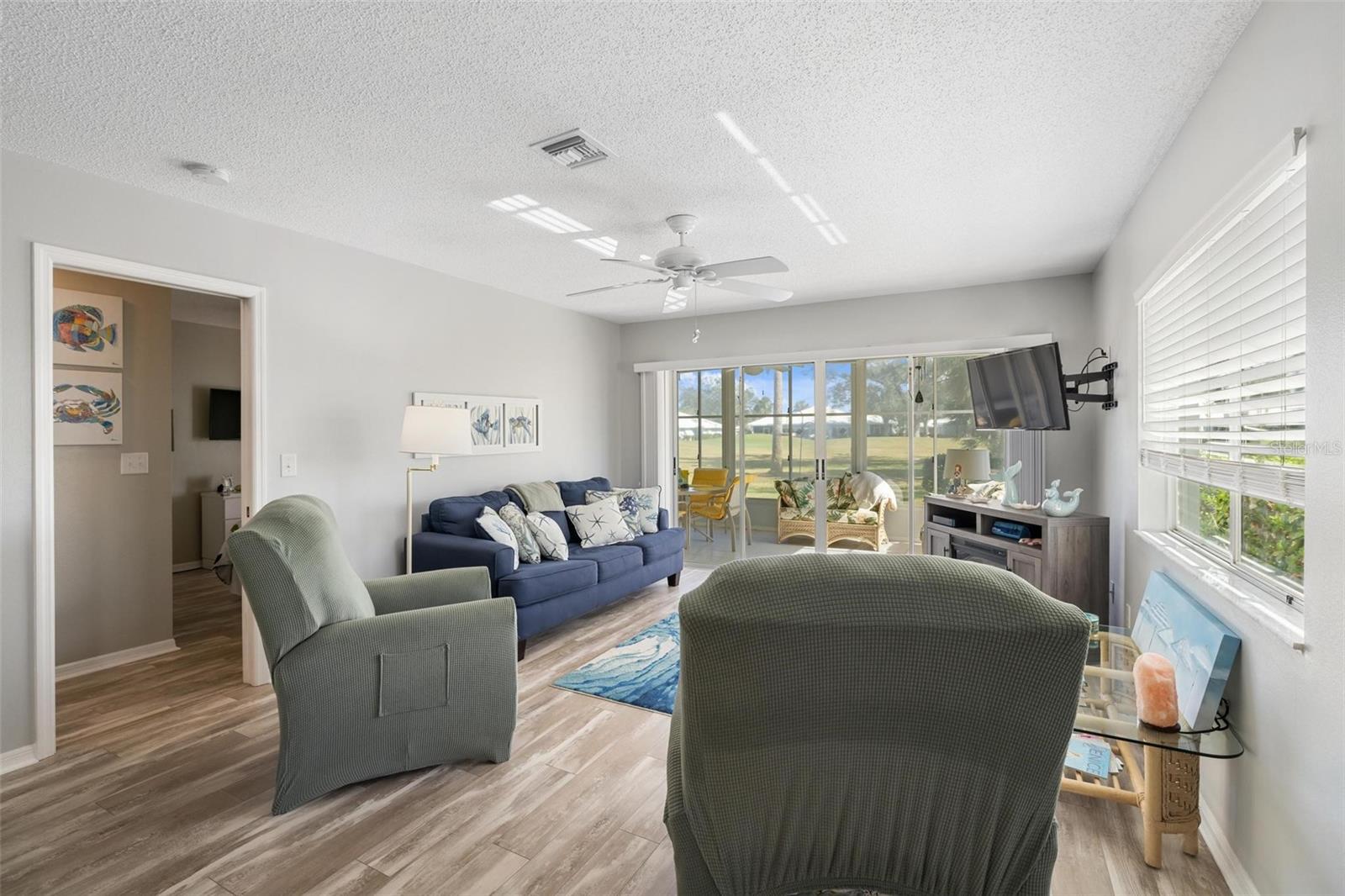 This beautifully remodeled and furnished home in Augusta Villas at the Plantation is your perfect opportunity to own a maintenance free home, situated on a unique and private lot! With sunrise views overlooking the 5th hole of Bobcat Golf Course, and views of nature abounding in the adjacent pond, this villa location offers serenity and privacy. Beautiful beaches, activities and shopping are conveniently located within a few miles! The modern kitchen has an abundance of storage and shines with updates such as new cabinets, countertops and backsplash. Throughout the home, you will enjoy the many updates such as luxury vinyl plank flooring, modern bathrooms and more! The cozy sunroom is enclosed with plexiglass panels that are easily removed to create a screened in porch. It is also equipped with a portable air conditioner and retractable blinds to maintain your ideal temperature. This home also has a new roof (2024) and new HVAC (2021). One of the two community pools is a short walk down the road. If more amenities are what you prefer, a membership to The Plantation Golf and Country Club is available for an additional fee. This home is being sold furnished, with the exception of a few specific items. Make this a first stop on your search for your dream home in Florida!
