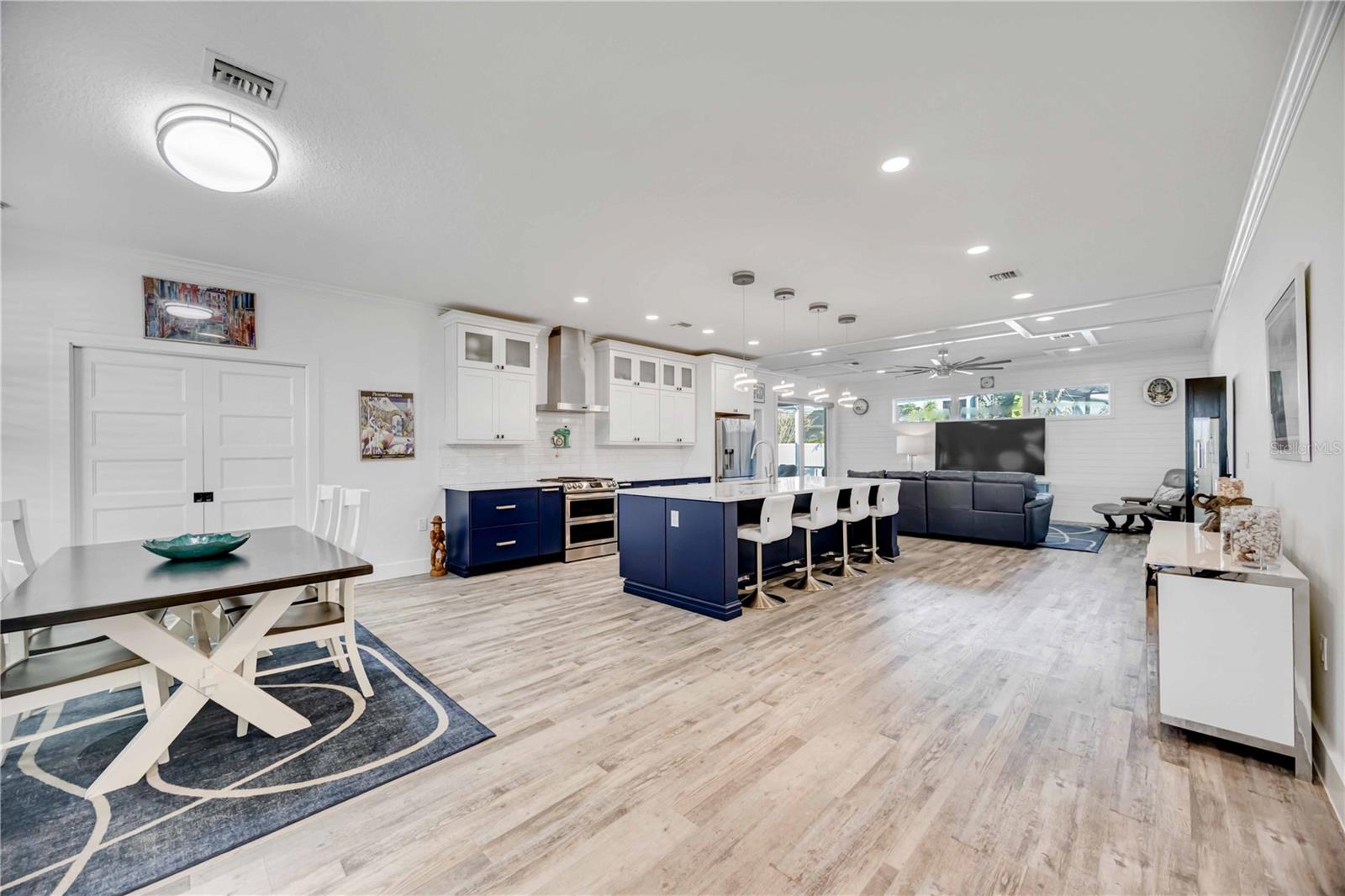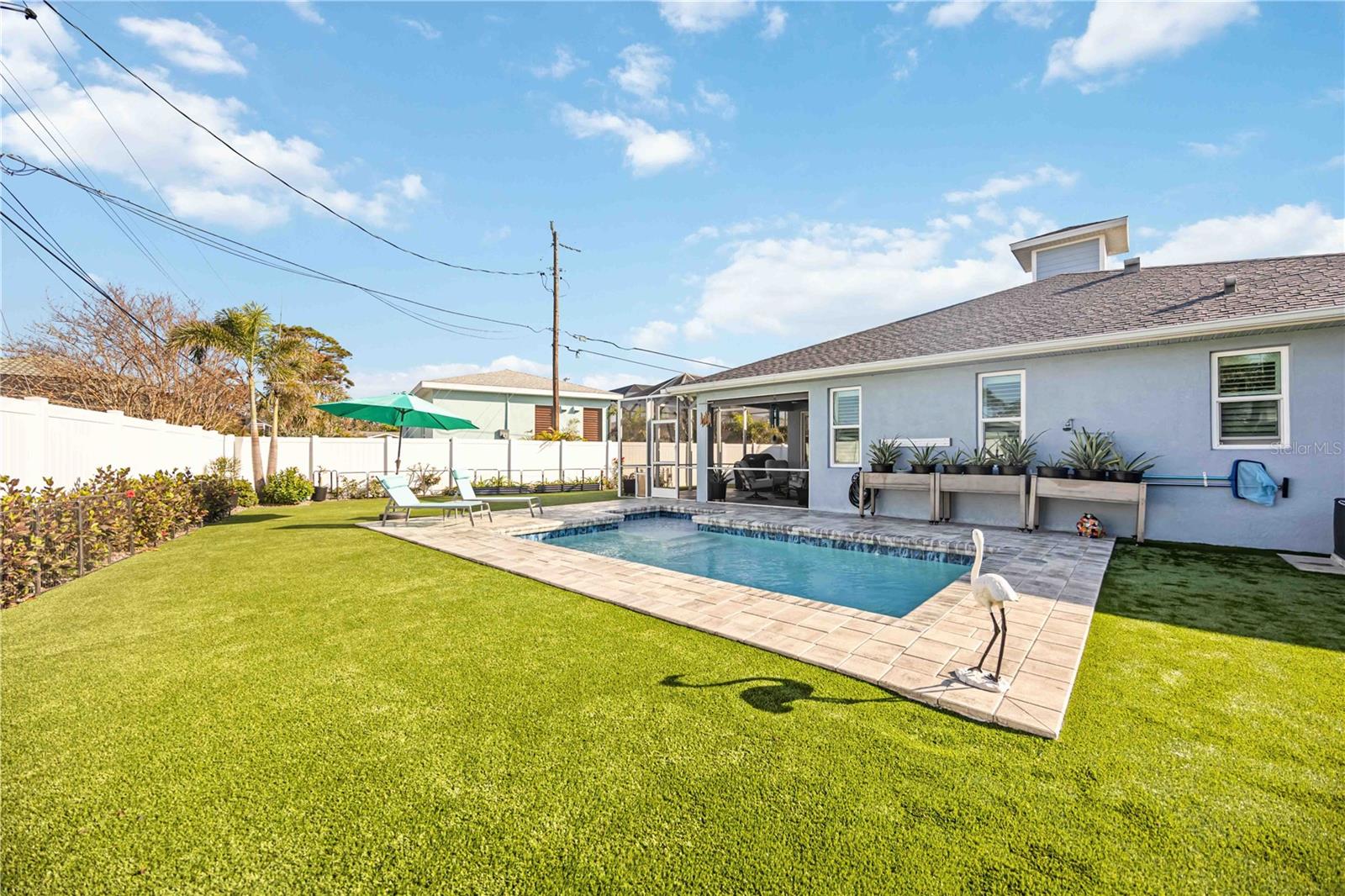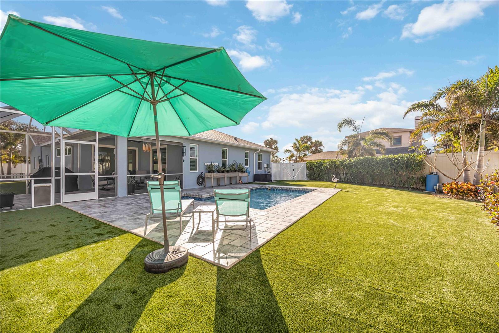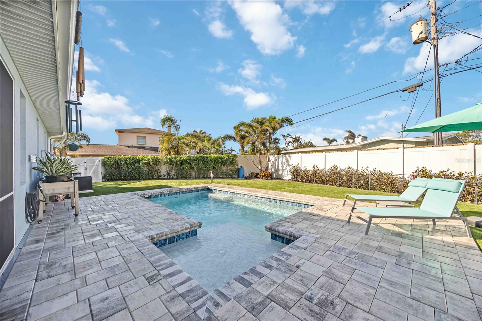 What's special? Screened Lanai-Island Oasis-Saltwater Pool-Masterfully Remodeled Living Space-Tropical Paradise-Beautifully Paved Grounds-Fully Turfed Backyard. Motivated sellers welcome you to a slice of paradise nestled in a quiet cul-de-ac on the Island of Venice. Originally built in 1976, this 1500 sq ft home was demolished but for two existing walls and completely rebuilt and expanded from the ground up in 2020. Step inside a 3-bedroom, 2 1/2 bath, 2,222 sq ft beautifully designed open floor where every detail exudes island charm and contemporary elegance. The expansive, light-filled open floor plan boasting soaring 9’ ceilings, luxury vinyl plank flooring, and sophisticated detail work in the living room ceiling. The family room/dining room features elegant shiplap accents, while plantation shutters, paired with Hunter Douglas blinds and ceiling fans. The home features a split floor plan, providing privacy and comfort for both you and your guests. The gourmet kitchen is a culinary haven with a 10 ft island adorned with Cambria quartz countertops, solid wood cabinets with soft-close drawers, and innovative spatula and knife organization center—complemented by top-tier Samsung appliances (2021). LED and pendant lighting cast a warm glow over the space, making it ideal for both everyday living and stylish entertaining. Designed for modern island living, the home comes fully equipped with advanced features: a Kohler whole-house generator (2023) that activates automatically, and a well and irrigation system with a cutting-edge rust retardant system. The exterior is a tropical paradise with beautifully paved grounds (2022), a fully turfed backyard, a screened lanai complete with a dedicated gas grilling/smoking station and opens to a refreshing Saltwater pool (3.5 ft deep) and an outdoor shower offering both cold and hot water. Gutter guards, landscape lighting, and multiple outdoor outlets and hose bibs complete and seamless indoor-outdoor living experience. With hurricane impact windows/doors, a brand-new electric panel, plumbing, spray foam attic insulation, every element of this home has been meticulously designed and serviced for your peace of mind. Experience unparalleled island living in this move-in-ready masterpiece—a true haven that blends luxurious modern design with the enchanting spirit of Venice Island. Your private paradise awaits. This home is NOT in a flood zone and has had no flooding or hurricane damage.