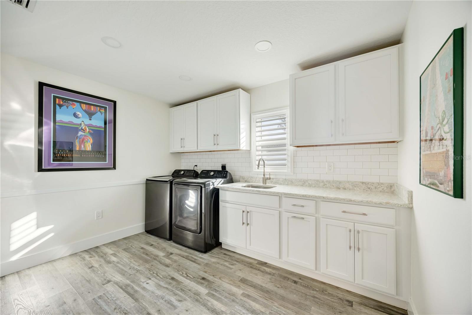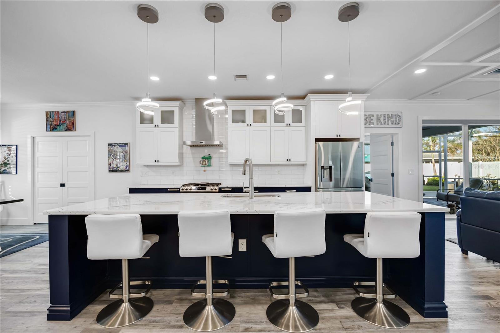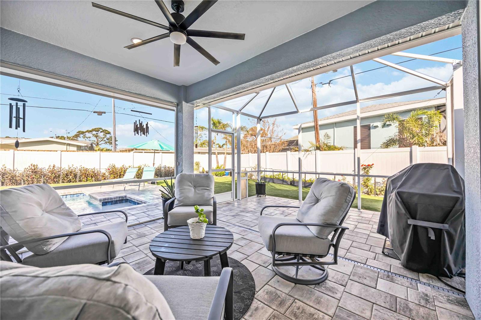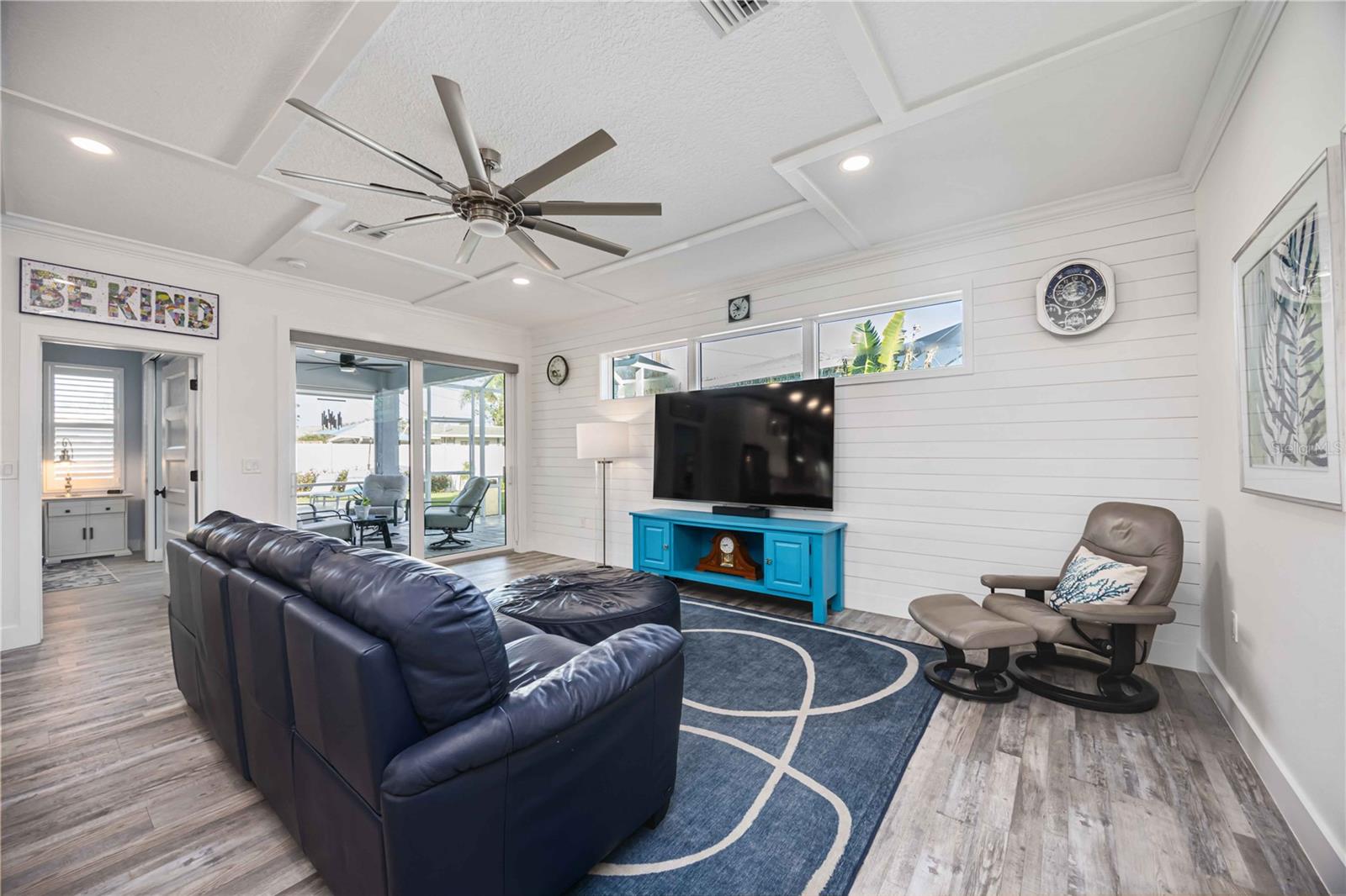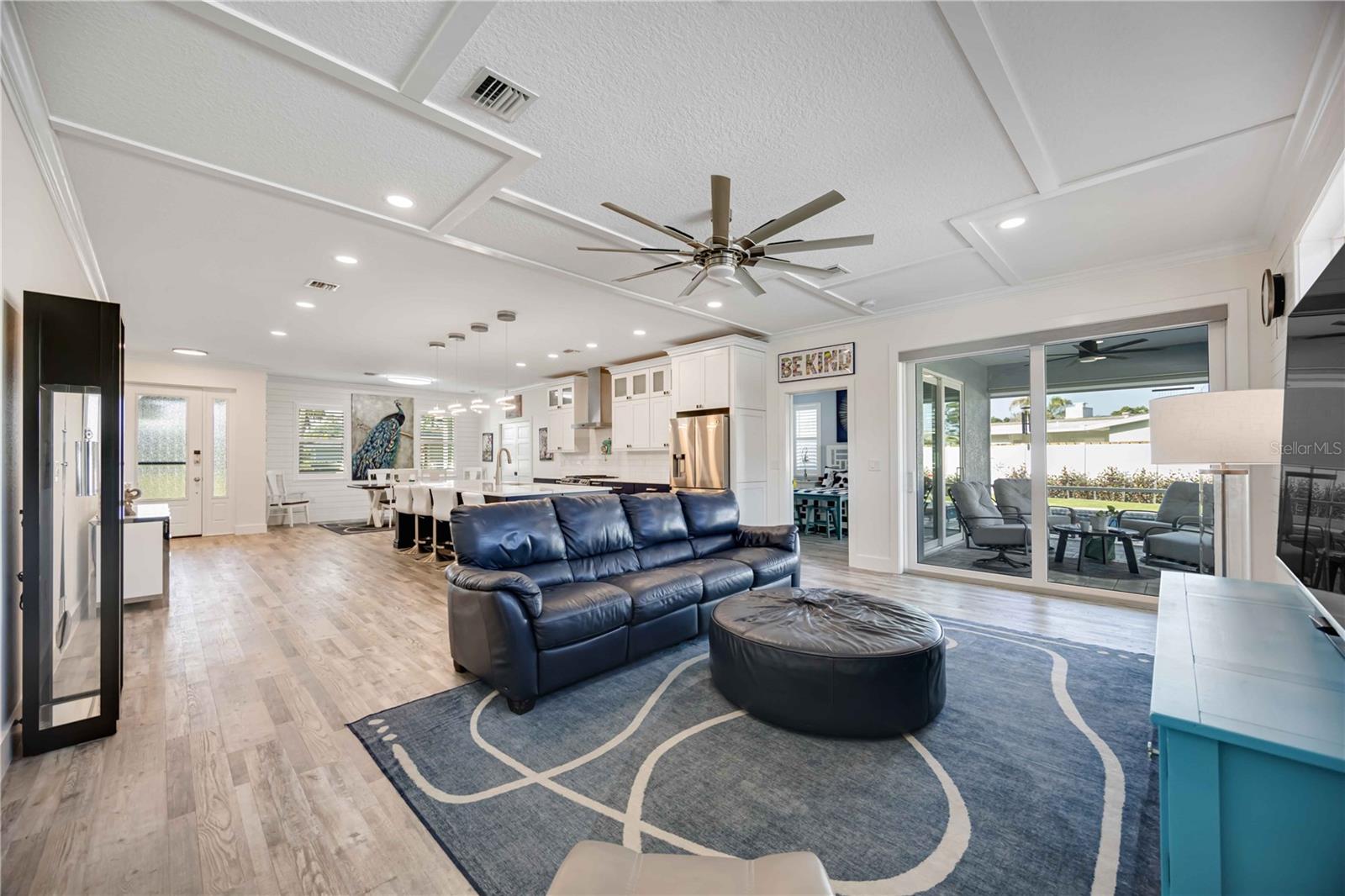 What's special? Screened Lanai-Island Oasis-Saltwater Pool-Masterfully Remodeled Living Space-Tropical Paradise-Beautifully Paved Grounds-Fully Turfed Backyard. Motivated sellers welcome you to a slice of paradise nestled in a quiet cul-de-ac on the Island of Venice. Originally built in 1976, this 1500 sq ft home was demolished but for two existing walls and completely rebuilt and expanded from the ground up in 2020. Step inside a 3-bedroom, 2 1/2 bath, 2,222 sq ft beautifully designed open floor where every detail exudes island charm and contemporary elegance. The expansive, light-filled open floor plan boasting soaring 9’ ceilings, luxury vinyl plank flooring, and sophisticated detail work in the living room ceiling. The family room/dining room features elegant shiplap accents, while plantation shutters, paired with Hunter Douglas blinds and ceiling fans. The home features a split floor plan, providing privacy and comfort for both you and your guests. The gourmet kitchen is a culinary haven with a 10 ft island adorned with Cambria quartz countertops, solid wood cabinets with soft-close drawers, and innovative spatula and knife organization center—complemented by top-tier Samsung appliances (2021). LED and pendant lighting cast a warm glow over the space, making it ideal for both everyday living and stylish entertaining. Designed for modern island living, the home comes fully equipped with advanced features: a Kohler whole-house generator (2023) that activates automatically, and a well and irrigation system with a cutting-edge rust retardant system. The exterior is a tropical paradise with beautifully paved grounds (2022), a fully turfed backyard, a screened lanai complete with a dedicated gas grilling/smoking station and opens to a refreshing Saltwater pool (3.5 ft deep) and an outdoor shower offering both cold and hot water. Gutter guards, landscape lighting, and multiple outdoor outlets and hose bibs complete and seamless indoor-outdoor living experience. With hurricane impact windows/doors, a brand-new electric panel, plumbing, spray foam attic insulation, every element of this home has been meticulously designed and serviced for your peace of mind. Experience unparalleled island living in this move-in-ready masterpiece—a true haven that blends luxurious modern design with the enchanting spirit of Venice Island. Your private paradise awaits. This home is NOT in a flood zone and has had no flooding or hurricane damage.