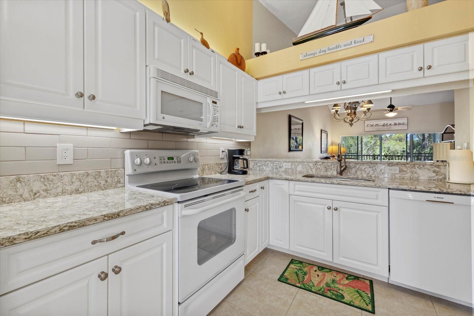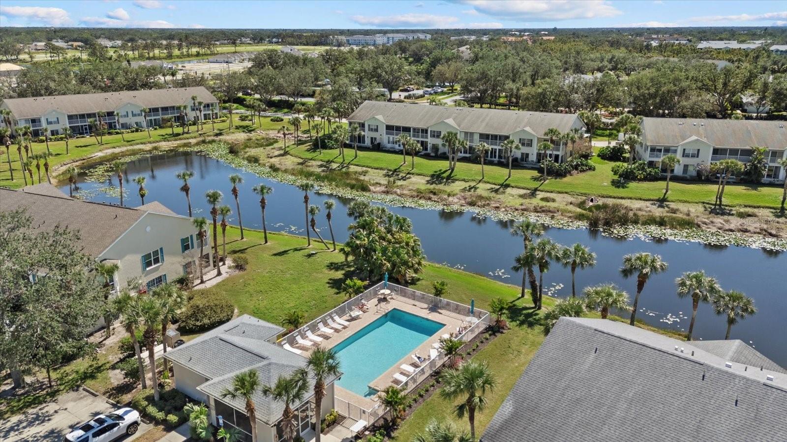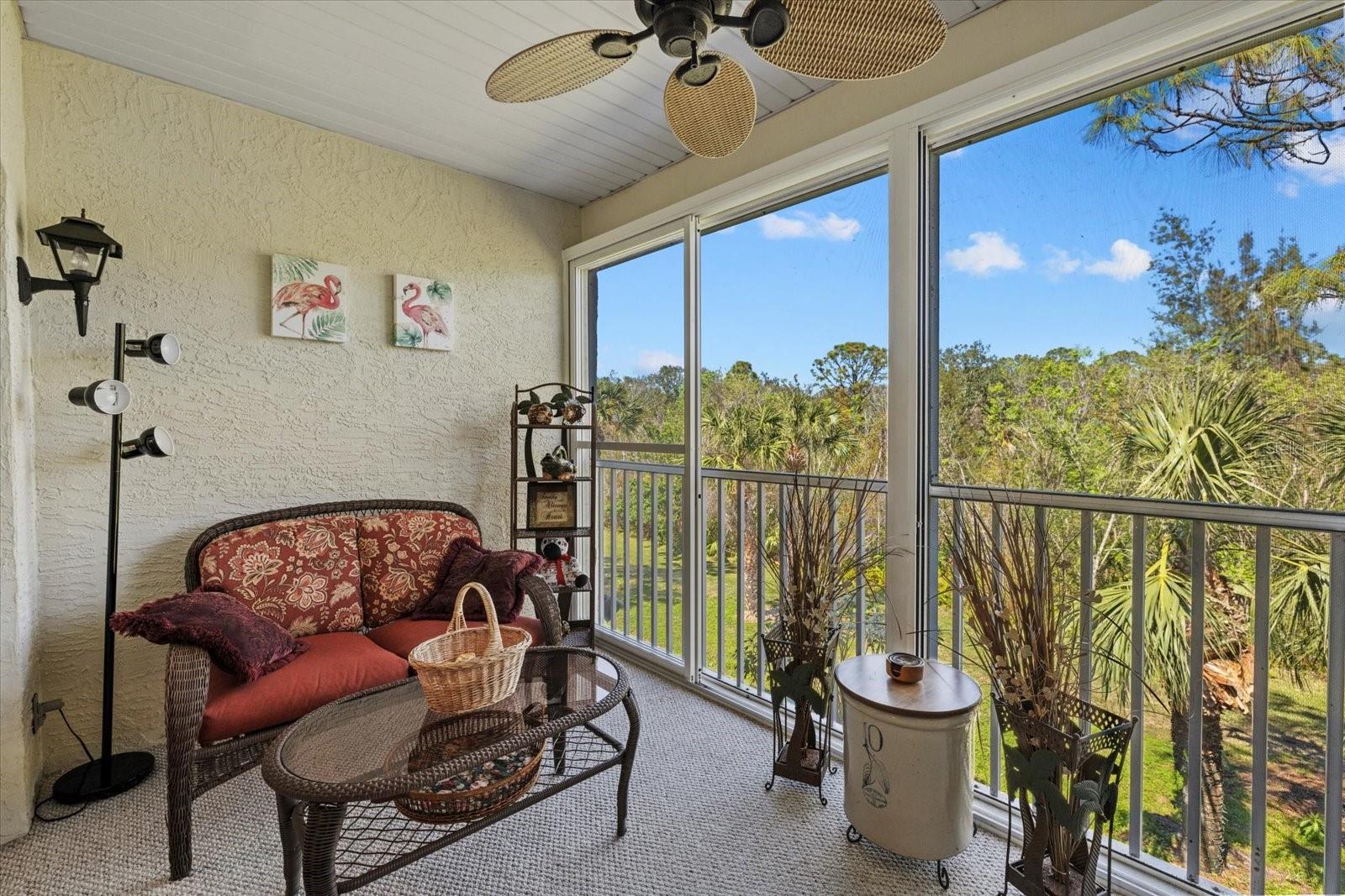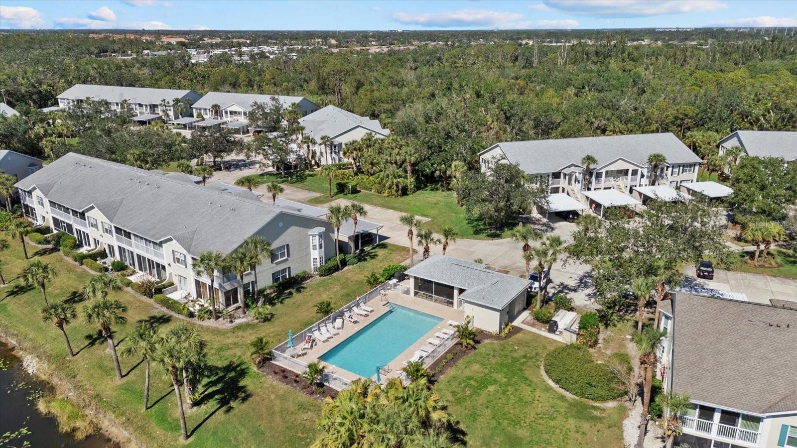 Seller is now offering $5,000 in buyer concessions with an accepted contract. Charming 2-Bedroom + Den Condo in West Preserve at Waterside Village – Now Offered FURNISHED at $290,000! Discover this beautifully maintained second-floor condo offering 2 bedrooms, 2 full baths, and a versatile den/flex room in the highly desirable West Preserve at Waterside Village community. This light and bright home features vaulted ceilings and a spacious open floor plan. The well-appointed kitchen boasts granite countertops, a stylish tile backsplash, soft-close cabinetry with pantry, an eat-in dining area, and a breakfast bar with ample seating—perfect for casual dining and entertaining. An additional built-in counter/desk area provides extra functionality. The living and dining areas flow seamlessly to the enclosed lanai, which has been upgraded to include aluminum doors with acrylic windows, offering enhanced protection and year-round usability. This versatile space, with an additional 120 square feet of functional living area, is perfect as a sunroom for relaxing or entertaining while still enjoying the natural light and views of the lush preserve. A screened front porch provides an additional outdoor living area. The primary suite is generously sized and features an ensuite bath with a double vanity, a walk-in shower, and tile flooring, along with a spacious walk-in closet. The den/office includes a built-in desk and cabinetry, making it an ideal workspace or even a spare bedroom. For added privacy, the guest suite—featuring a comfortable second bedroom and a full bath with a tub/shower combo—can be closed off, making it an ideal retreat for visitors. Additional conveniences include in-unit laundry with a brand-new washer and dryer (2025), covered parking for one vehicle, and ample guest parking. Enjoy resort-style amenities, including three heated pools, tennis and pickleball courts, shuffleboard, bocce ball, and a clubhouse. Located just minutes from Venice’s beautiful beaches, downtown Venice, shopping, and dining, this home is ideal for full-time or seasonal living. Don’t miss this incredible opportunity—schedule your showing today!