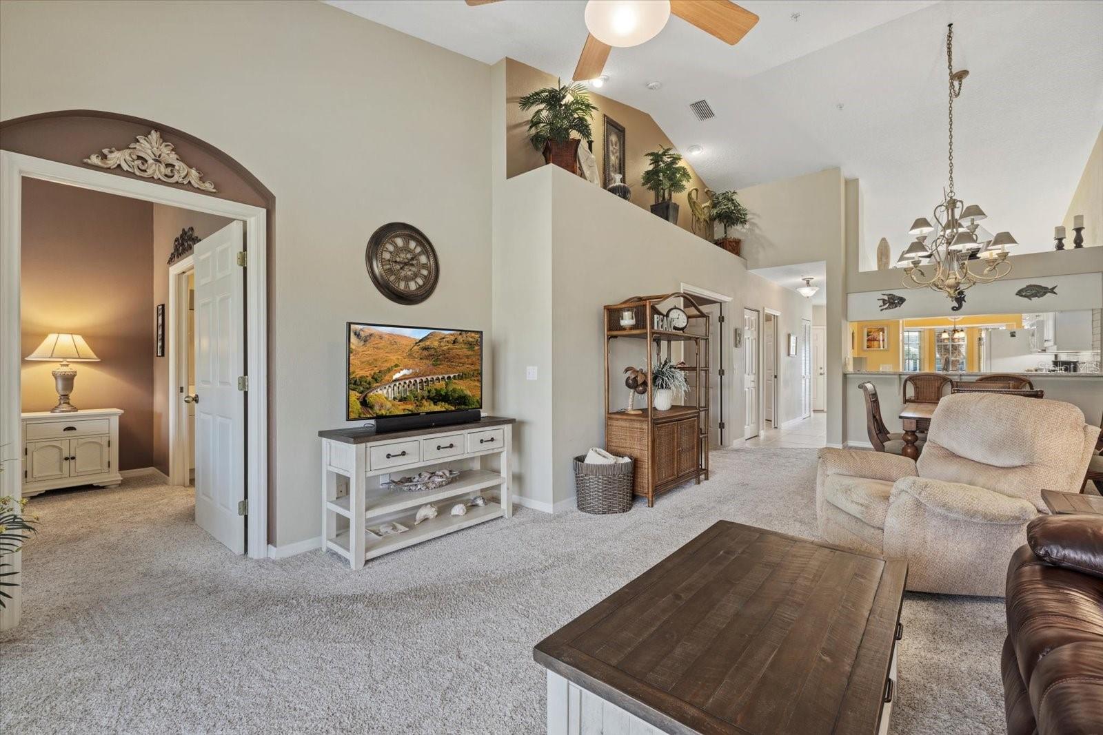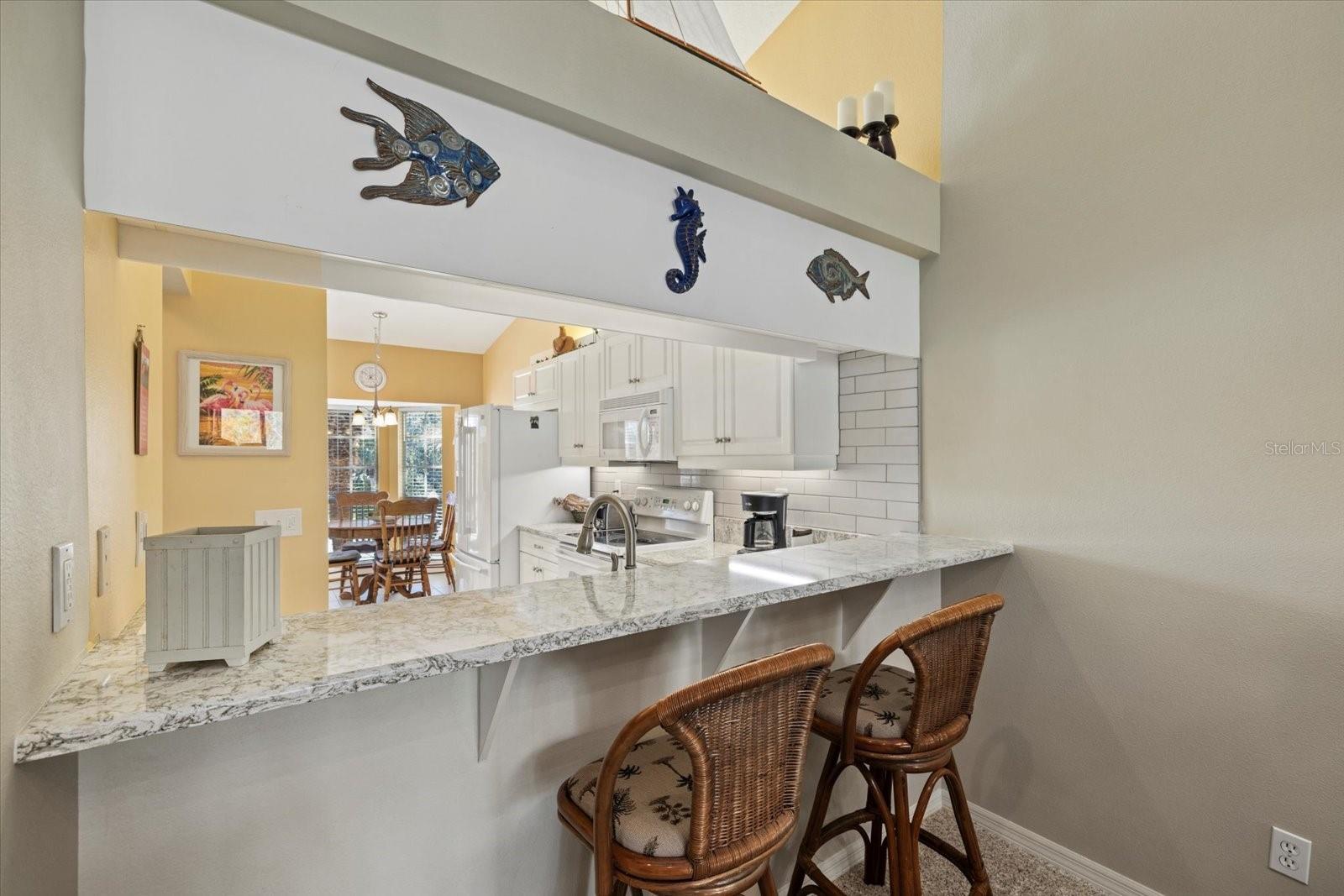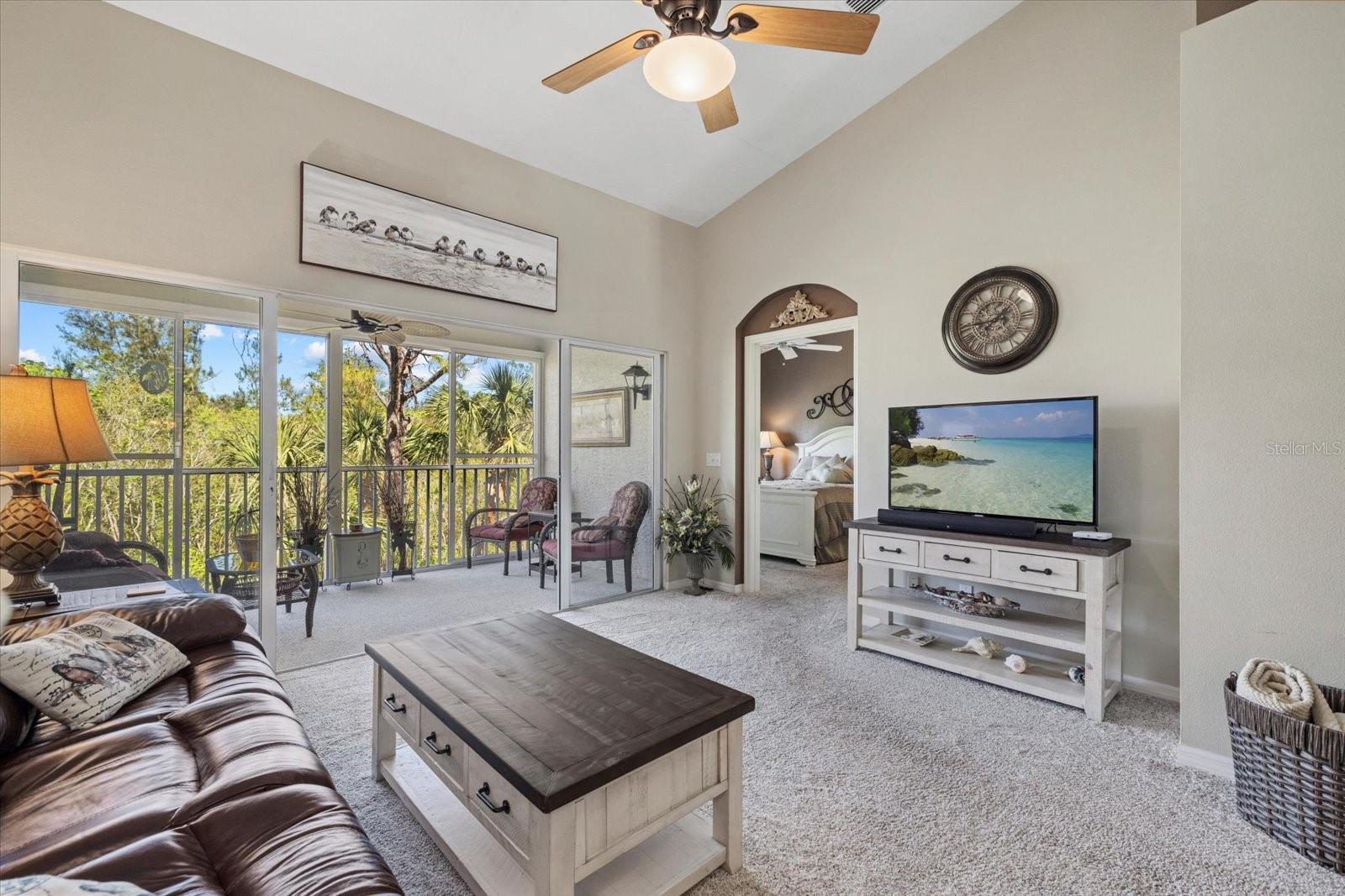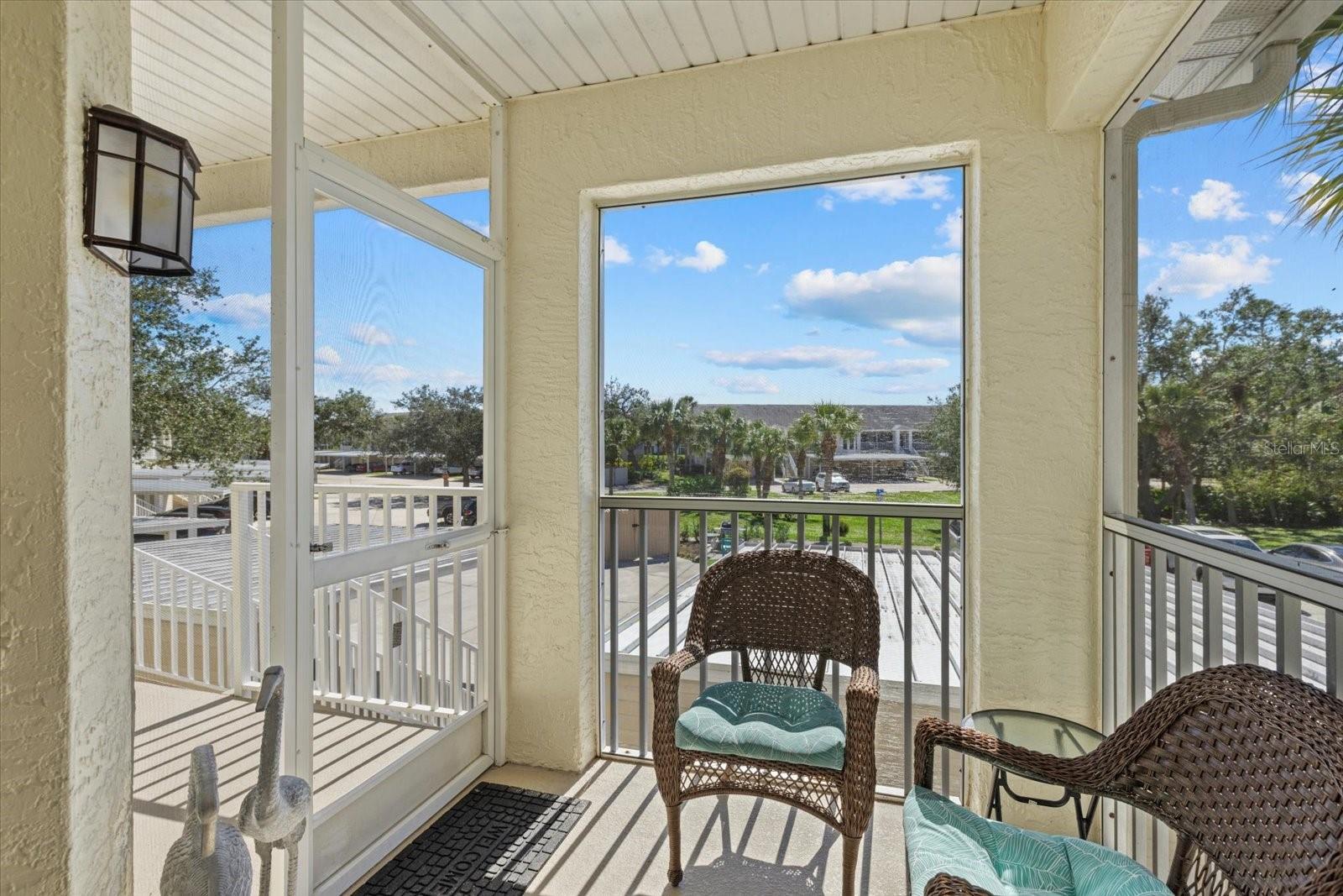 Seller is now offering $5,000 in buyer concessions with an accepted contract. Charming 2-Bedroom + Den Condo in West Preserve at Waterside Village – Now Offered FURNISHED at $290,000! Discover this beautifully maintained second-floor condo offering 2 bedrooms, 2 full baths, and a versatile den/flex room in the highly desirable West Preserve at Waterside Village community. This light and bright home features vaulted ceilings and a spacious open floor plan. The well-appointed kitchen boasts granite countertops, a stylish tile backsplash, soft-close cabinetry with pantry, an eat-in dining area, and a breakfast bar with ample seating—perfect for casual dining and entertaining. An additional built-in counter/desk area provides extra functionality. The living and dining areas flow seamlessly to the enclosed lanai, which has been upgraded to include aluminum doors with acrylic windows, offering enhanced protection and year-round usability. This versatile space, with an additional 120 square feet of functional living area, is perfect as a sunroom for relaxing or entertaining while still enjoying the natural light and views of the lush preserve. A screened front porch provides an additional outdoor living area. The primary suite is generously sized and features an ensuite bath with a double vanity, a walk-in shower, and tile flooring, along with a spacious walk-in closet. The den/office includes a built-in desk and cabinetry, making it an ideal workspace or even a spare bedroom. For added privacy, the guest suite—featuring a comfortable second bedroom and a full bath with a tub/shower combo—can be closed off, making it an ideal retreat for visitors. Additional conveniences include in-unit laundry with a brand-new washer and dryer (2025), covered parking for one vehicle, and ample guest parking. Enjoy resort-style amenities, including three heated pools, tennis and pickleball courts, shuffleboard, bocce ball, and a clubhouse. Located just minutes from Venice’s beautiful beaches, downtown Venice, shopping, and dining, this home is ideal for full-time or seasonal living. Don’t miss this incredible opportunity—schedule your showing today!