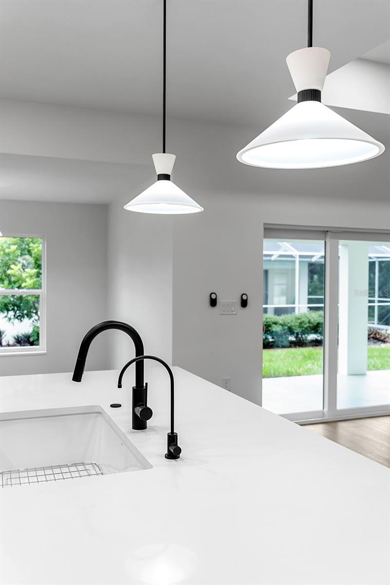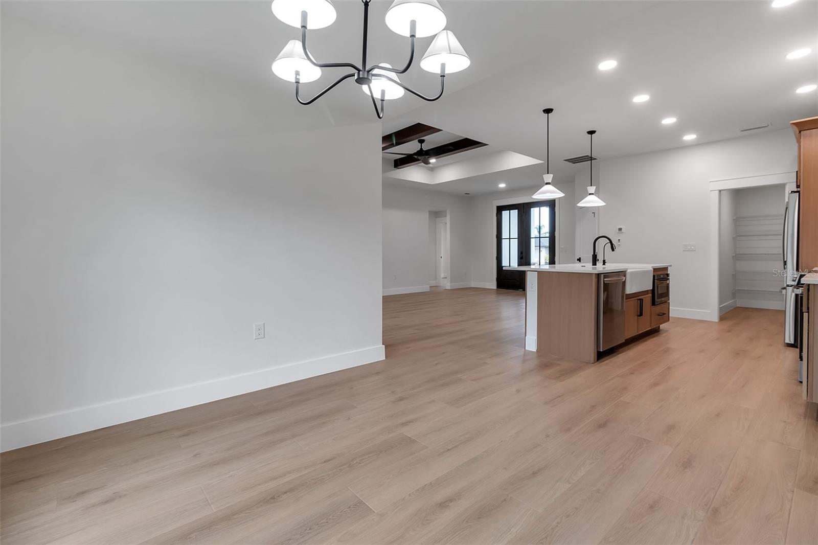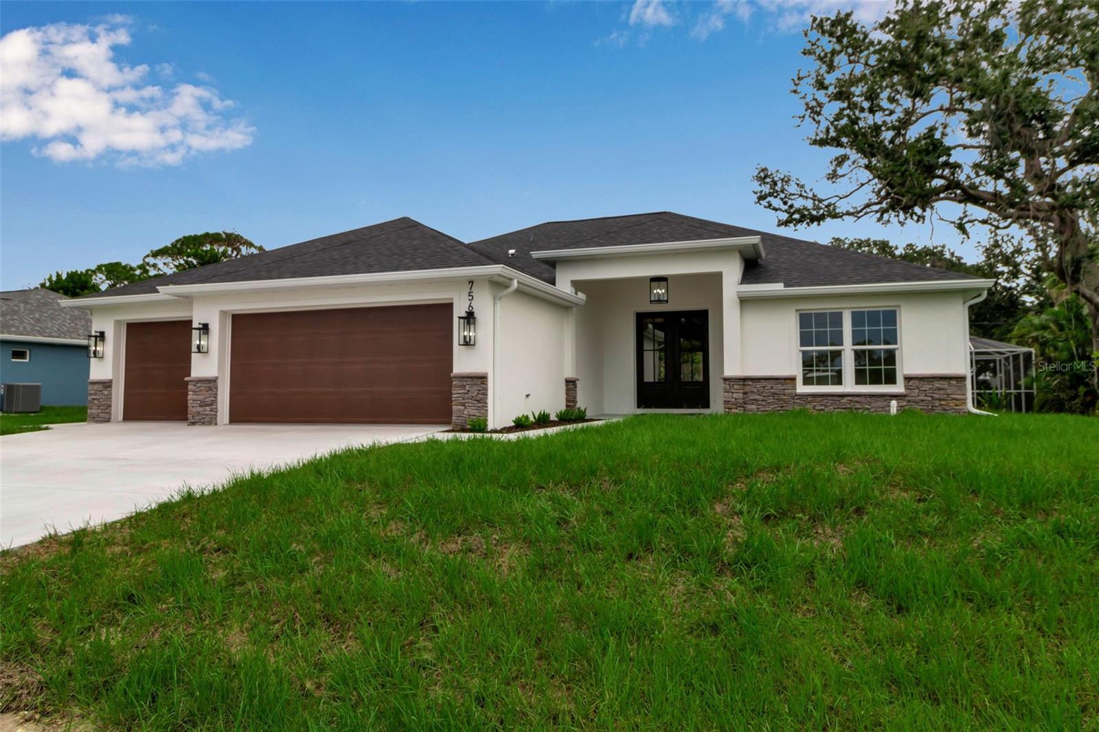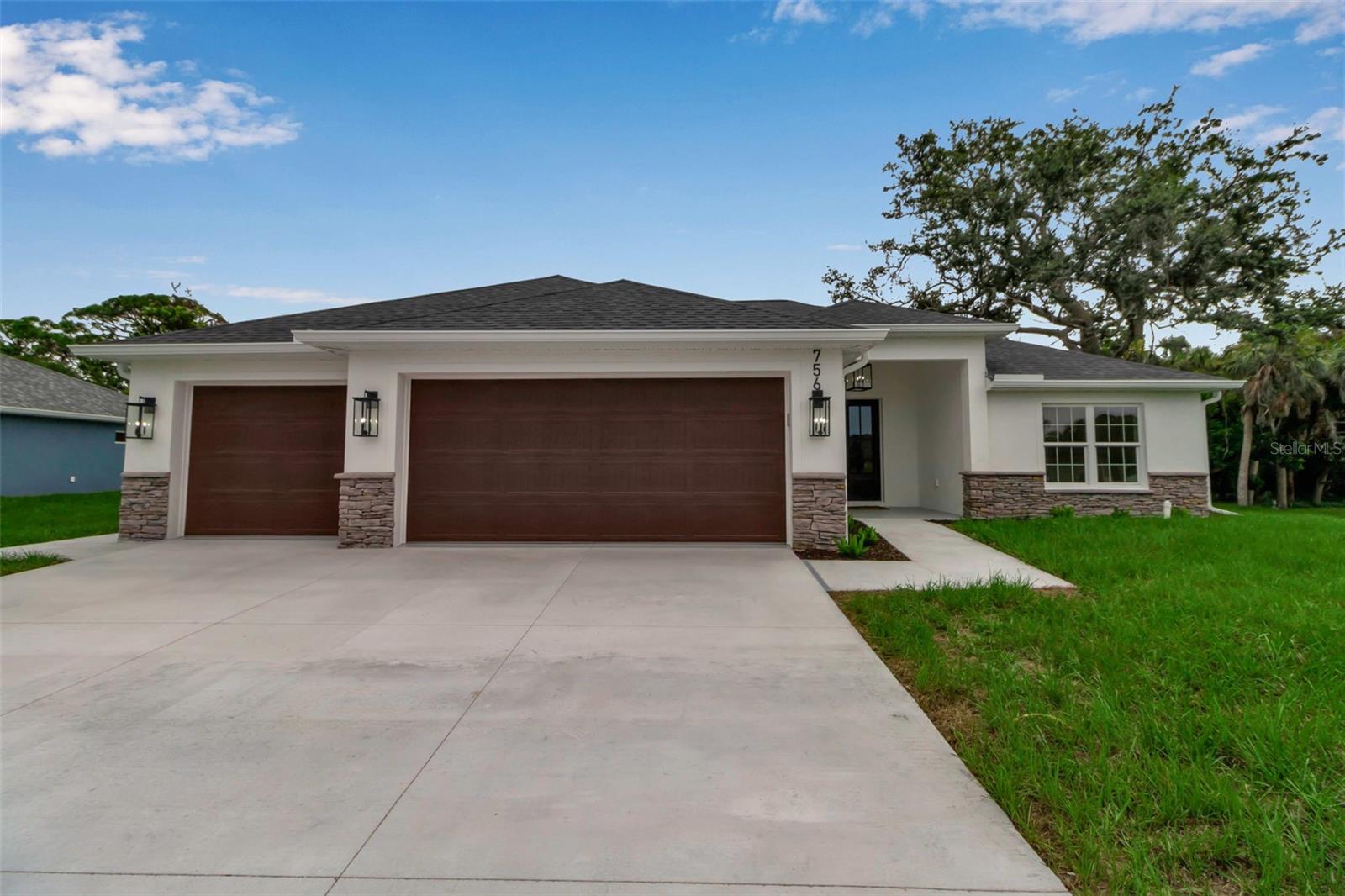 Welcome to the Boca at 756 Citrus Road — a beautiful new build by Blue Water Custom Homes that blends timeless design with modern functionality in the heart of South Venice. The exterior is warm and inviting, finished in soft stucco with a warm white tone and accented by elegant stone. Clean rooflines, large windows, and a charming covered entry create a refined first impression, while the three-car garage enhances both curb appeal and practicality. The overall look is fresh, coastal, and enduring — a design that feels right at home in Florida’s landscape. Inside, cathedral ceilings soar over the main living area, filling the home with natural light and volume. The open-concept layout seamlessly connects the great room, dining area, and kitchen — a perfect balance of style and function for everyday living or entertaining. The kitchen is a true highlight, showcasing slim shaker-style wood cabinetry, a white stone backsplash, and a built-in white range hood for a clean, cohesive look. Black-and-white pendant lights above the island and a coordinating dining fixture add the perfect touch of personality and contrast, striking a balance between trend and timelessness. A generously sized pantry with a pocket door adds both storage and a subtle design flare. The split floor plan offers both privacy and flow. The primary suite is tucked to one side of the home and features two walk-in closets. A private hall leads to the en-suite bathroom, where a freestanding soaking tub takes center stage, complemented by dual vanities and a walk-in shower with refined tile details. On the opposite side of the home, two additional bedrooms share a full bathroom, designed with the same level of thoughtful finishes. The laundry room is ideally located between the garage and the main living space, making everyday routines simple and efficient. The three-car garage is a standout feature, offering space not only for vehicles but also for storage, hobbies, or recreational gear. At the rear, large sliding glass doors open to a covered lanai, extending the living space outdoors. Whether for morning coffee, relaxing evenings, or entertaining friends, this area captures the essence of Florida living. Set in South Venice, this home offers not just comfort but freedom — with no HOA, no CDD fees, and no flood insurance requirement. Optional membership in the South Venice Civic Association provides exclusive access to a private beach ferry, community boat ramp, and park amenities. Located just minutes from Shamrock Park, the Venetian Waterway Trail, dining, shopping, and Gulf beaches, this home is ideally placed to enjoy everything the area has to offer. Crafted with care and backed by a 2-10 Home Buyers Warranty, the Boca at 756 Citrus Road is ready to welcome its first owners to enjoy both its thoughtful design and coastal lifestyle.