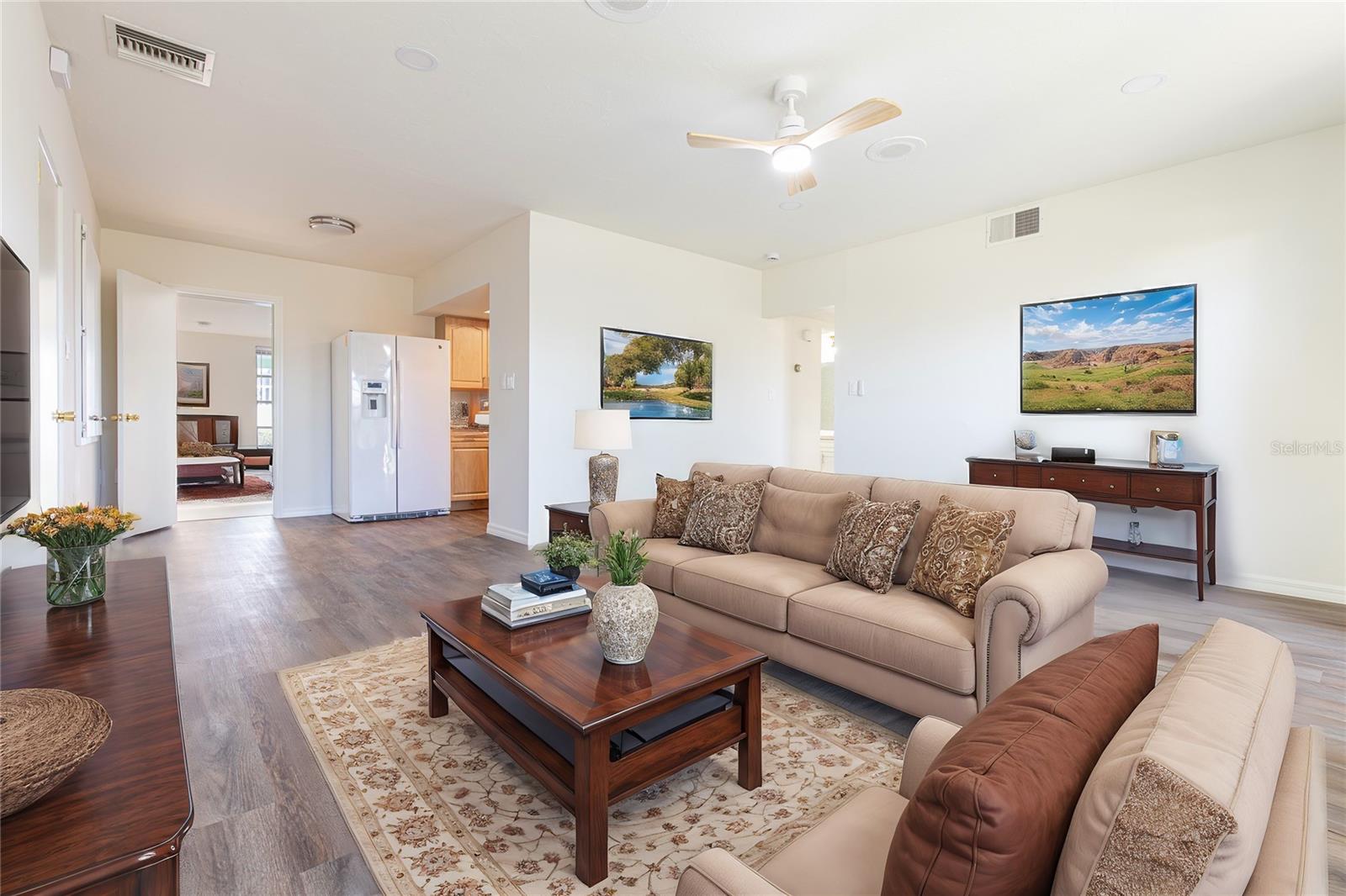 MOTIVATED SELLER! Nestled in the highly sought-after Venice Gardens neighborhood, this beautifully updated 3-bedroom, 2-bathroom home effortlessly blends modern upgrades with coastal charm. With an additional room that includes a closet, making it a potential 4th bedroom. It features a spacious and private In-Law Suite, making it perfect for multi-generational living or rental opportunities. The suite boasts its own new kitchenette, a private bathroom, a separate entrance, and a dedicated AC unit, offering both comfort and independence. It also includes a brand-new roof, new light fixtures, one new AC unit, new flooring, and new trim, this home is move-in ready! The sparkling pool has been resurfaced and is equipped with a new pump and filter, perfect for enjoying Florida’s sunny days. Inside, the main kitchen boasts a stylish new backsplash, fresh interior and exterior paint, along with new toilets, complete the extensive updates. Located in the preferred X flood zone, with no HOA or deed restrictions, this property offers peace of mind and flexibility. Optional membership to Venice Gardens Community grants access to a pool and clubhouse. Just minutes from beaches, Legacy Bike Trail, Venice downtown, and just walking distance to stores and restaurants, this home is a true gem in a prime location! Schedule your showing today!