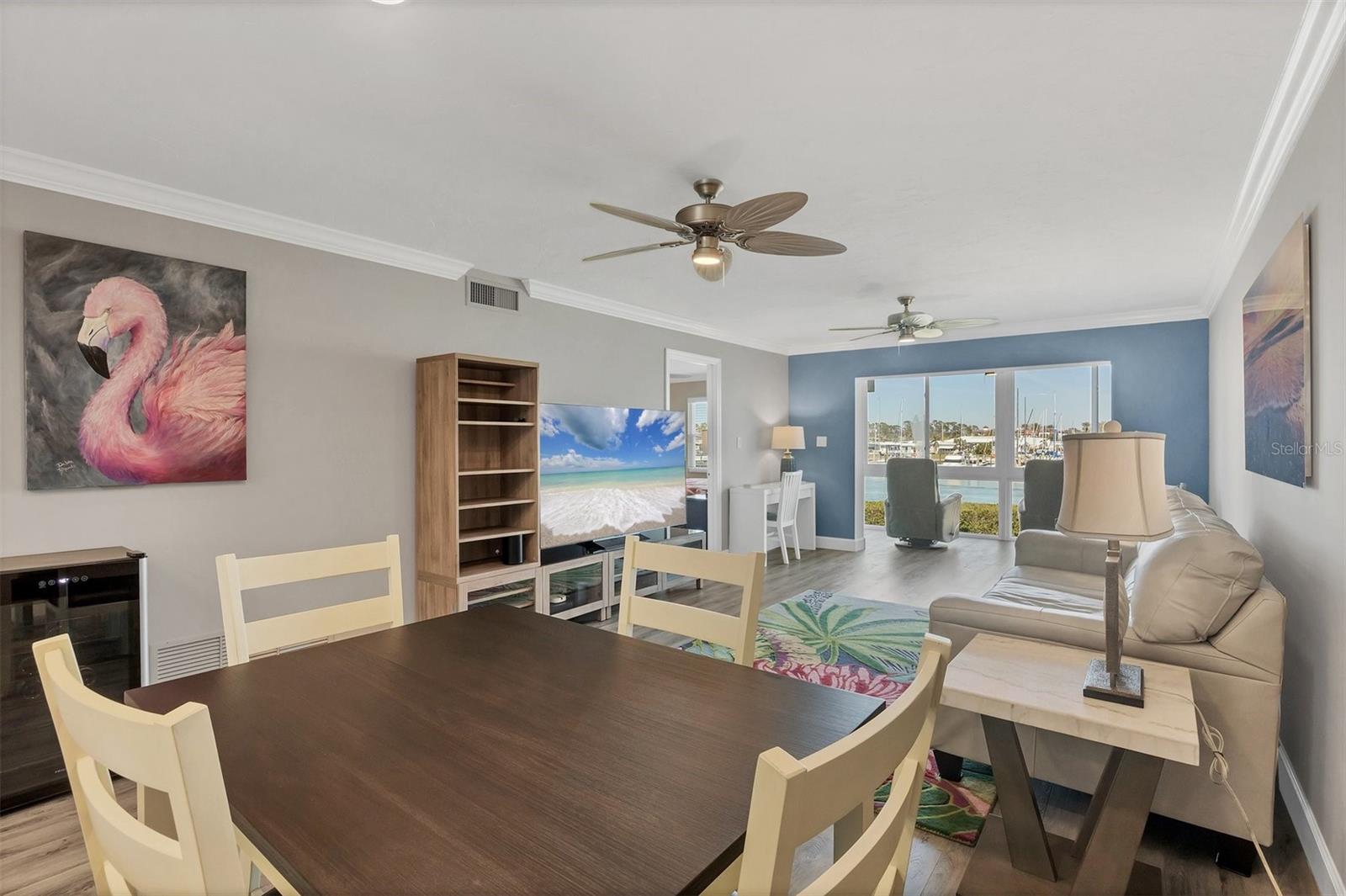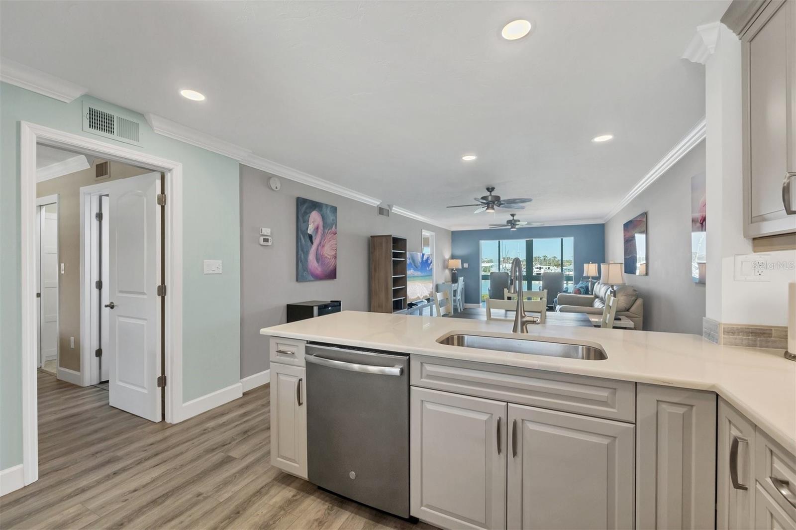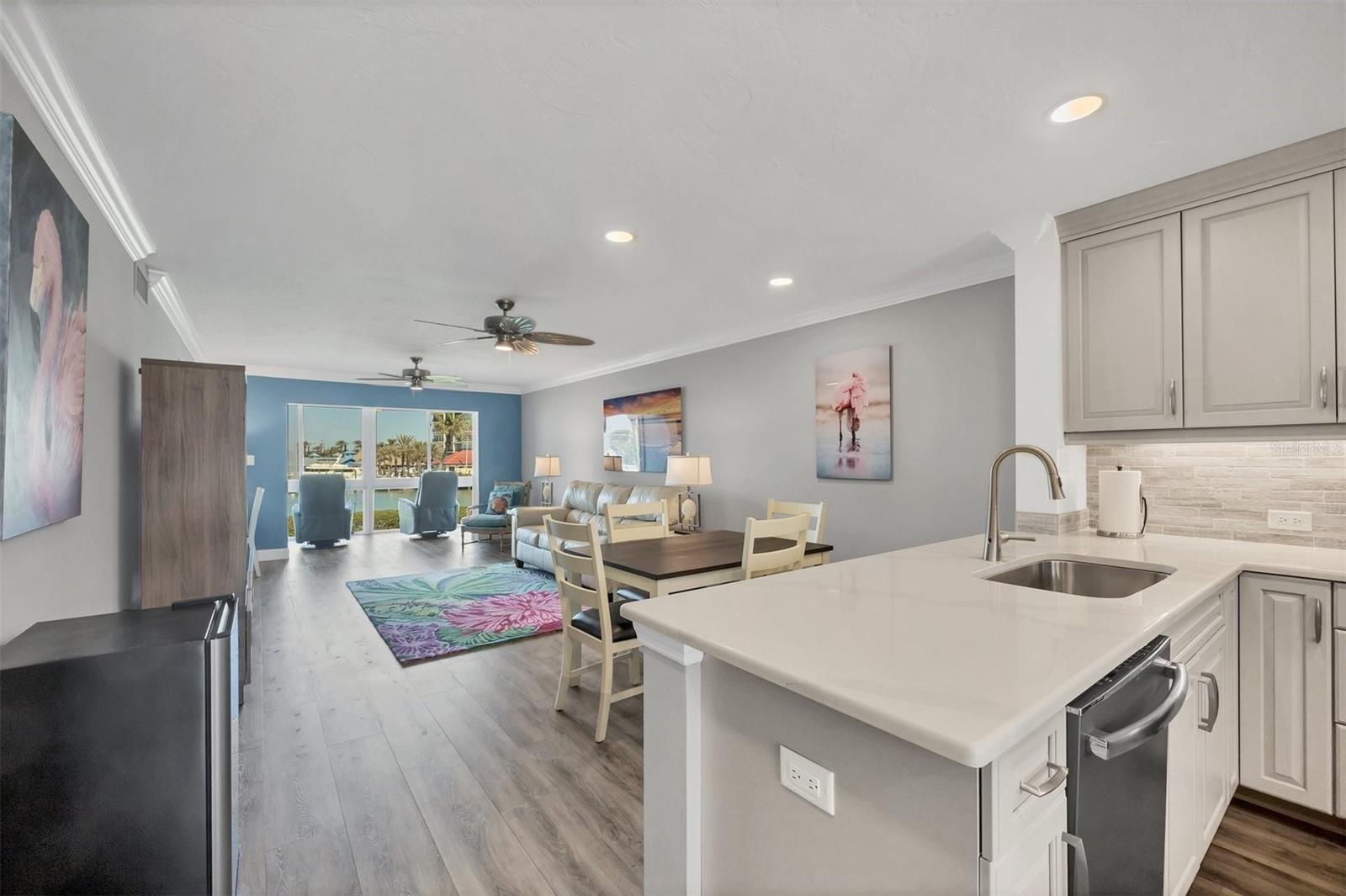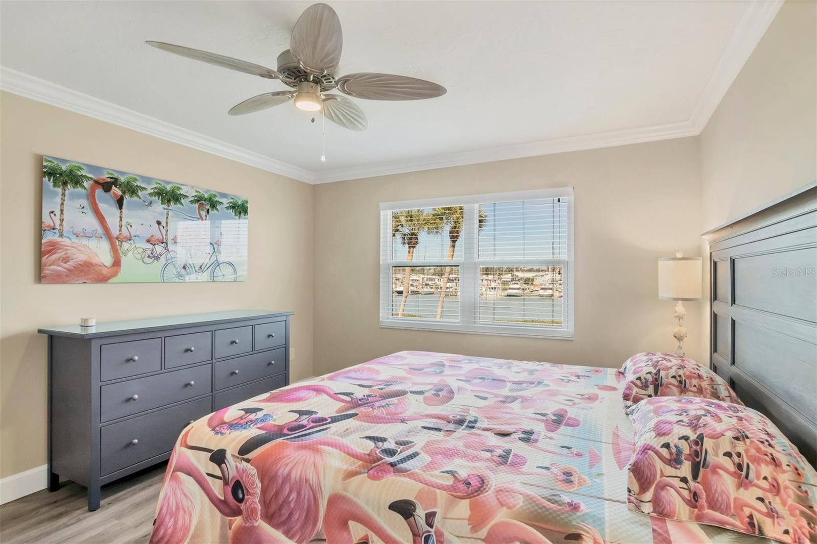 MAJOR PRICE IMPROVEMENT!!! Discover coastal living at its finest in this beautifully updated turnkey 2-bedroom, 2-bath home with unobstructed views of the Intercoastal and Roberts Bay. From the moment you step inside, you'll be captivated by the breathtaking scenery, and you might even spot dolphins from your lanai! This home is designed for peace of mind with hurricane windows, a hurricane impact entry door, and a storm door with a retractable screen. The beautiful kitchen features custom color soft-close wood cabinets, a lazy Susan for pots and pans, quartz countertops, and tile backsplash. The open floor plan is adorned with luxury vinyl floors, crown molding, wide baseboards, and window treatments. Wake up to stunning views from the primary bedroom, complete with a gorgeous en-suite bathroom that includes tile floors, quartz countertops, tiled showers, glass doors, and a multi-function showerhead. The second bedroom offers a convenient and beautiful en-suite bathroom for guests, also featuring quartz countertops, tiled showers, glass doors, and a multi-function showerhead. Enjoy the community amenities, including a pool, clubhouse, game room, fitness room, and library. Perfect Location! You're just steps away from Historical Downtown Venice, where you'll find an array of shops, restaurants, and theater. Venice Beach is less than 1.5 miles! Claim your slice of paradise and embrace the unparalleled Venice lifestyle today.