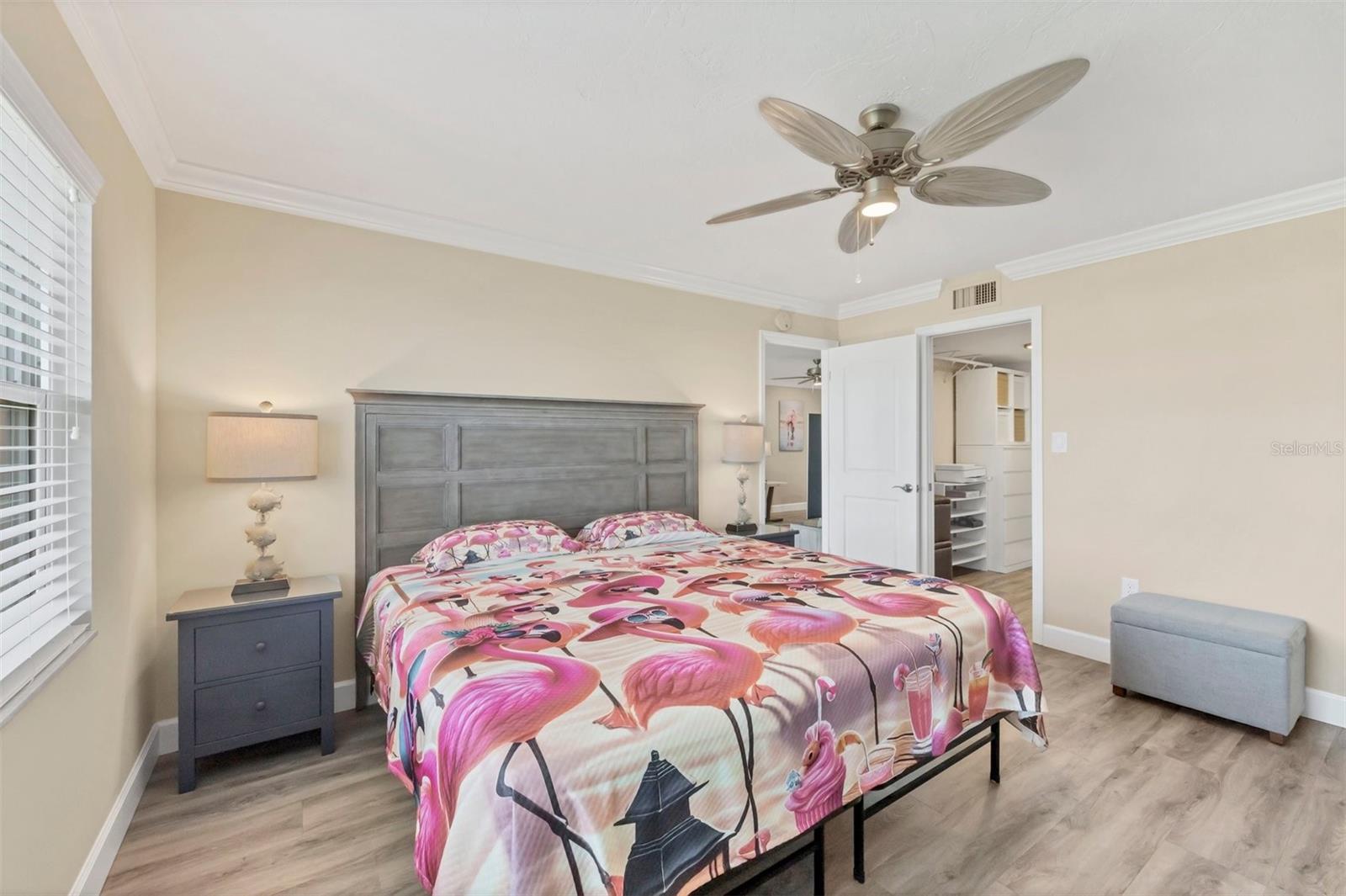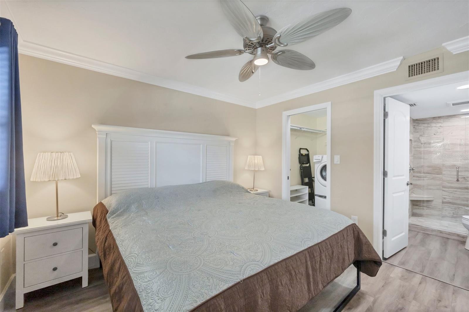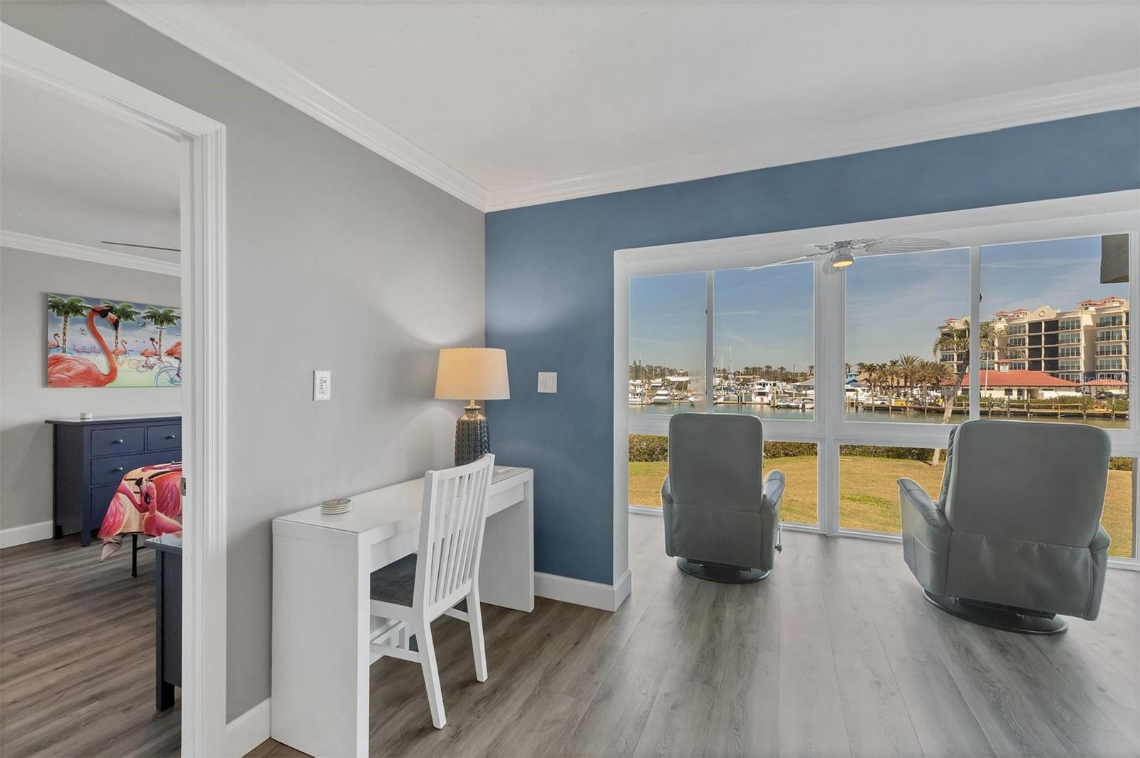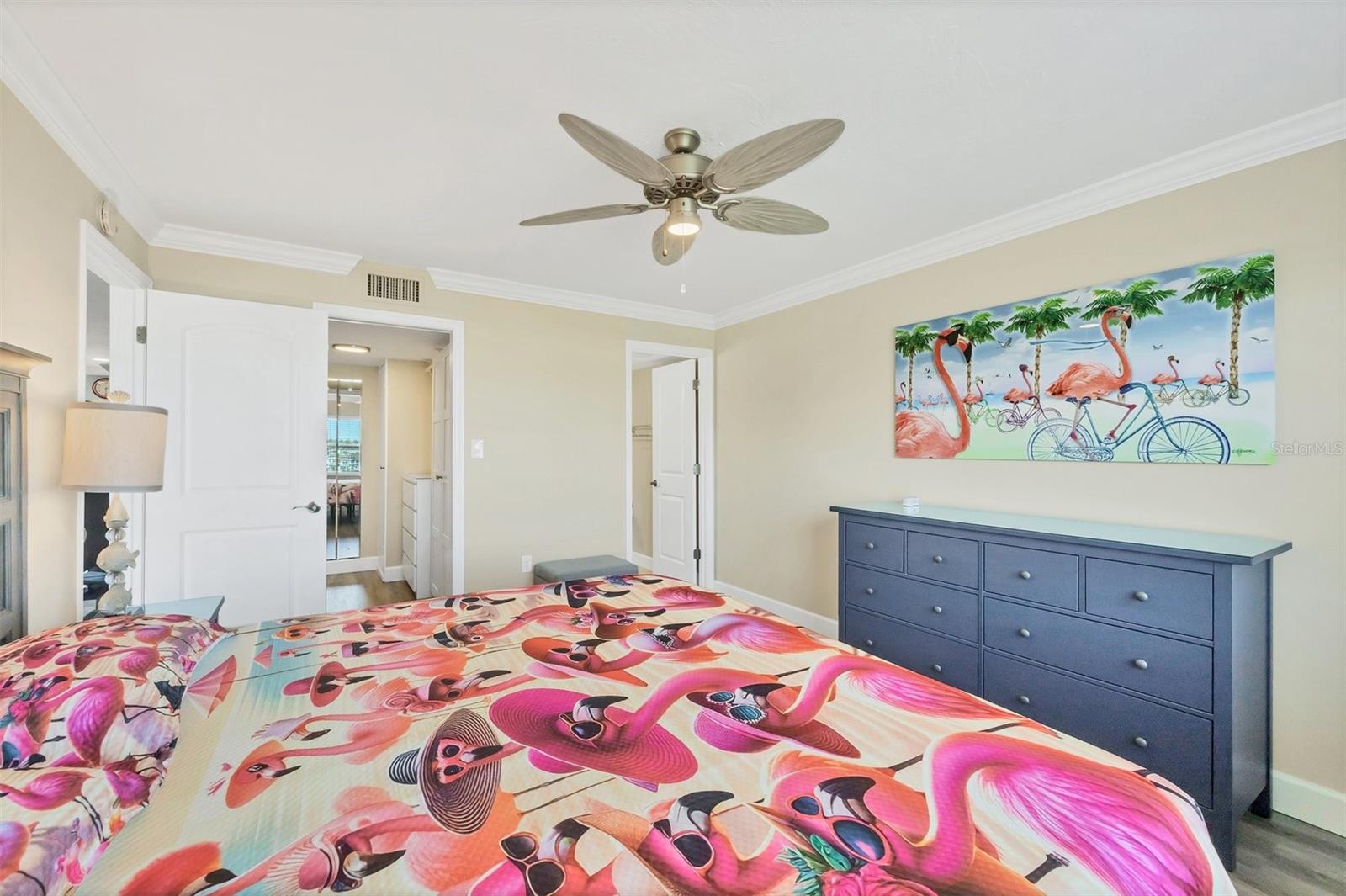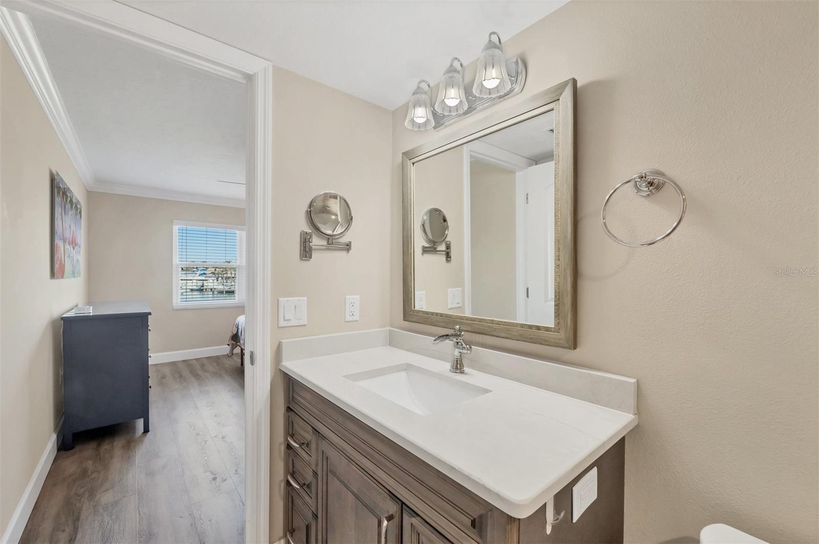 MAJOR PRICE IMPROVEMENT!!! Discover coastal living at its finest in this beautifully updated turnkey 2-bedroom, 2-bath home with unobstructed views of the Intercoastal and Roberts Bay. From the moment you step inside, you'll be captivated by the breathtaking scenery, and you might even spot dolphins from your lanai! This home is designed for peace of mind with hurricane windows, a hurricane impact entry door, and a storm door with a retractable screen. The beautiful kitchen features custom color soft-close wood cabinets, a lazy Susan for pots and pans, quartz countertops, and tile backsplash. The open floor plan is adorned with luxury vinyl floors, crown molding, wide baseboards, and window treatments. Wake up to stunning views from the primary bedroom, complete with a gorgeous en-suite bathroom that includes tile floors, quartz countertops, tiled showers, glass doors, and a multi-function showerhead. The second bedroom offers a convenient and beautiful en-suite bathroom for guests, also featuring quartz countertops, tiled showers, glass doors, and a multi-function showerhead. Enjoy the community amenities, including a pool, clubhouse, game room, fitness room, and library. Perfect Location! You're just steps away from Historical Downtown Venice, where you'll find an array of shops, restaurants, and theater. Venice Beach is less than 1.5 miles! Claim your slice of paradise and embrace the unparalleled Venice lifestyle today.