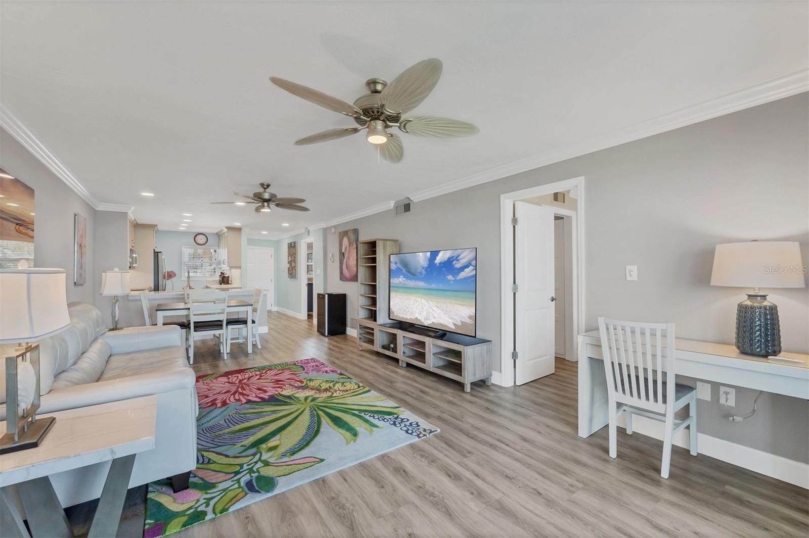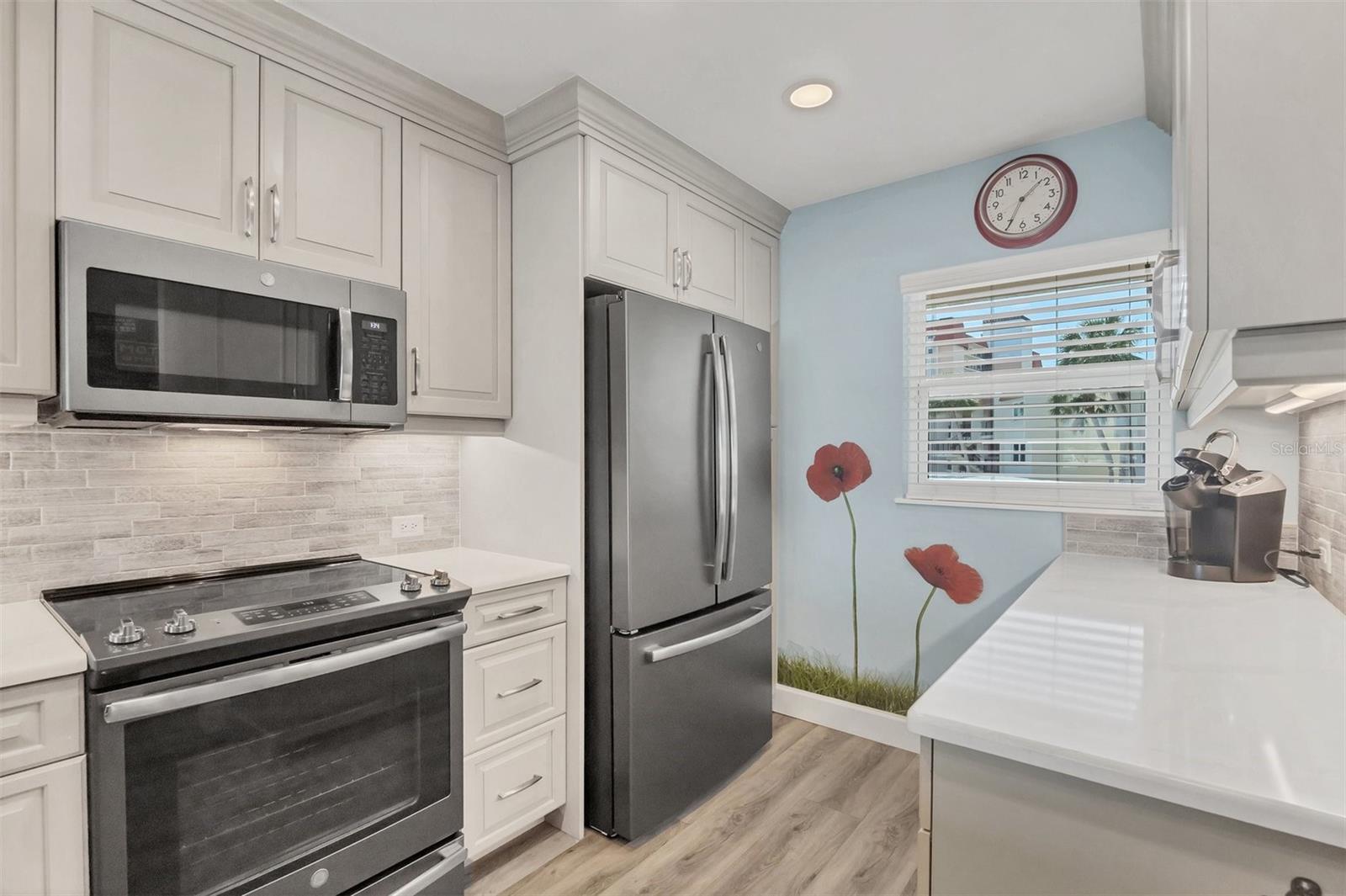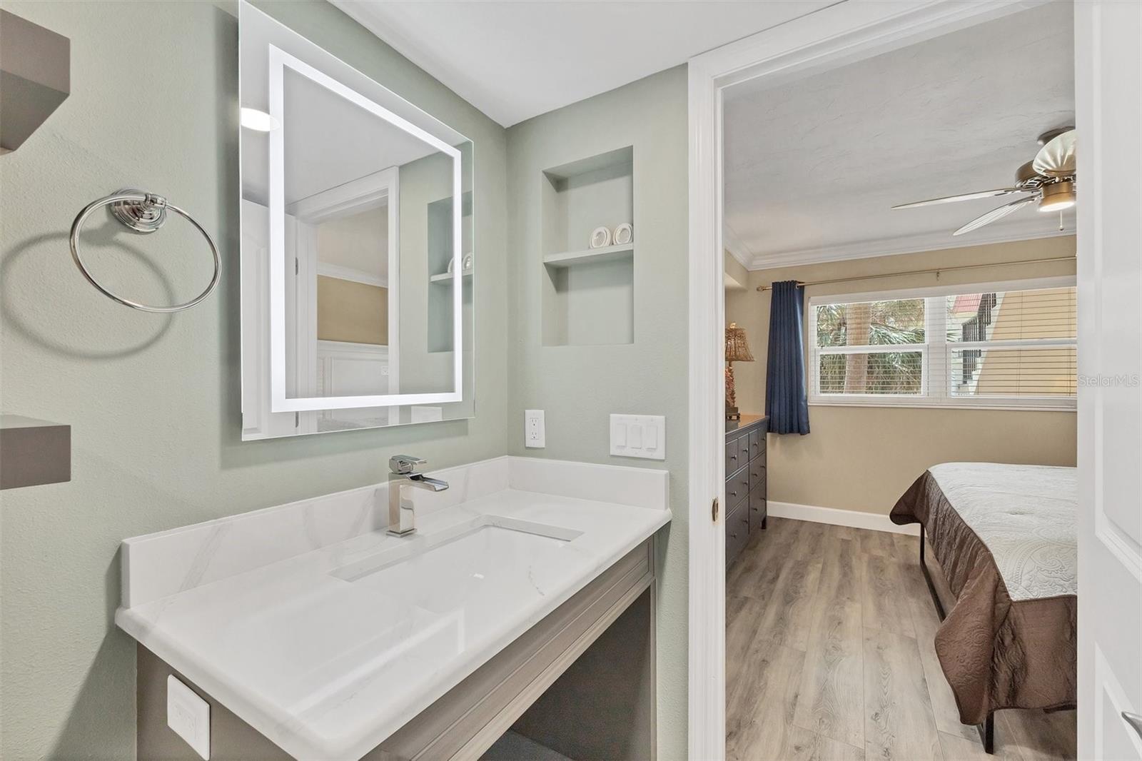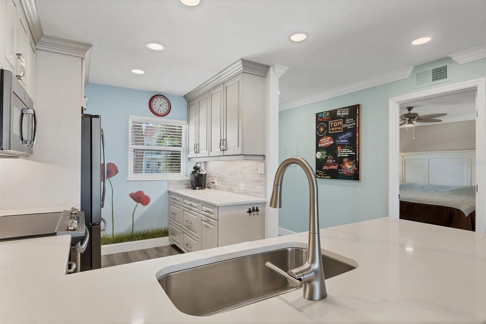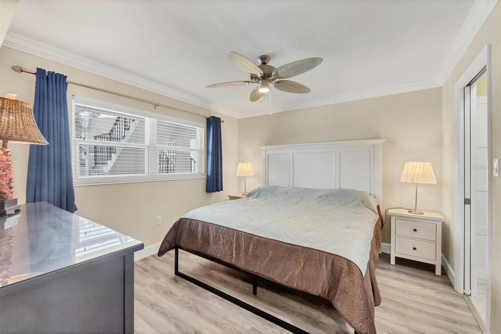 MAJOR PRICE IMPROVEMENT!!! Discover coastal living at its finest in this beautifully updated turnkey 2-bedroom, 2-bath home with unobstructed views of the Intercoastal and Roberts Bay. From the moment you step inside, you'll be captivated by the breathtaking scenery, and you might even spot dolphins from your lanai! This home is designed for peace of mind with hurricane windows, a hurricane impact entry door, and a storm door with a retractable screen. The beautiful kitchen features custom color soft-close wood cabinets, a lazy Susan for pots and pans, quartz countertops, and tile backsplash. The open floor plan is adorned with luxury vinyl floors, crown molding, wide baseboards, and window treatments. Wake up to stunning views from the primary bedroom, complete with a gorgeous en-suite bathroom that includes tile floors, quartz countertops, tiled showers, glass doors, and a multi-function showerhead. The second bedroom offers a convenient and beautiful en-suite bathroom for guests, also featuring quartz countertops, tiled showers, glass doors, and a multi-function showerhead. Enjoy the community amenities, including a pool, clubhouse, game room, fitness room, and library. Perfect Location! You're just steps away from Historical Downtown Venice, where you'll find an array of shops, restaurants, and theater. Venice Beach is less than 1.5 miles! Claim your slice of paradise and embrace the unparalleled Venice lifestyle today.