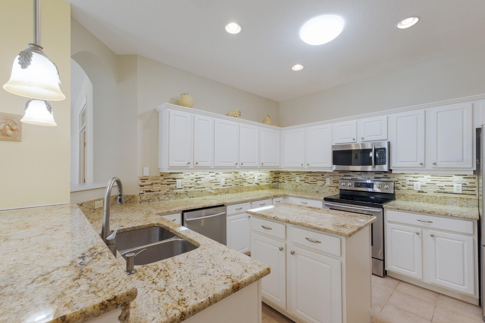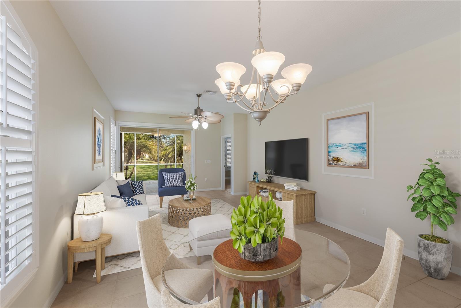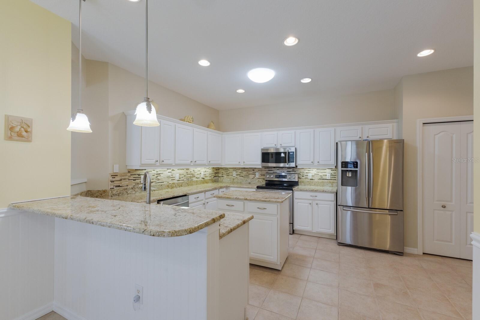 One or more photo(s) has been virtually staged. Pelican Pointe Golf and Country Club welcomes you to your dream home. This home features a NEW ROOF in 2024, 2 bedrooms, 2 bathrooms, PLUS a den, and 1496 square feet under air providing plenty of space to live and entertain while providing ample space for comfort and functionality. Imagine waking up every day in a beautifully designed home that boasts modern finishes and spacious living areas. This villa is nestled on the 15th Hole in this amenity-rich community and offers an unparalleled lifestyle for its residents. 27 holes of championship golf winds through the community offering endless opportunities for recreation and relaxation. The primary bedroom offers plenty of natural light, a tray ceiling, a huge walk-in closet plus the en-suite bath includes dual sinks, granite counters, and a walk-in shower. The second bath, on the opposite side of this villa, offers granite counters and a combo tub and shower. The kitchen provides plenty of cabinets, a generous center island all with granite tops. Pelican Pointe Golf and Country Club features a state-of-the-art fitness center, heated swimming pool, professional-class tennis and pickleball courts, perfect for staying active and socializing with neighbors. Enjoy leisurely strolls through the scenic walking trails, or spend your weekends at the community clubhouse, restaurant, bar, grill, and a library offering a constant variety of events and activities. HOA fees include maintenance fees, irrigation, exterior painting, power washing the exterior, driveway, roof, pest control, basic cable and basic internet. Conveniently located near shopping, dining, entertainment options, Venice Theatre, Venice Beach, and quaint downtown Venice. This home offers the perfect blend of luxury and convenience. Don't miss out on the chance to live in one of Venice's most sought-after communities, Pelican Pointe Golf and Country Club. Golf Membership is not required. Experience the lifestyle you deserve!