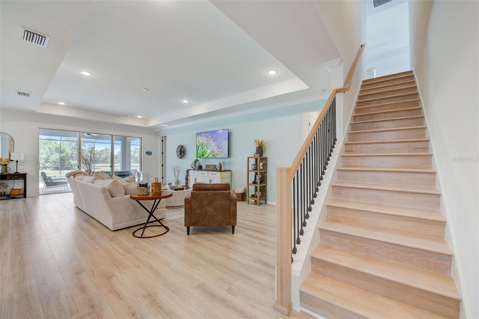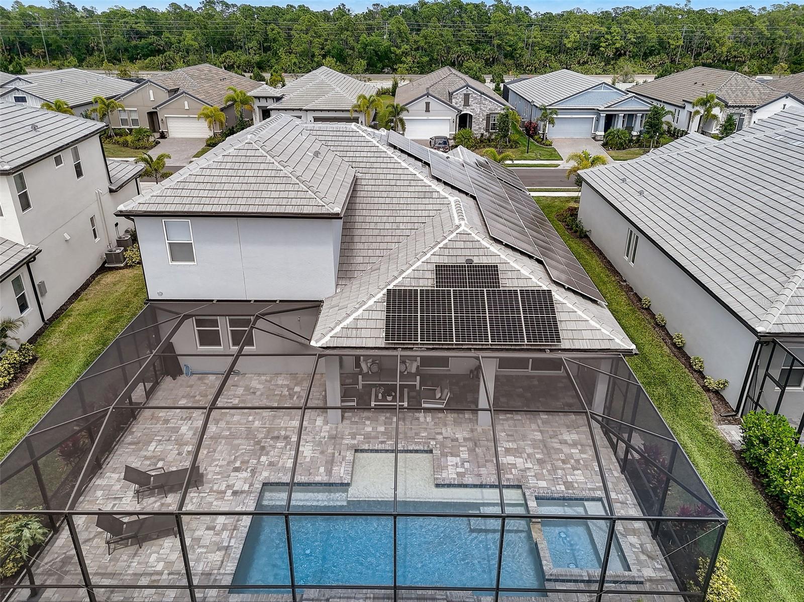 Step into the embrace of luxury living with this meticulously designed estate home nestled in the heart of Oasis, an exclusive gated community within the flourishing Wellen Park district. This 4-bedroom, 4-bathroom haven offers a luxurious yet comfortable lifestyle that easily accommodates multi-generational living. With mesmerizing views of the lake and island preserve across the way, just imagine relaxing by your very own resort-like salt pool and spa, lounging on the sun shelf, toasting to stunning sunsets, or simply reading a book in the shaded privacy of your expansive screened lanai. Can you imagine not having an electric bill for years to come? Included in this price, the home is equipped with a solar panel energy system that powers the entire home and protects against increases in utility costs for 25 years. Now this is a smart home! The windows and doors are hurricane-impact resistant rated to Cat 4. At the heart of this home is the great room featuring a wide-open floorplan and a wall of double glass sliding doors that fills the kitchen, dining room, and living room with tons of natural light. This is where everyone gathers to share meals and conversations and to catch up on the day’s events. Chef will enjoy preparing fabulous meals in the kitchen that has it all with Cambria quartz countertops, custom cabinetry with pullouts, a large center island with counter stool seating, stainless-steel GE Cafe Smart appliances including a refrigerator with a built-in Keurig Brewing System, and double wall ovens. The generous master suite enjoys a lovely water view setting the stage for a serene, peaceful, and private retreat complete with a built-in valet/coffee bar, a spacious walk-in closet, and a gorgeous en-suite bath with a walk-in shower, dual sinks, and custom cabinetry. The office and 2 guest bedrooms are located on the opposite side of the home, ensuring comfort and privacy for all. The custom staircase leads you to the upstairs loft area where you'll find the 4th bedroom and 4th bathroom and plenty of additional storage. This home is equipped with the latest smart home technology that makes life so much easier! Set your climate preferences, manage pool operations, and control your security system and appliances, all remotely through the touch of your phone app. After a long day on the town, turn on your spa and preheat your oven so that everything is ready for you upon your arrival. You're ready to entertain! Residents of the Oasis community enjoy a clubhouse and heated community pool, a pickleball court, and direct access from within the community to the Blue Heron community park with hiking trails, a lake, and 2 dog parks - one small and one large. This is an exciting time for Wellen Park which is a growing master-planned community with shopping, restaurants, medical facilities, State College of Florida (Venice Campus), the Atlanta Braves Spring training ballpark, a new Costco, and much more in planning. Downtown Wellen Park offers lake activities, concerts on the Great Lawn, a Farmers market, and more. Enjoy historic downtown Venice and several Gulf Coast beaches which are just minutes away. Nearby boating and golfing opportunities are plentiful. This is the Florida lifestyle that you have been dreaming of!! Call to schedule a tour of this beautiful home today!
