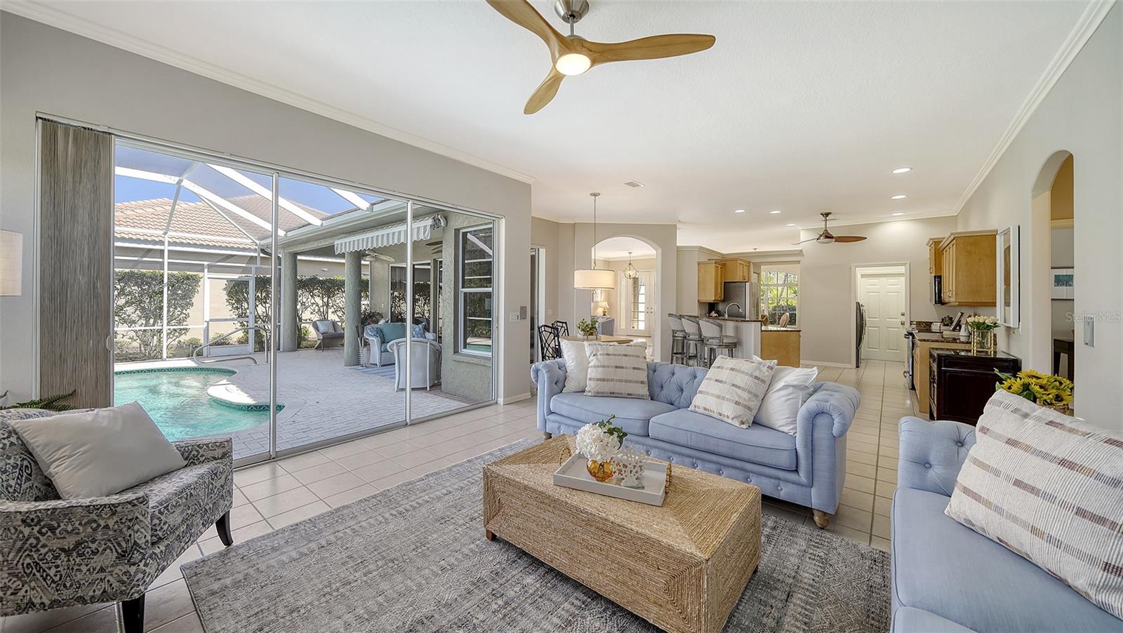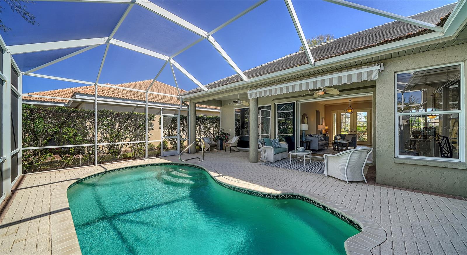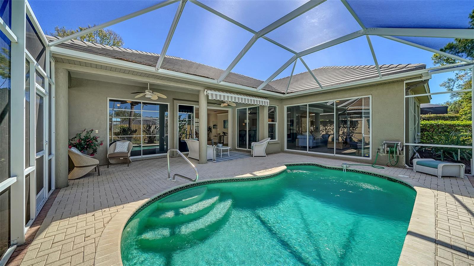 REDUCED $90,000!!! FROM $550,000 TO $460,000!!! LARGEST HOUSE AT THE LOWEST SQUARE FOOT PRICE IN THIS COMMUNITY!! IMMEDIATELY AVAILABLE! PLUS, SELLER WILL PAY INITIATION COSTS OF $25,000 FOR CLJUB MEMBERSHIP!!! This is a SENSATIONAL VALUE!! What a home this is, freshly painted with $50,000 to $75,000 of quality improvements: Halo 5 water purifier, new electric panel, outlets and switches, new security system, new air handler and condenser, electronic air purifier & UV light sanitizer, new pool heater plus converted to salt water, new appliances, additional attic insulation, new water line from house to street, completely replumbed. And more in a detailed list in attachments. Relax in this well-kept home with high ceilings, crown moldings, 4 sets of sliding glass doors, and lots of space indoors and outdoors. Venice Golf and Country Club is the Premier Club in Venice. It is private, owned by the members, 18 holes of golf, has a manned entry gate, lush tree-lined streets, and is a Geo Audubon community. The Clubhouse was completely remodeled in 2022 with outdoor dining, wellness center (personal trainer, classes, massage & physical therapist) heated pool and spa, har-tru tennis courts, bocce, and pickle ball for active days and fire pits for evening relaxation. Membership is required. See attachments for details. VGCC is 5 miles from charming downtown Venice, and a short drive to beaches, dining, theater, Wellen Park, & the Braves spring training facility. This prestigious community is best described as lush and green, welcoming and friendly, and impeccably maintained and presented. It is the GEM of Venice.